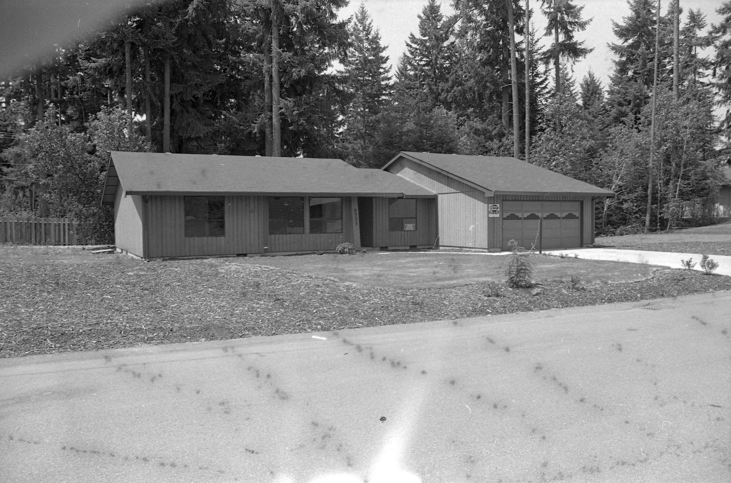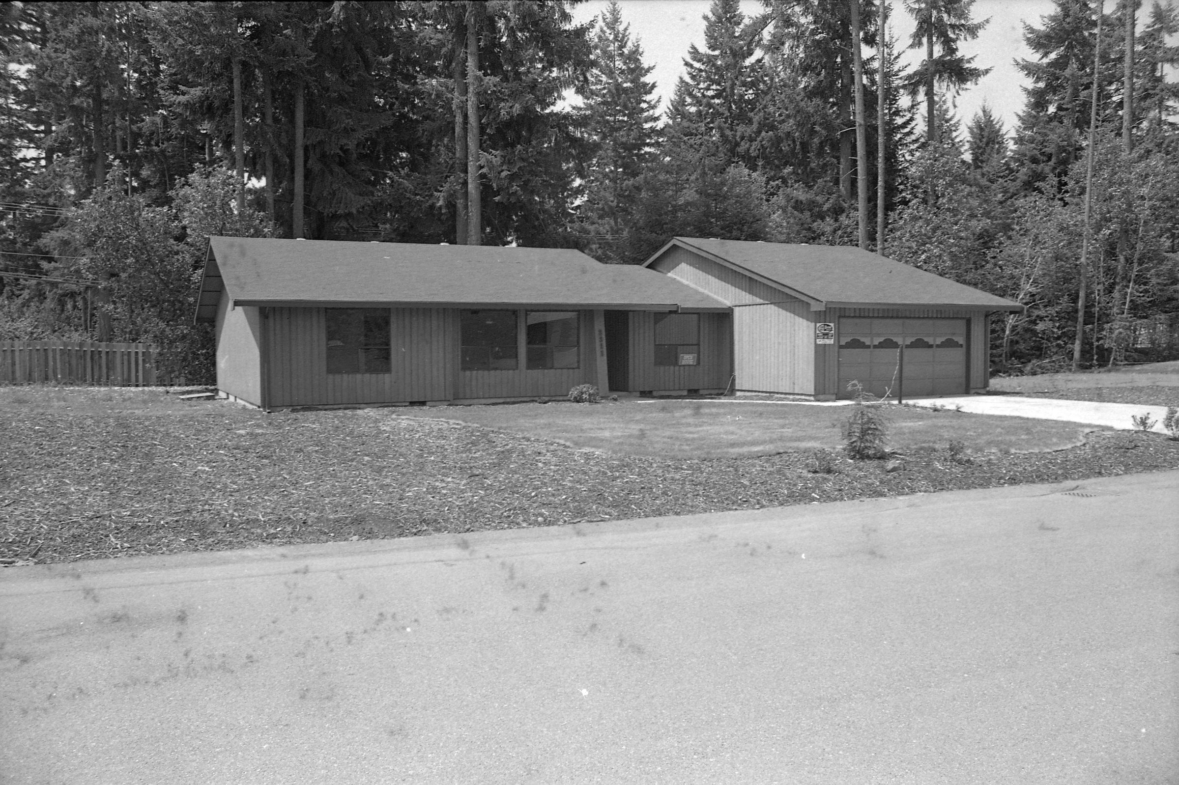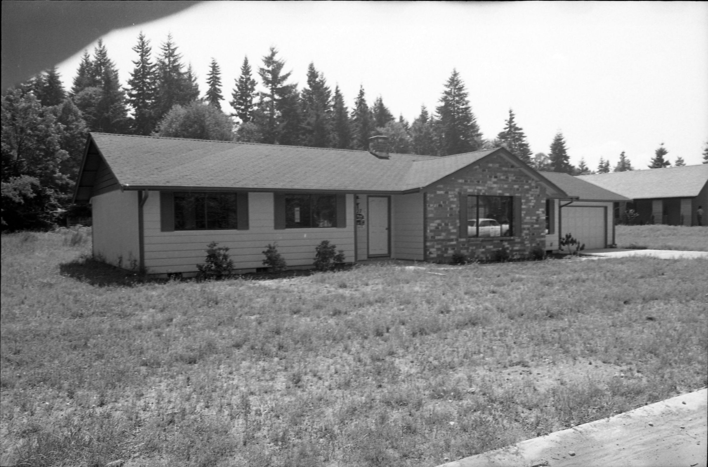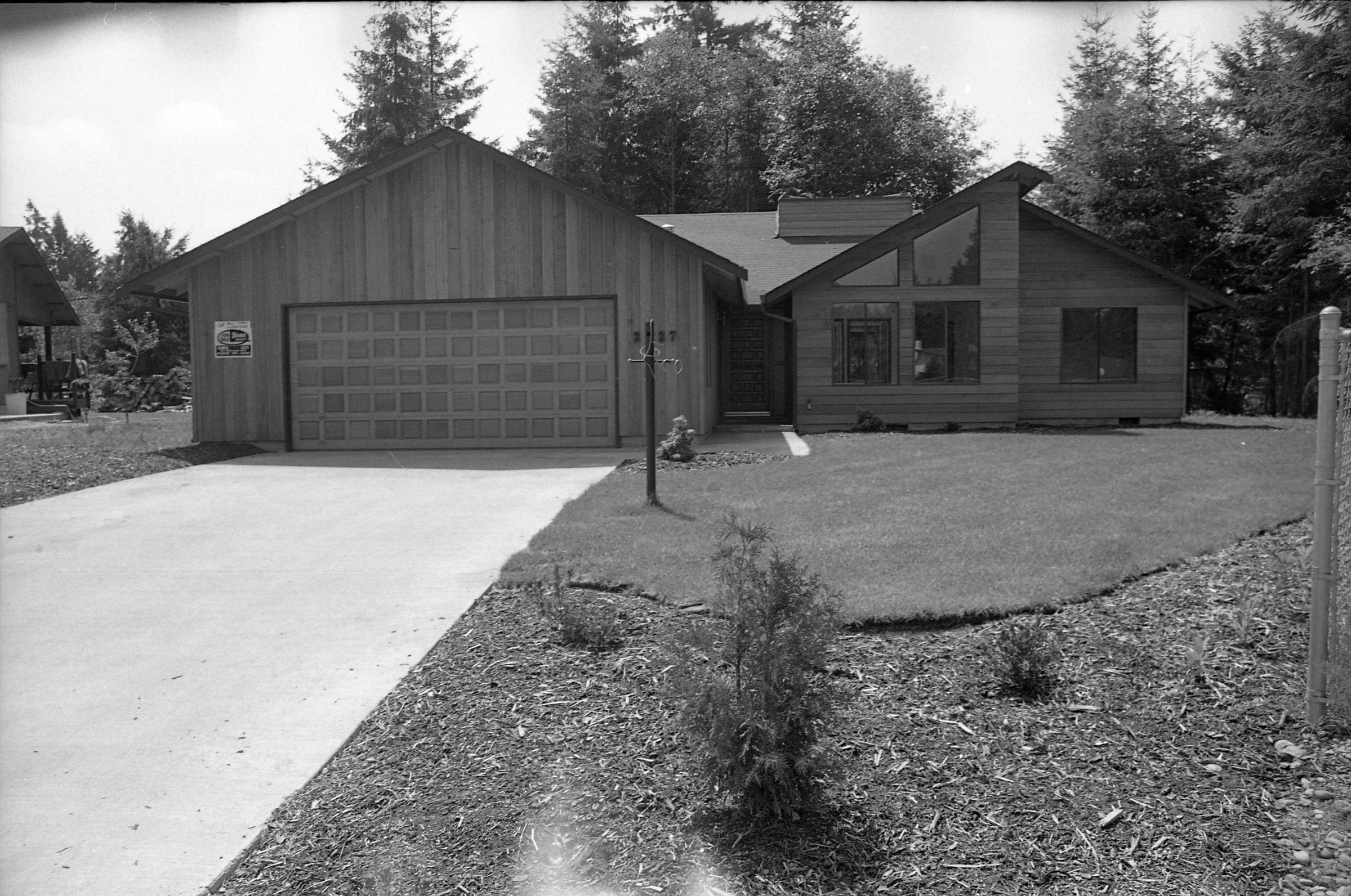 Real Estate, 1979. These four black and white film negative strips were created for the Lacey Leader newspaper. These images show exterior shots of houses.Made/Created