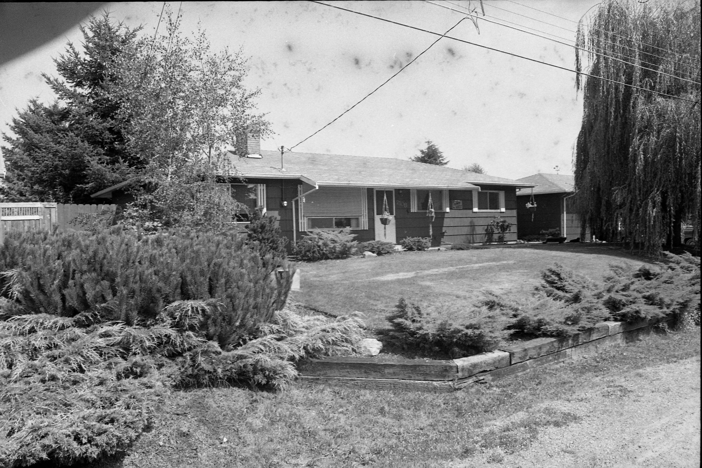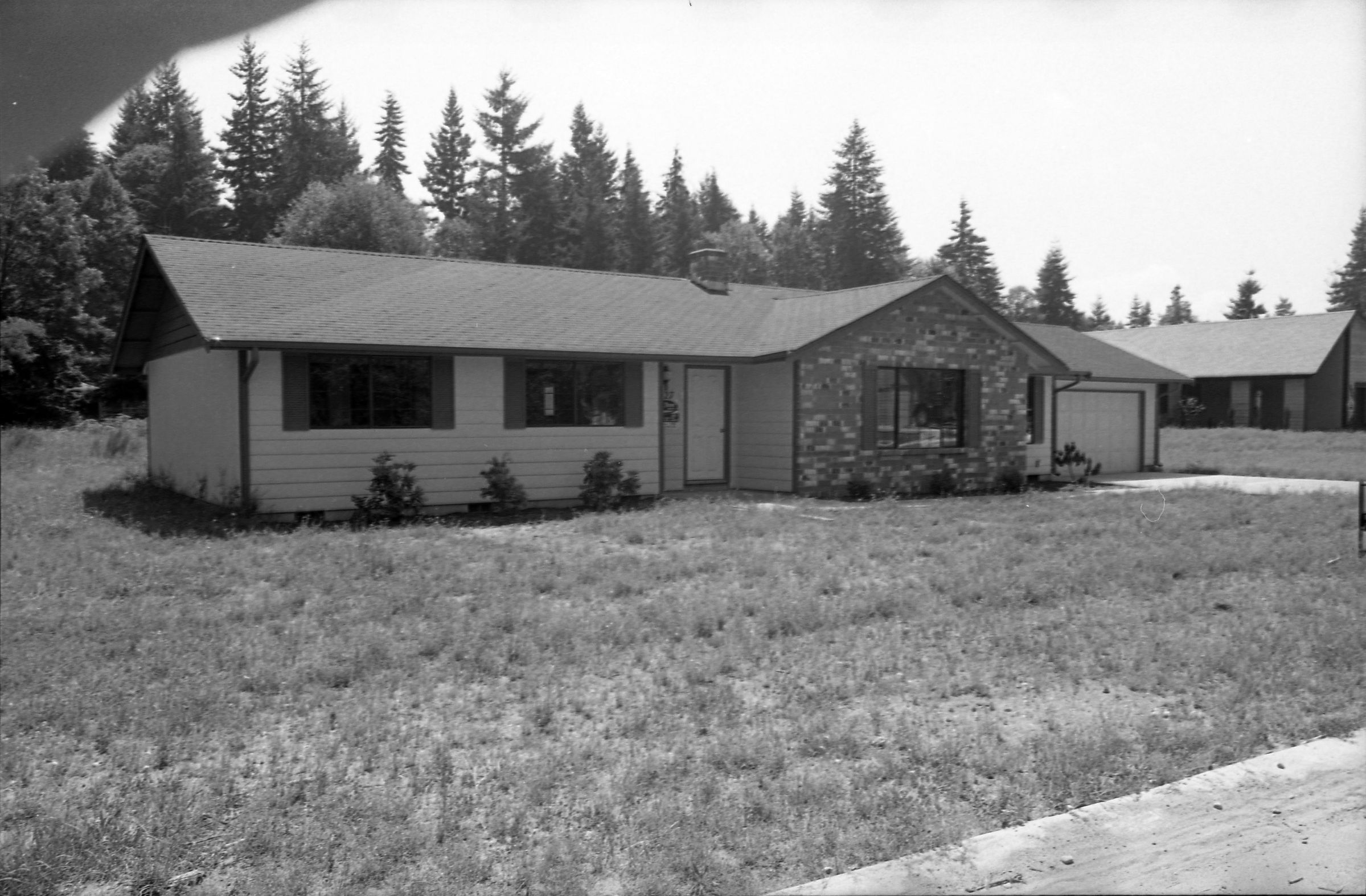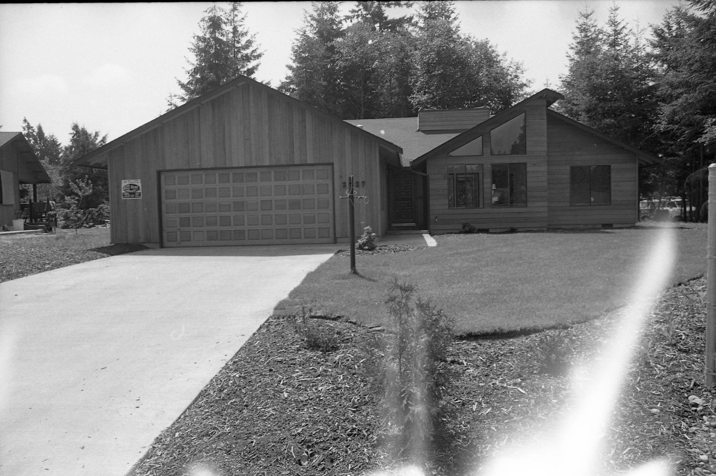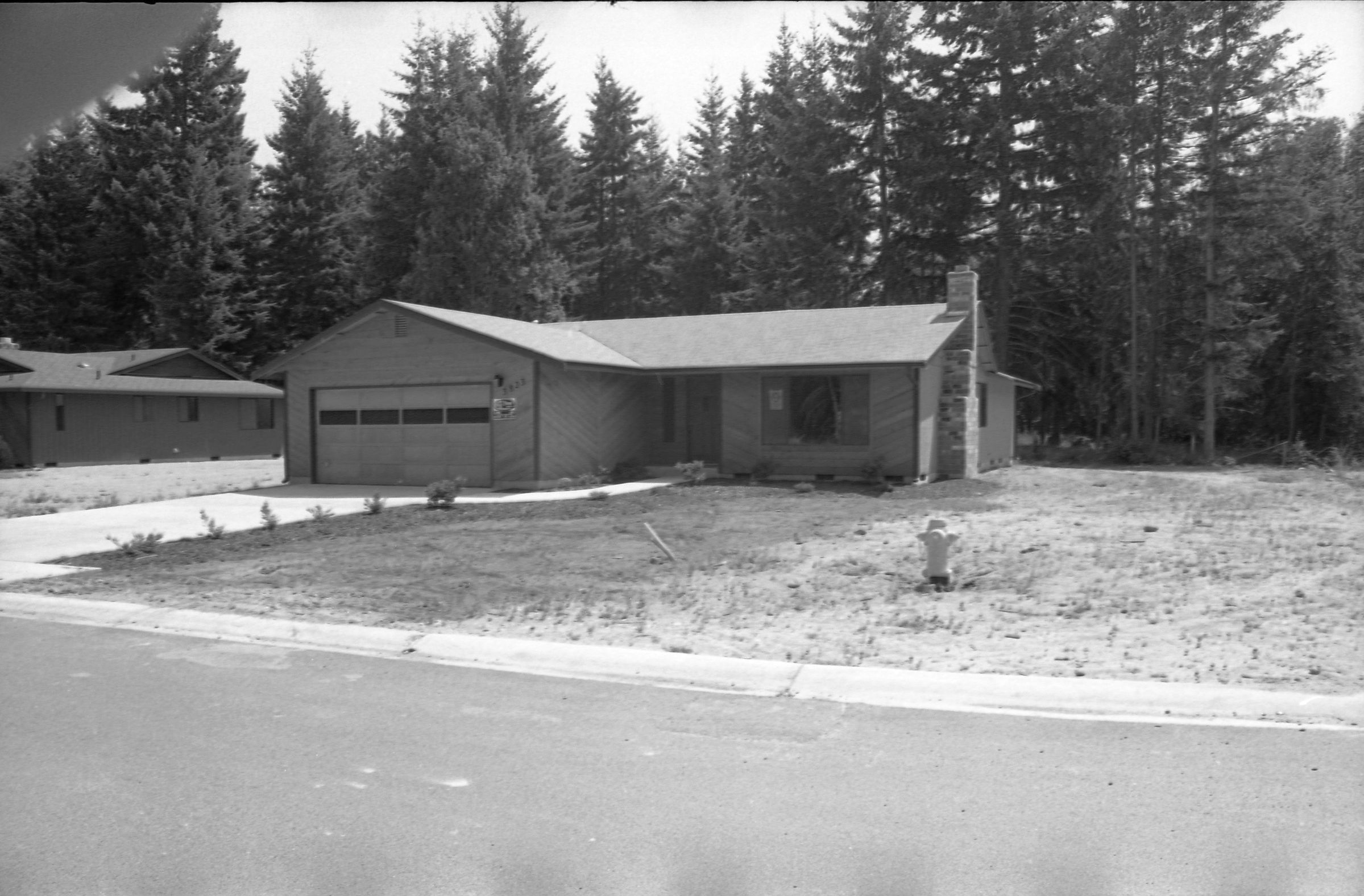 Real Estate, 1979. These four black and white film negative strips were created for the Lacey Leader newspaper. These images show exterior shots of houses.Made/Created