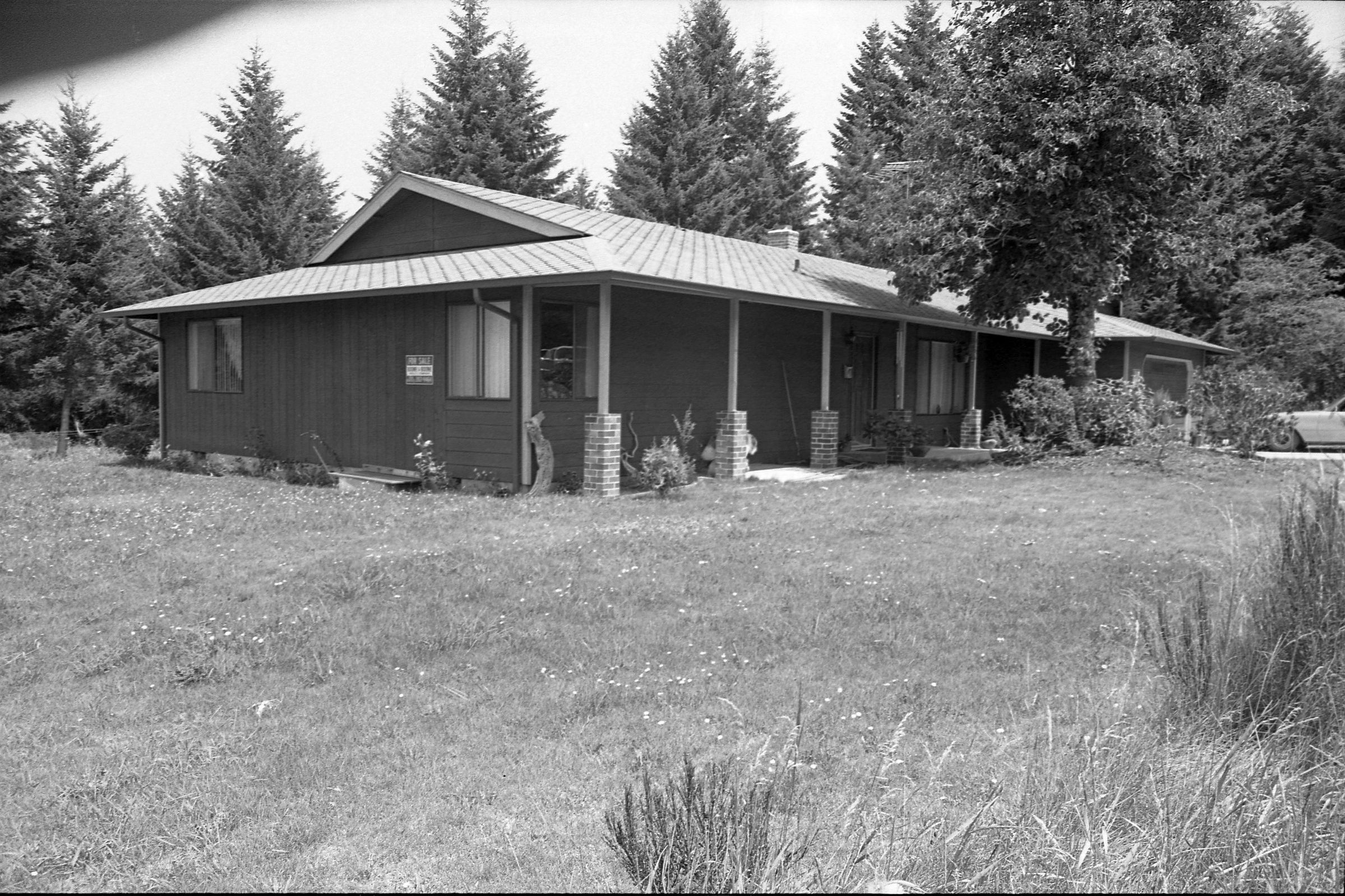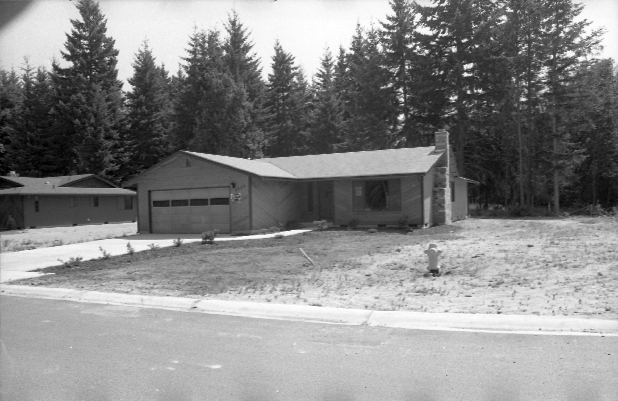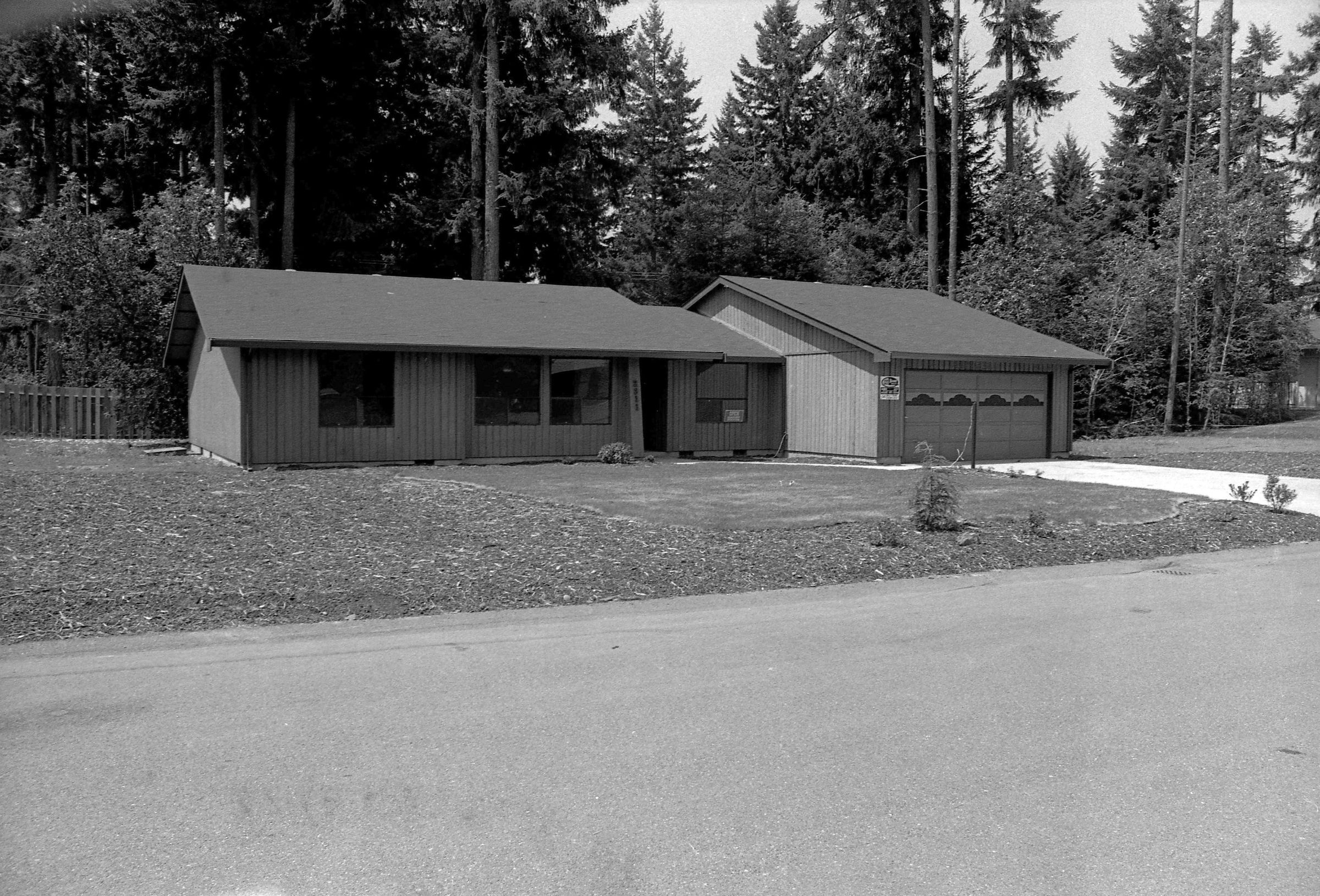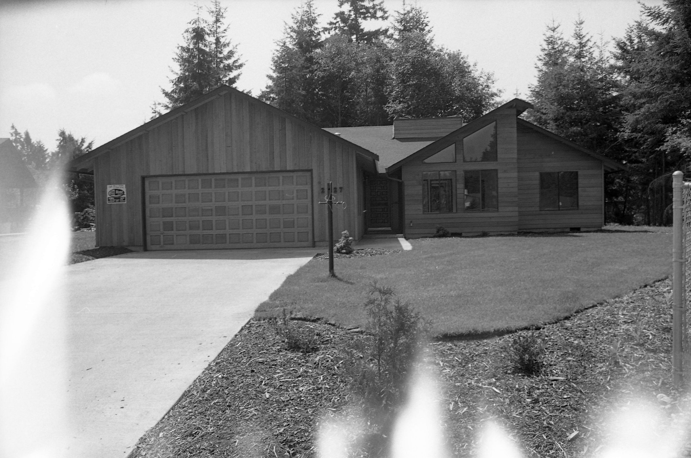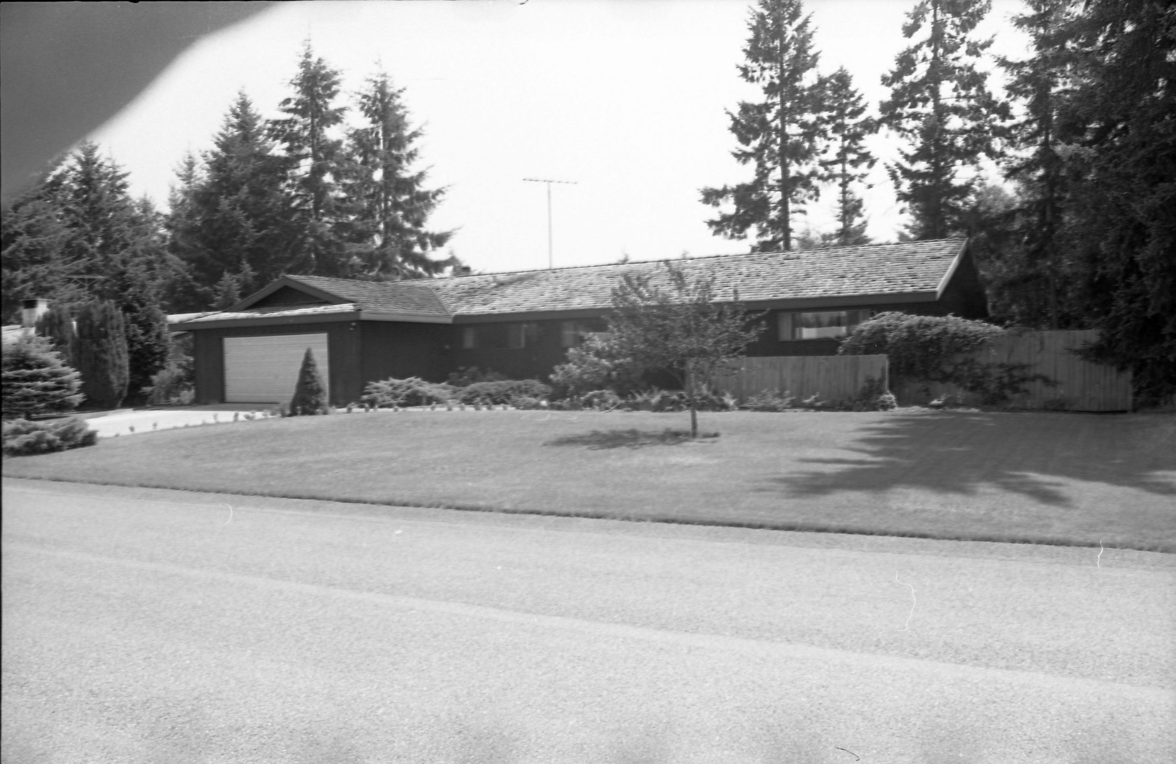 Real Estate, 1979. These four black and white film negative strips were created for the Lacey Leader newspaper. These images show exterior shots of houses.Made/Created