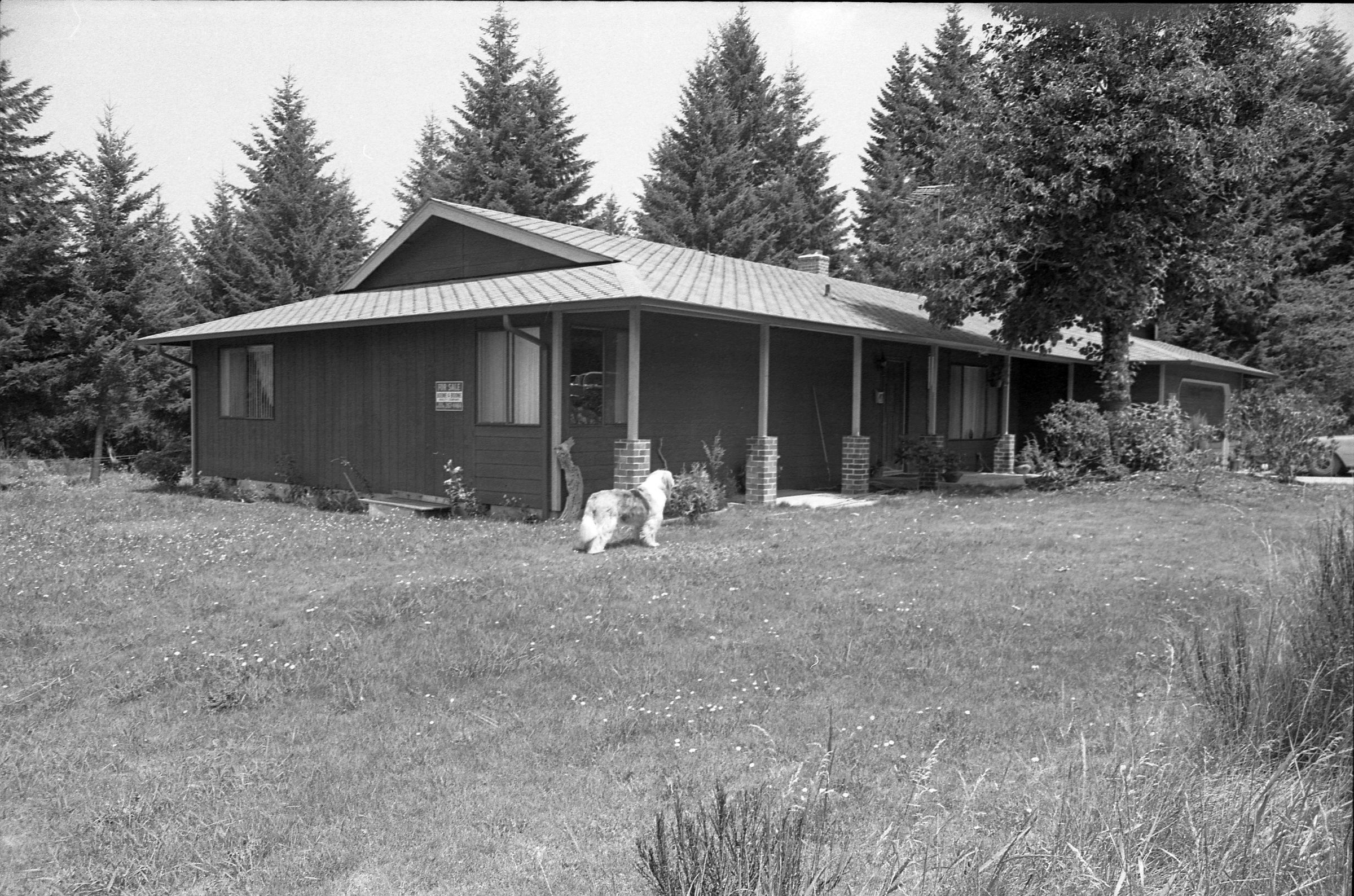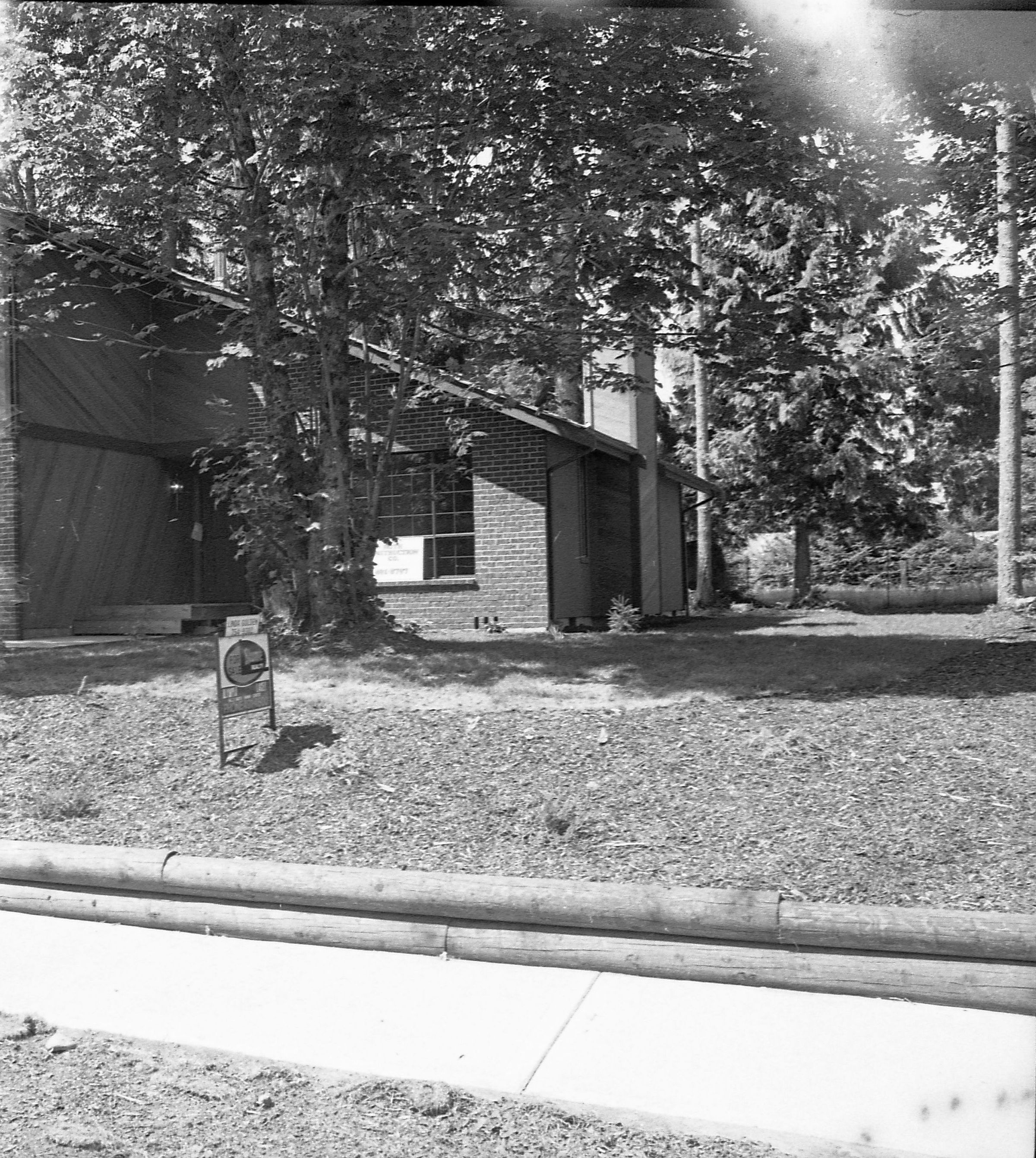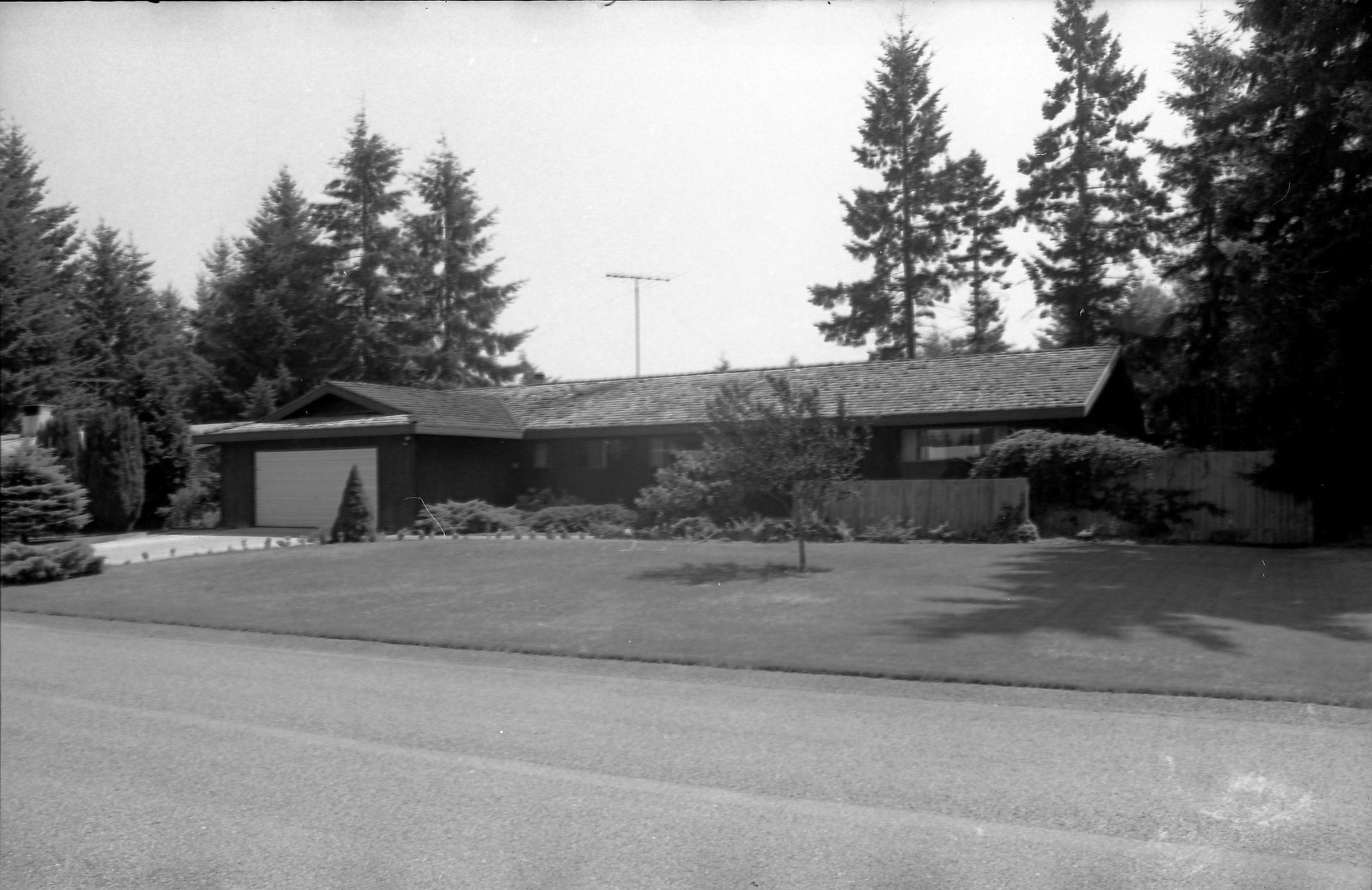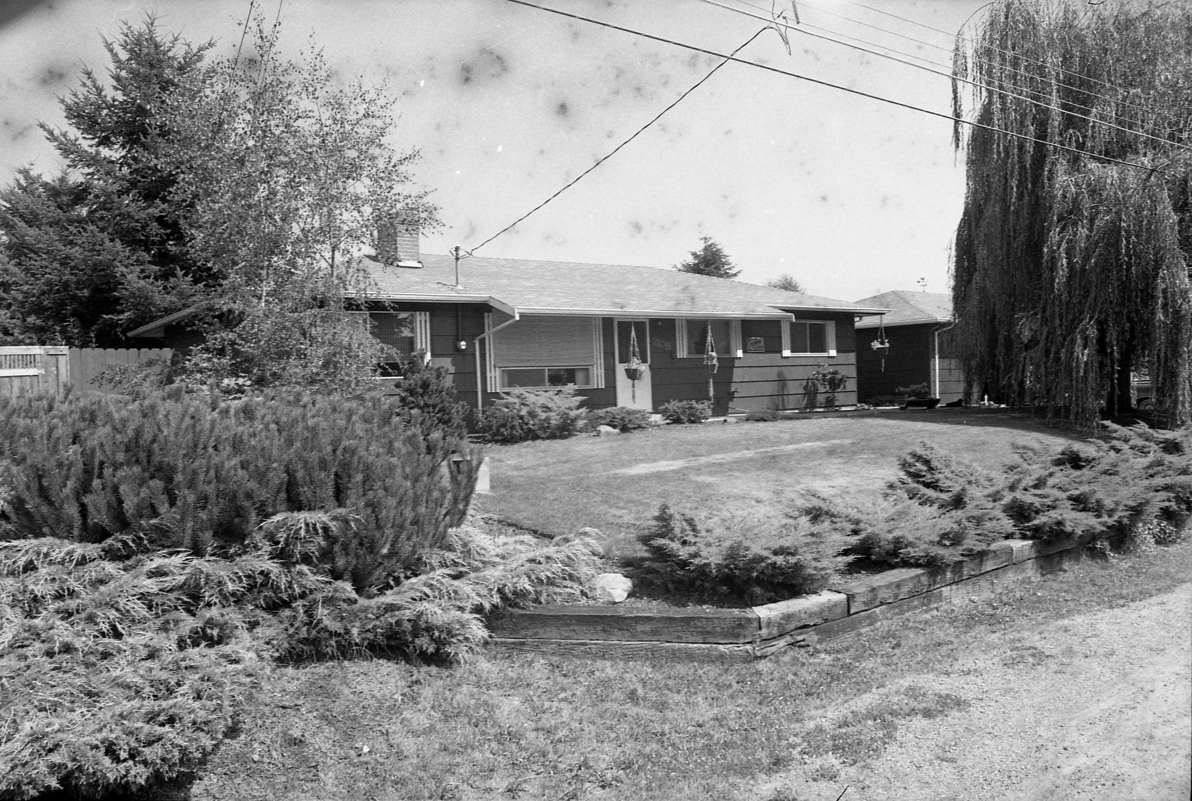 Real Estate, 1979. These four black and white film negative strips were created for the Lacey Leader newspaper. These images show exterior shots of houses.Made/Created