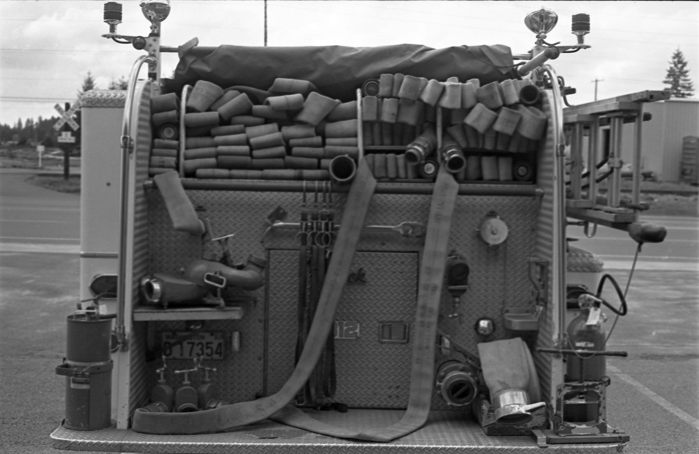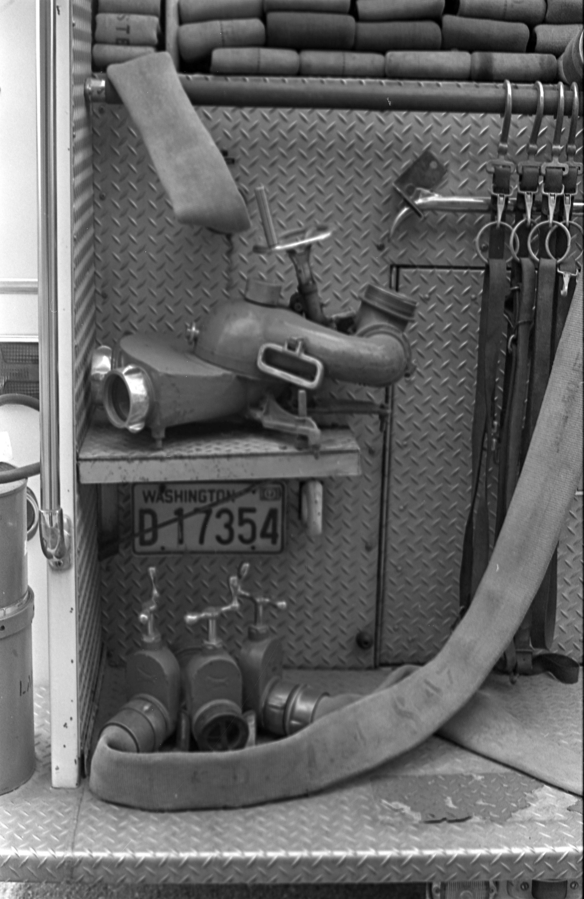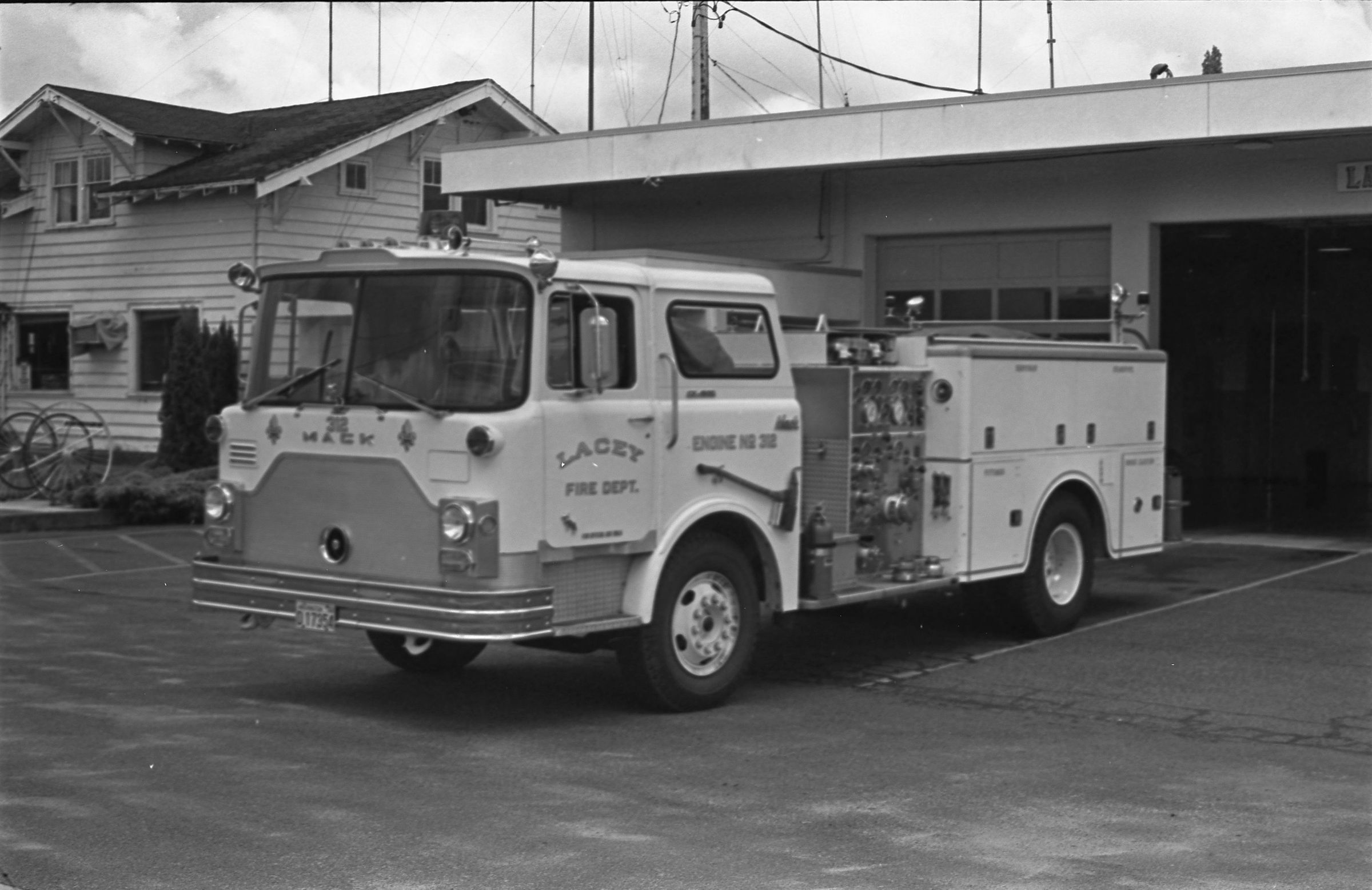 Lacey Fire Department. Unknown date. These seven black and white negative strips were created for the Lacey Leader newspaper. They depict fire department employees and equipment.Made/Created