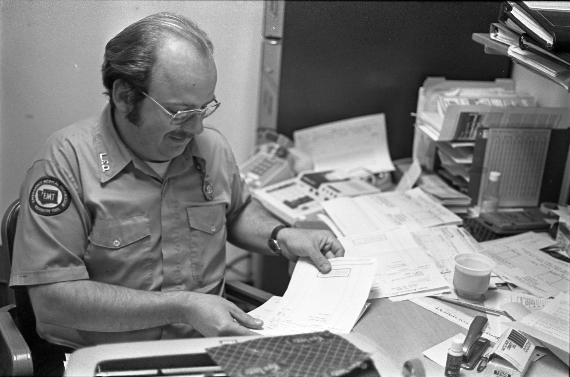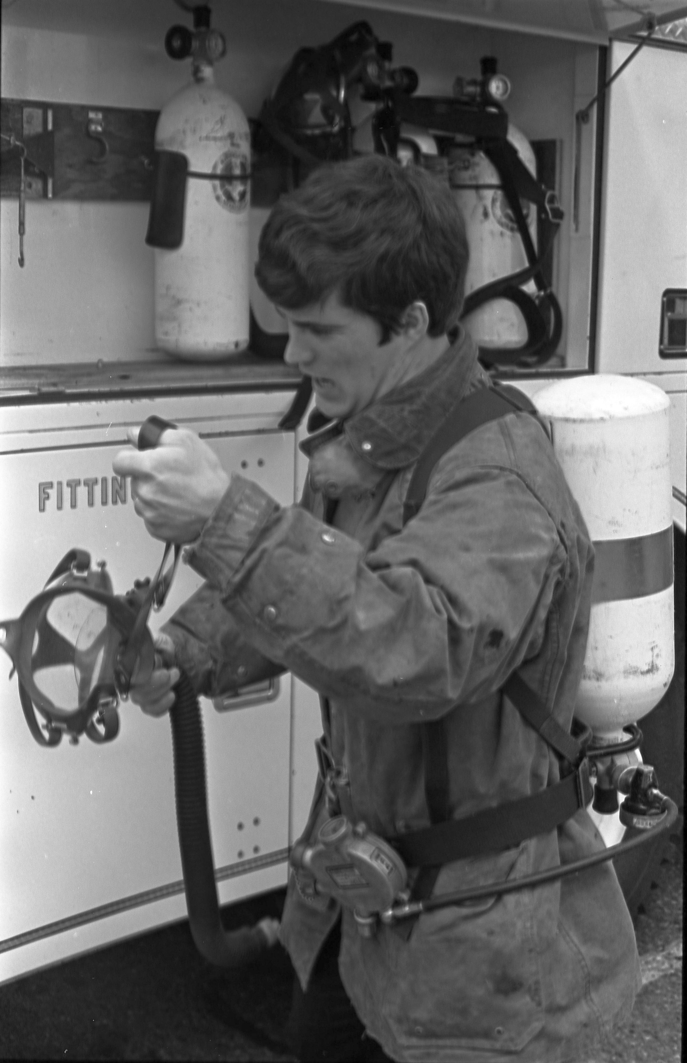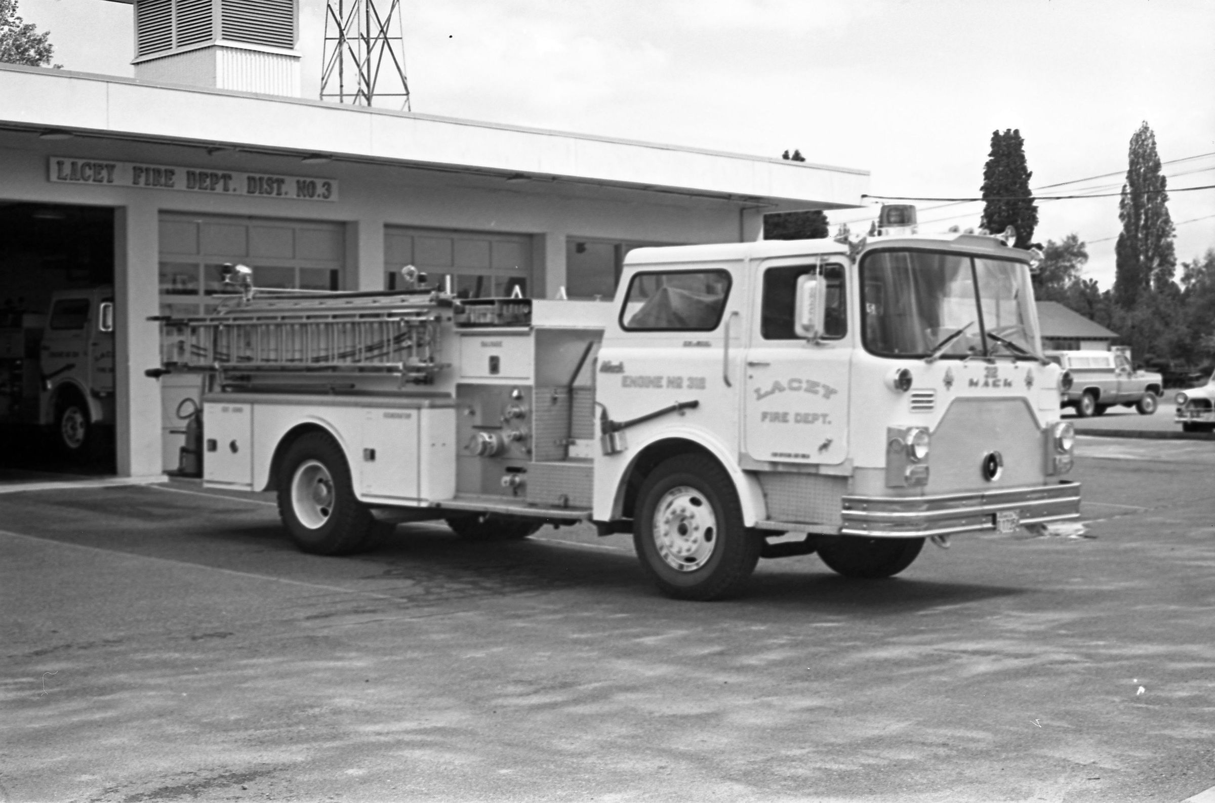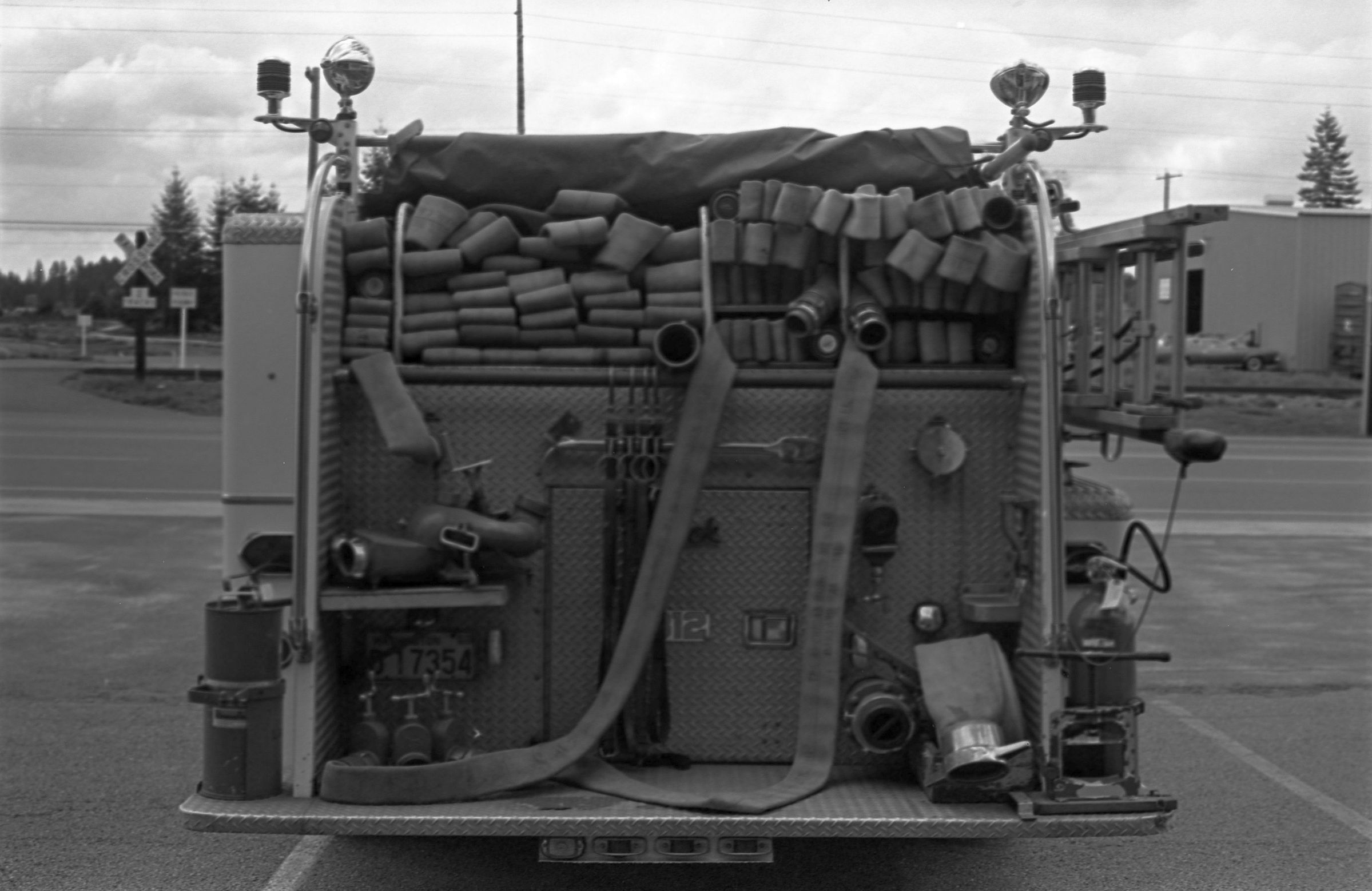 Lacey Fire Department. Unknown date. These seven black and white negative strips were created for the Lacey Leader newspaper. They depict fire department employees and equipment.Made/Created