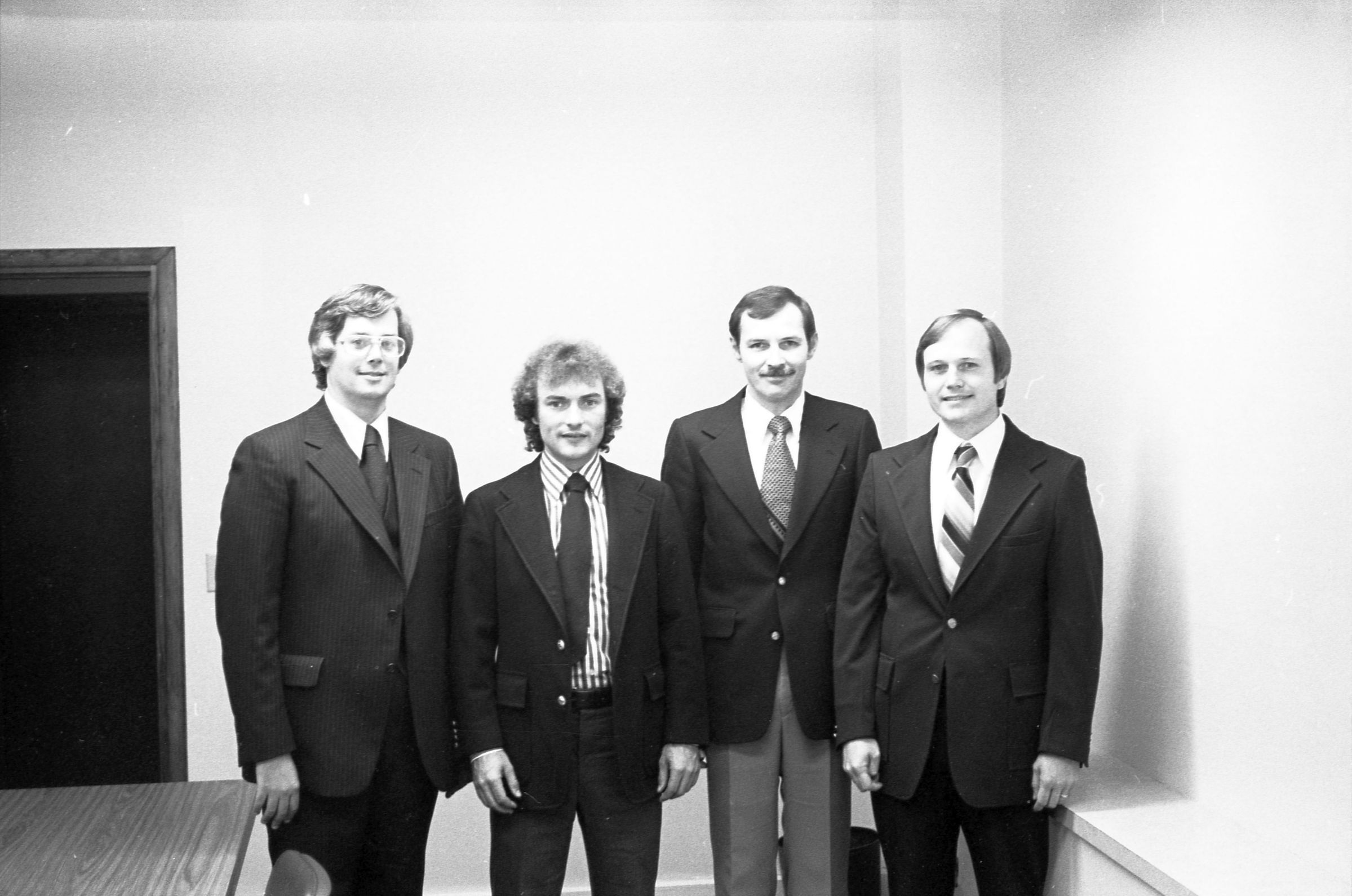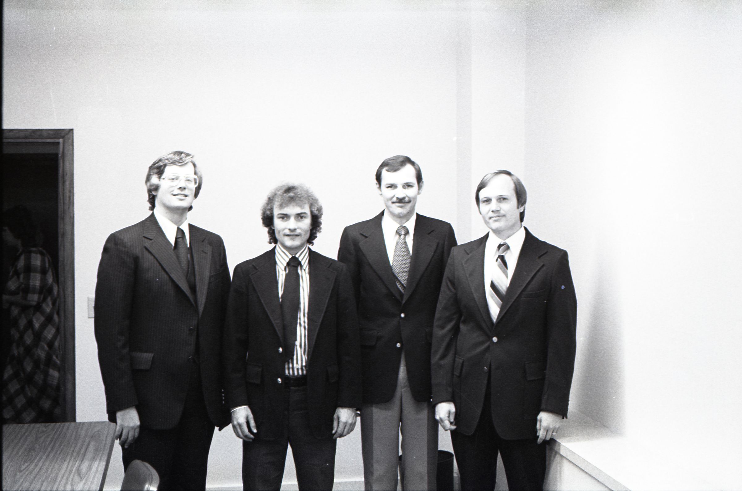 Neal Woody, John Clees, Ralph Drewer, Charles McSwater, Jim Frost; unknown date. These four black and white negative film strips were created for the Lacey Leader newspaper. They depict several men posed alone and together.Made/Created
