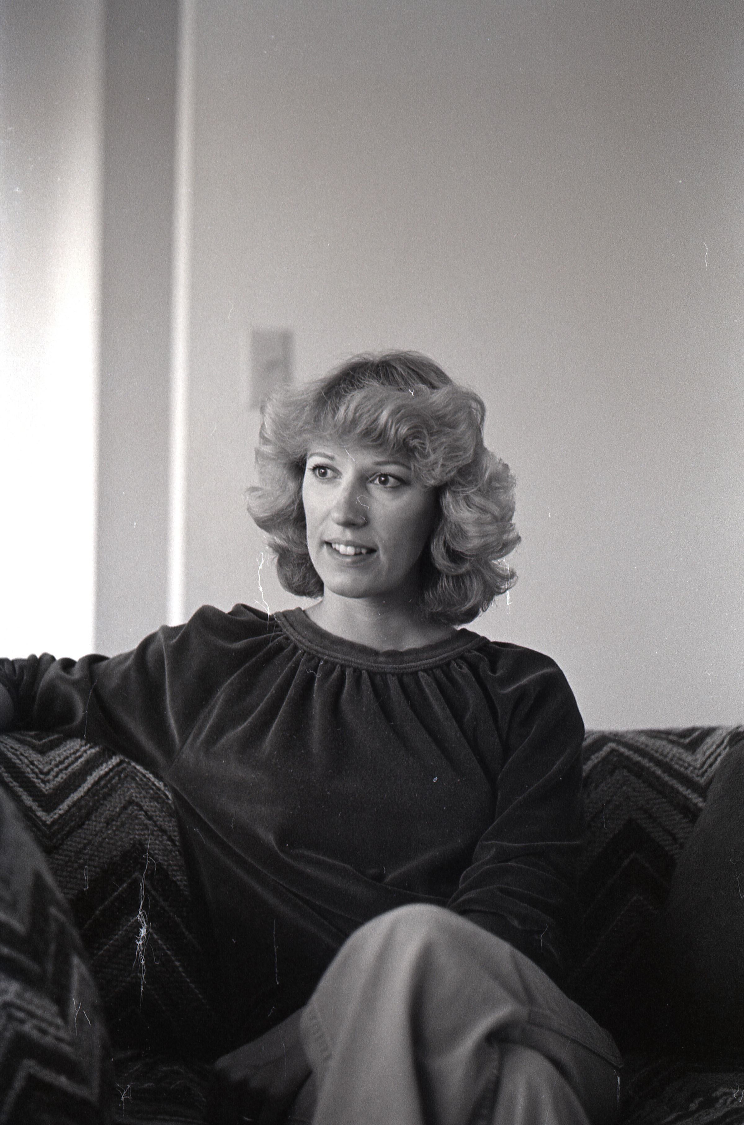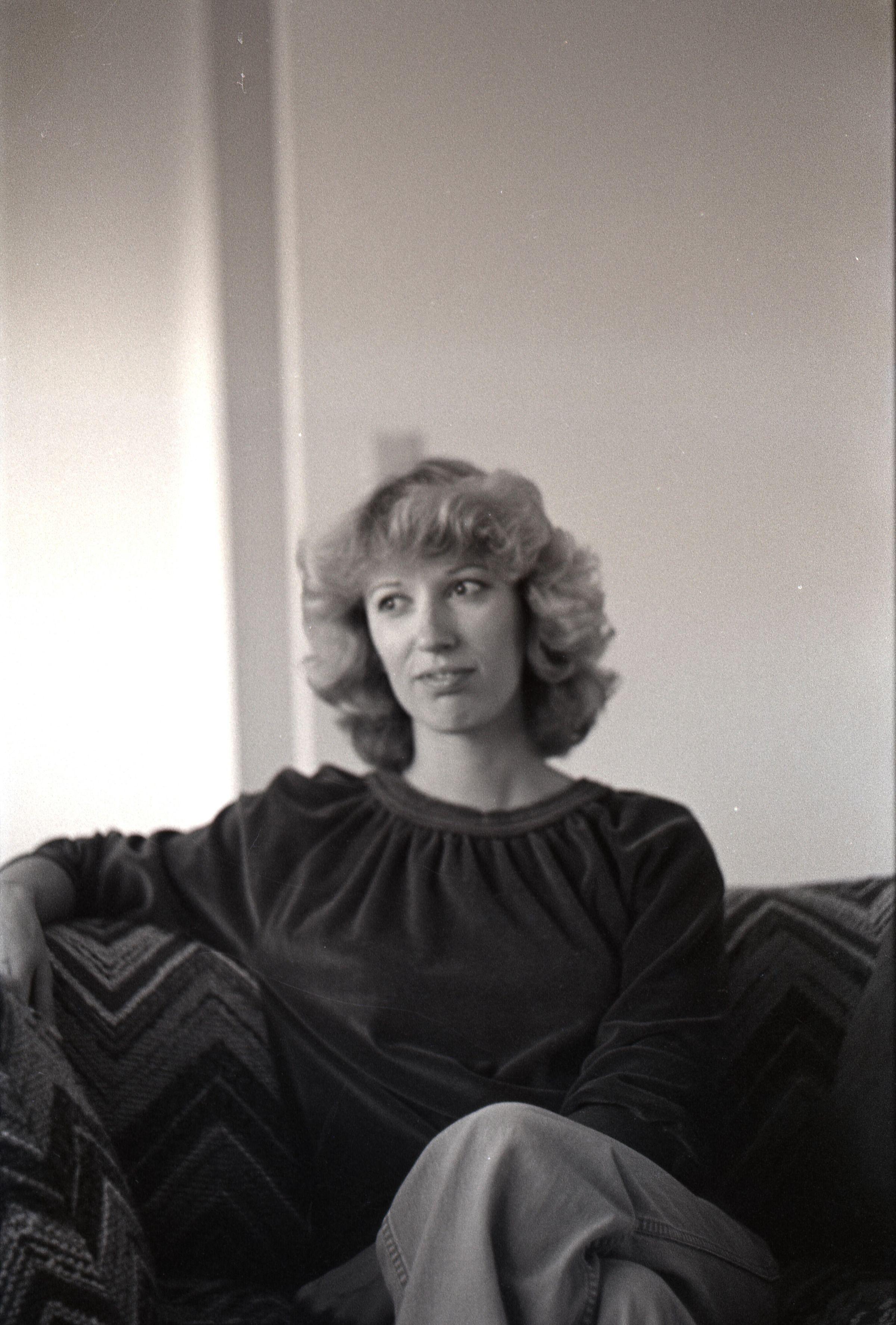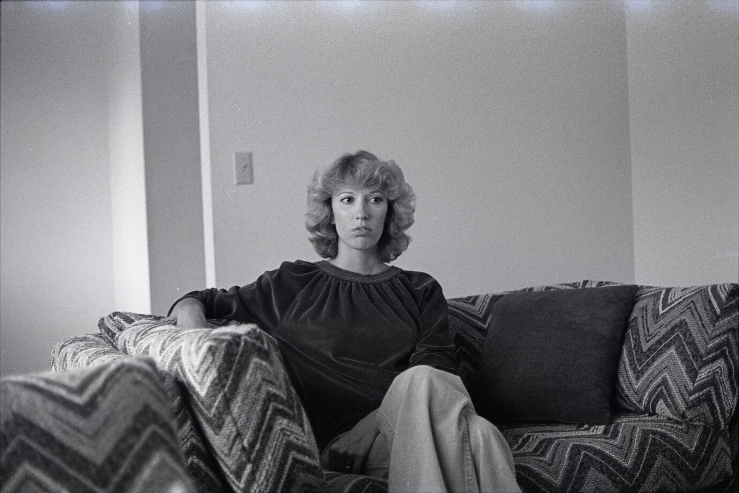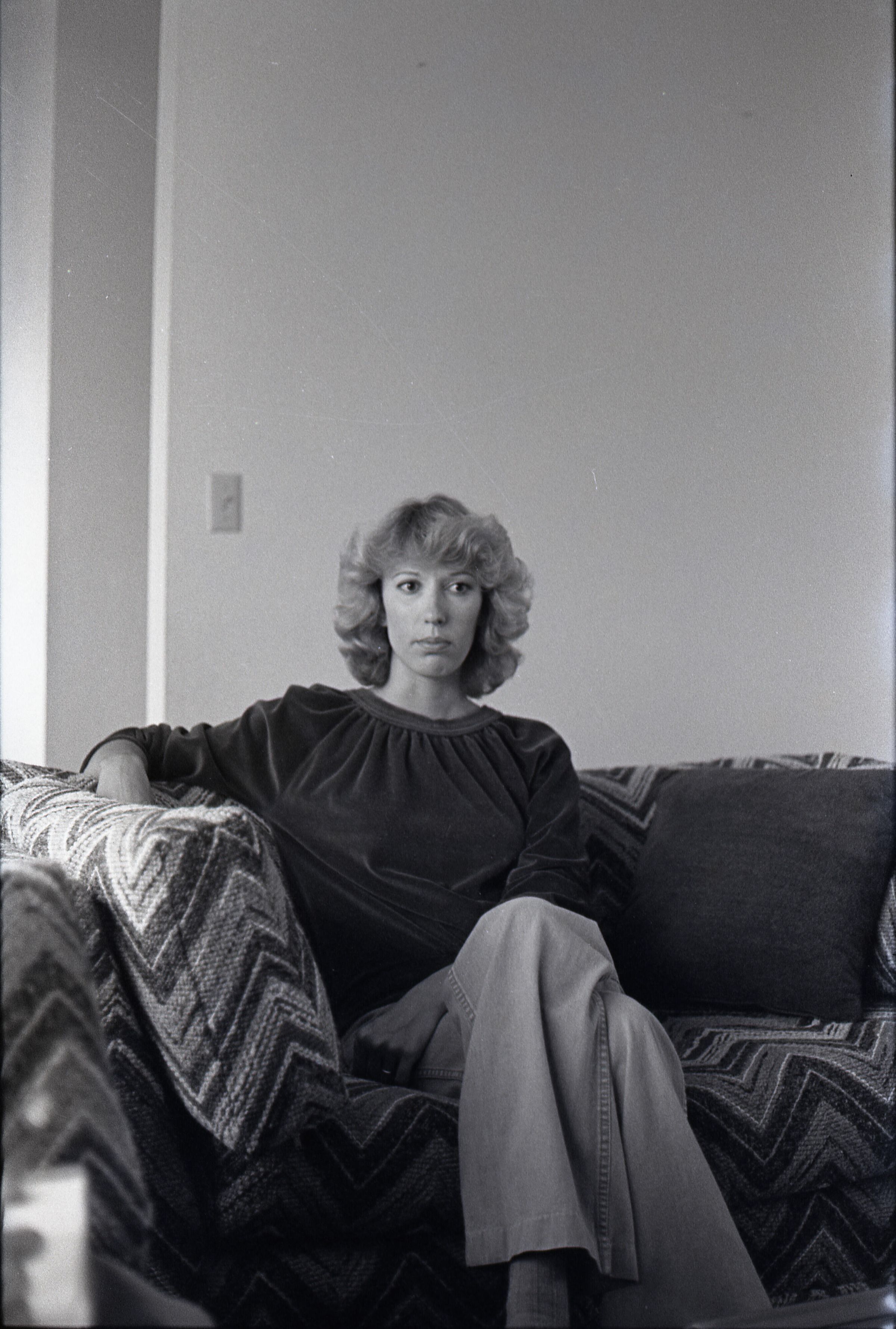 Linda Honeywell, Unknown Date. These two black and white film negative strips were created for the Lacey Leader newspaper. These images show a woman (Linda Honeywell) seated on a couch.Made/Created
