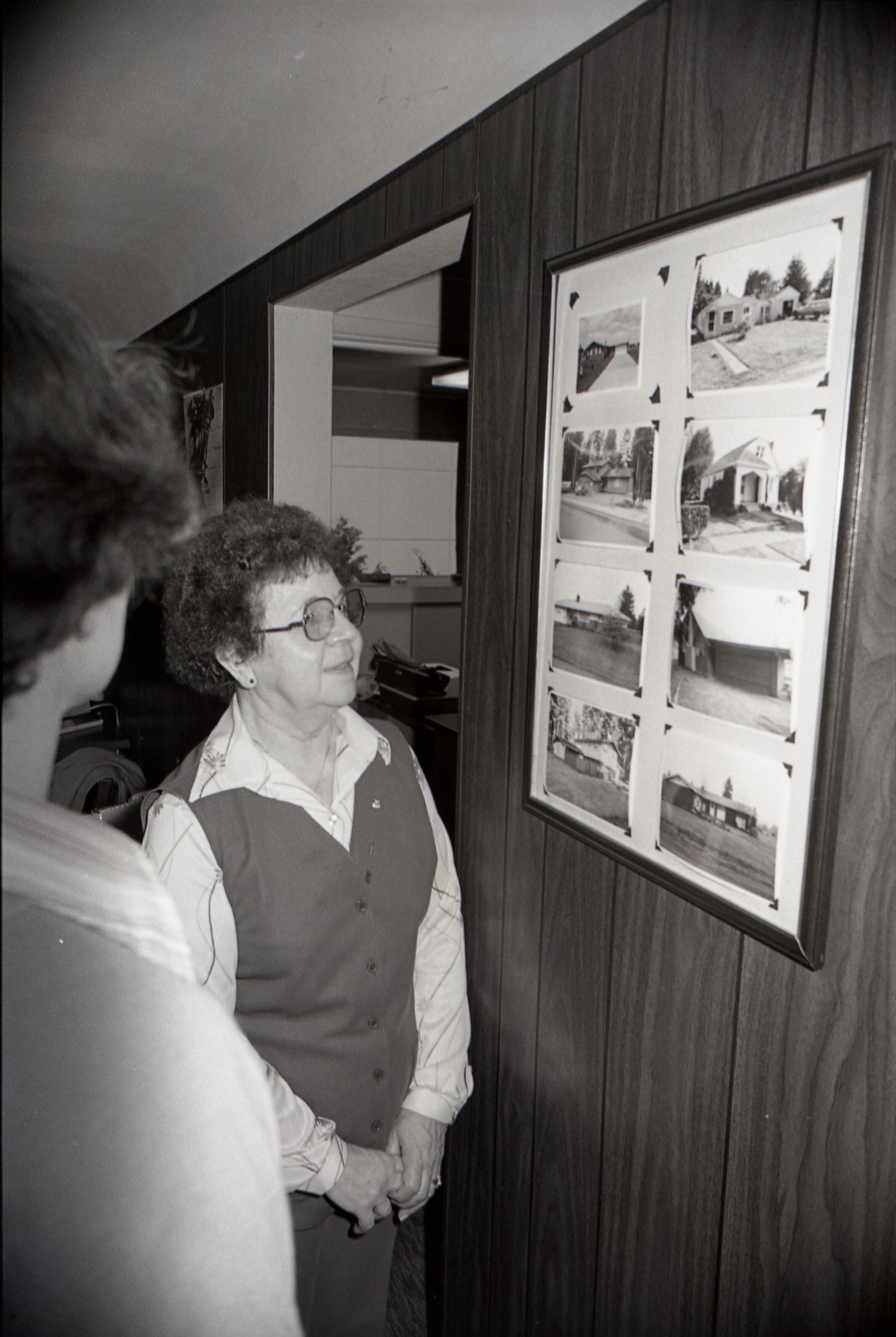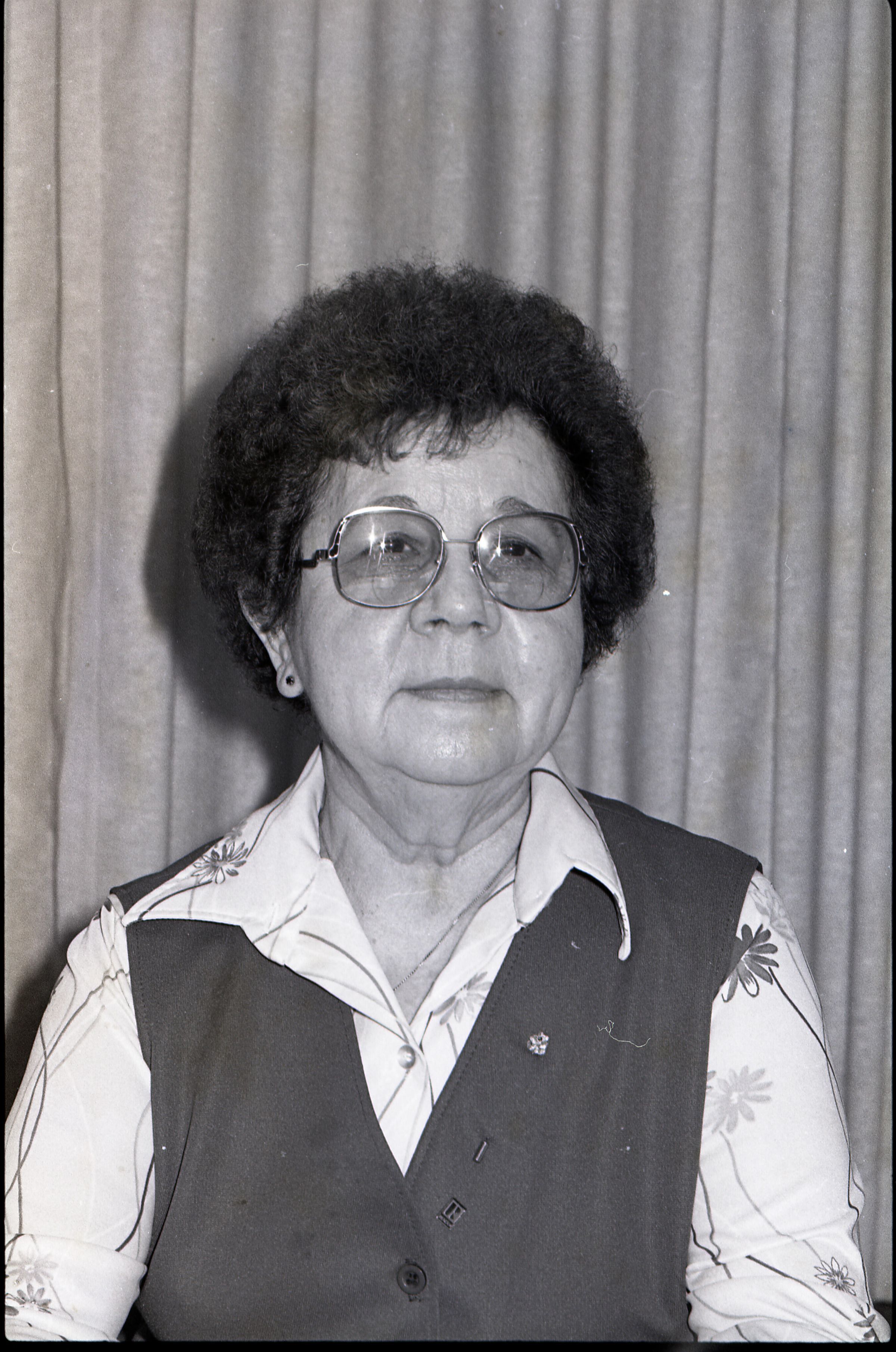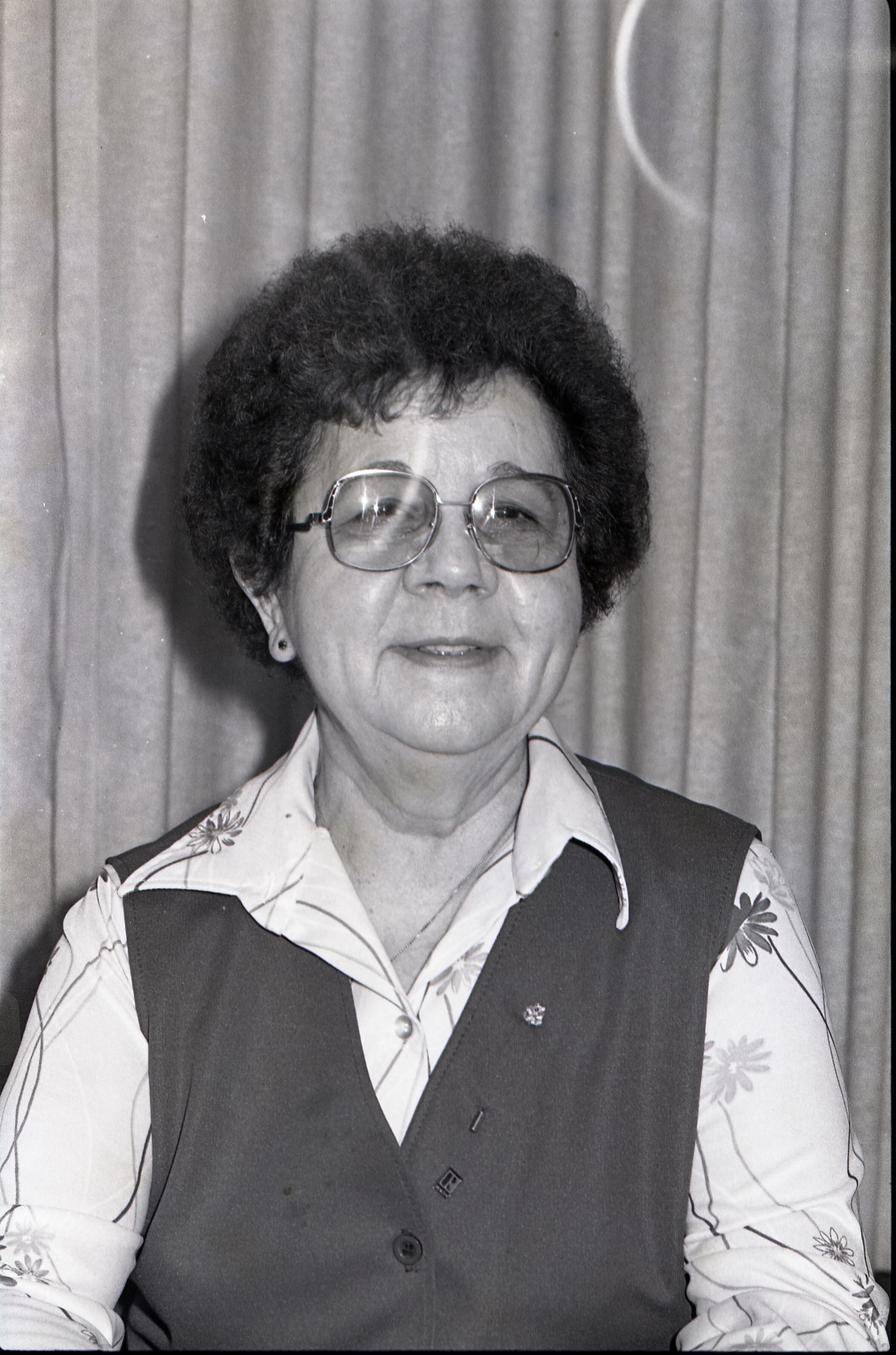 Action Guide Ruth Juono, Lacey Realty, 12-31-1980. These two black and white negative film strips were created for the Lacey Leader newspaper. They depict a woman in glasses and a vest.Made/Created