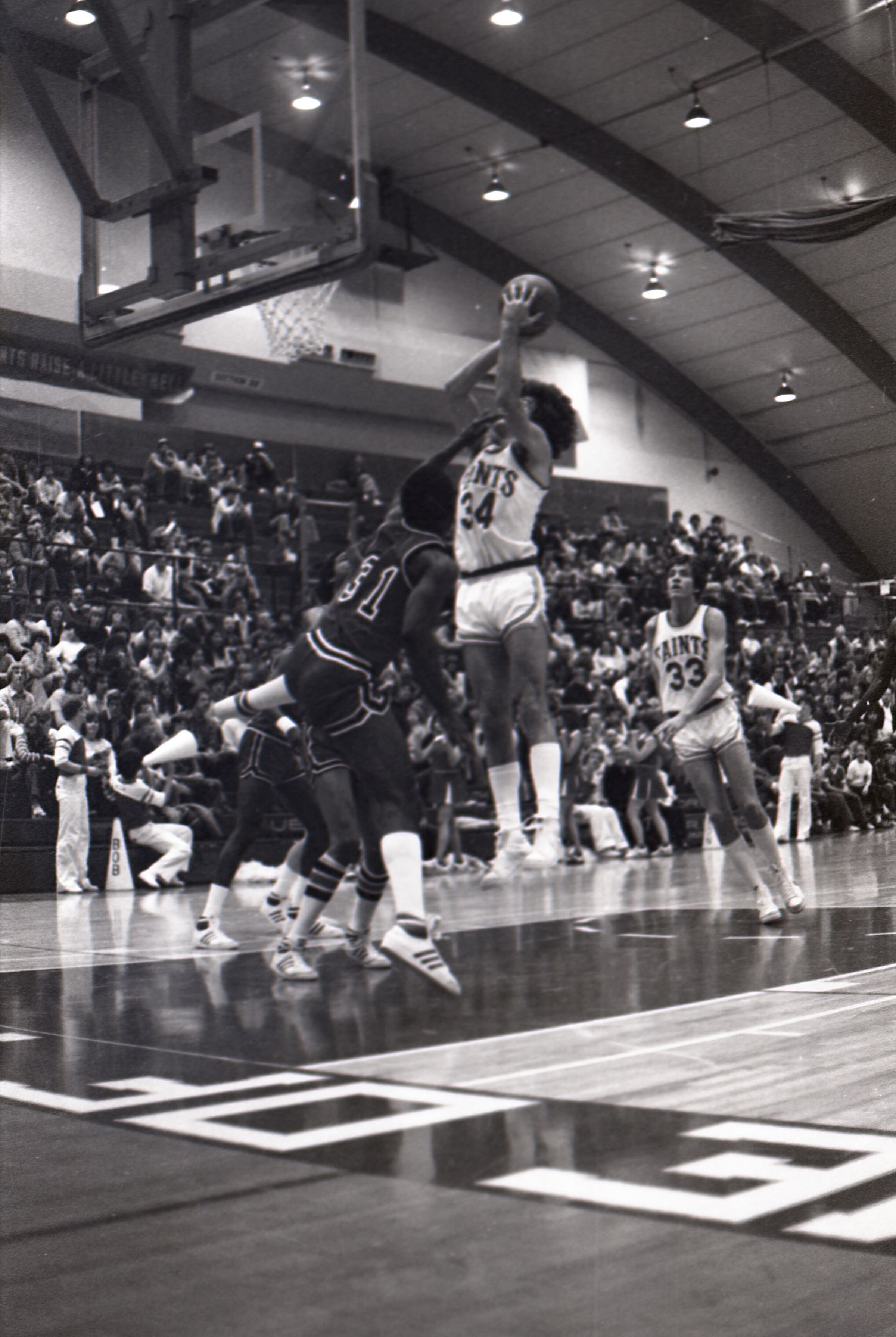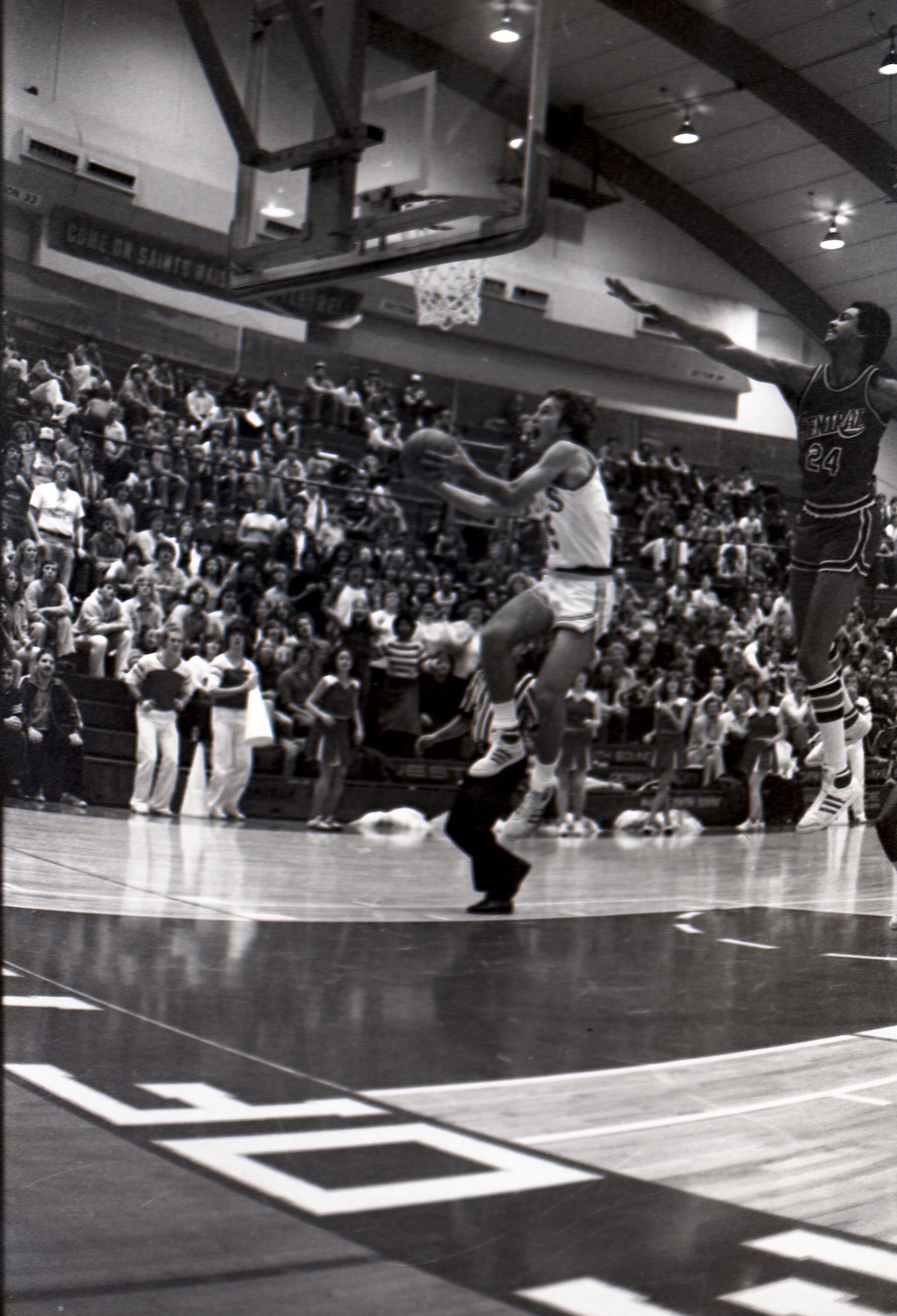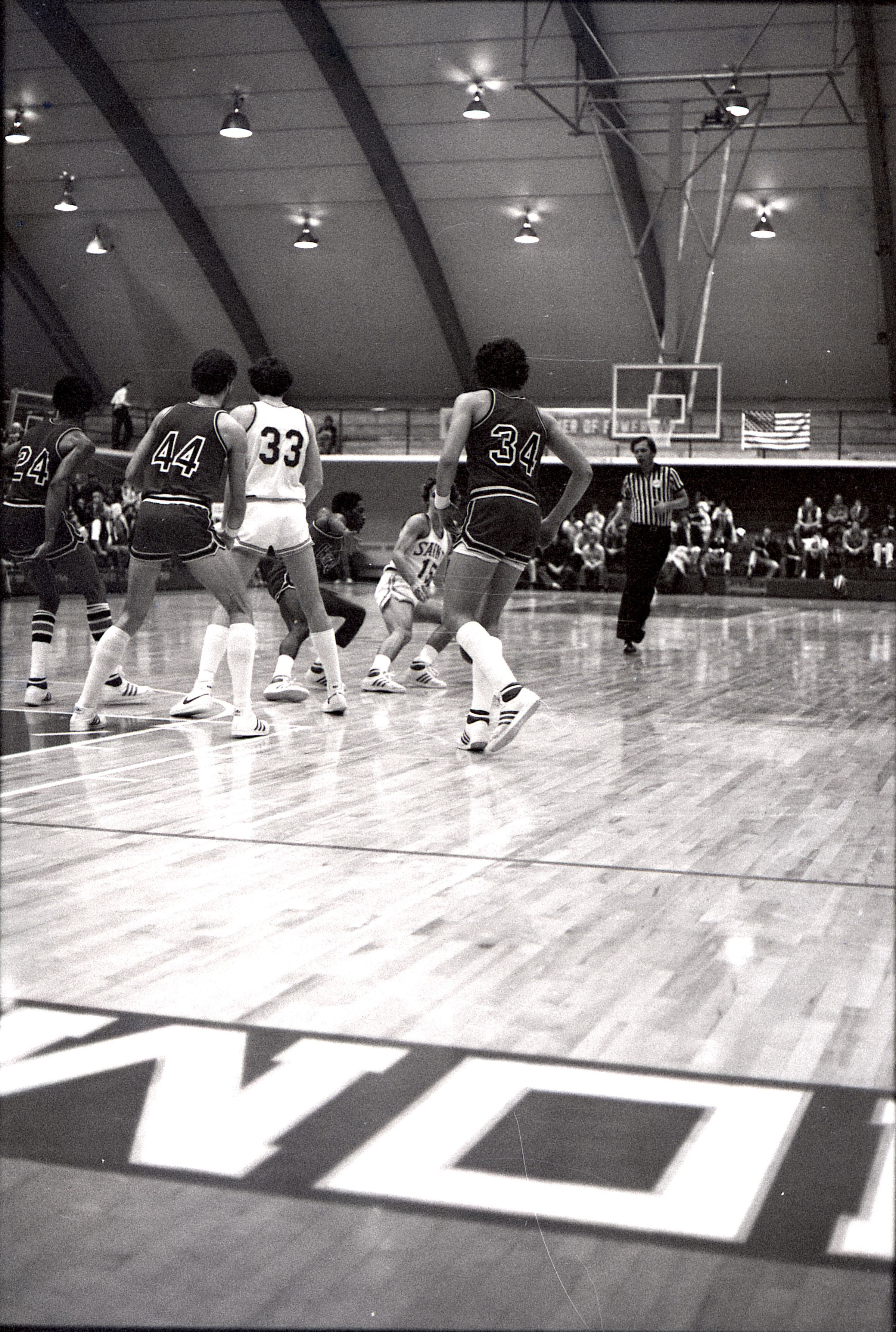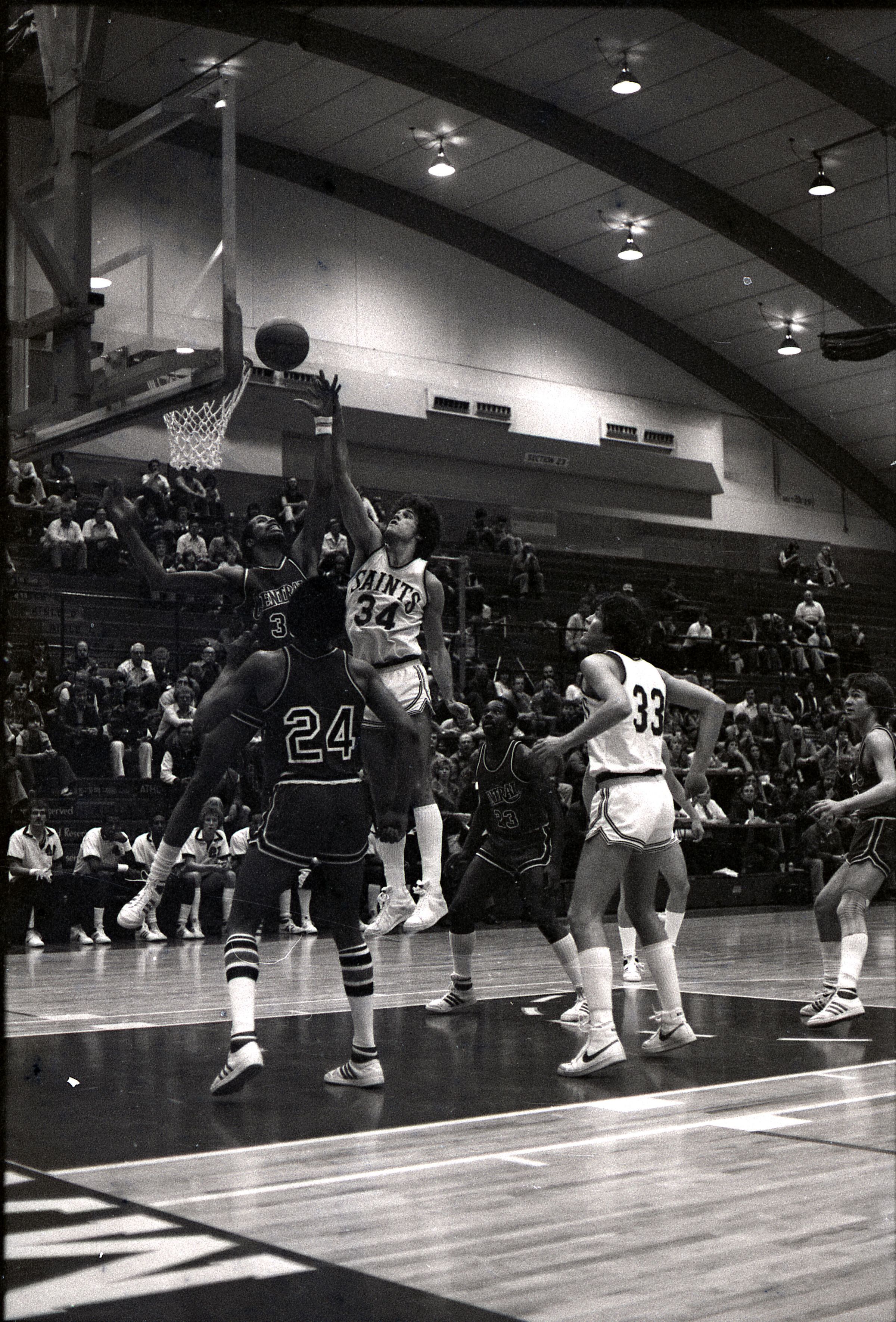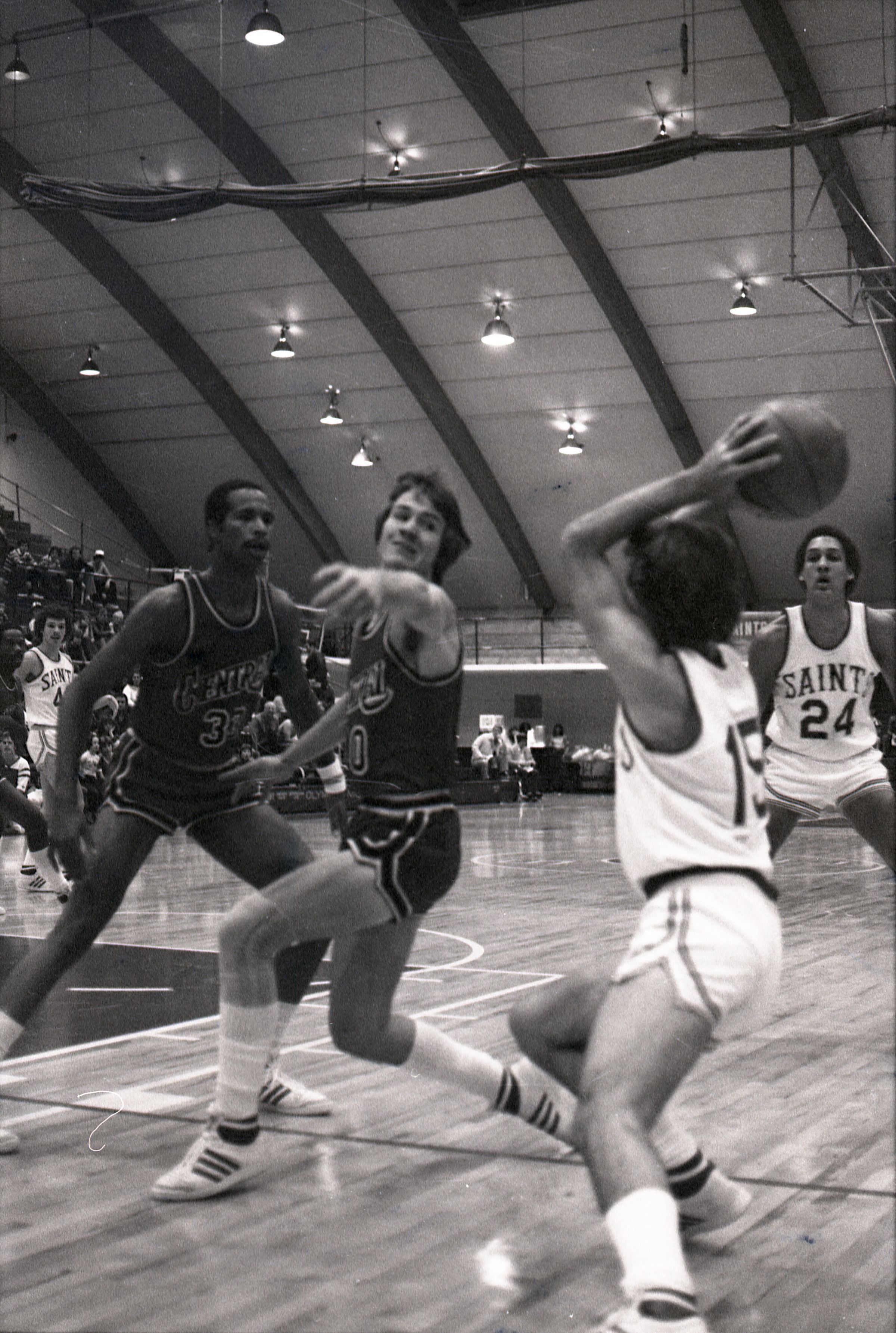Saint Martin's College Basketball, 1980. These seventeen black and white film negative strips were created for the Lacey Leader newspaper.Made/Created