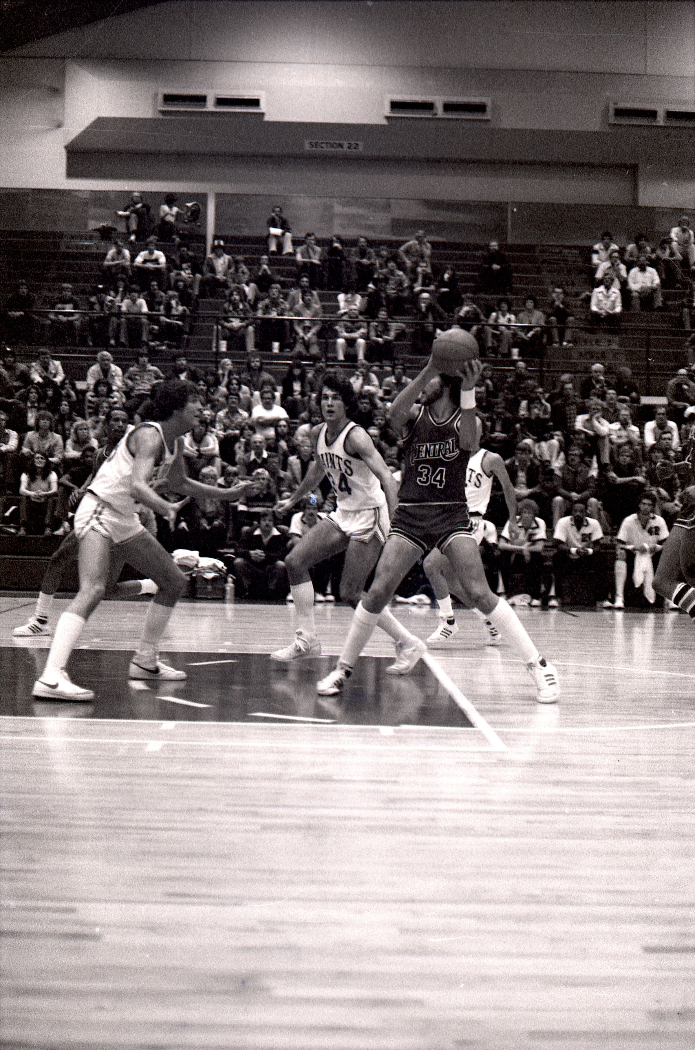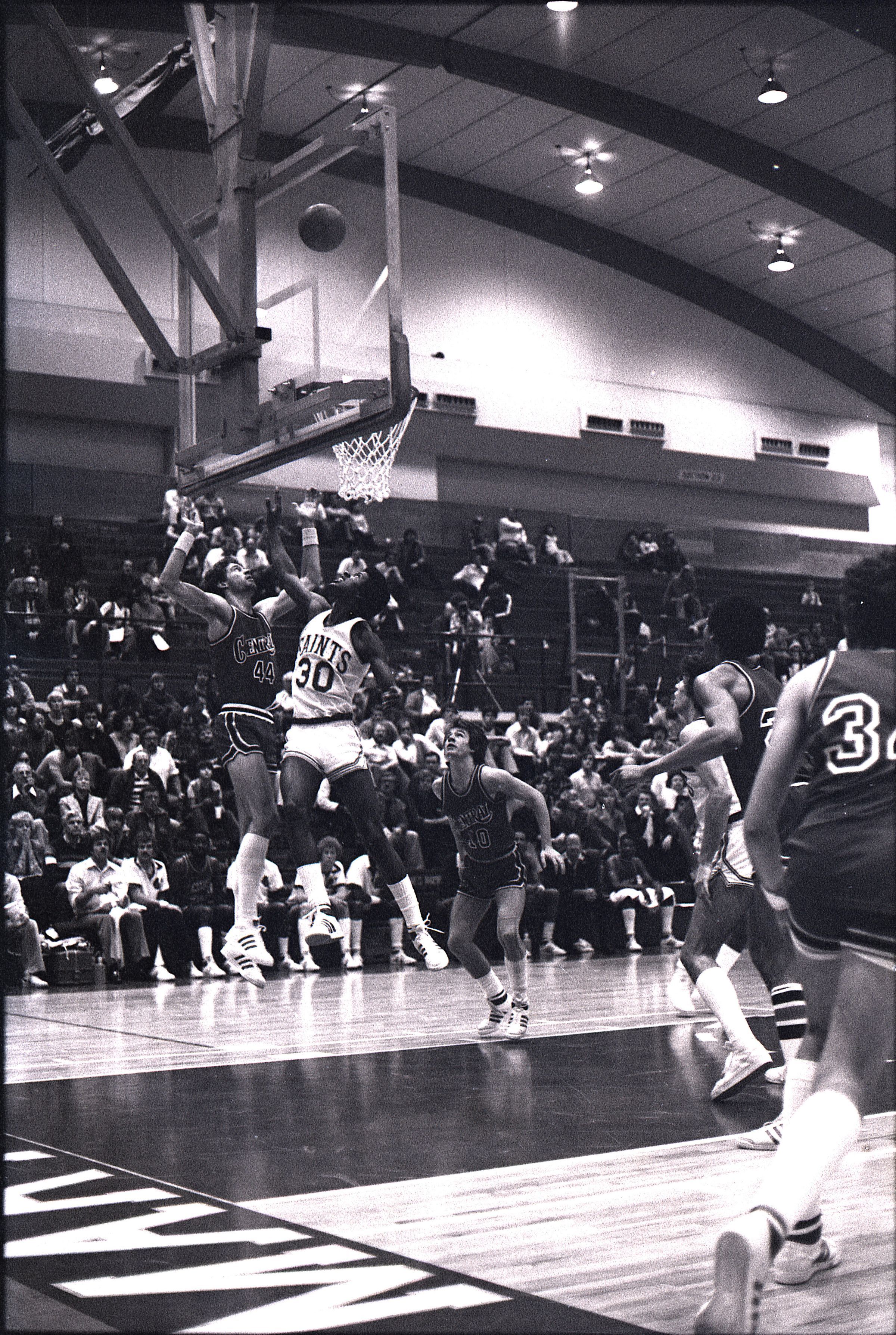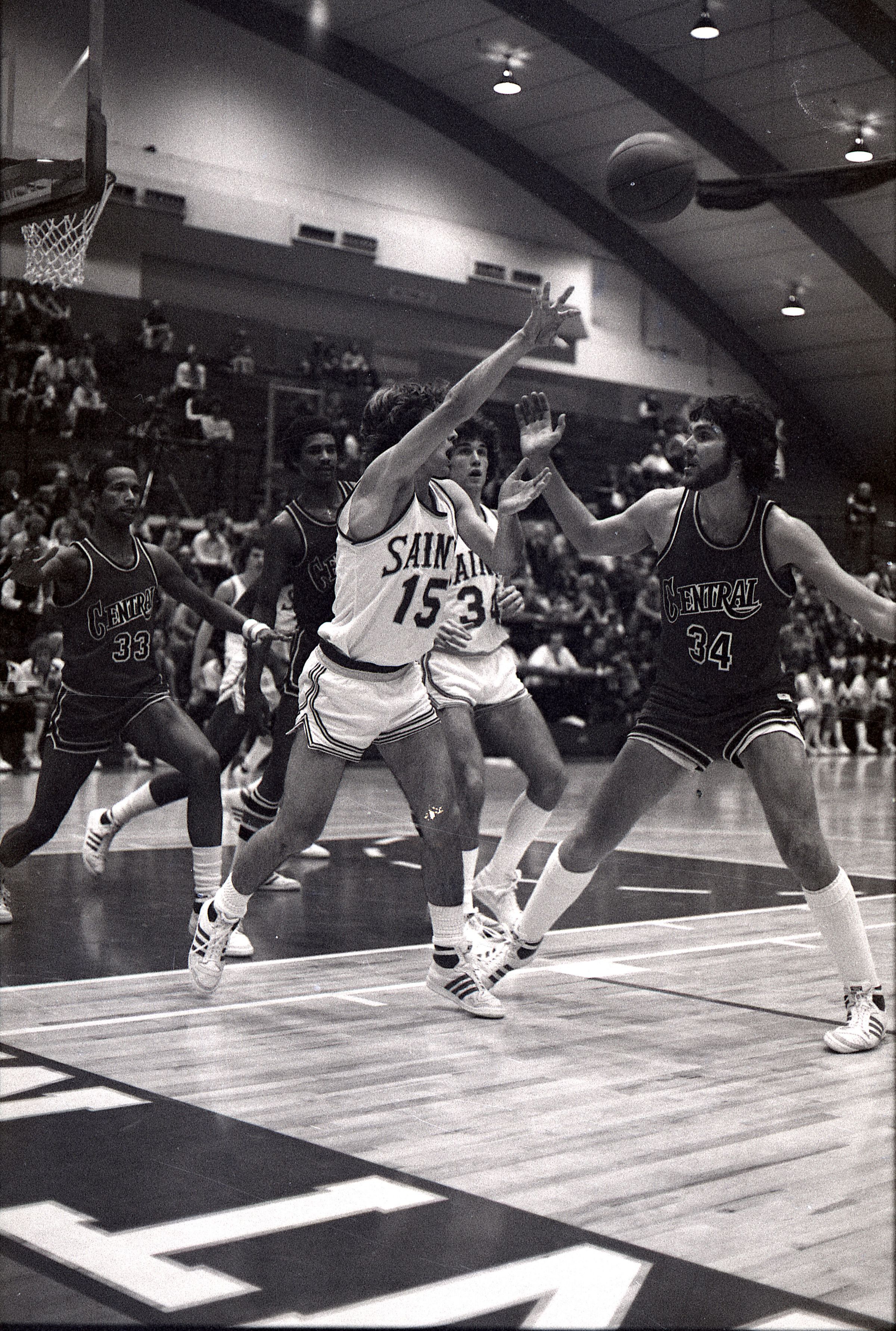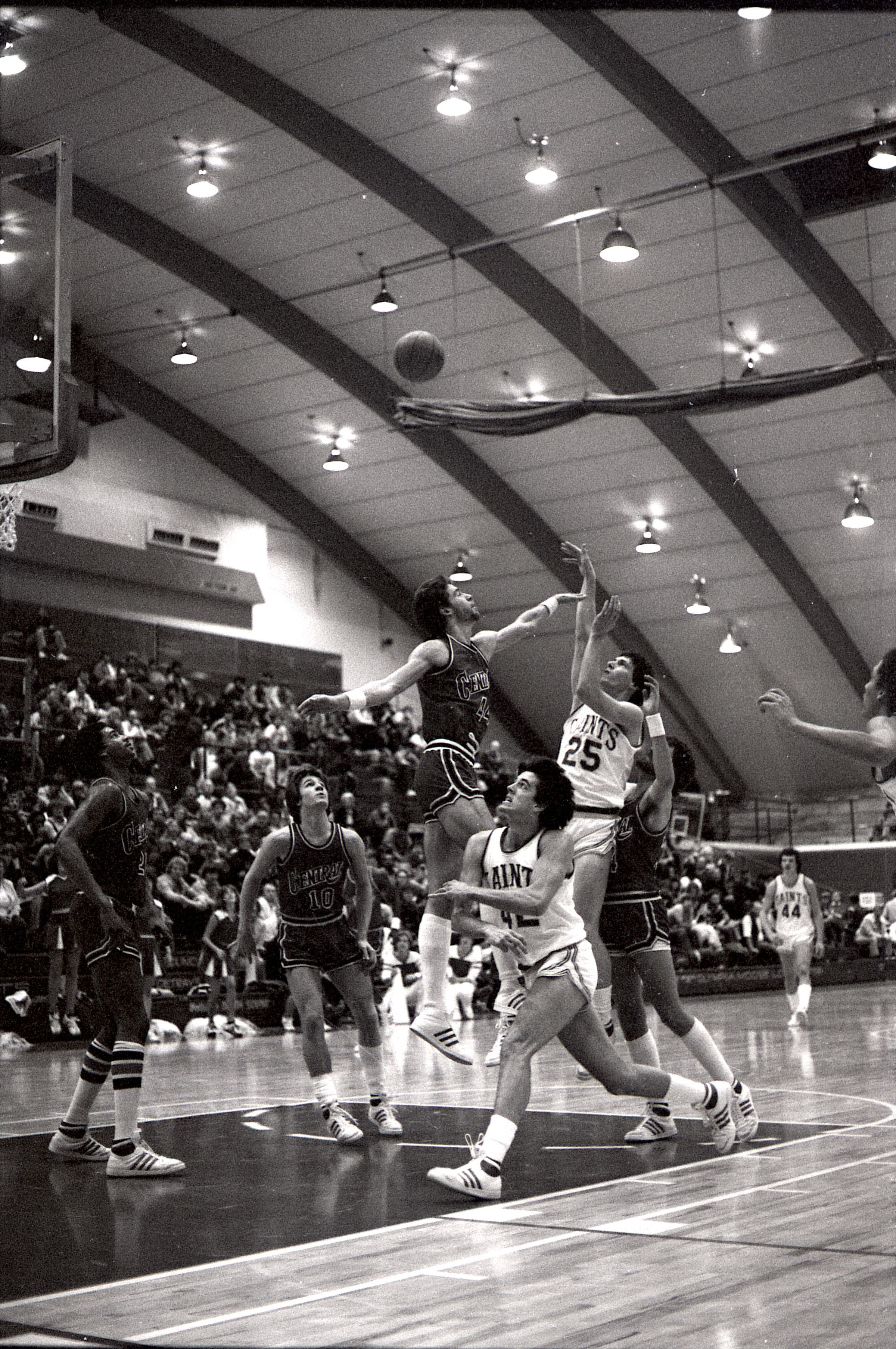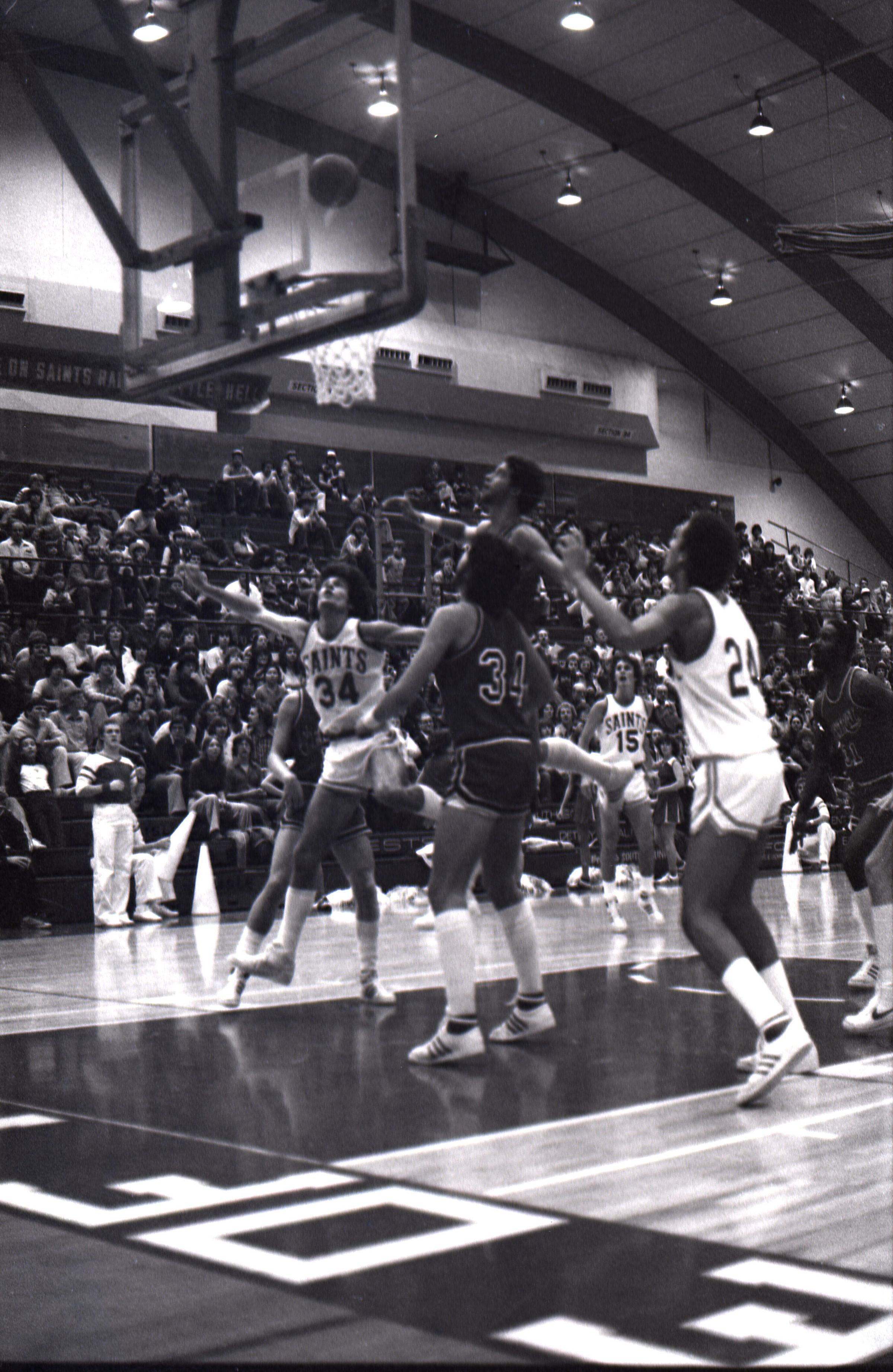 Saint Martin's College Basketball, 1980. These seventeen black and white film negative strips were created for the Lacey Leader newspaper.Made/Created