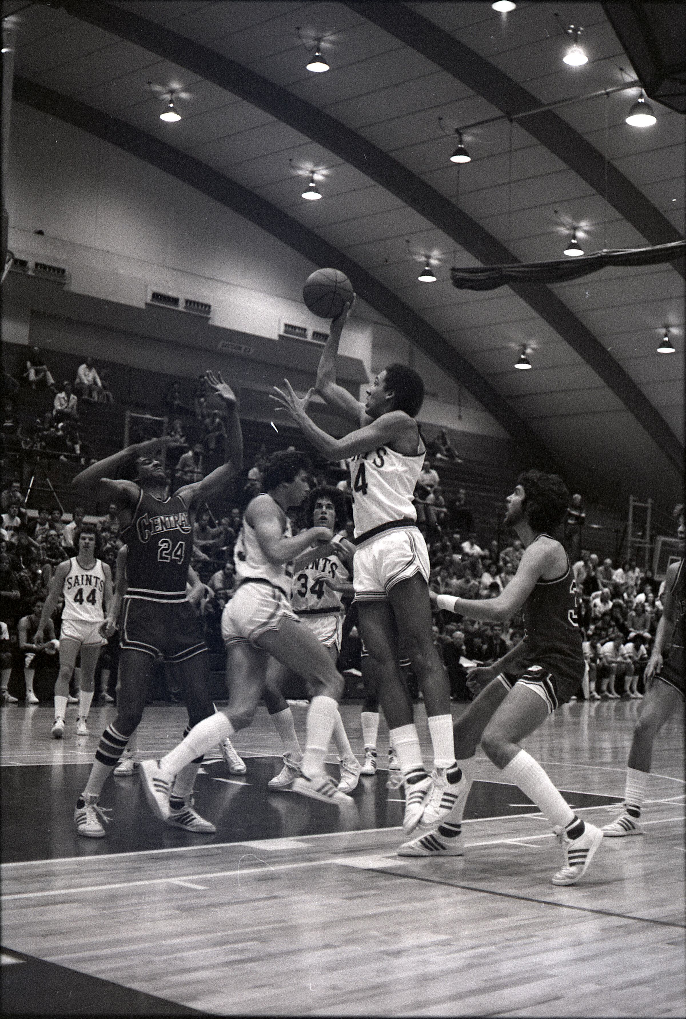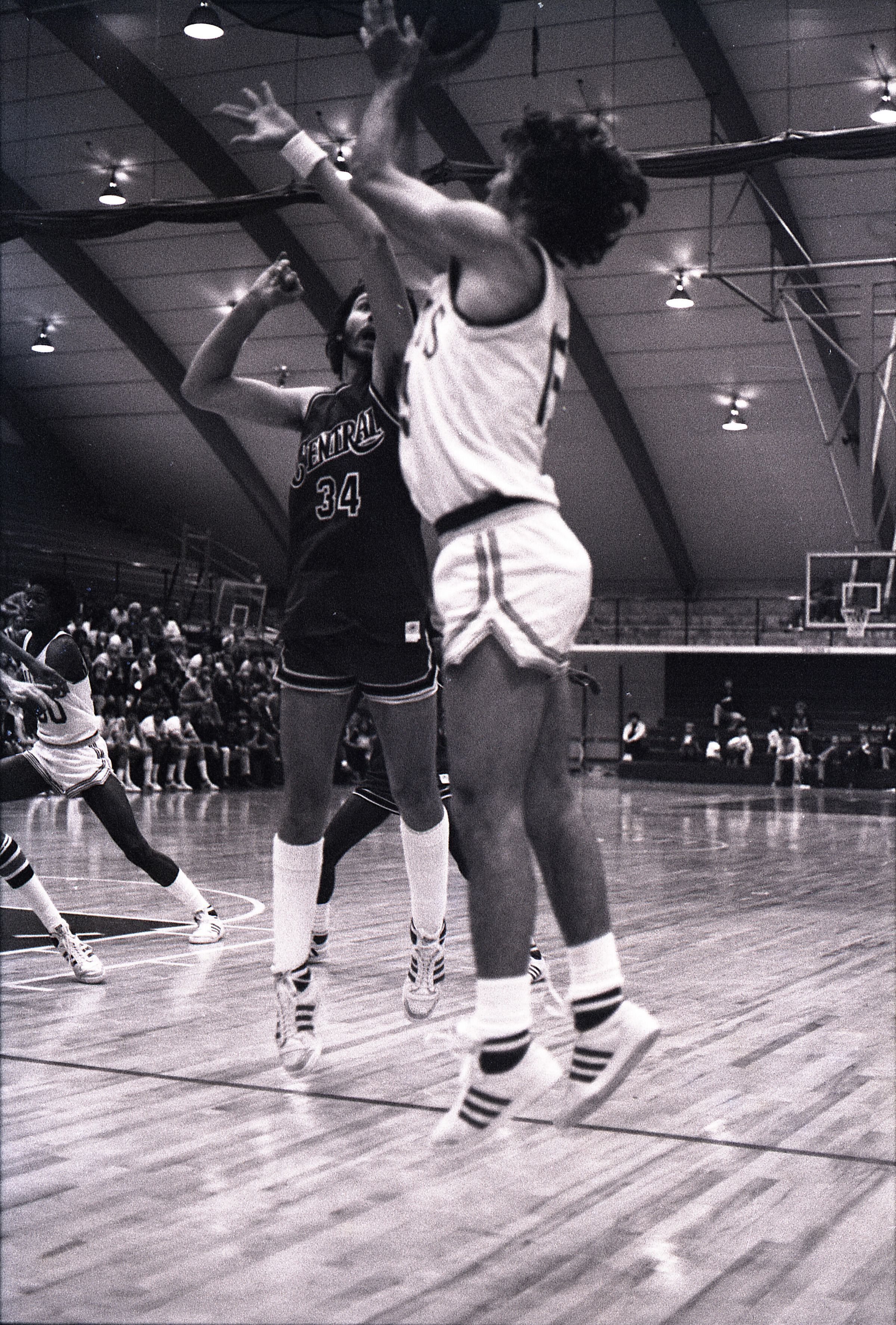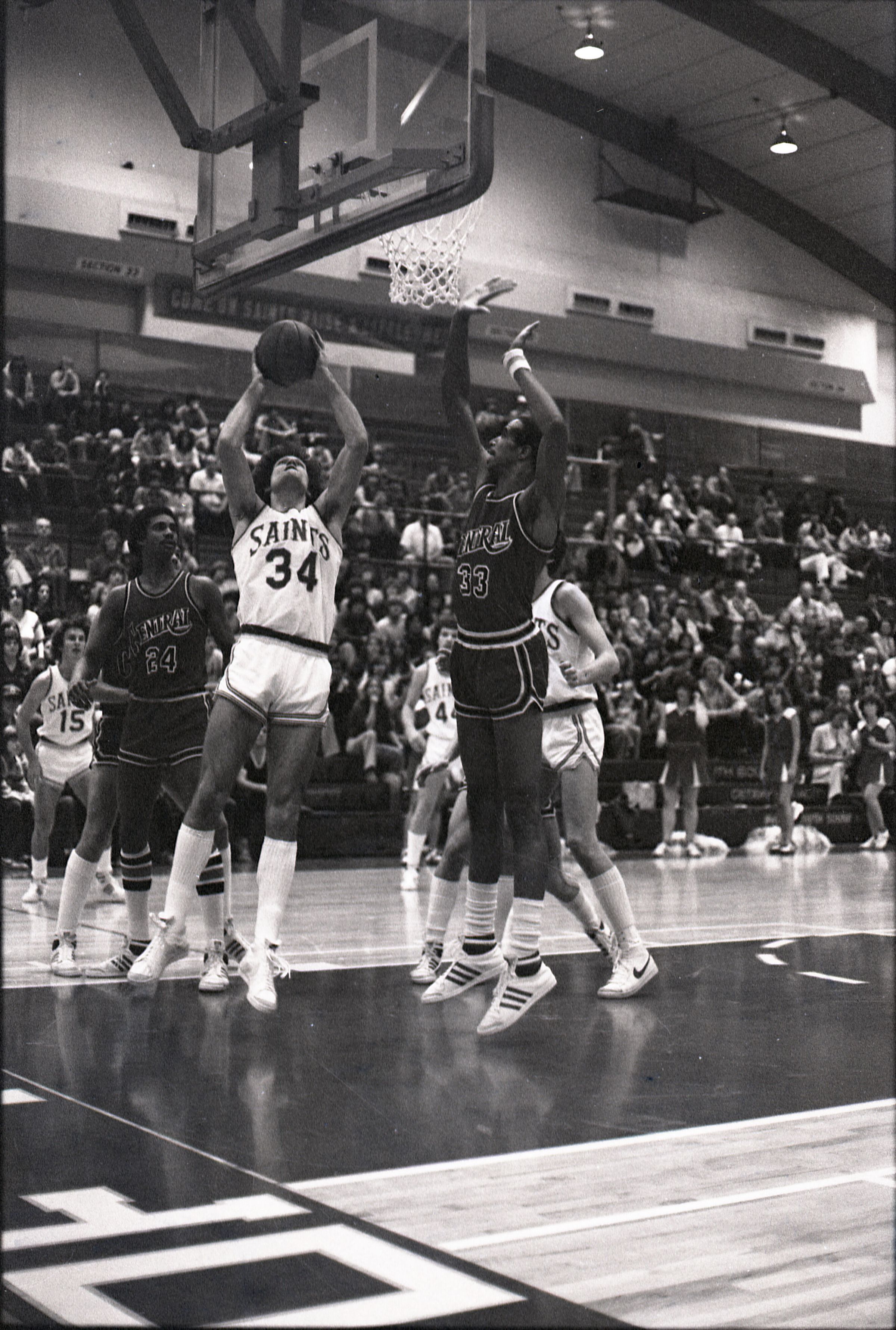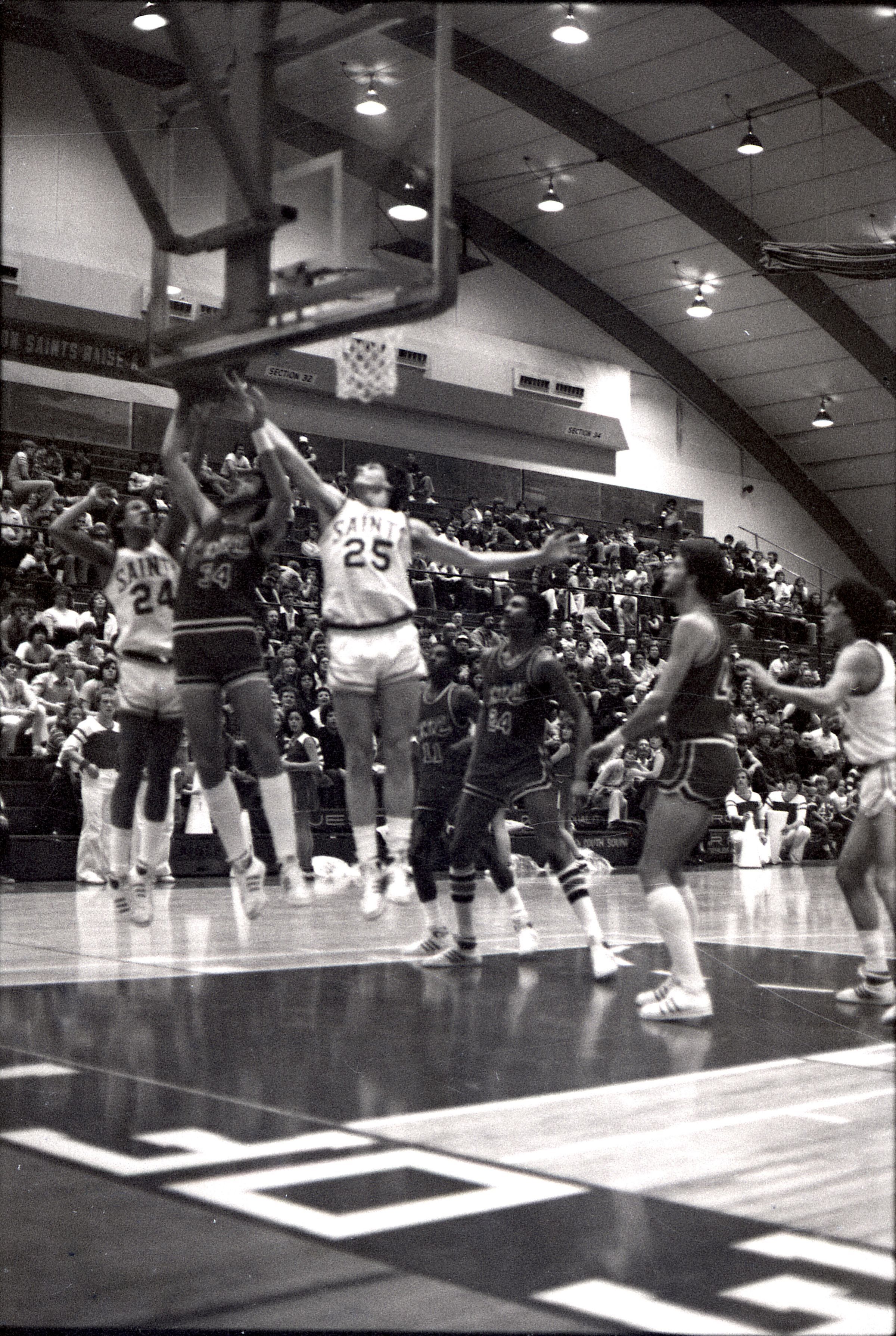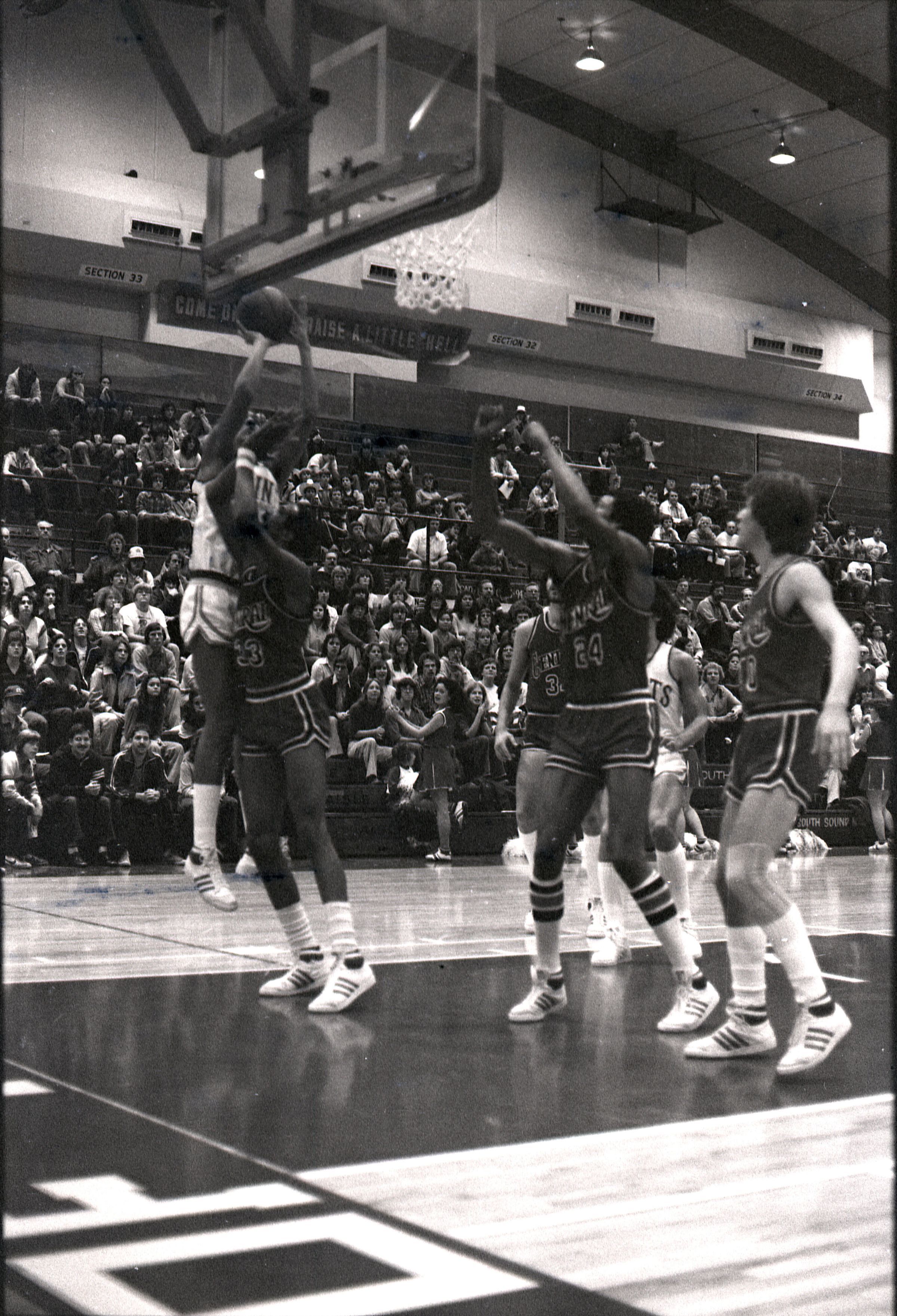 Saint Martin's College Basketball, 1980. These seventeen black and white film negative strips were created for the Lacey Leader newspaper.Made/Created