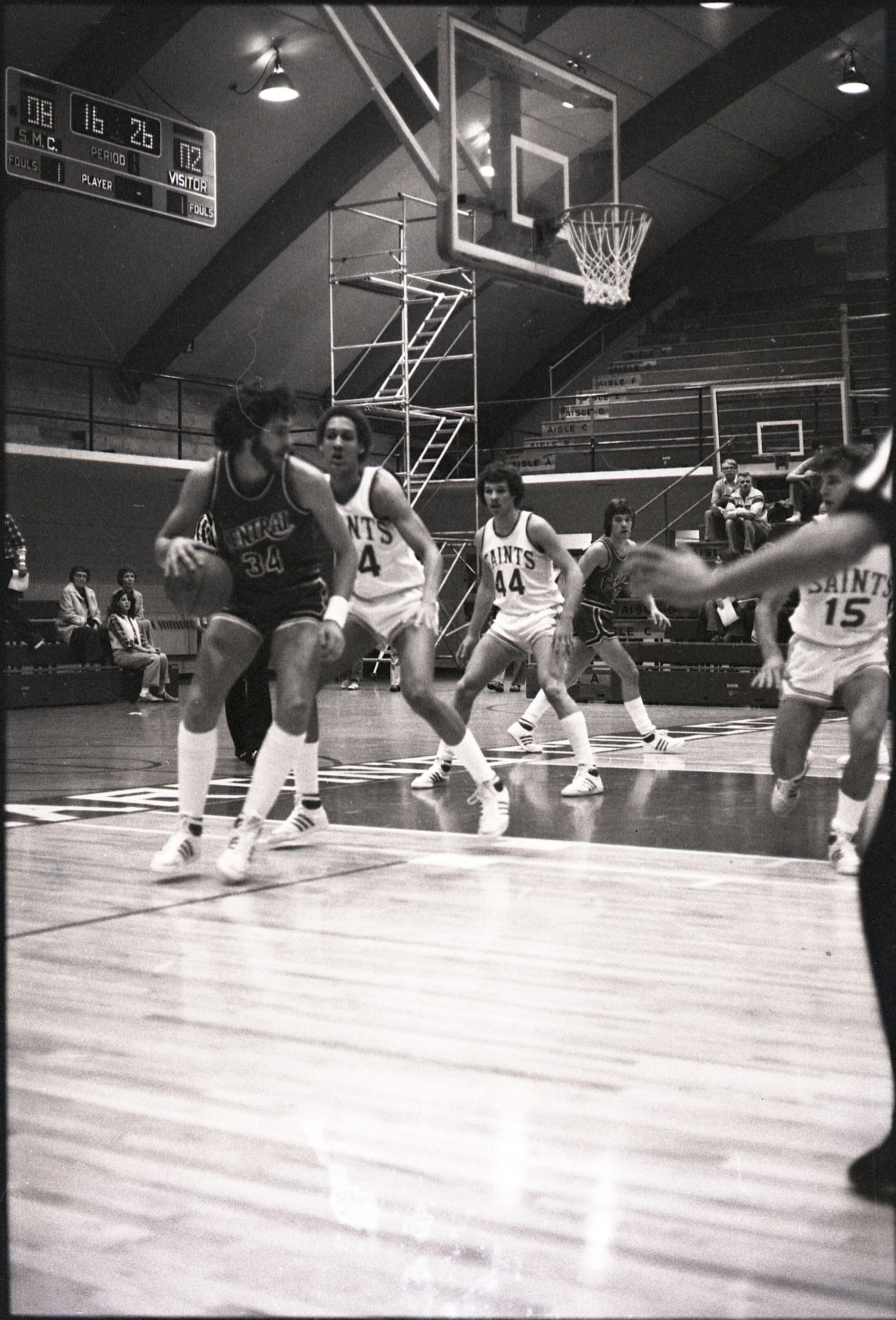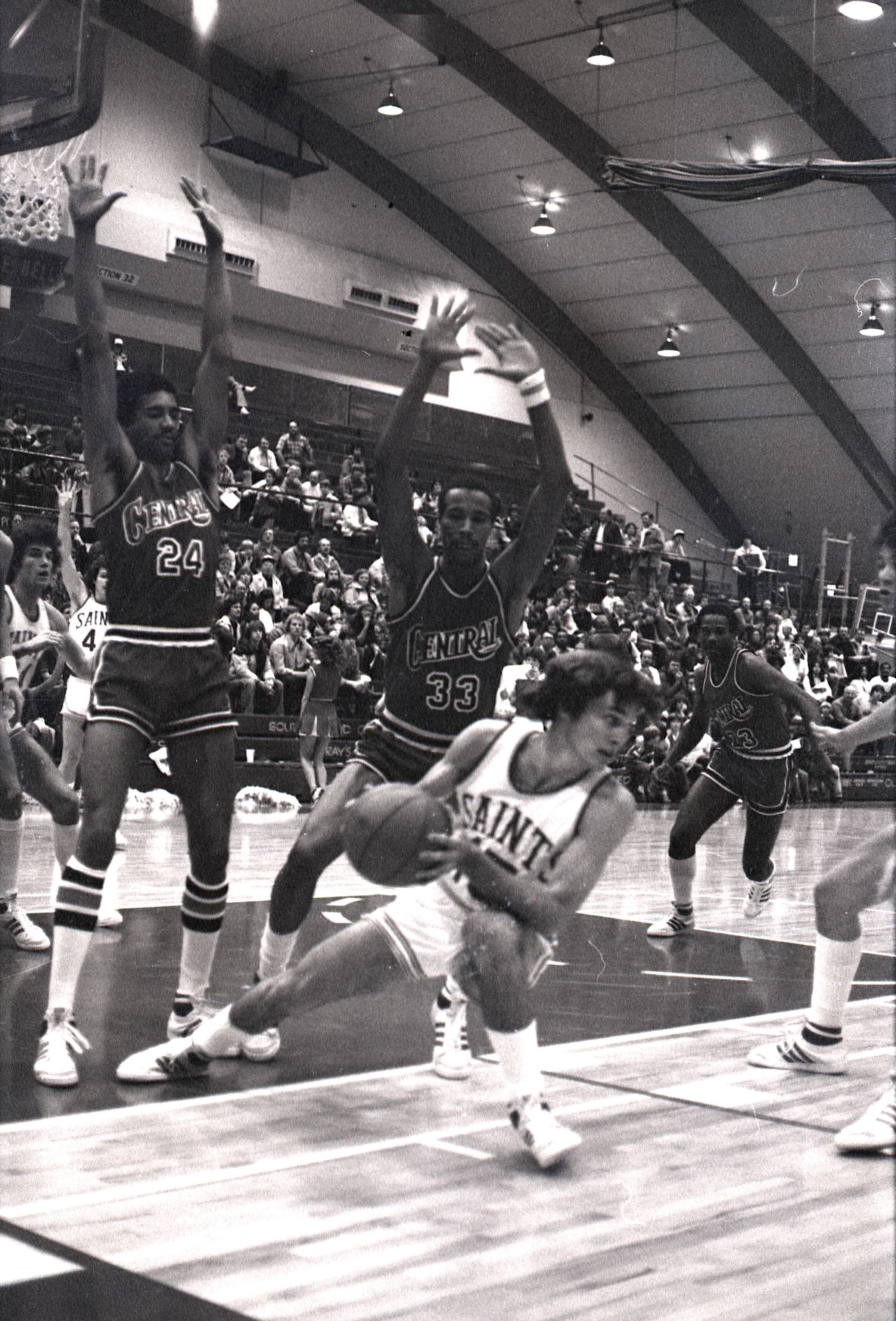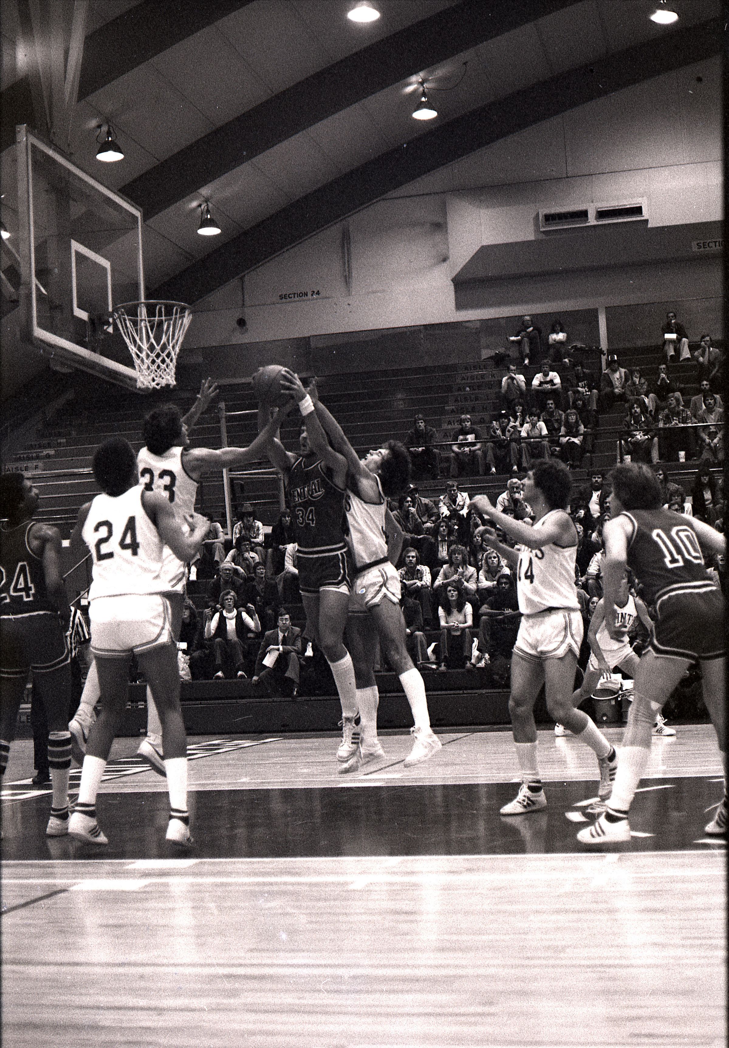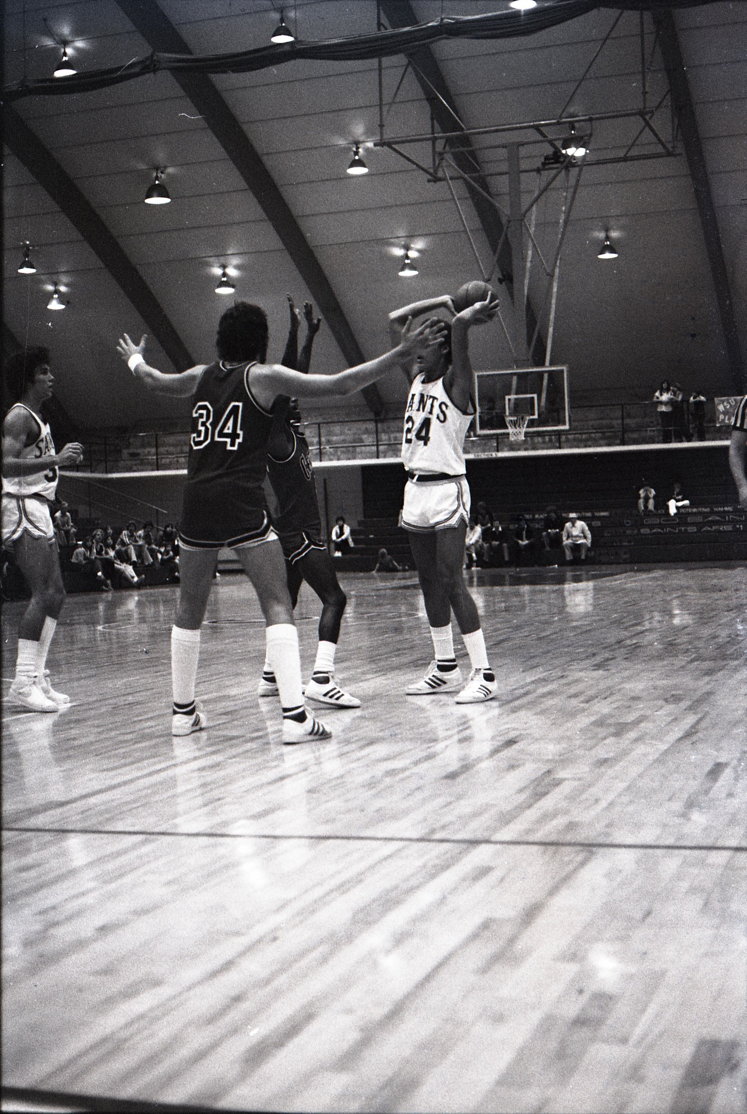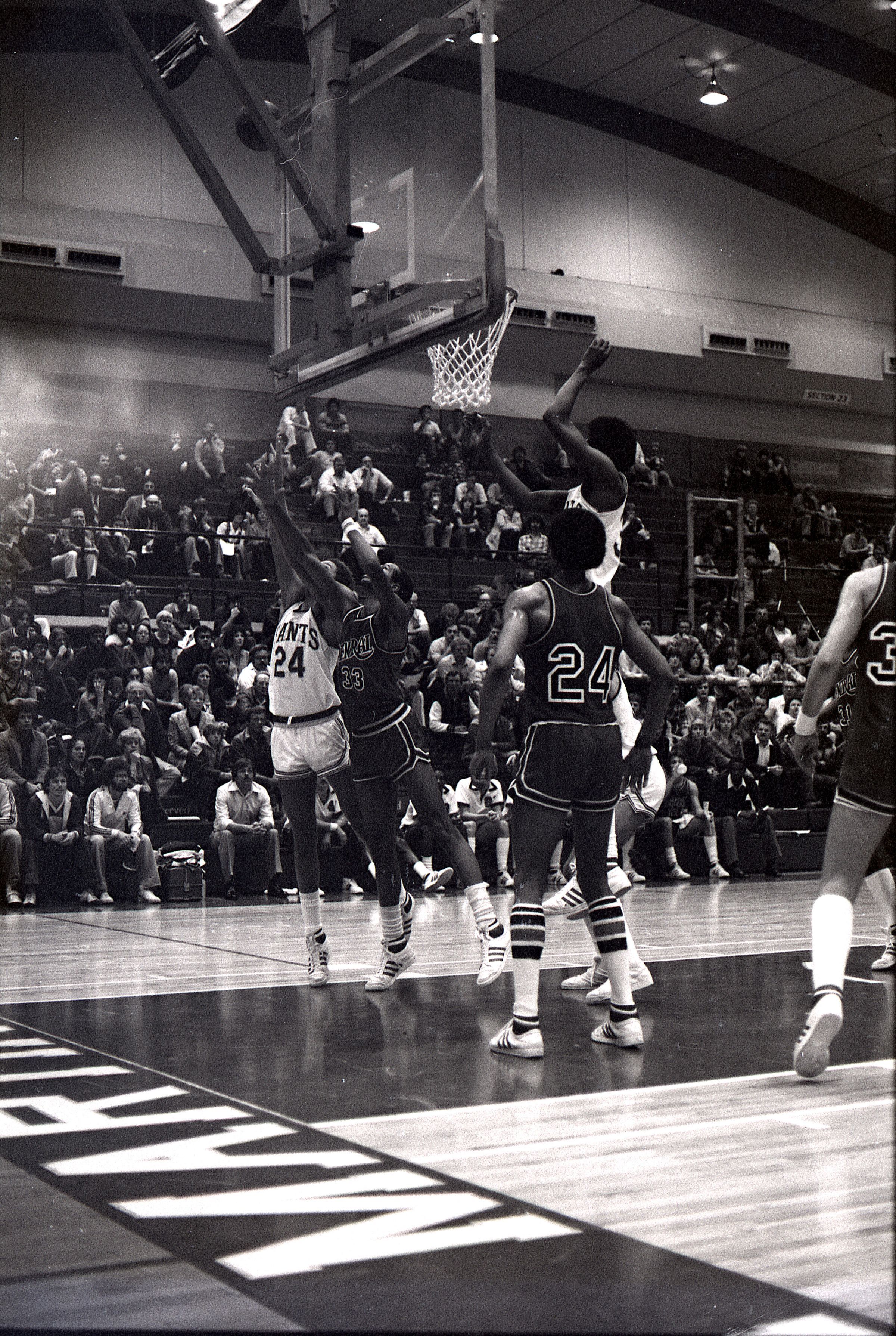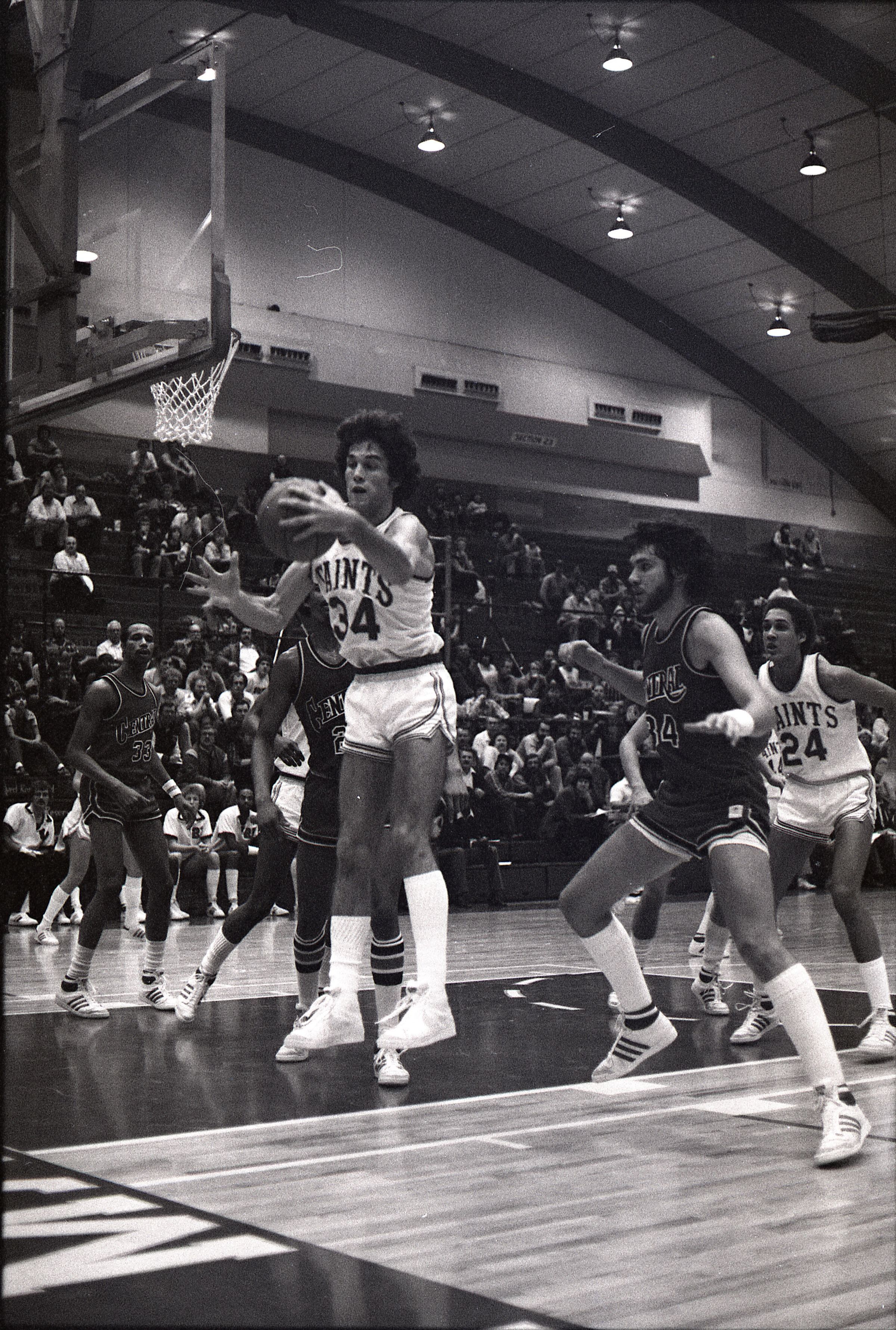 Saint Martin's College Basketball, 1980. These seventeen black and white film negative strips were created for the Lacey Leader newspaper.Made/Created