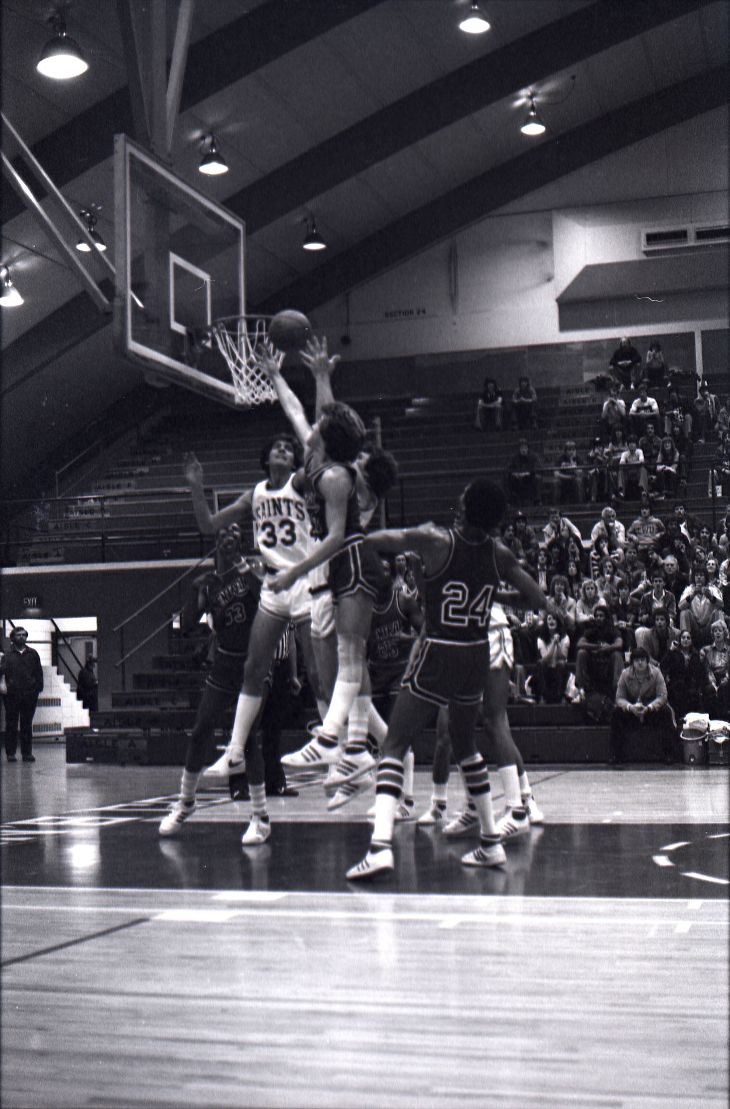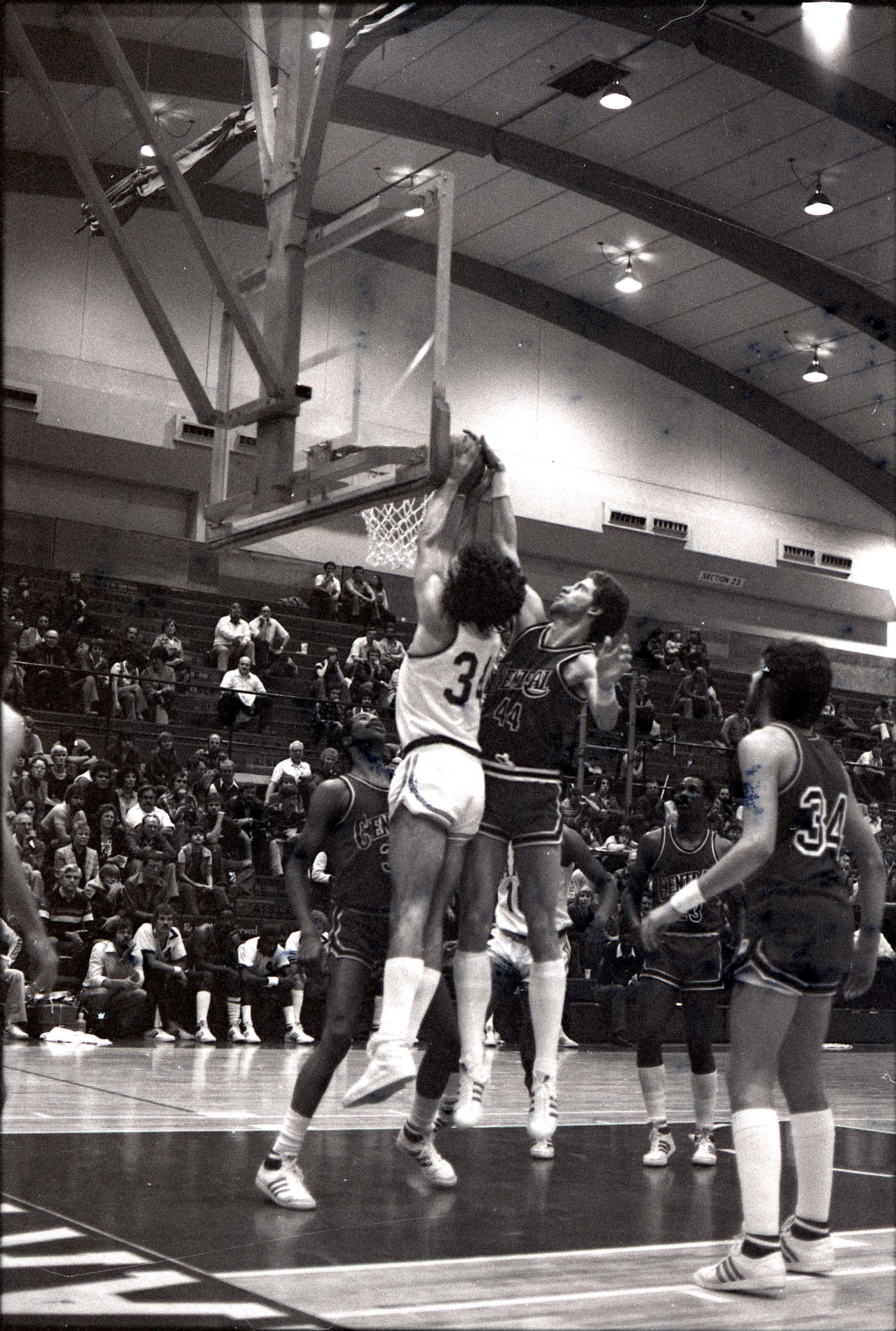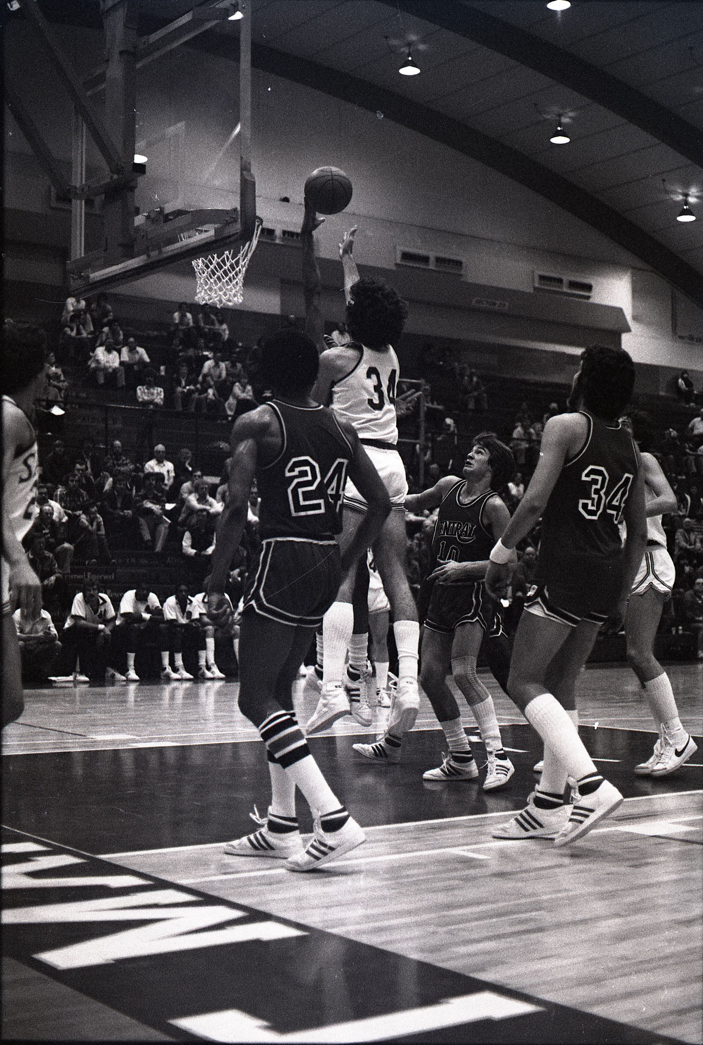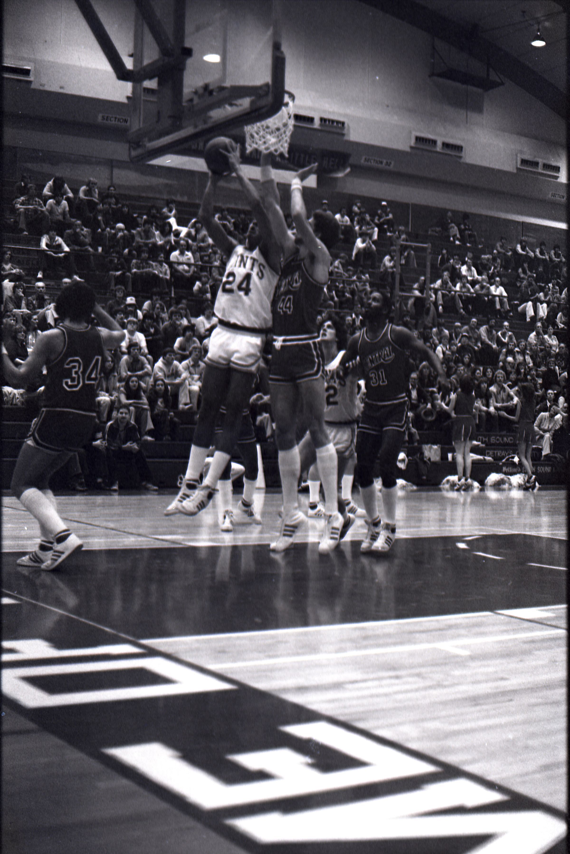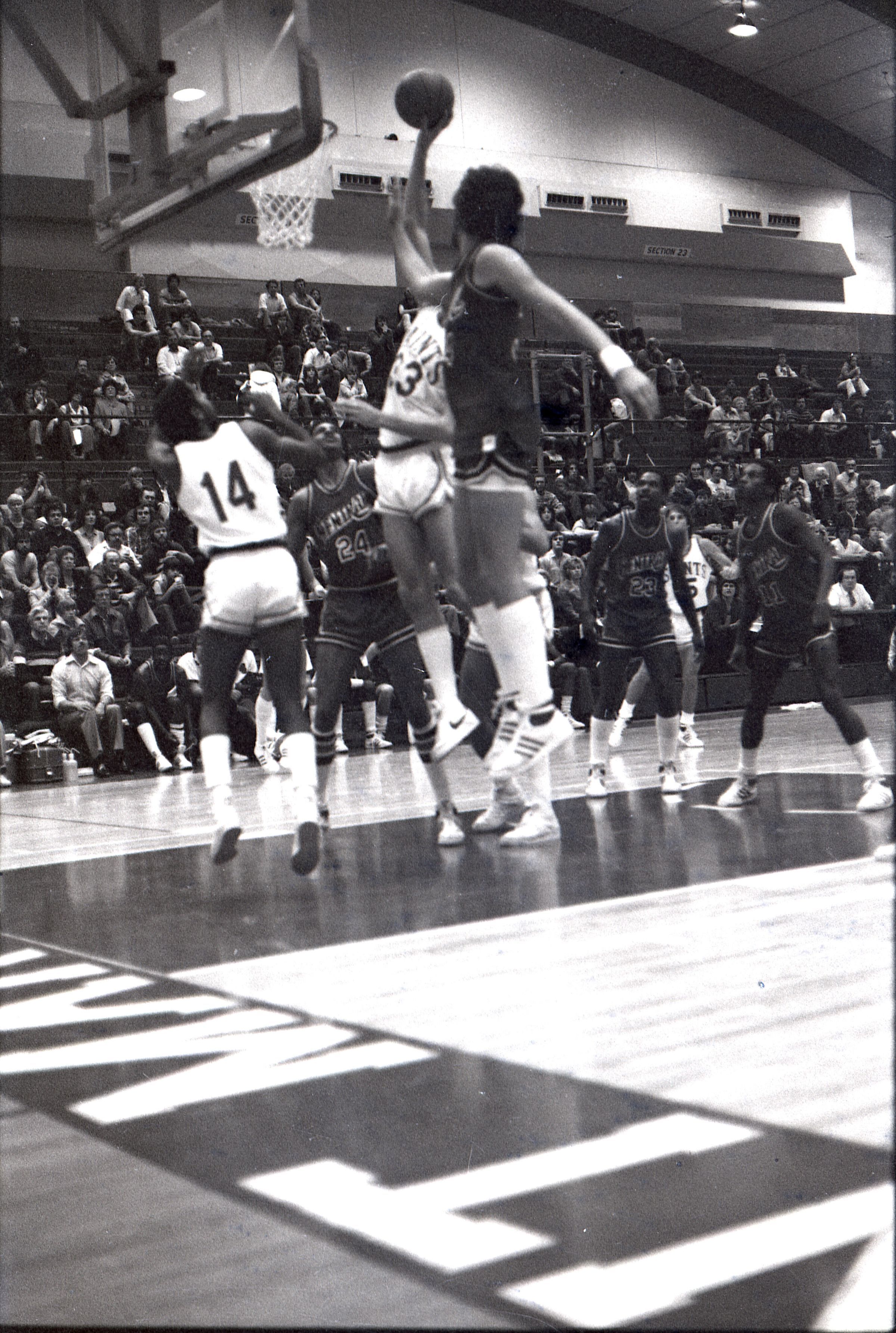 Saint Martin's College Basketball, 1980. These seventeen black and white film negative strips were created for the Lacey Leader newspaper.Made/Created