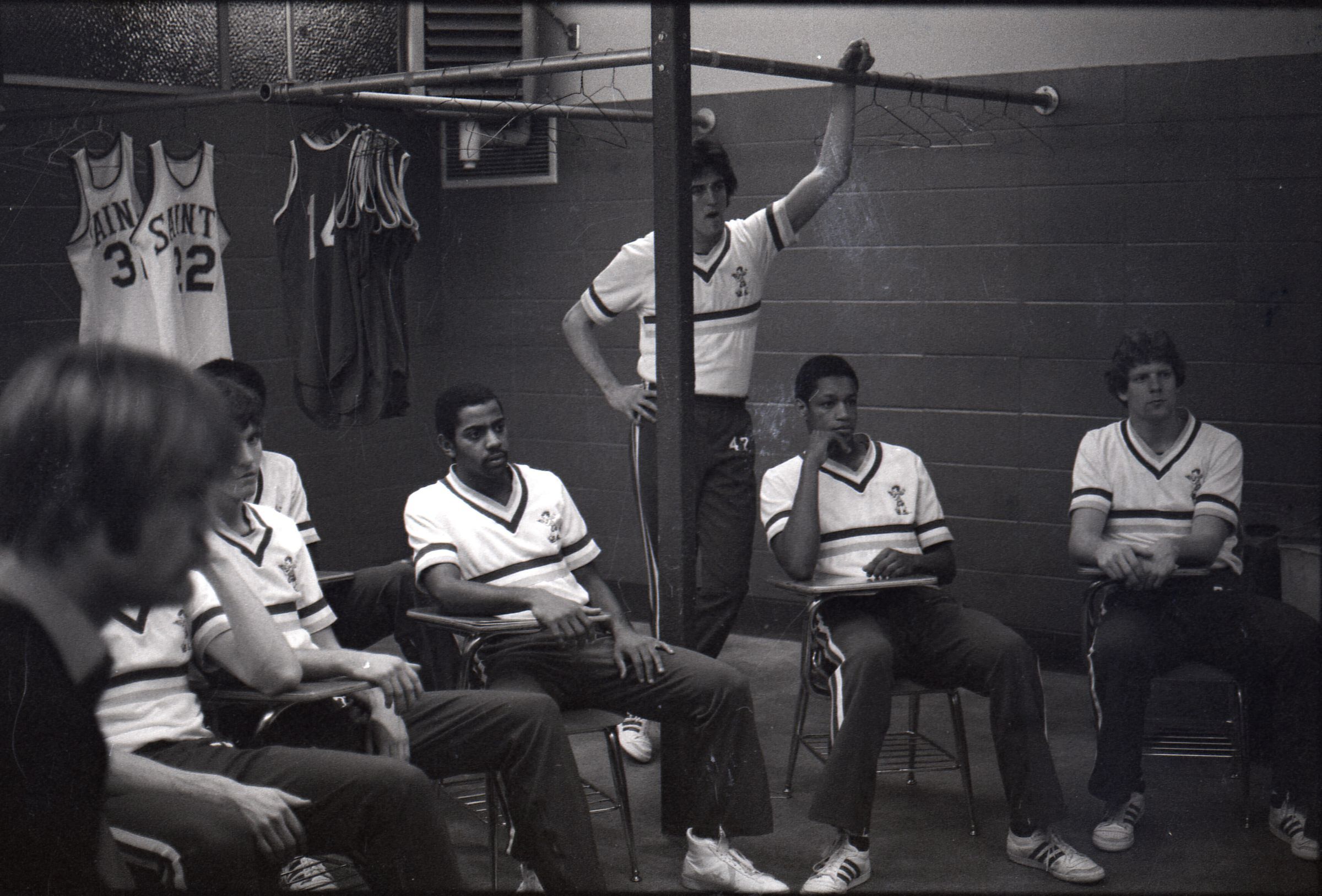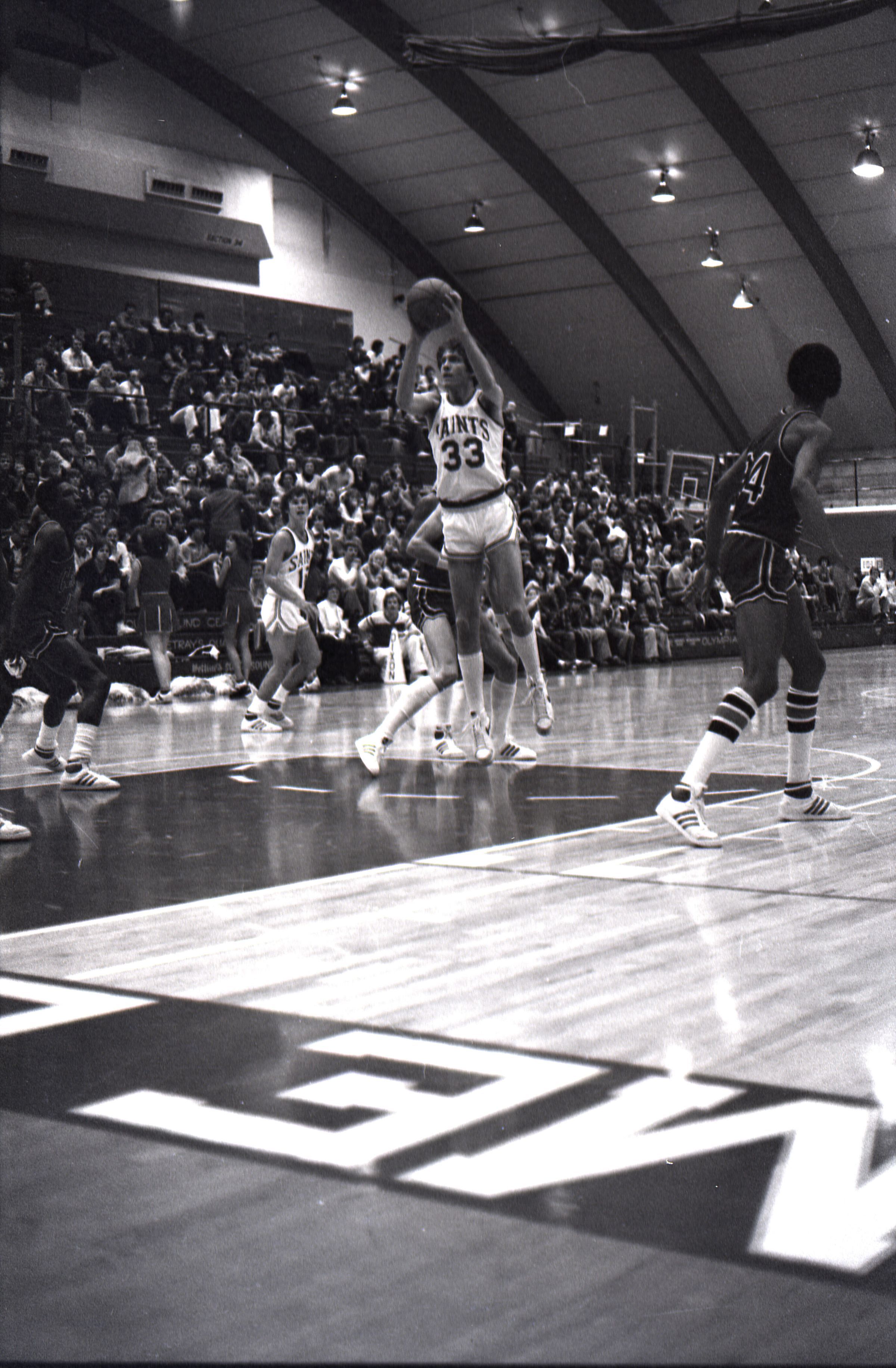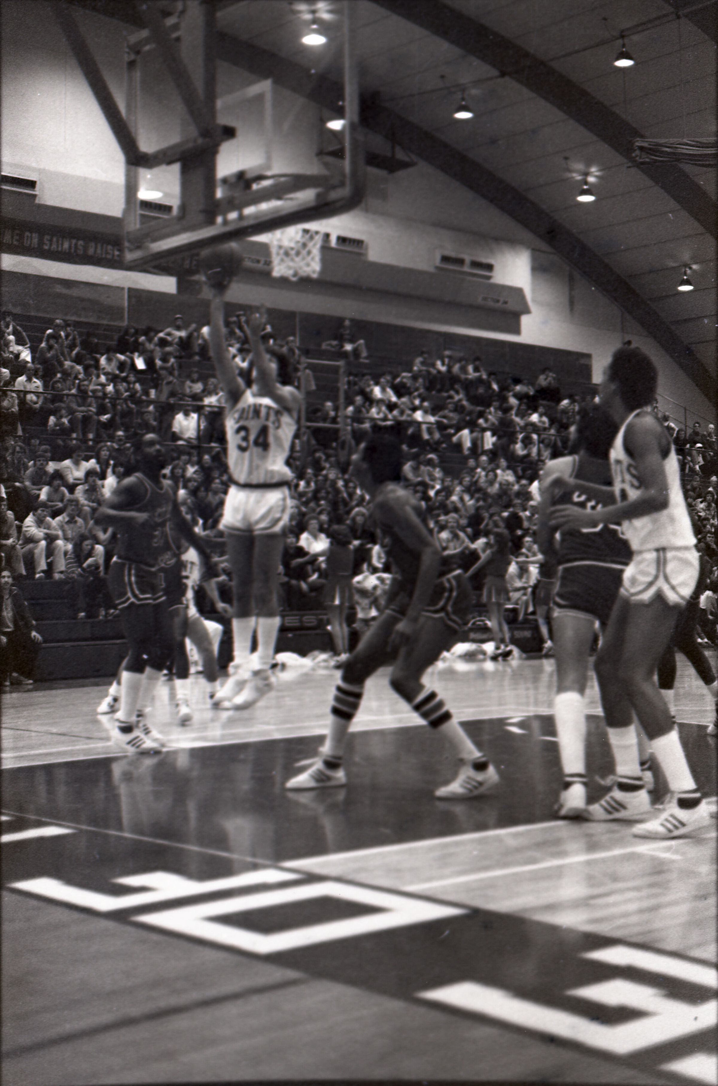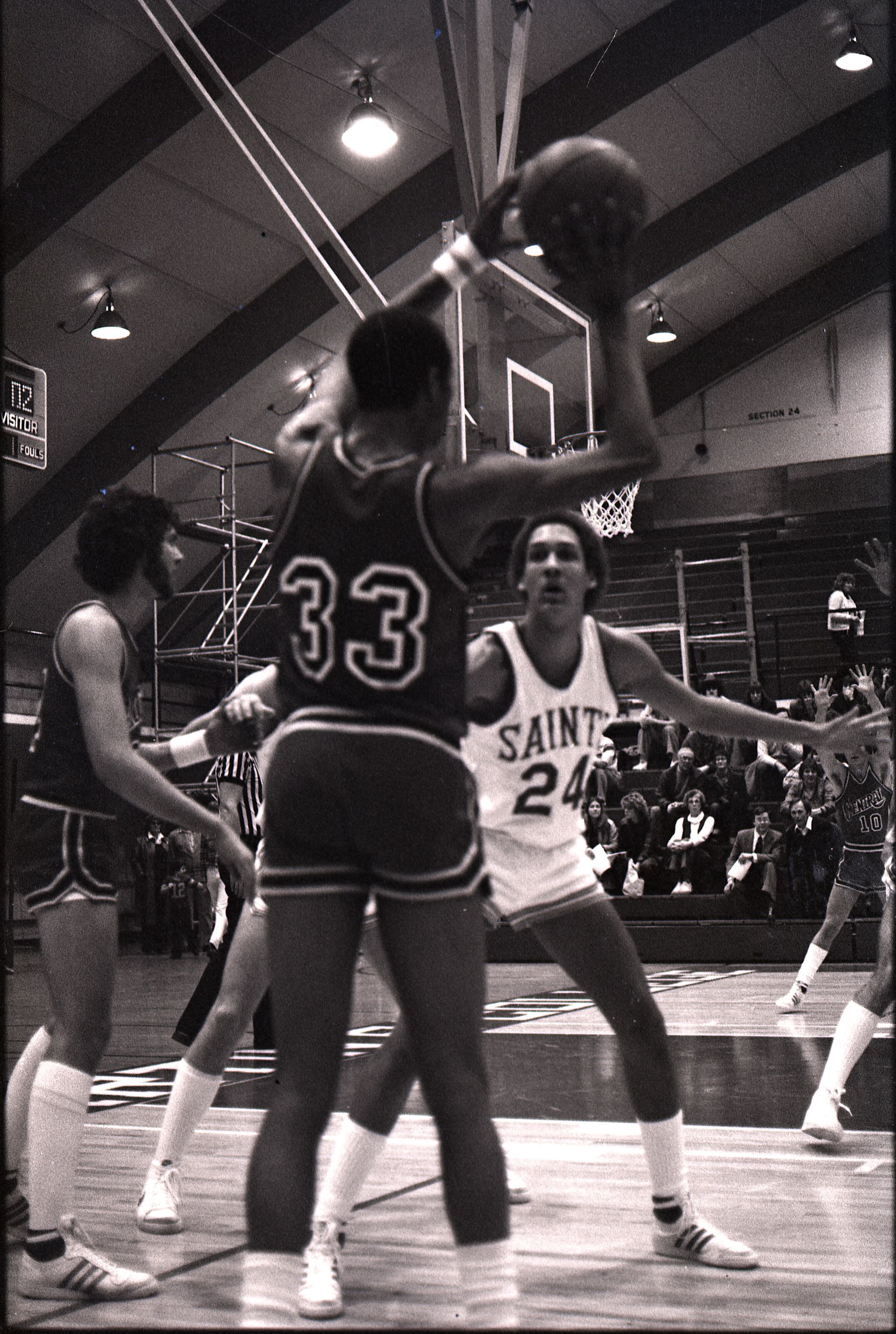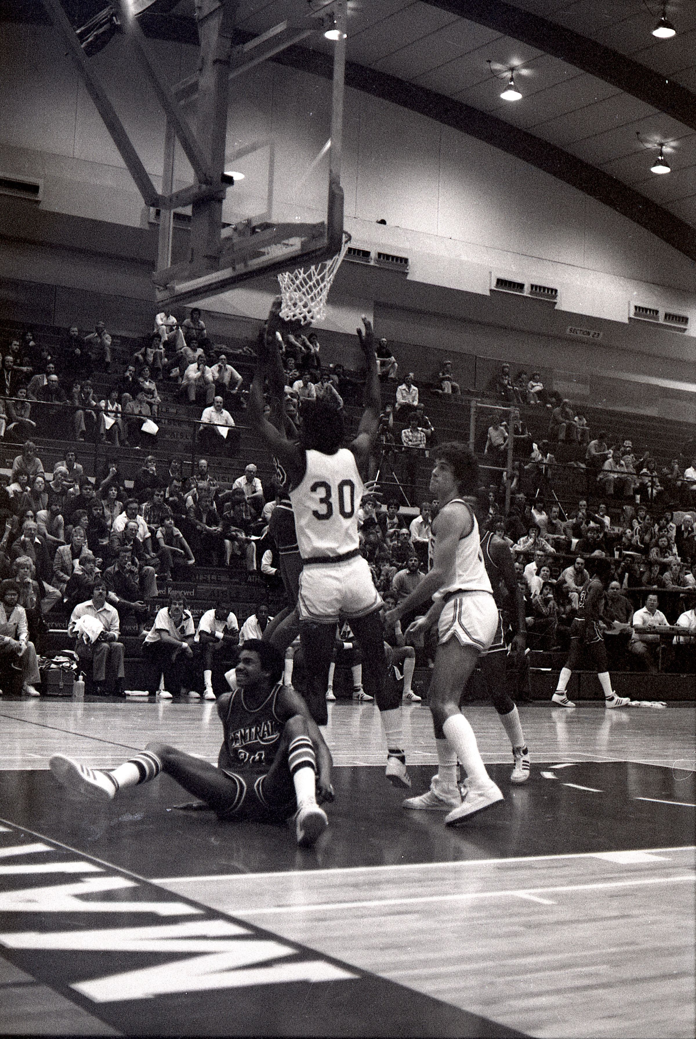 Saint Martin's College Basketball, 1980. These seventeen black and white film negative strips were created for the Lacey Leader newspaper.Made/Created