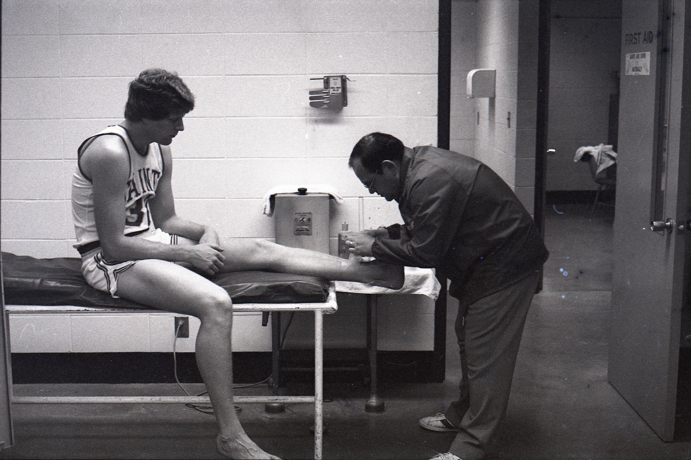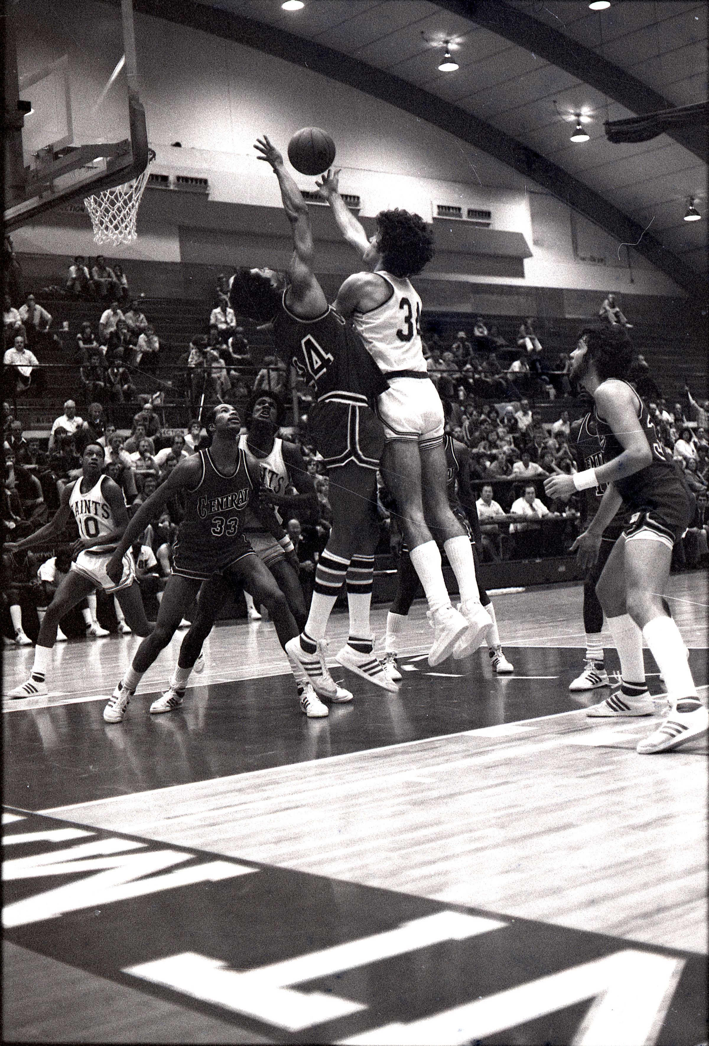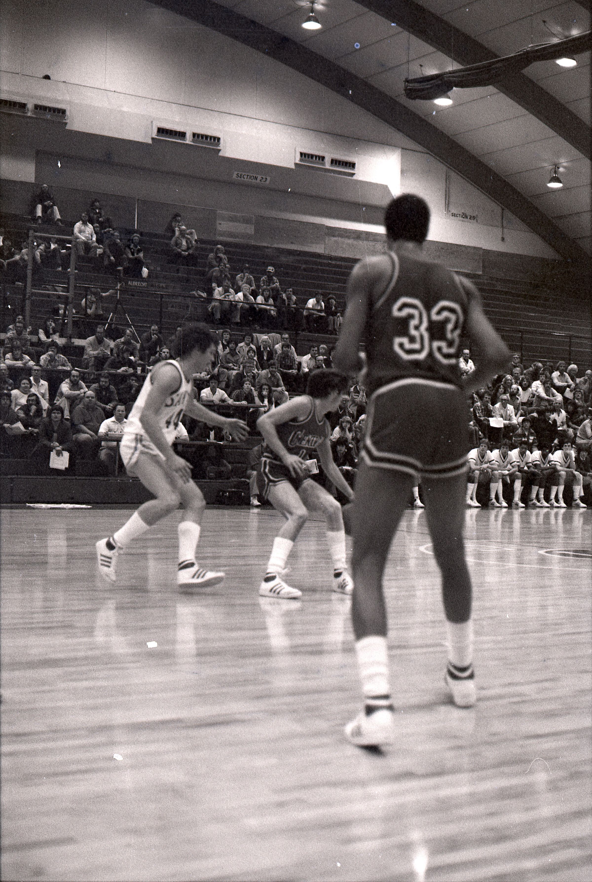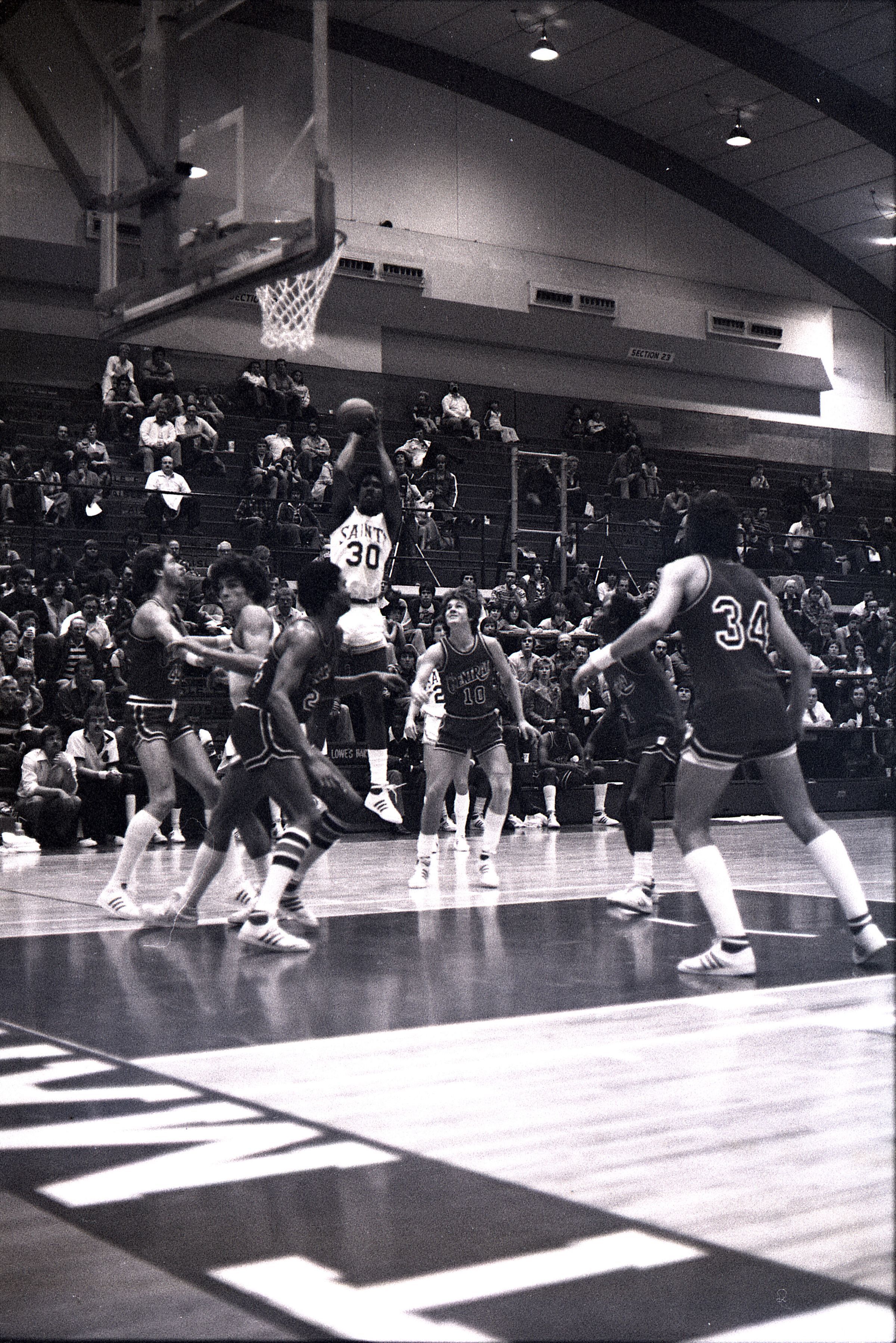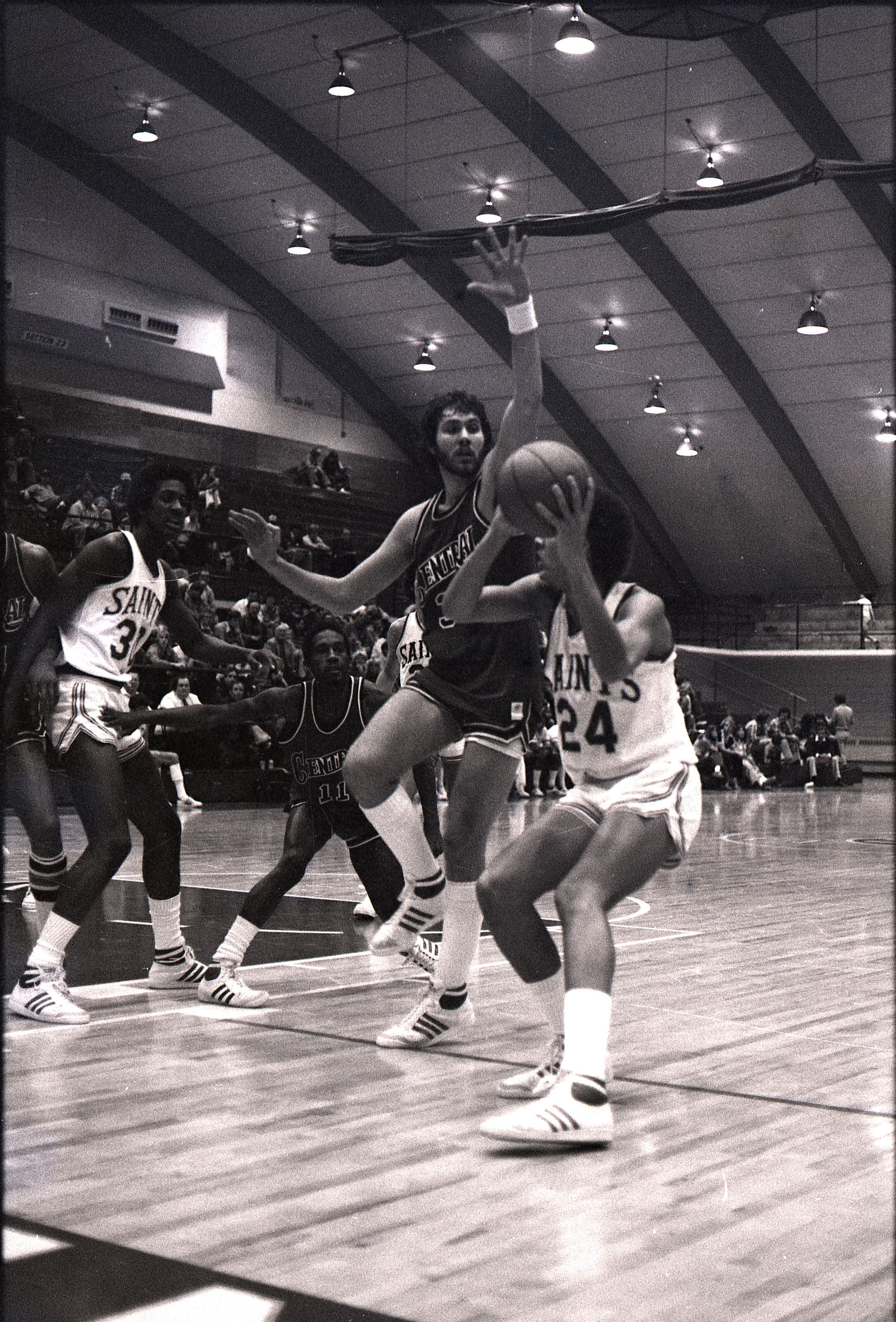 Saint Martin's College Basketball, 1980. These seventeen black and white film negative strips were created for the Lacey Leader newspaper.Made/Created