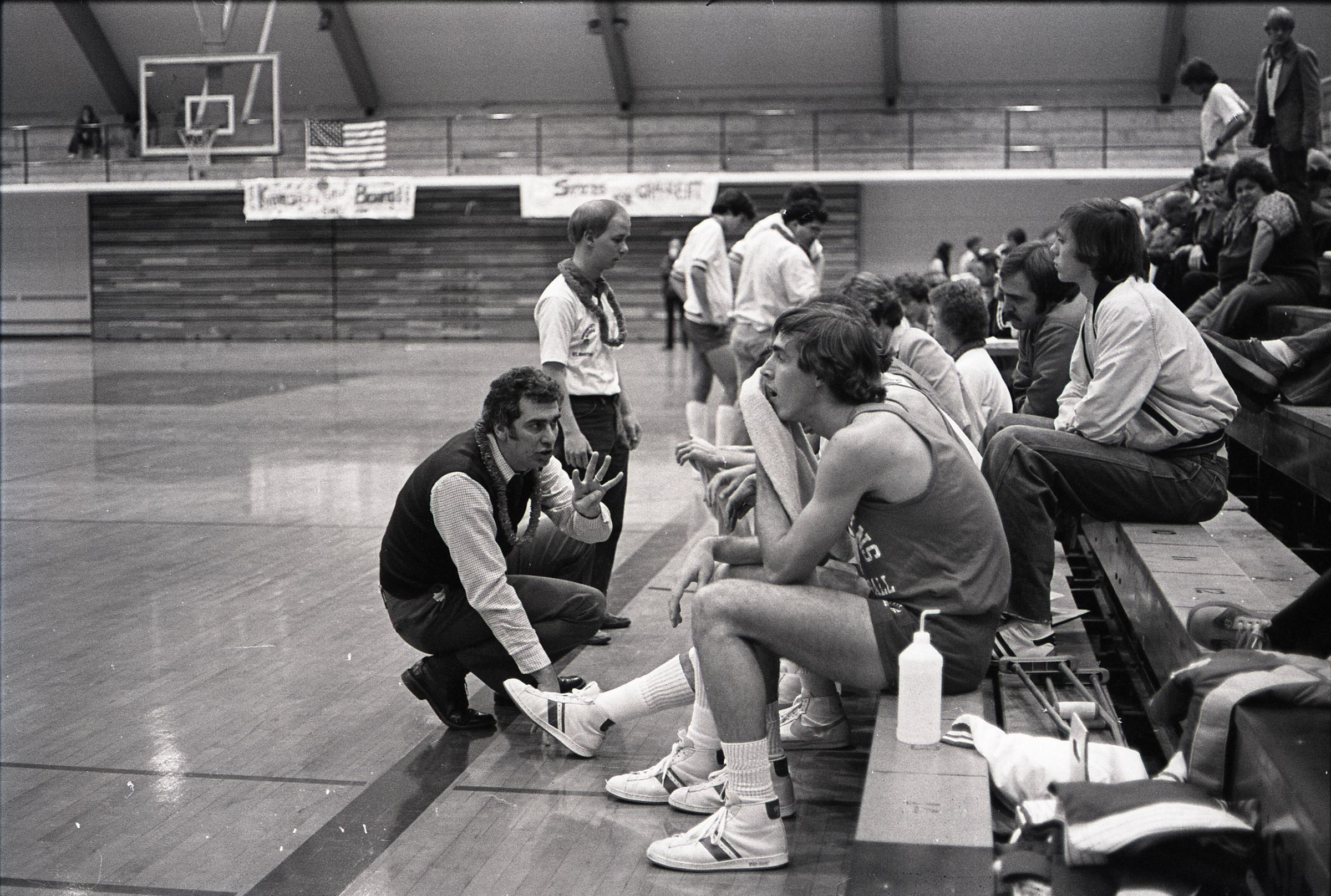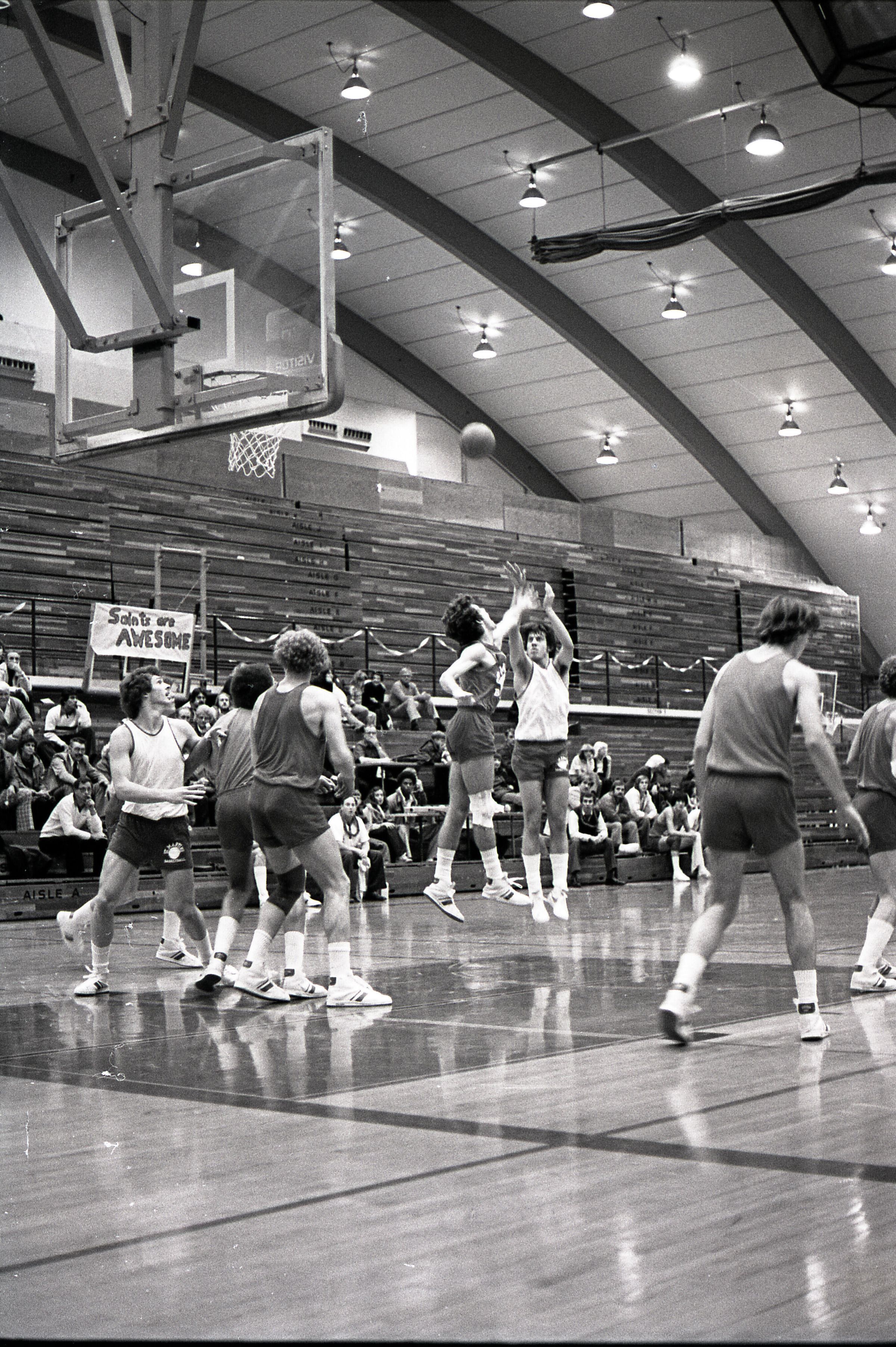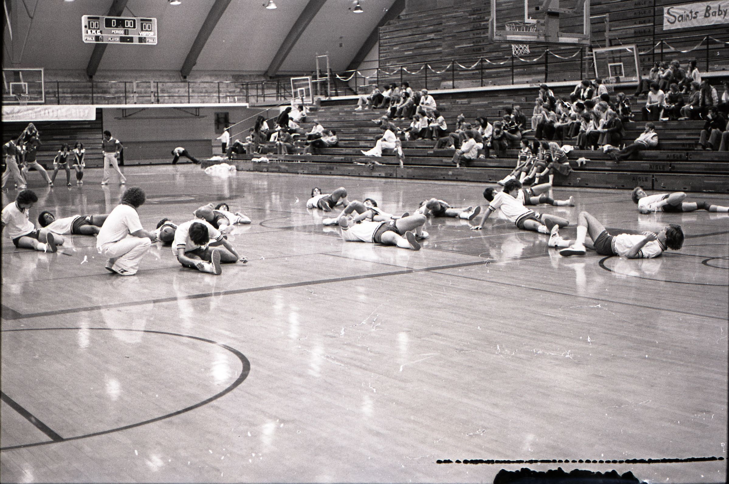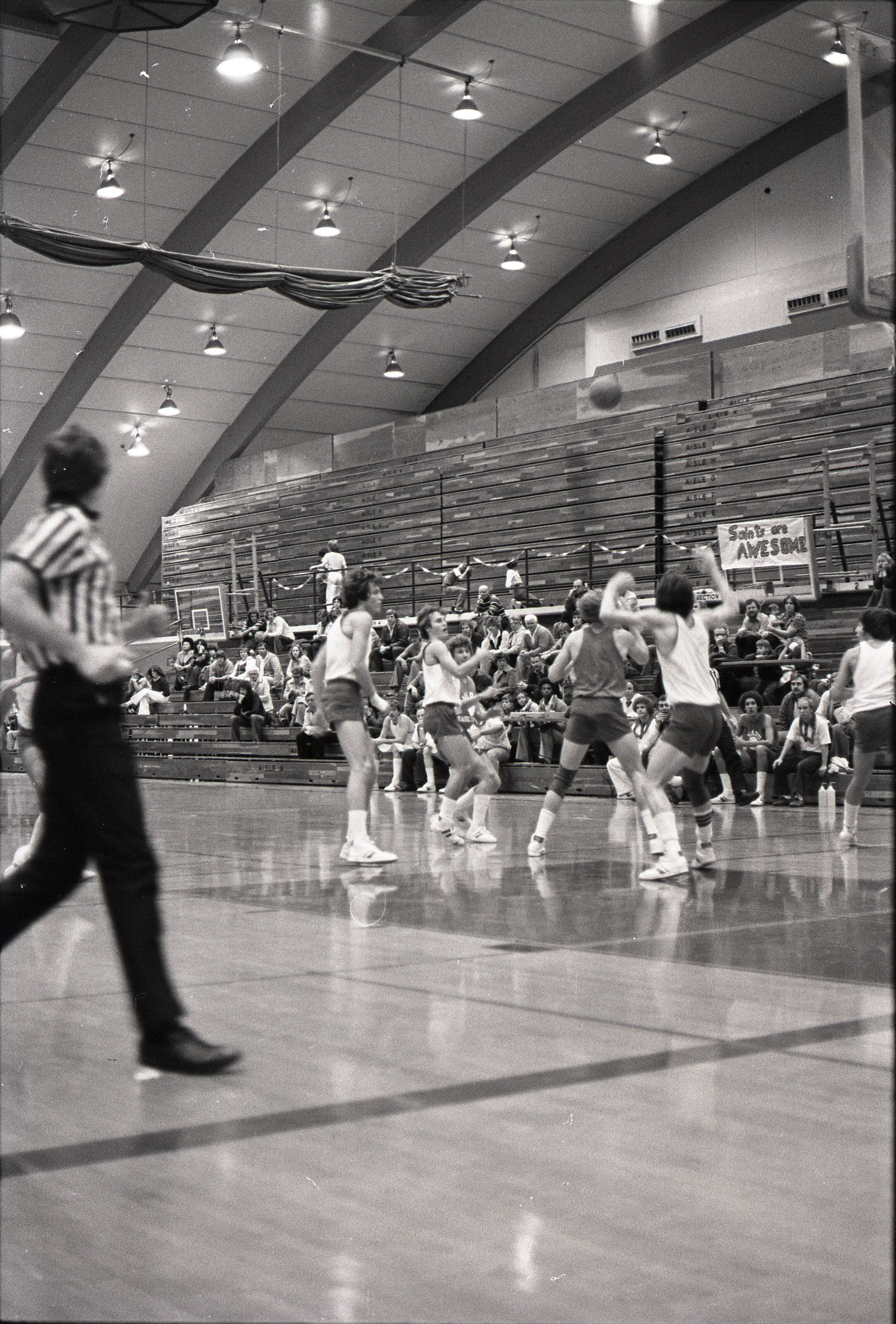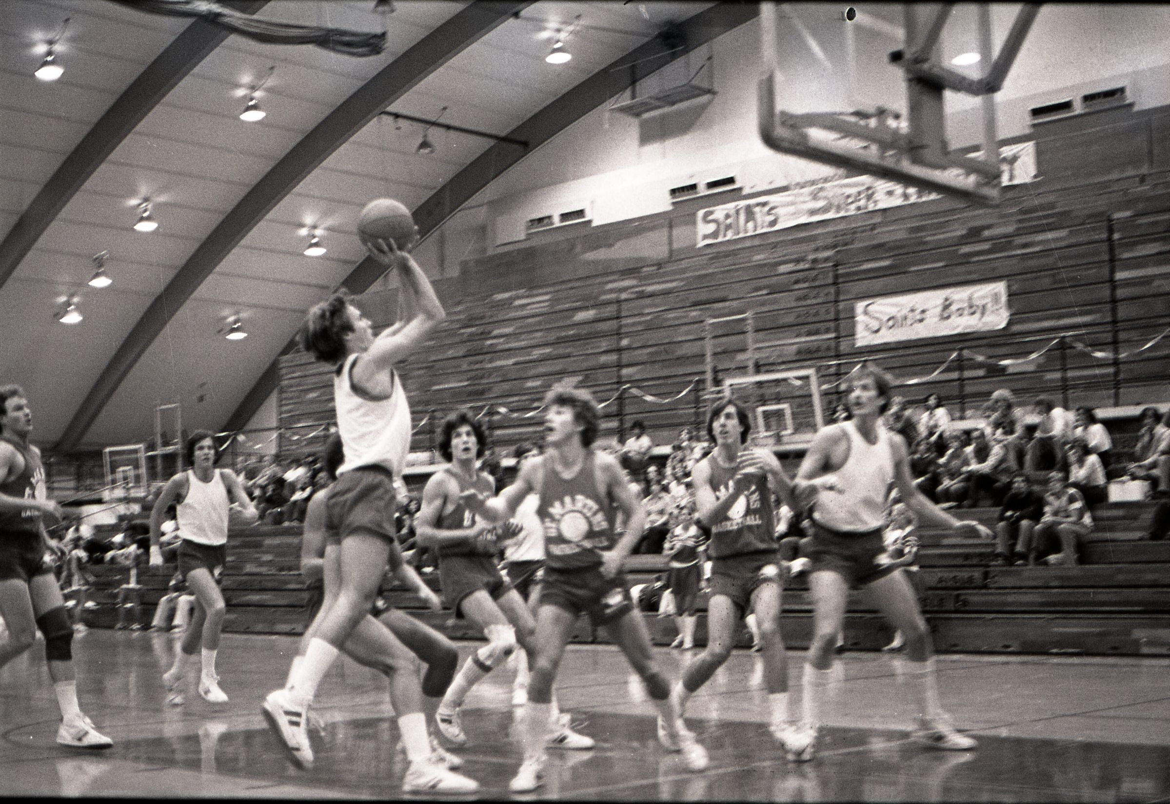 Saint Martin's Practice Game, 1979. These seven black and white film negative strips were created for the Lacey Leader newspaper.Made/Created