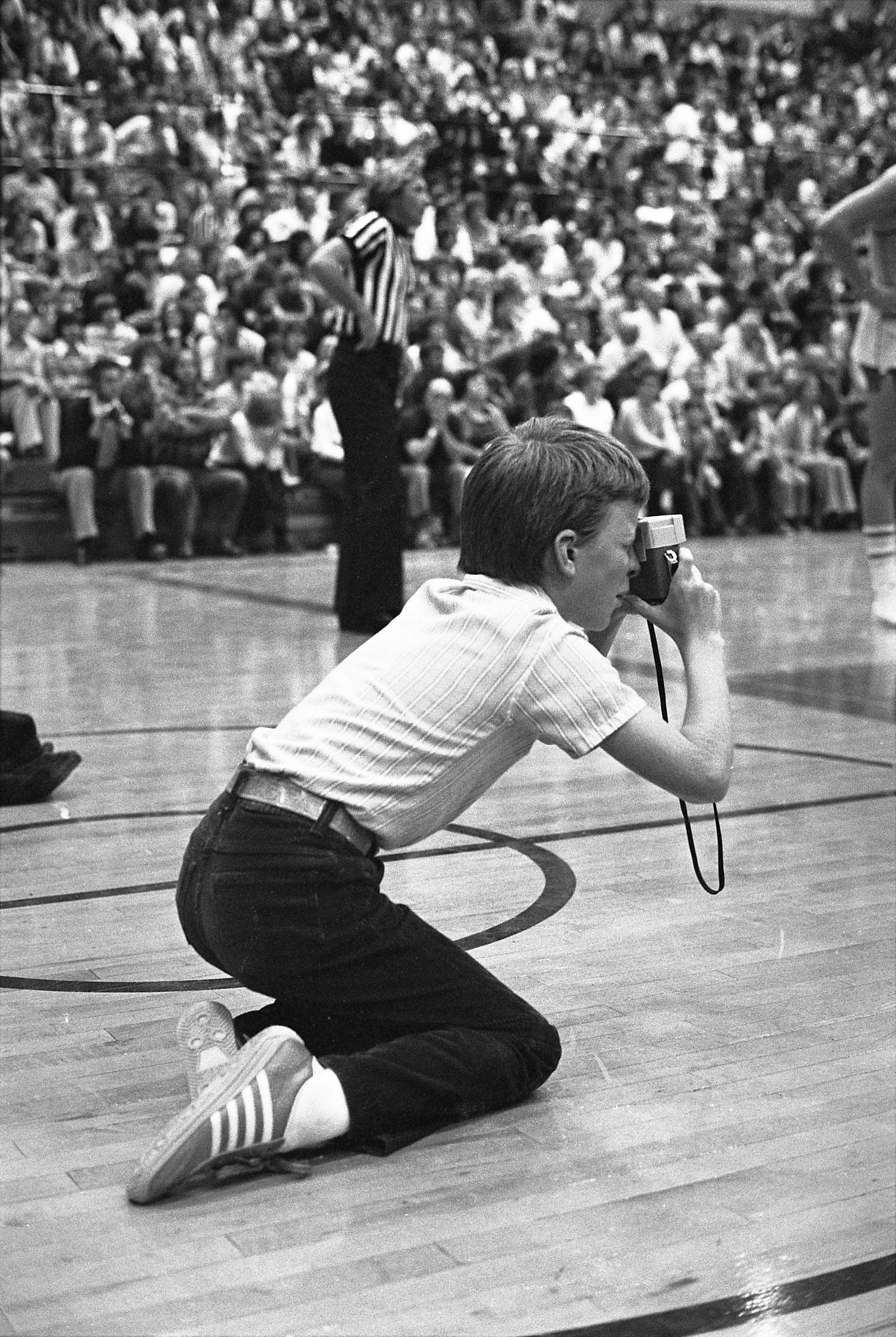 Seattle Supersonics at Capital Pavilion, 1978. These seven black and white film negative strips were created for the Lacey Leader newspaper. These images were created using two separate film rolls, so some of the physical numbers on the strips are repeated. For the purposes of this description, these strips will be grouped according to the film roll from which they originally came. Each group will be assigned a lower-case letter to go along with the physical numbers on the strips (ex: 1a, 2a, 3a, 1b, 2b, 3b, etc.) to help differentiate between images.