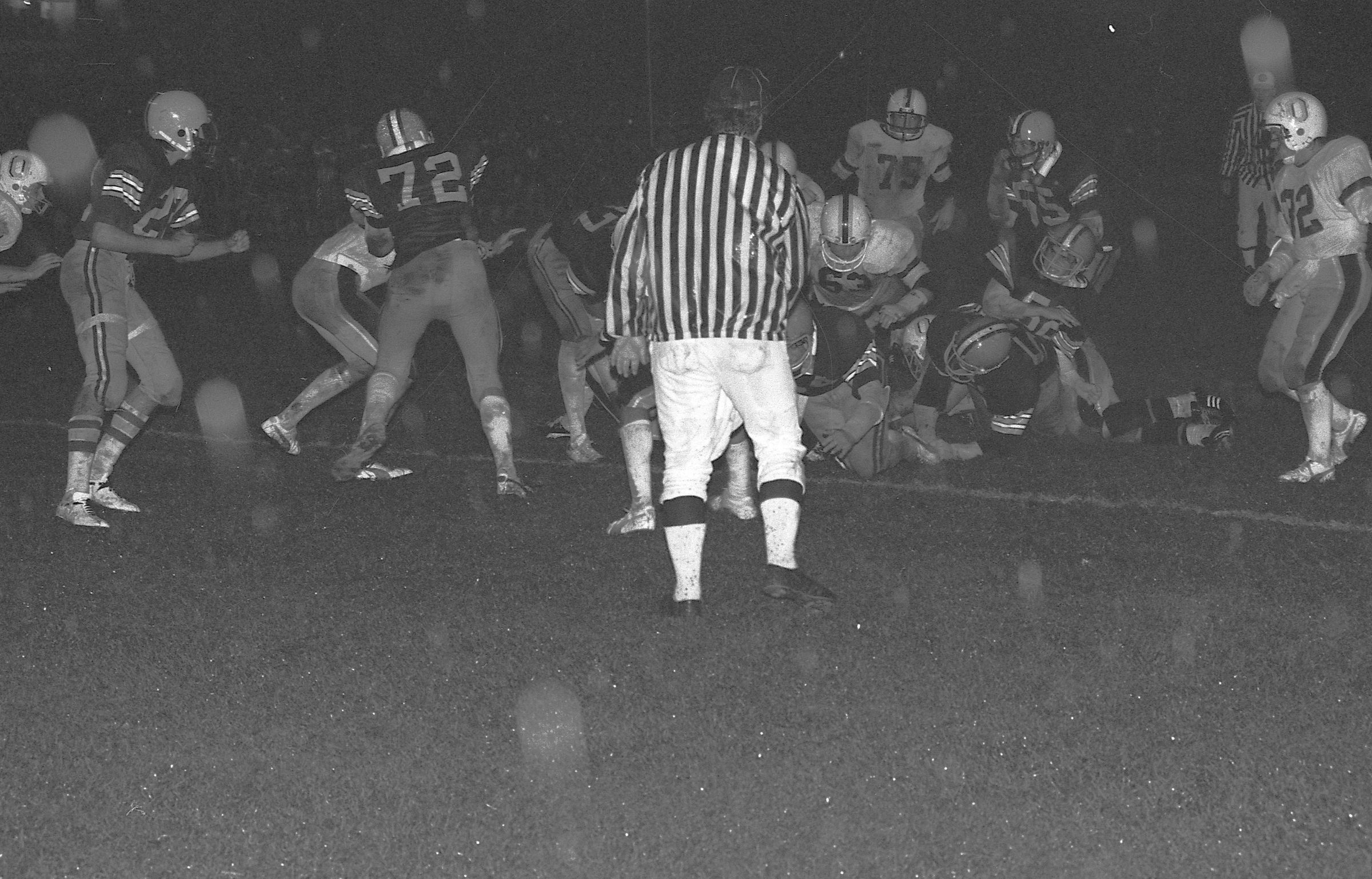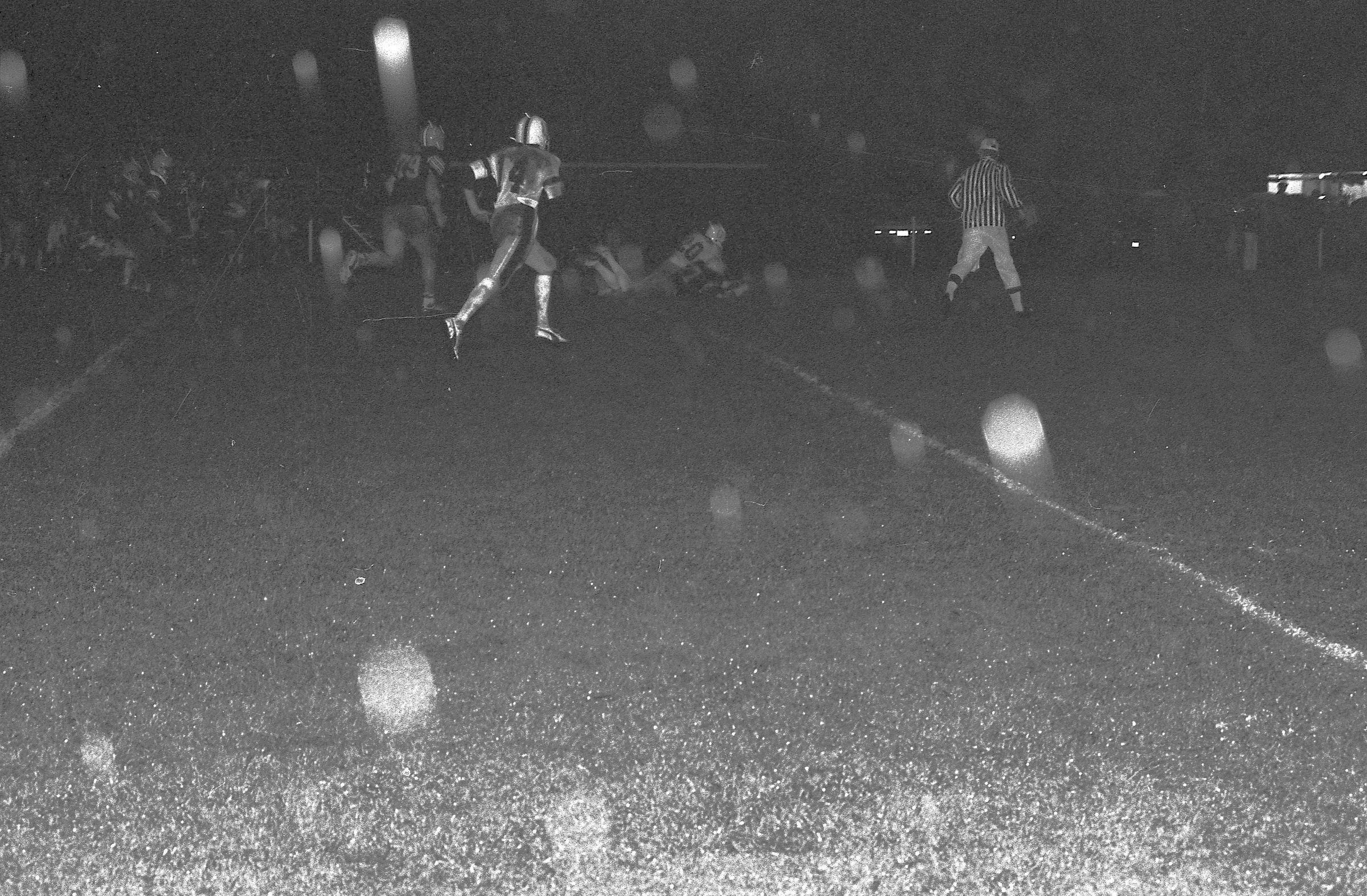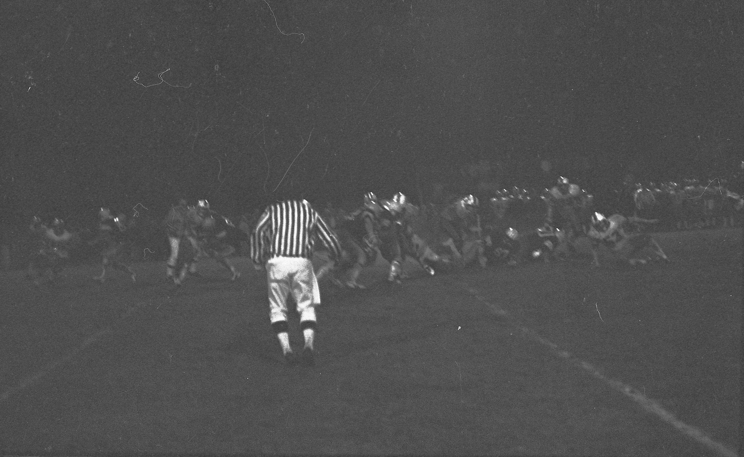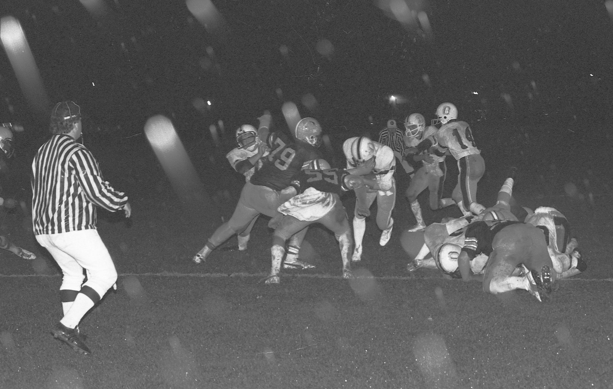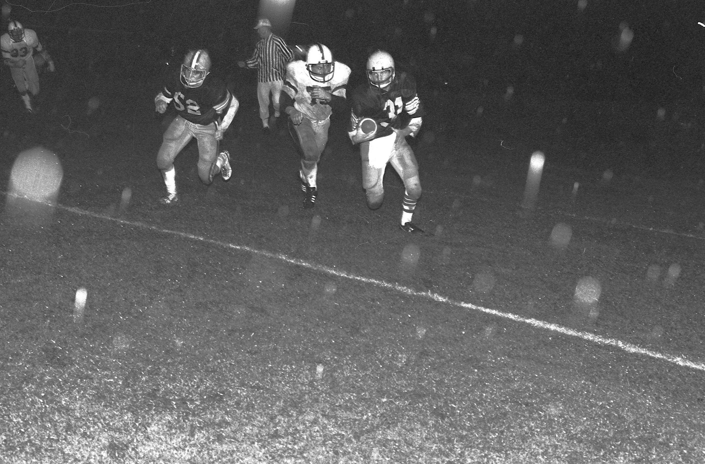 Football, 1979. These six black and white film negative strips were created for the Lacey Leader newspaper. These images show a (likely high school) football game being played.Made/Created