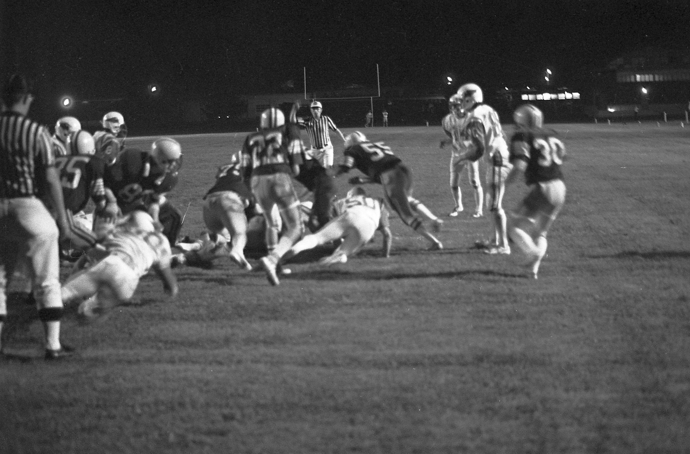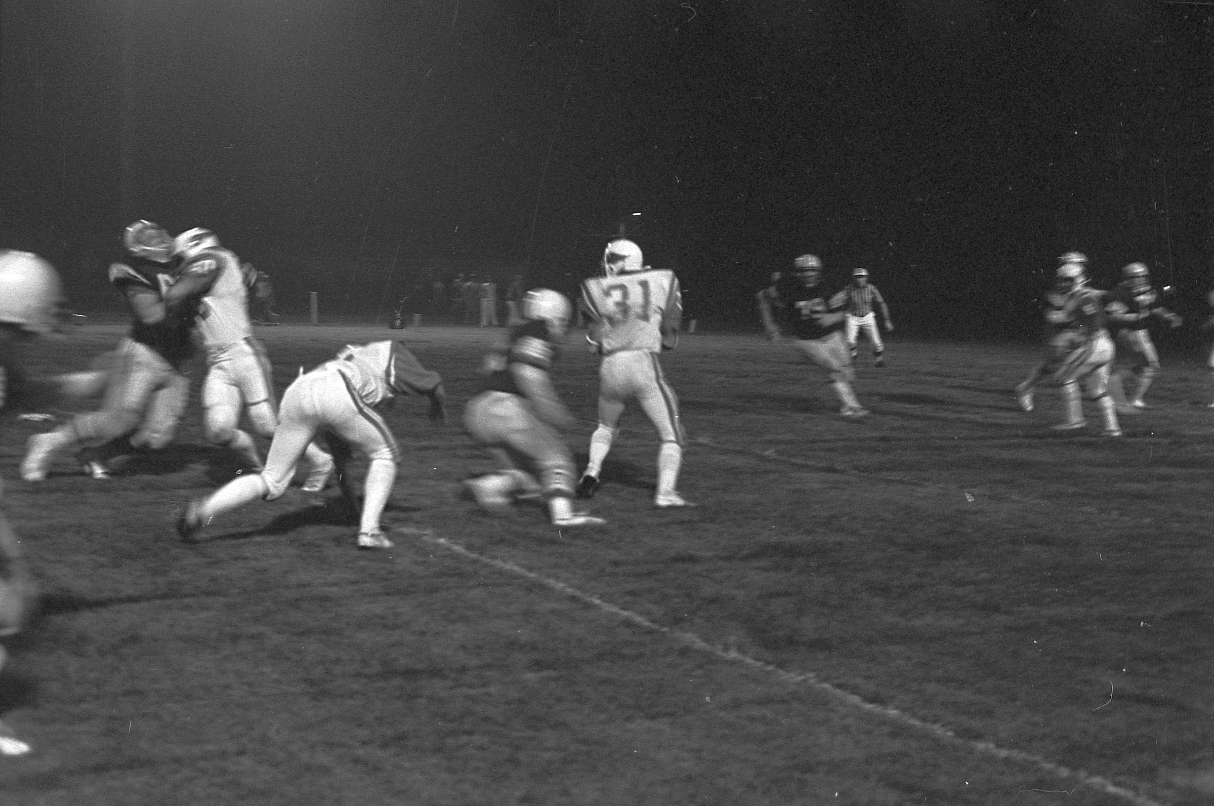 Football, 1979. These eight black and white film negative strips were created for the Lacey Leader newspaper. These images were created using three separate film rolls, so some of the physical numbers on the strips are repeated. For the purposes of this description, these strips will be grouped according to the film roll from which they originally came. Each group will be assigned a lower-case letter to go along with the physical numbers on the strips (ex: 1a, 2a, 3a, 1b, 2b, 3b, etc.) to help differentiate between images.