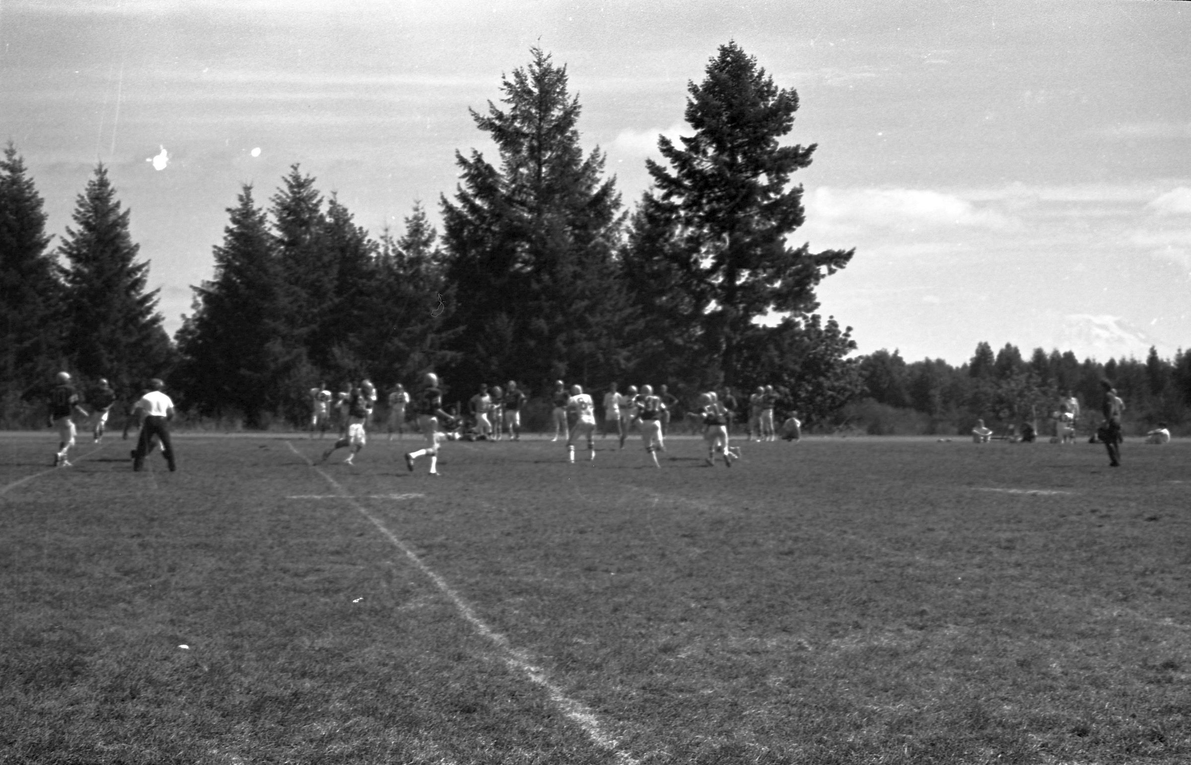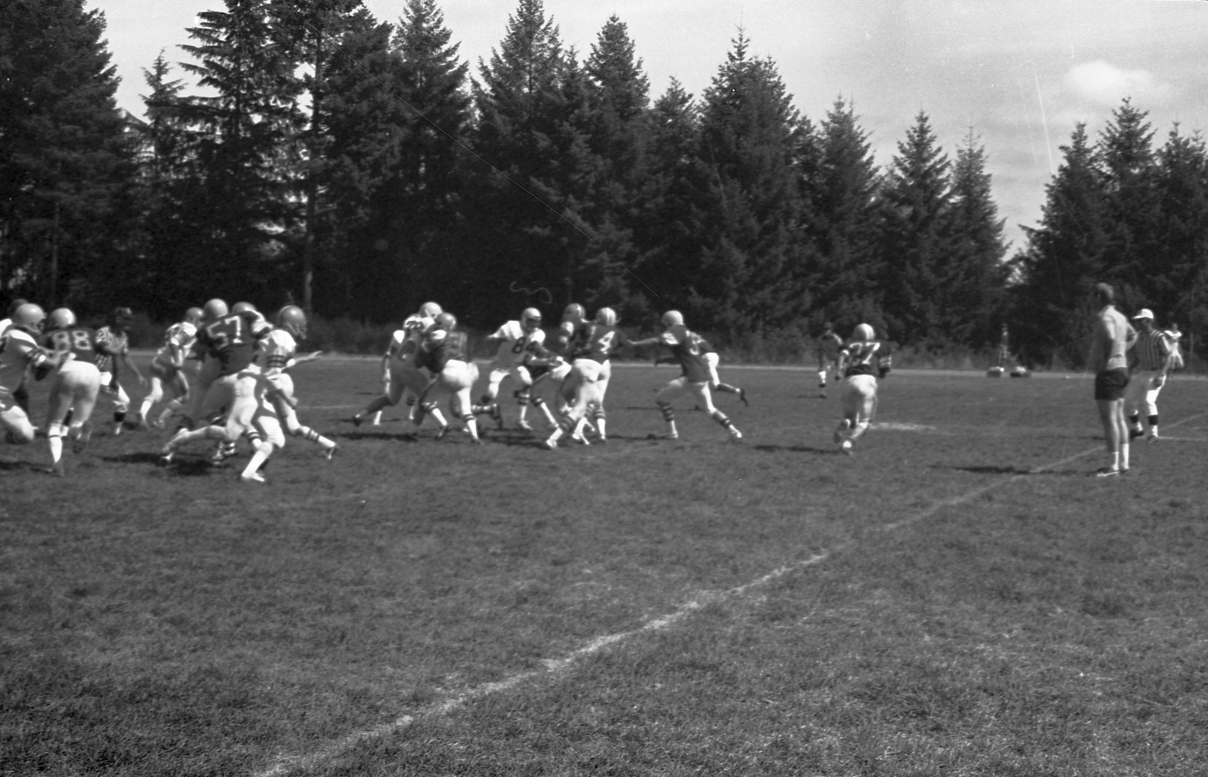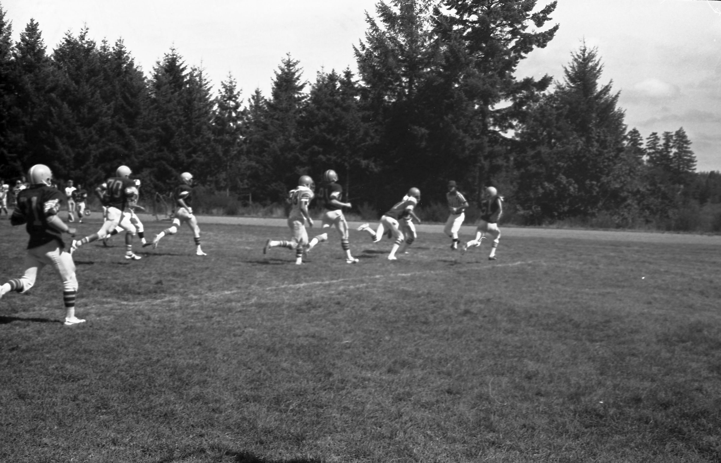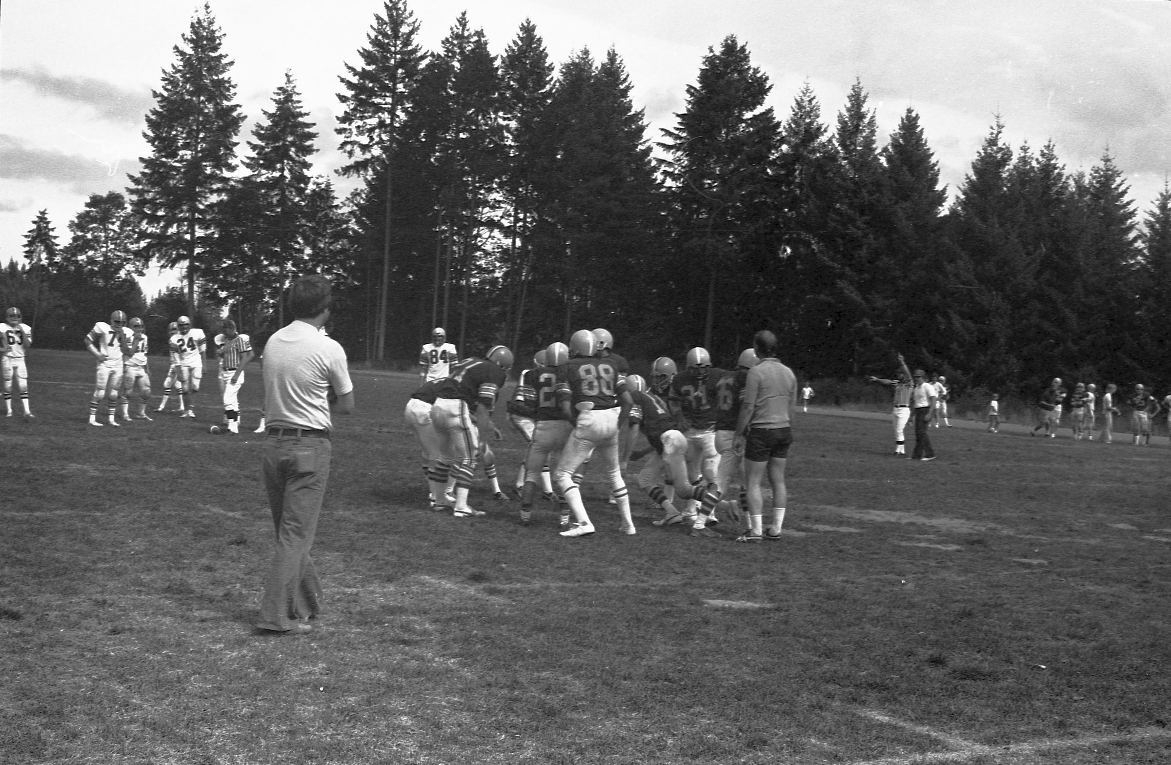 The images in group "c" show a football game between the team from North Thurston High School and an unknown team. These images are undated.Made/Created