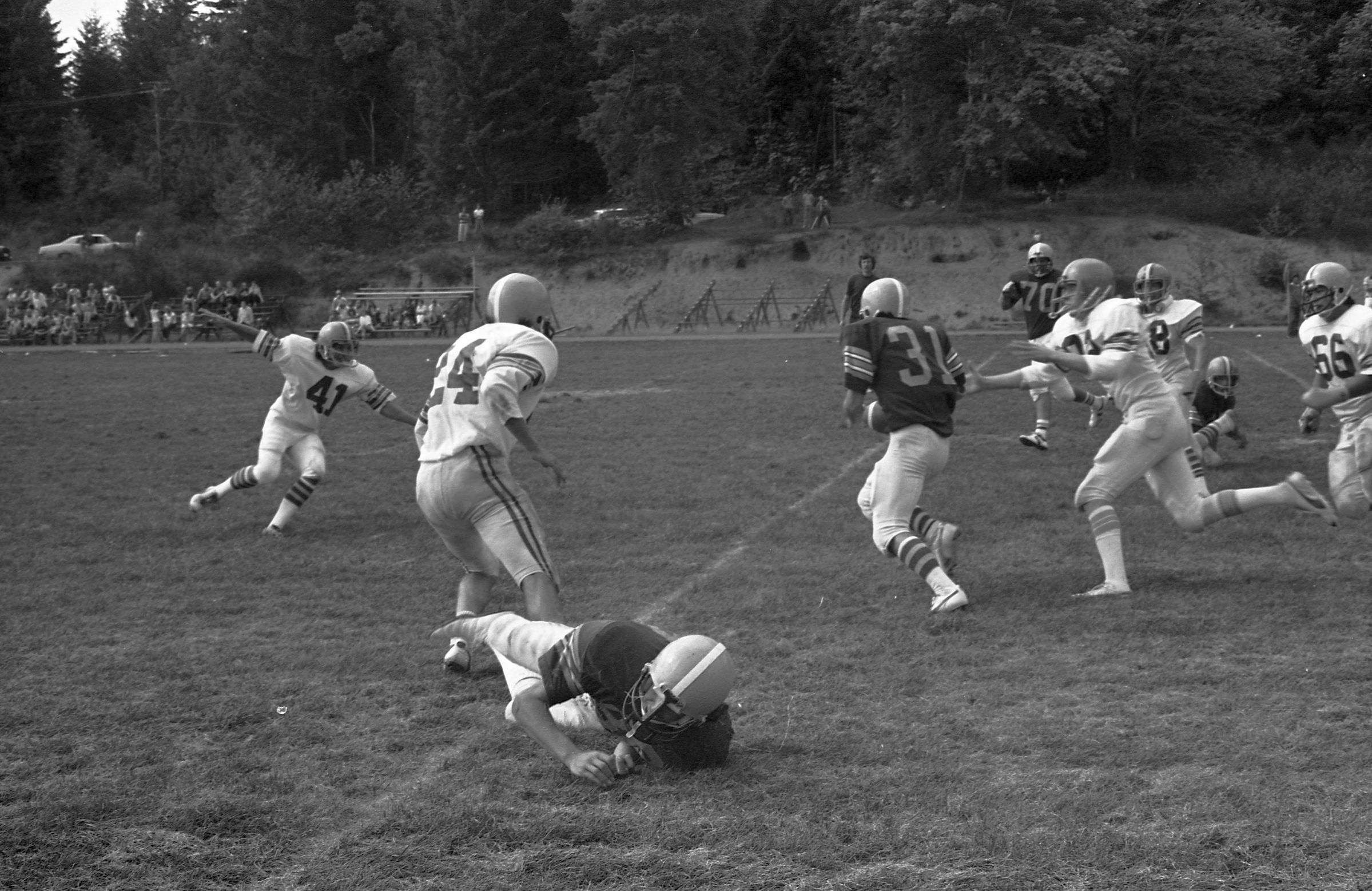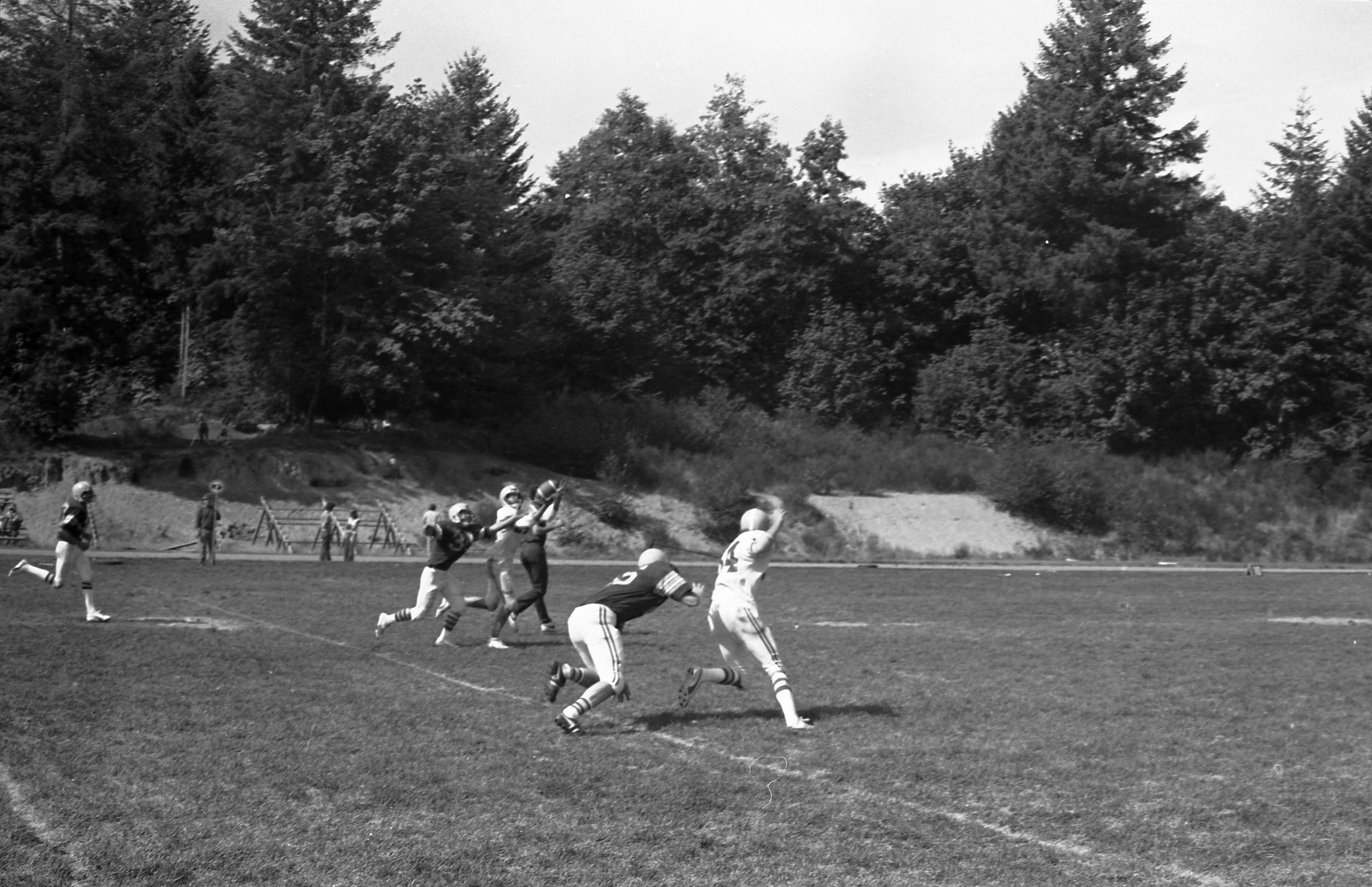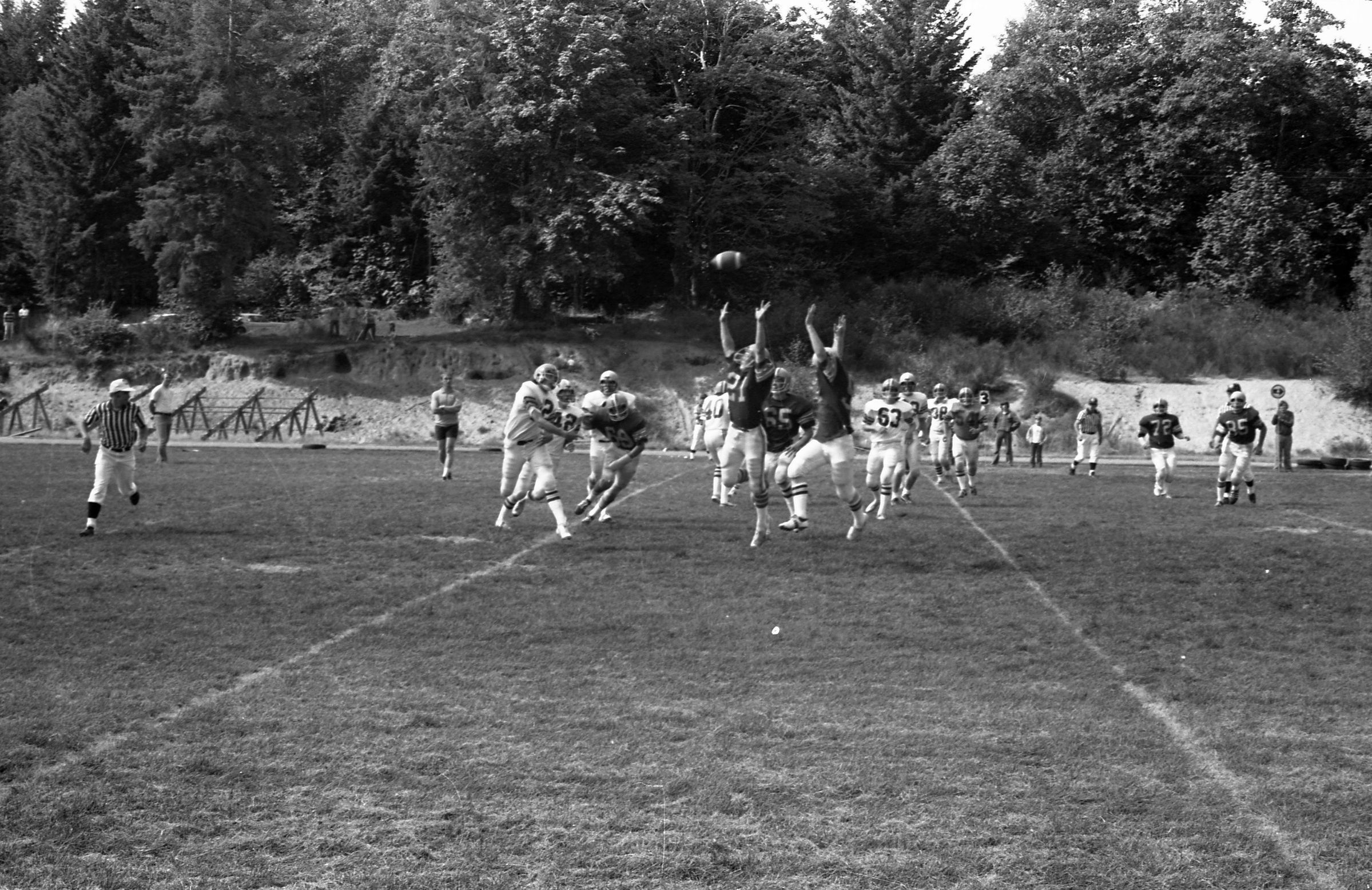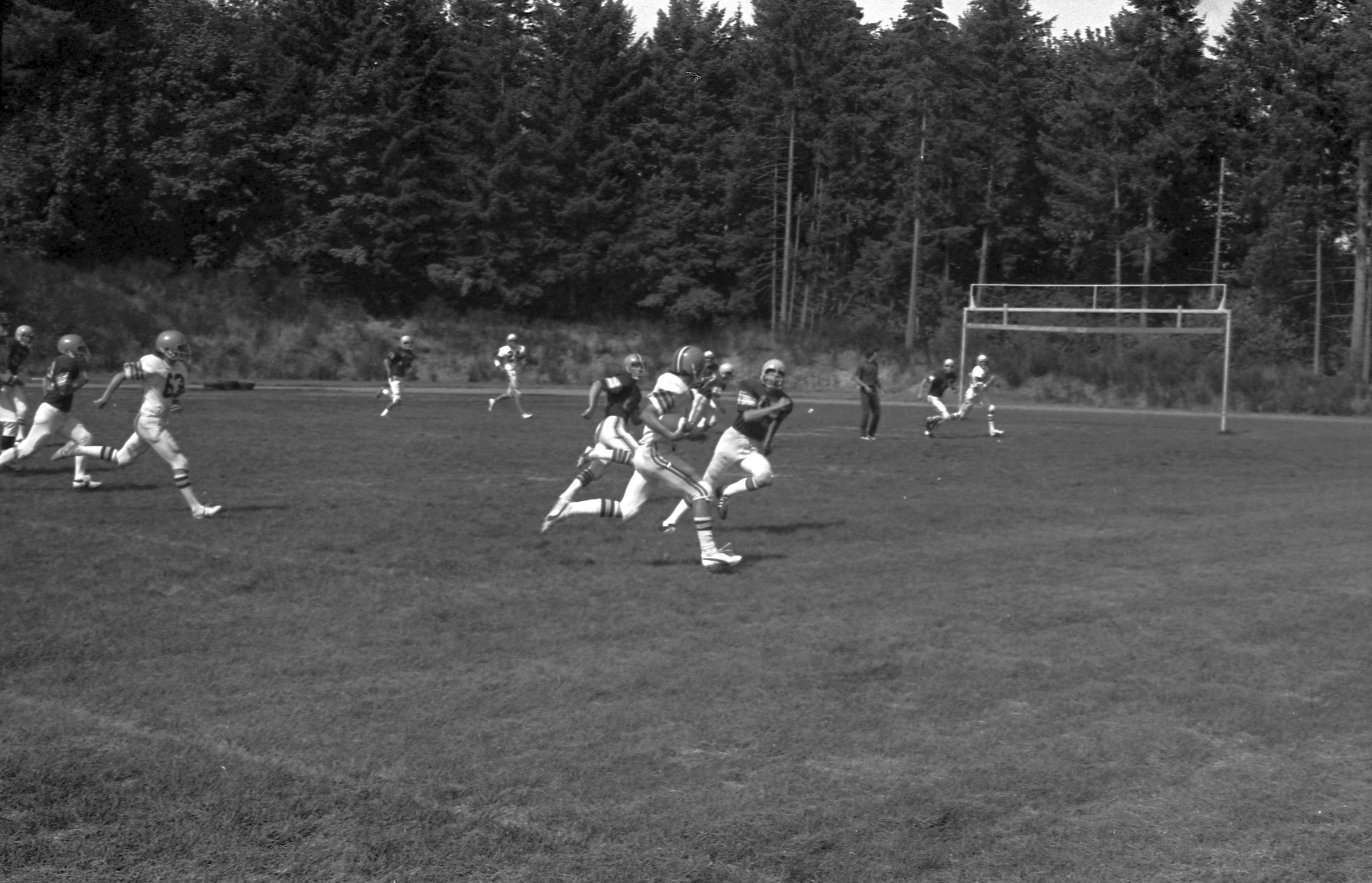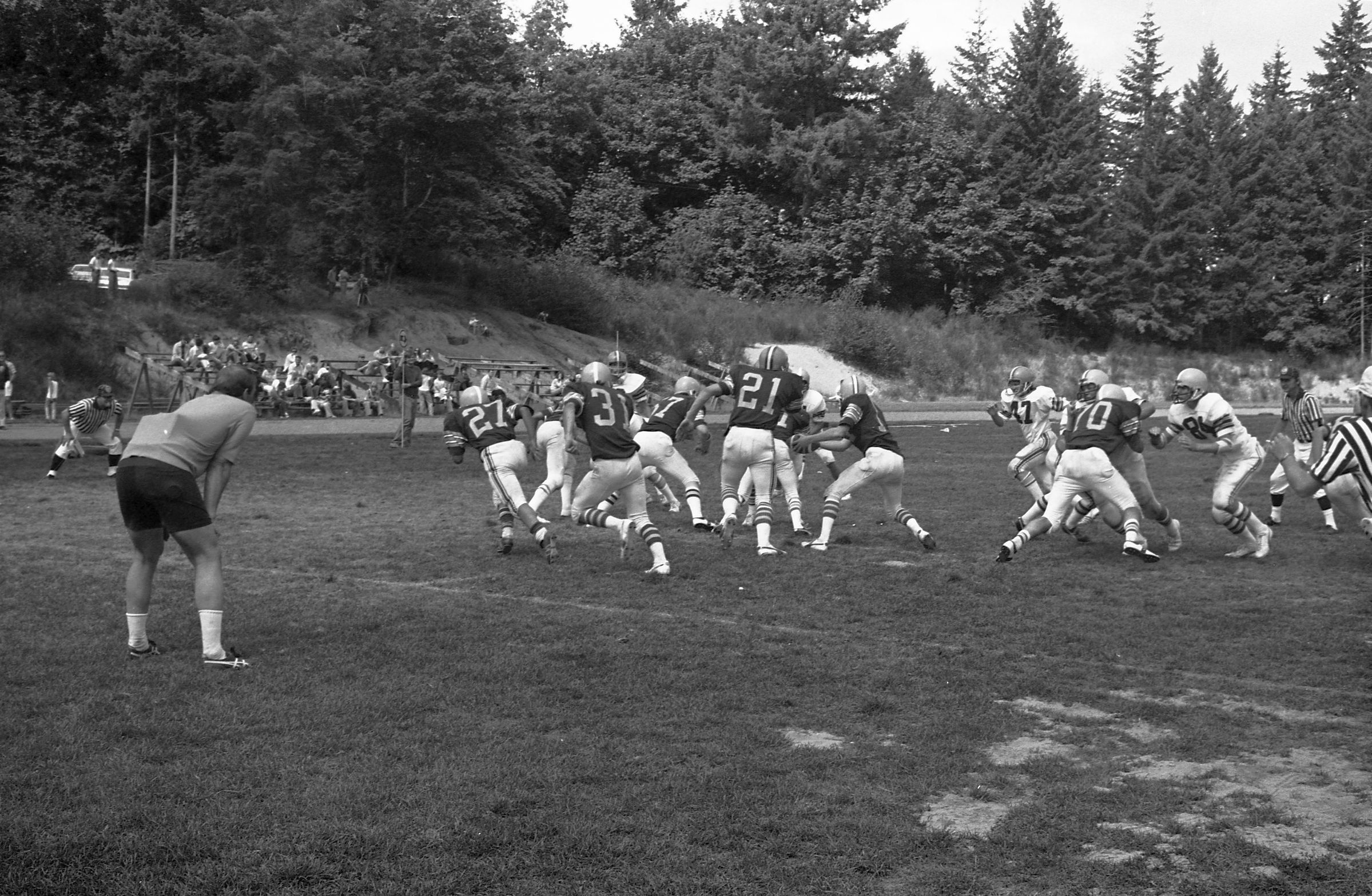 The images in group "c" show a football game between the team from North Thurston High School and an unknown team. These images are undated.Made/Created