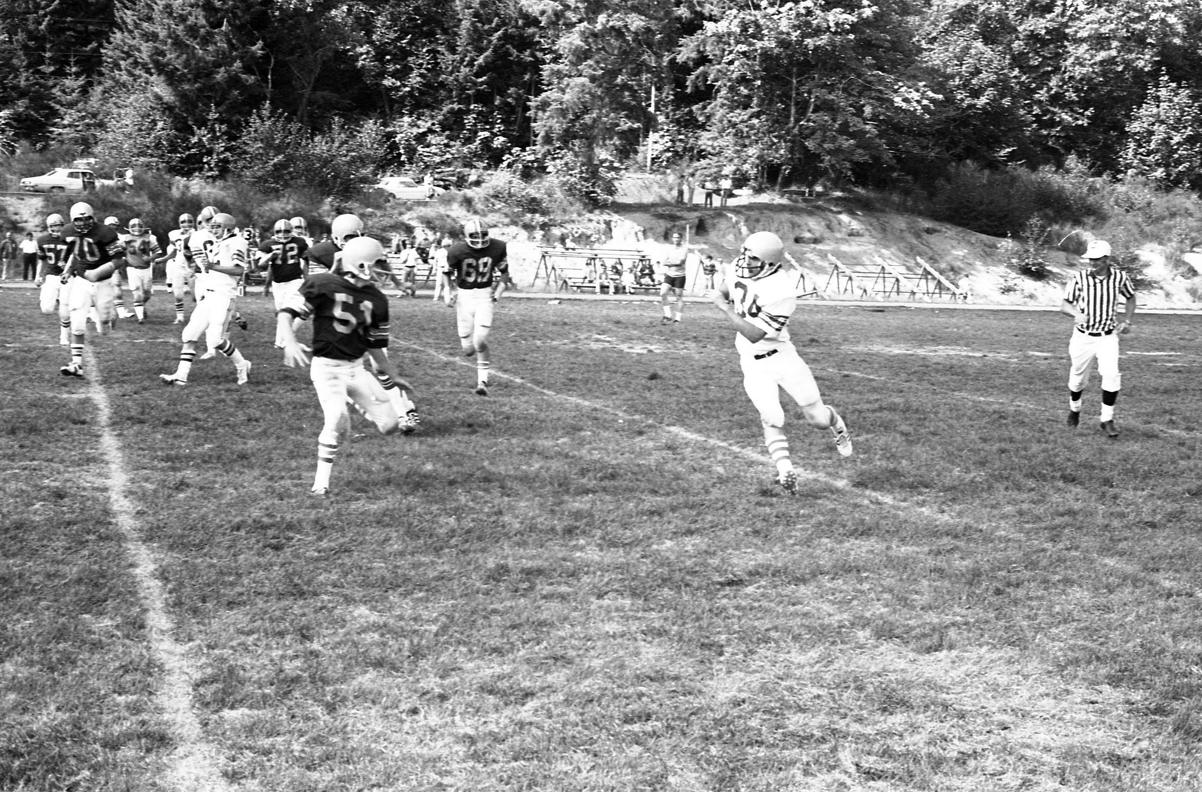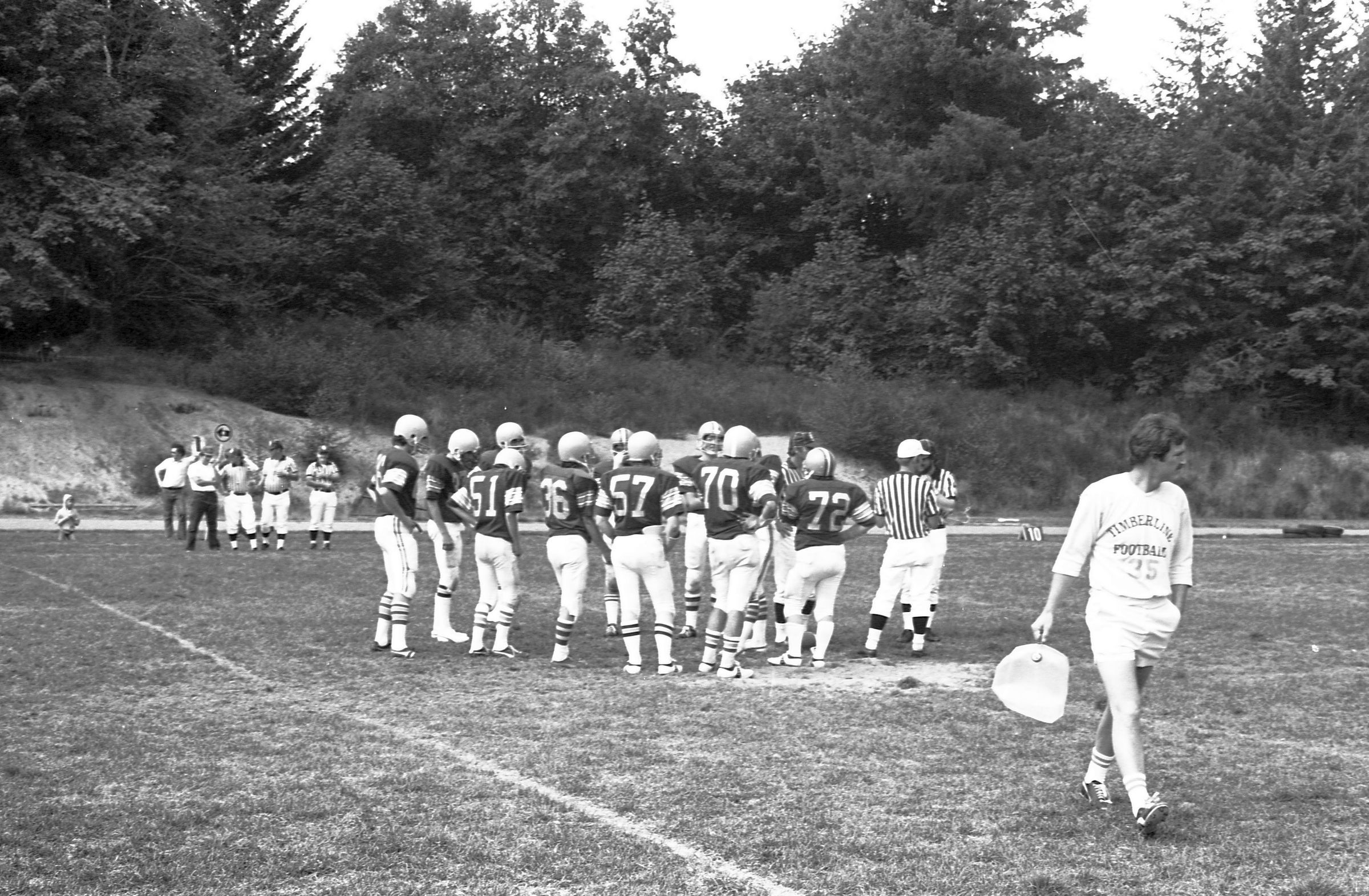 The images in group "b" show a football game between the teams from Timberline and Centralia High Schools. These images are dated 10-21-1977.