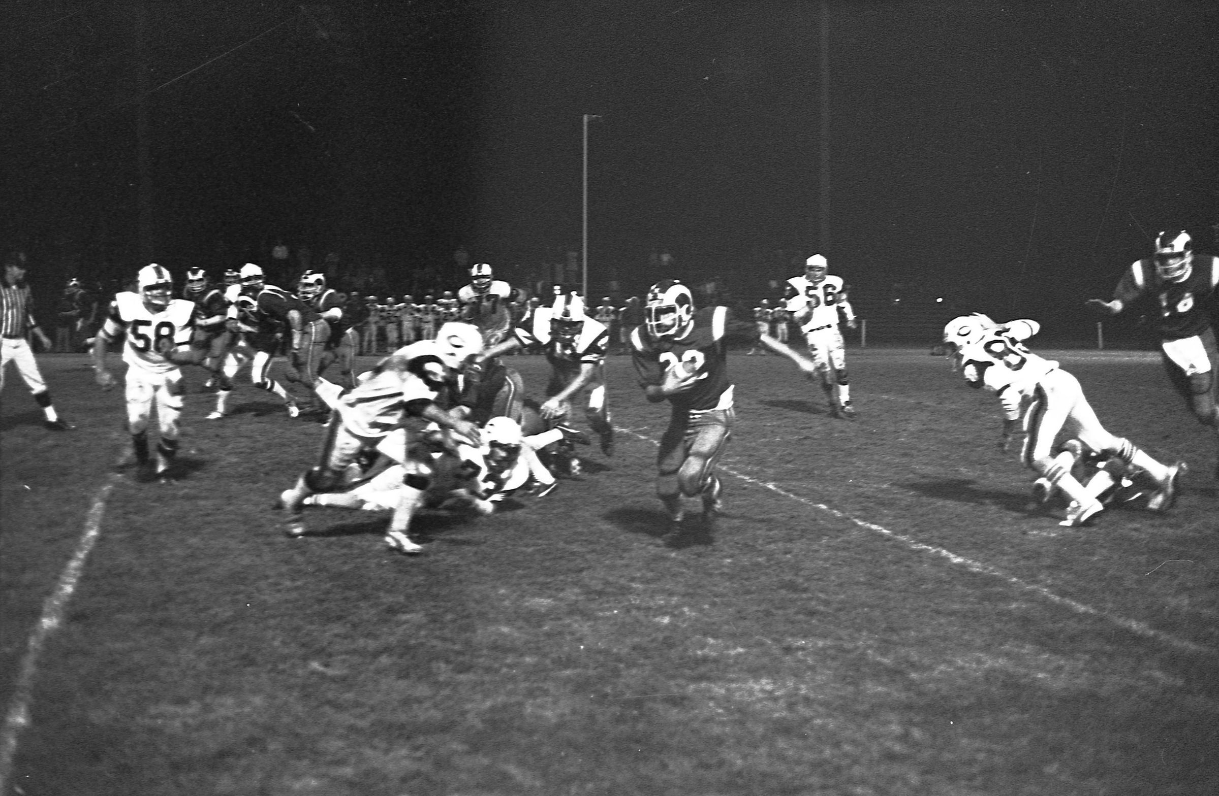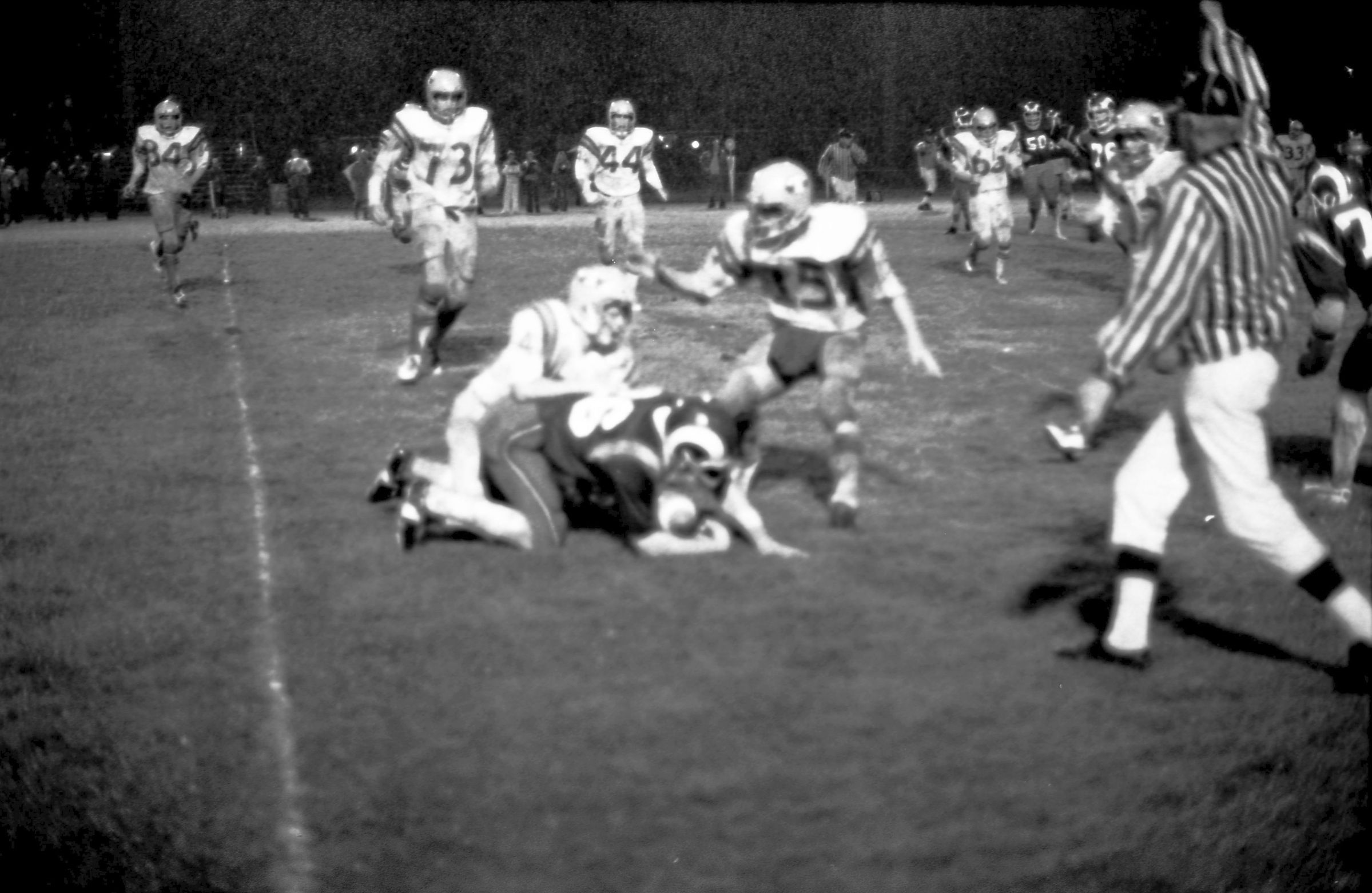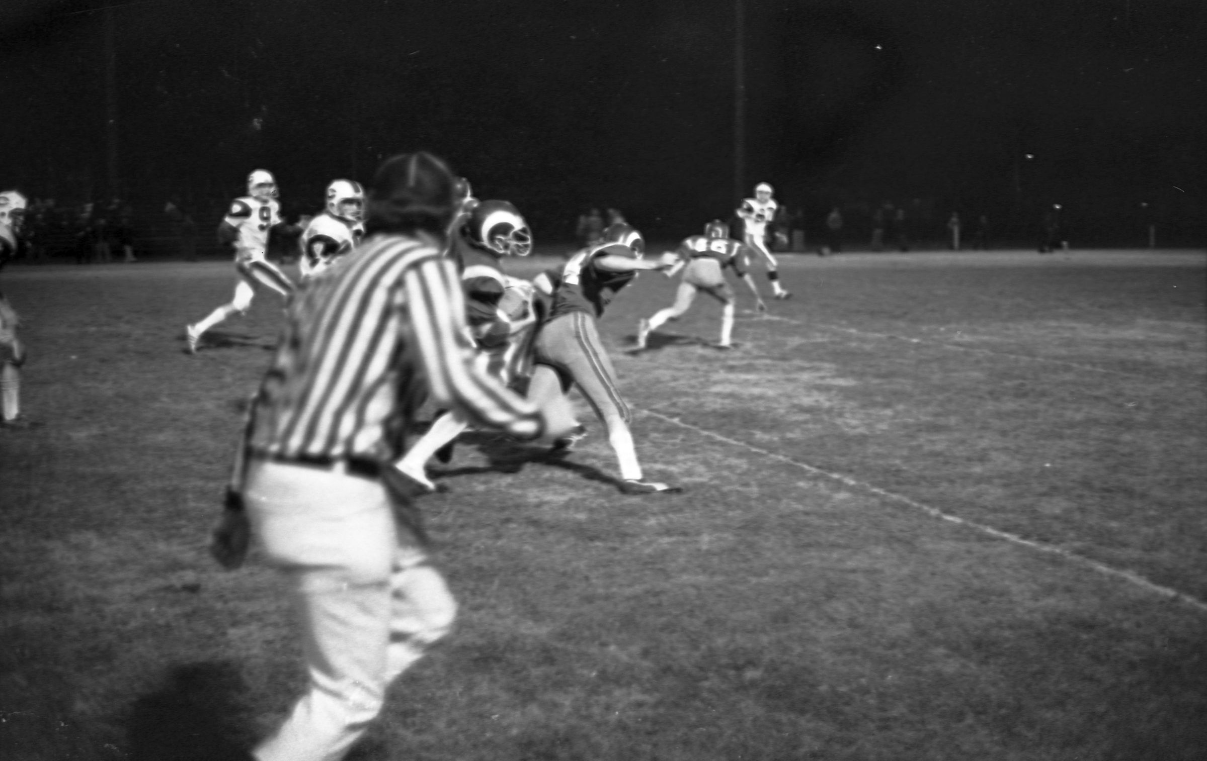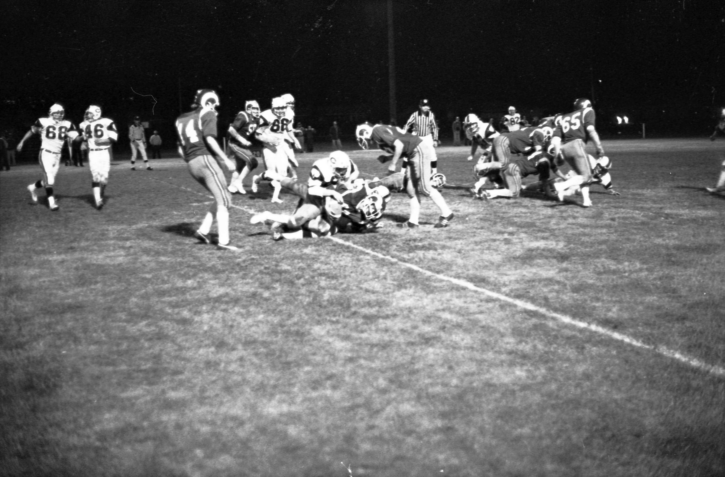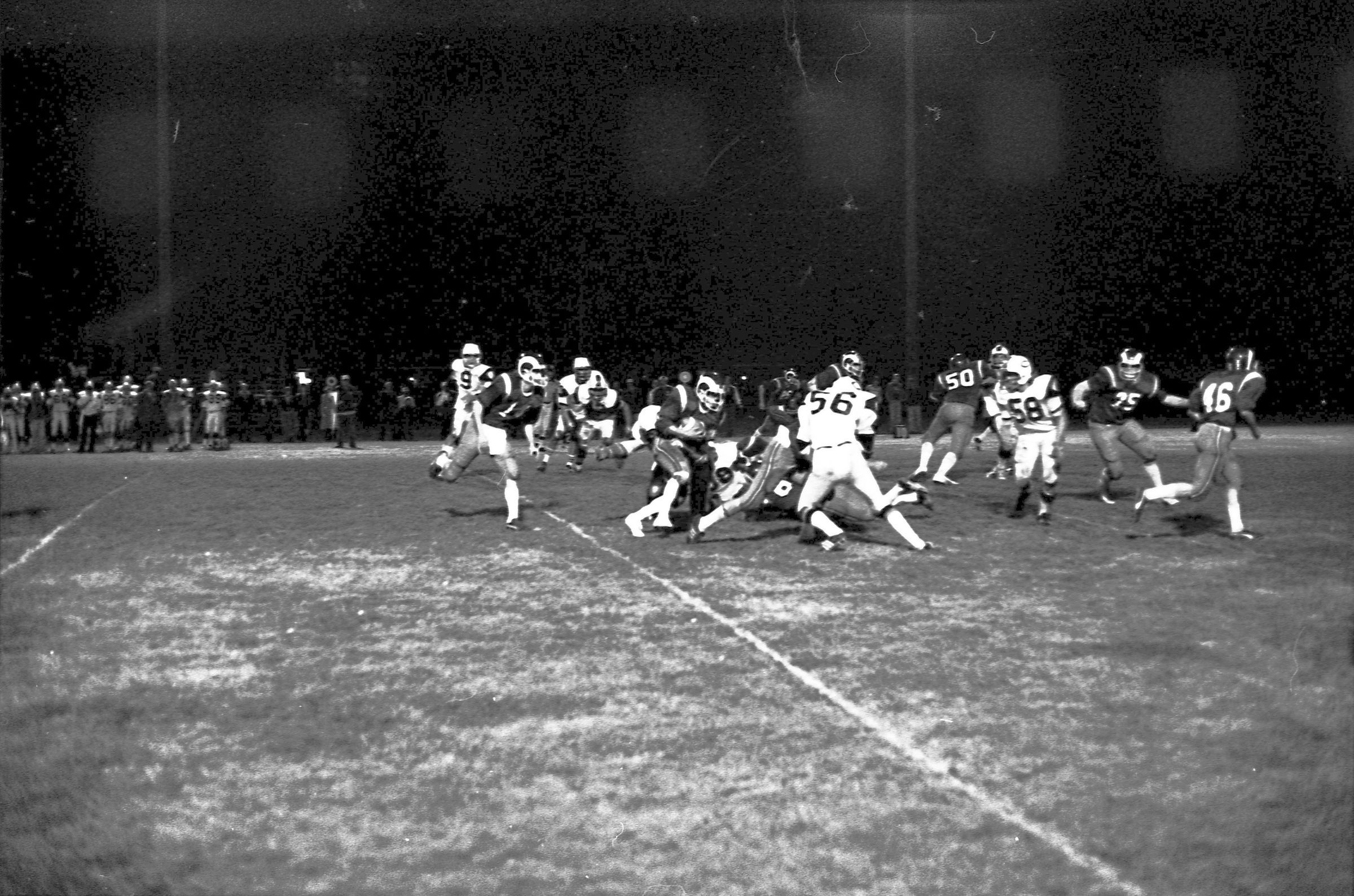 High School Football, 1978. These nine black and white film negative strips were created for the Lacey Leader newspaper. These images were created using two separate film rolls, so some of the physical numbers on the strips are repeated. For the purposes of this description, these strips will be grouped according to the film rolls from which they originally came. Each group will be assigned a lower-case letter to go along with the physical numbers on the strips (ex: 1a, 2a, 3a, 1b, 2b, 3b, etc.) to help differentiate between images.
