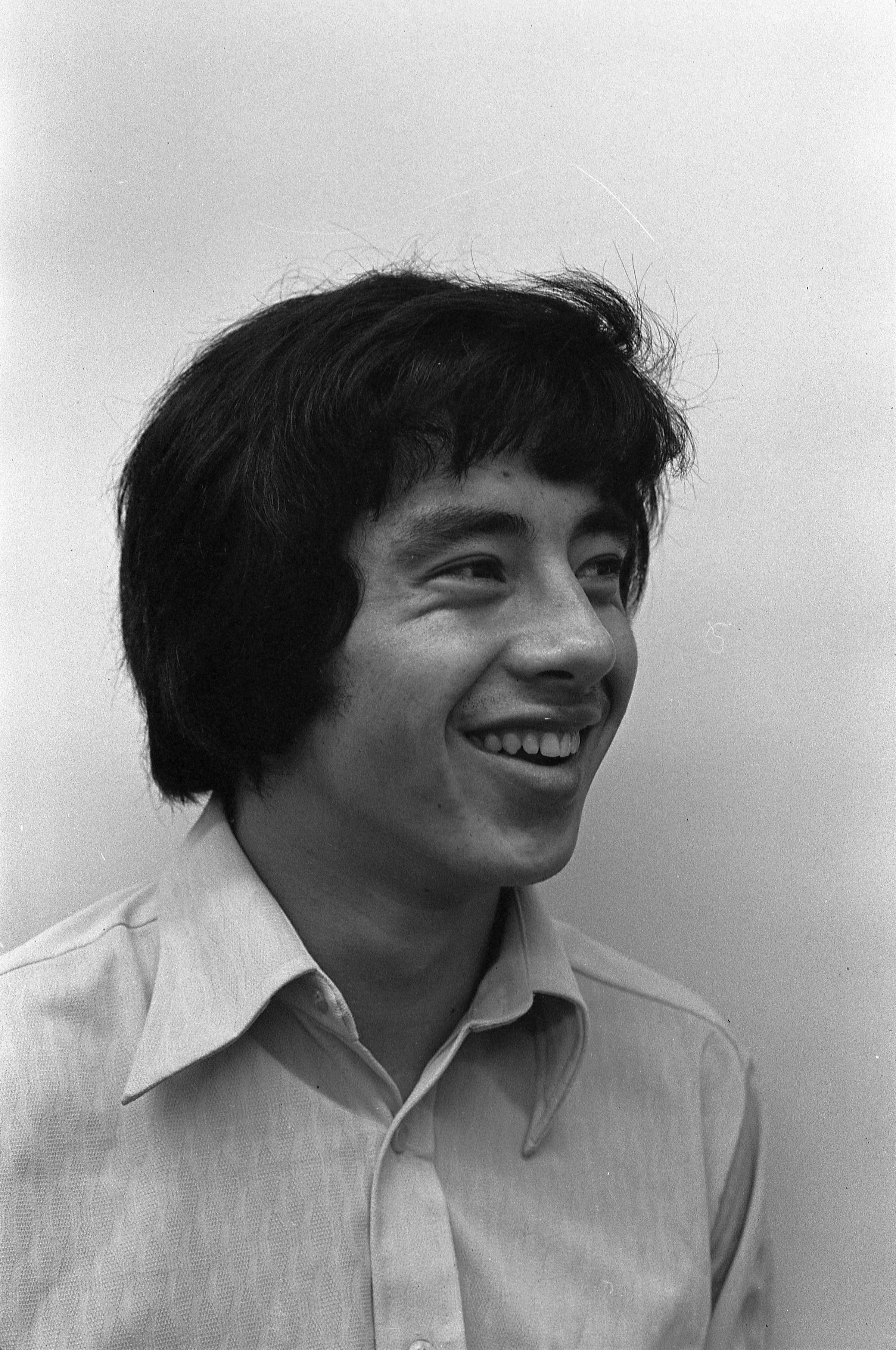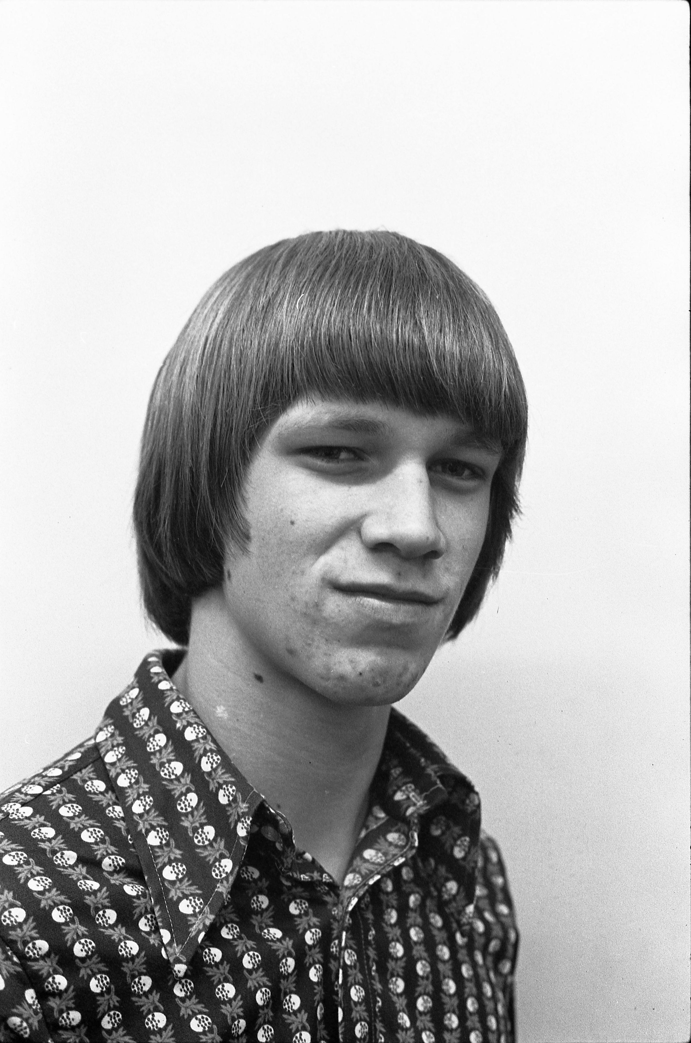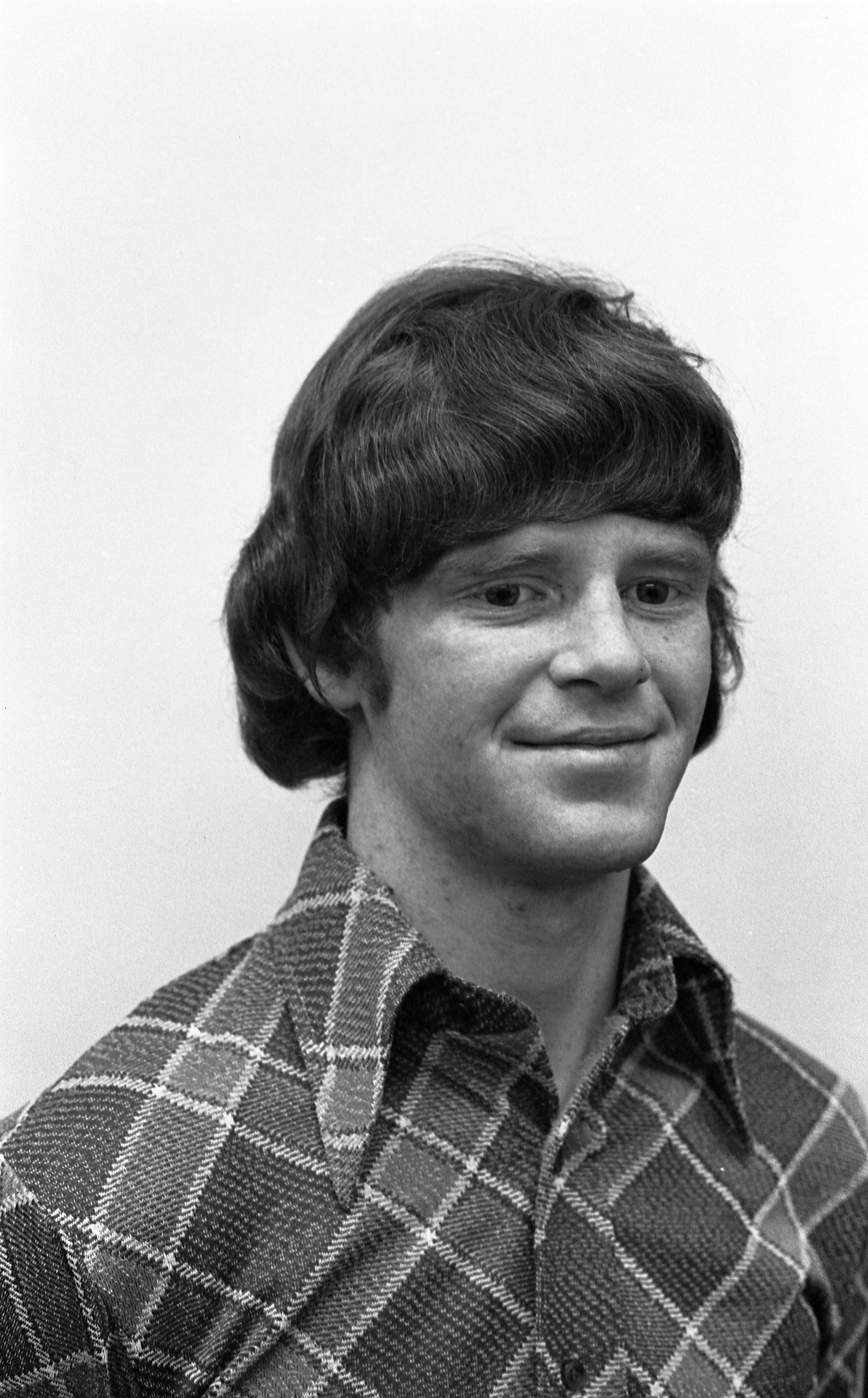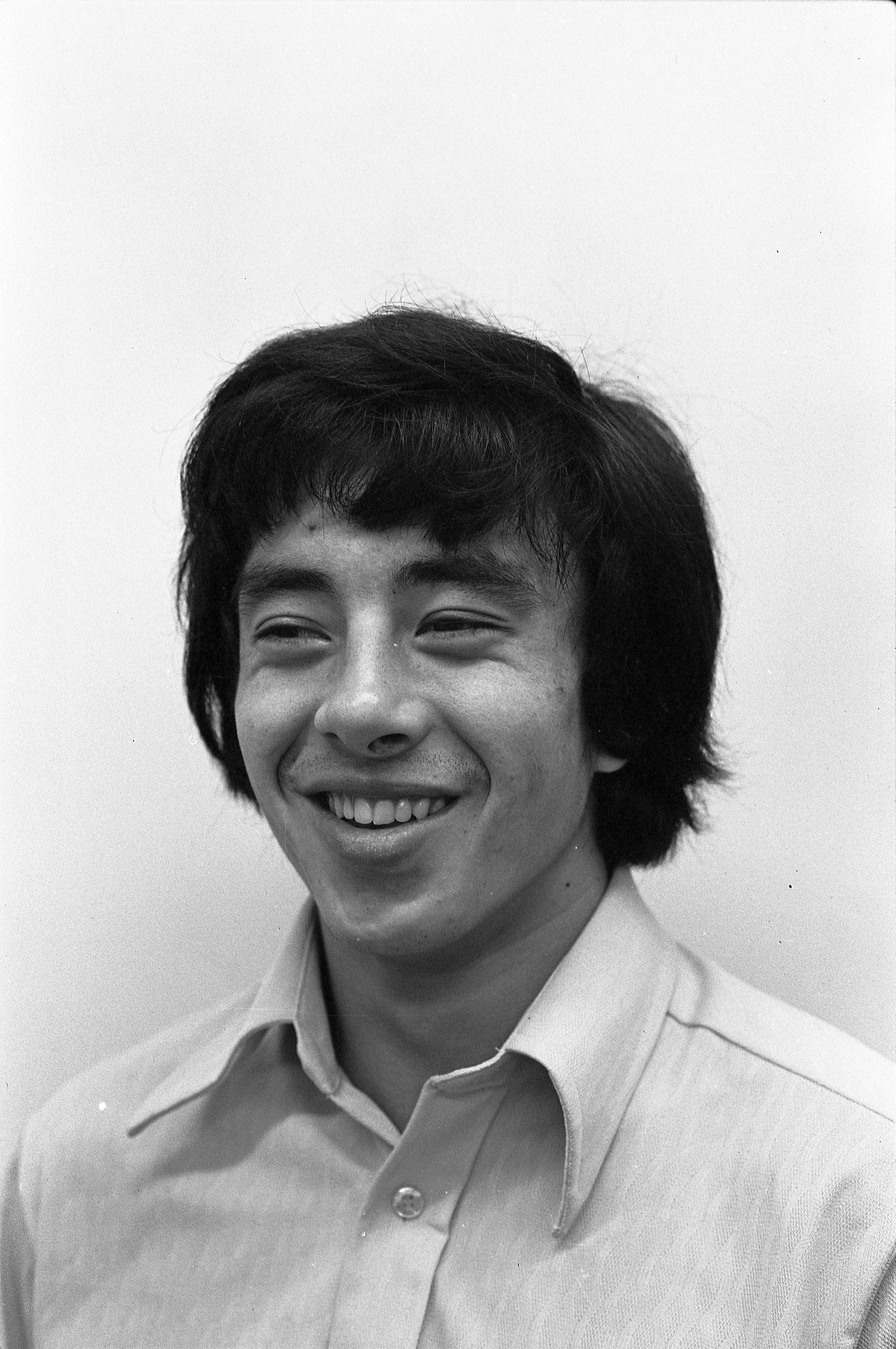 Football Award Winners, 1973. These two black and white film negative strips were created for the Lacey Leader newspaper. These images show four young men and one woman posing individually for portrait-style photos. There is no indication of the school which these young men played football.Made/Created