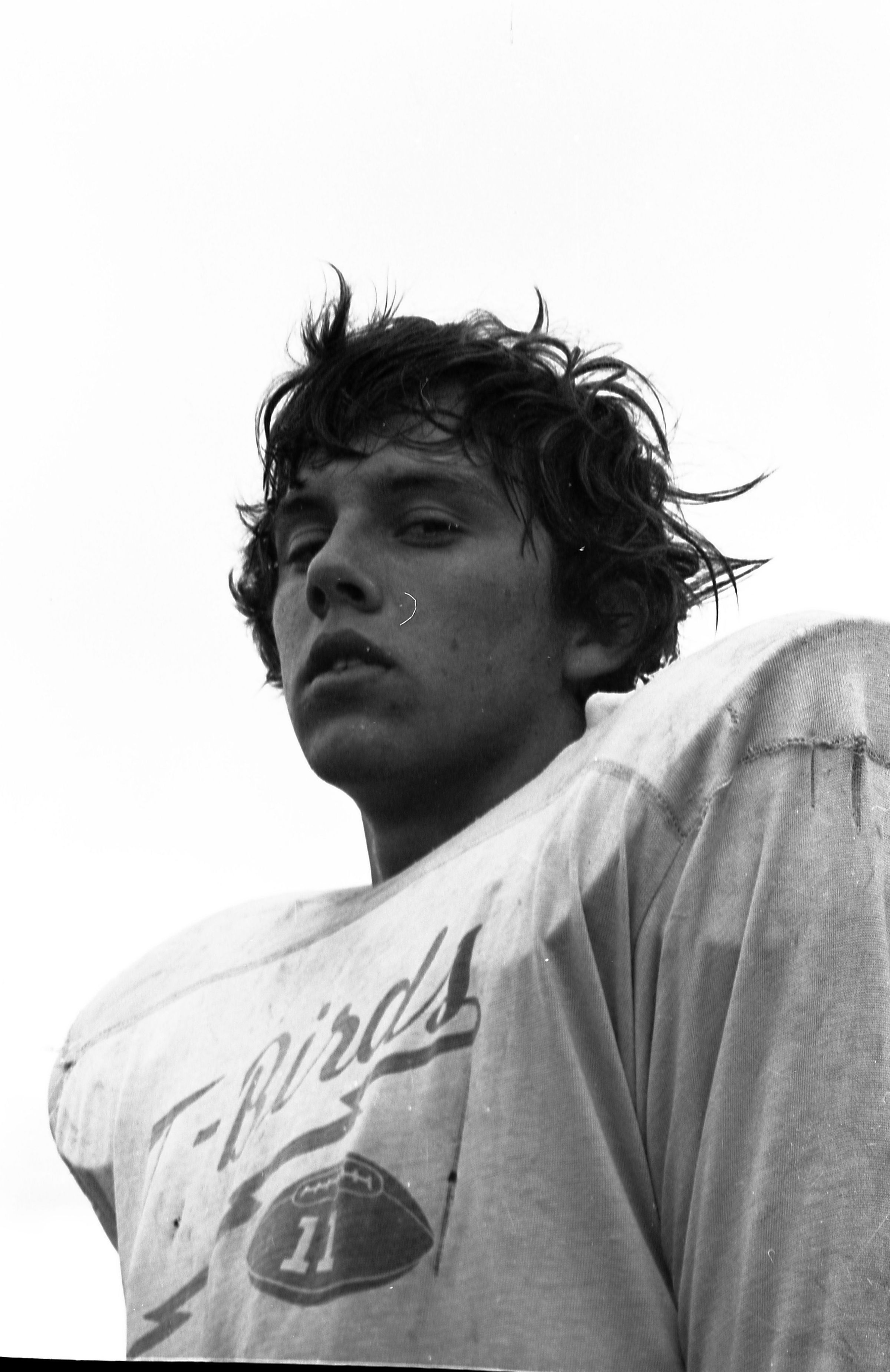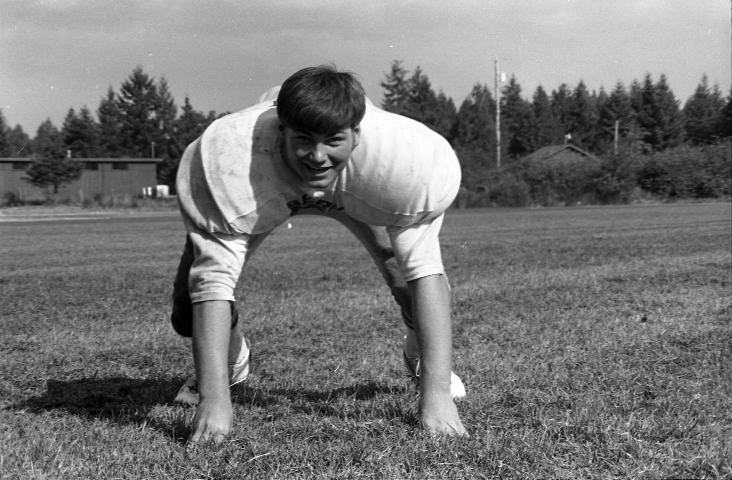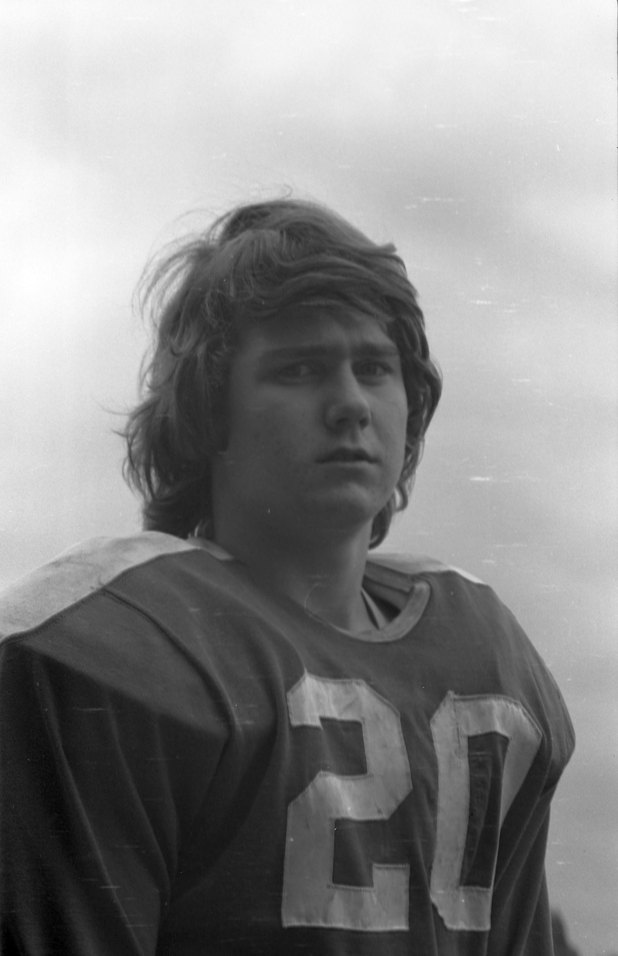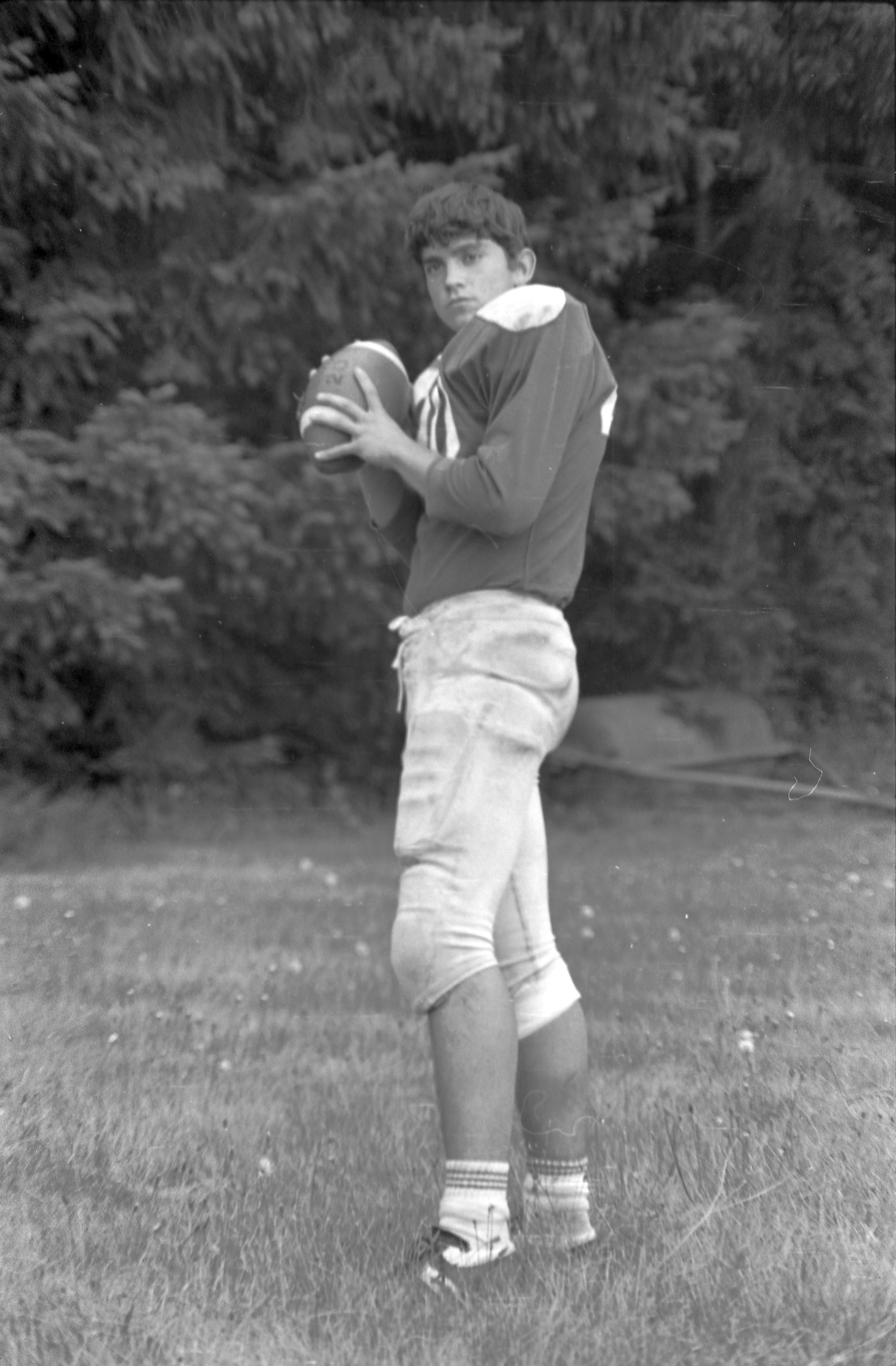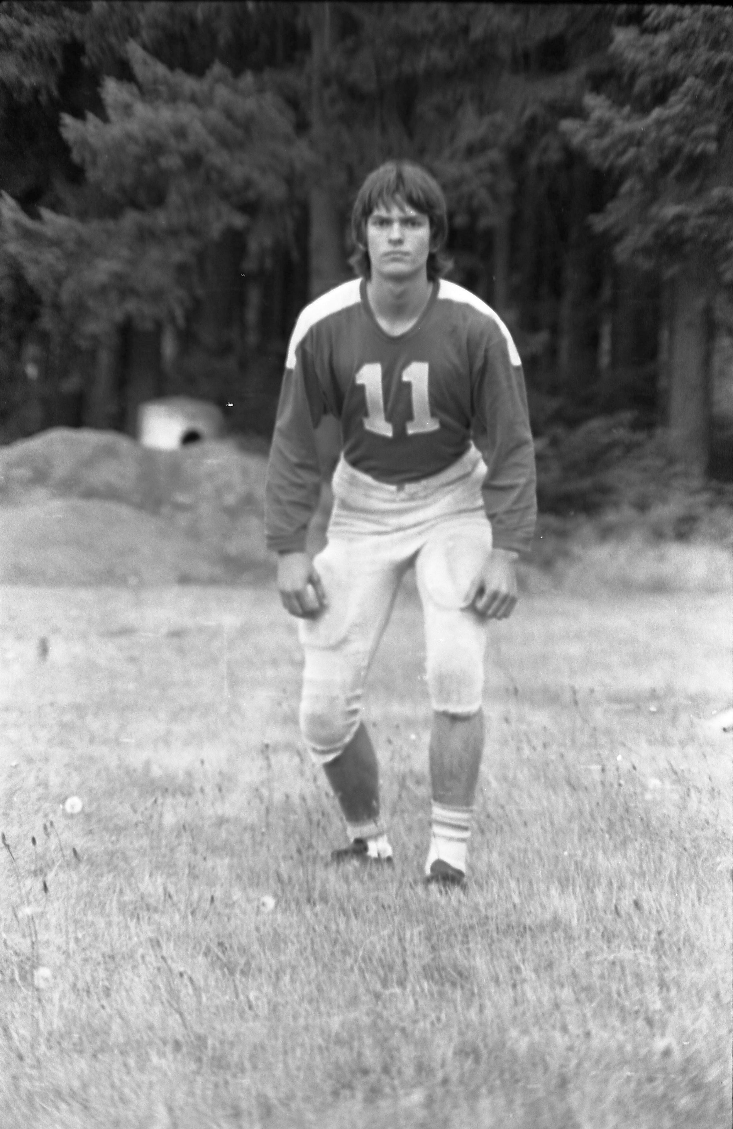 Football, 1973. These twenty black and white film negative strips were created for the Lacey Leader newspaper. These images were created using five separate film rolls, so some of the physical numbers on the strips are repeated. For the purposes of this description, these strips will be grouped according to the film roll from which they originally came. Each group will be assigned a lower-case letter to go along with the physical numbers on the strips (ex: 1a, 2a, 3a, 1b, 2b, 3b, etc.) to help differentiate between images.