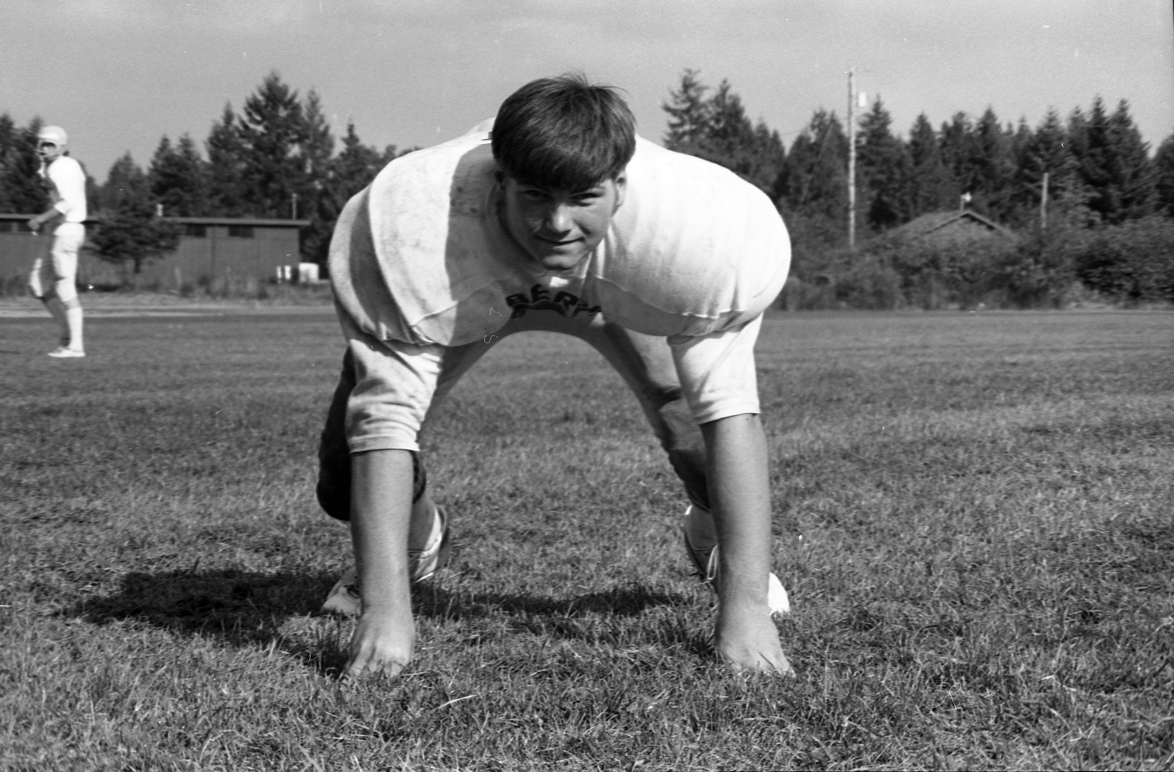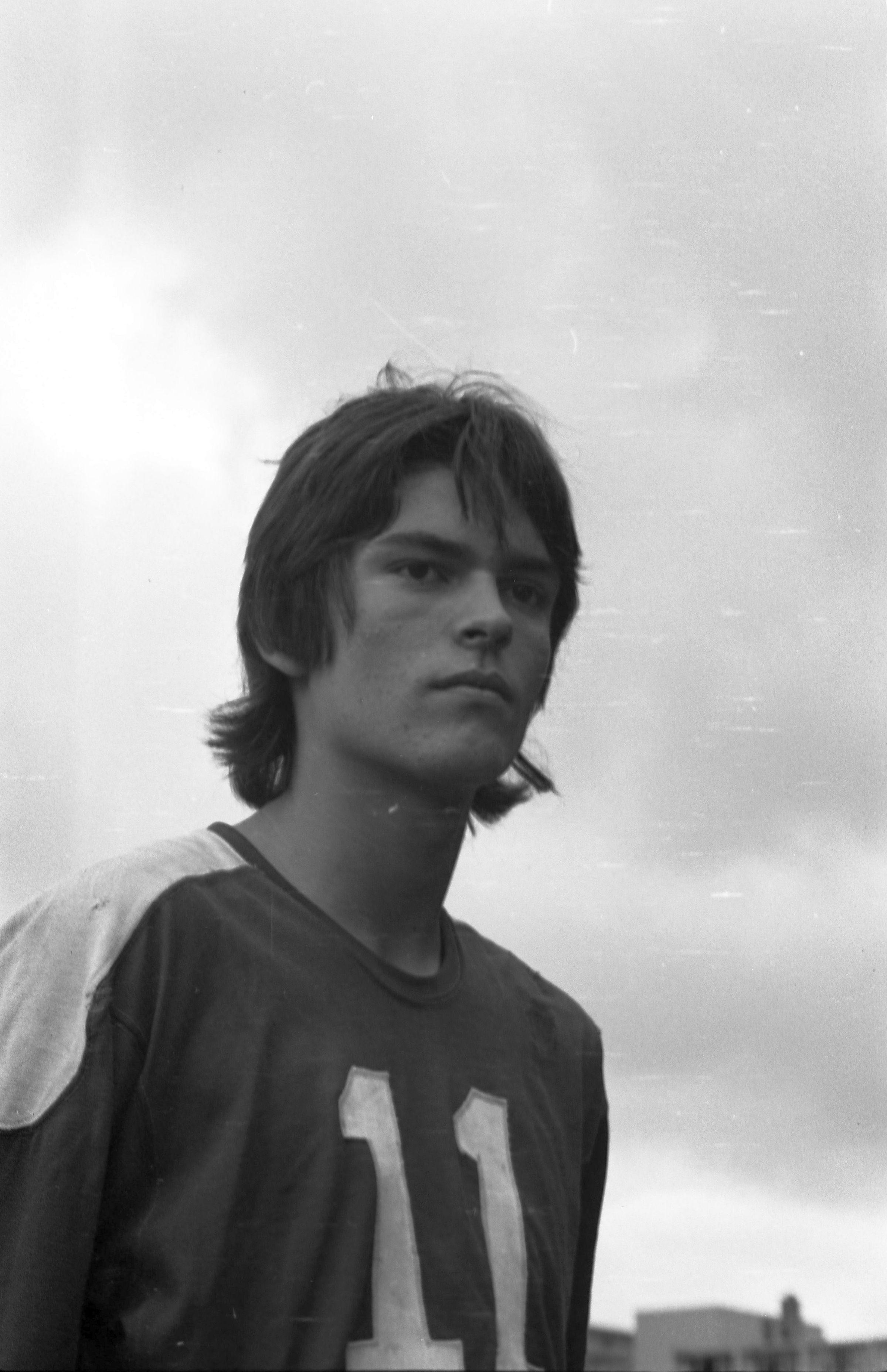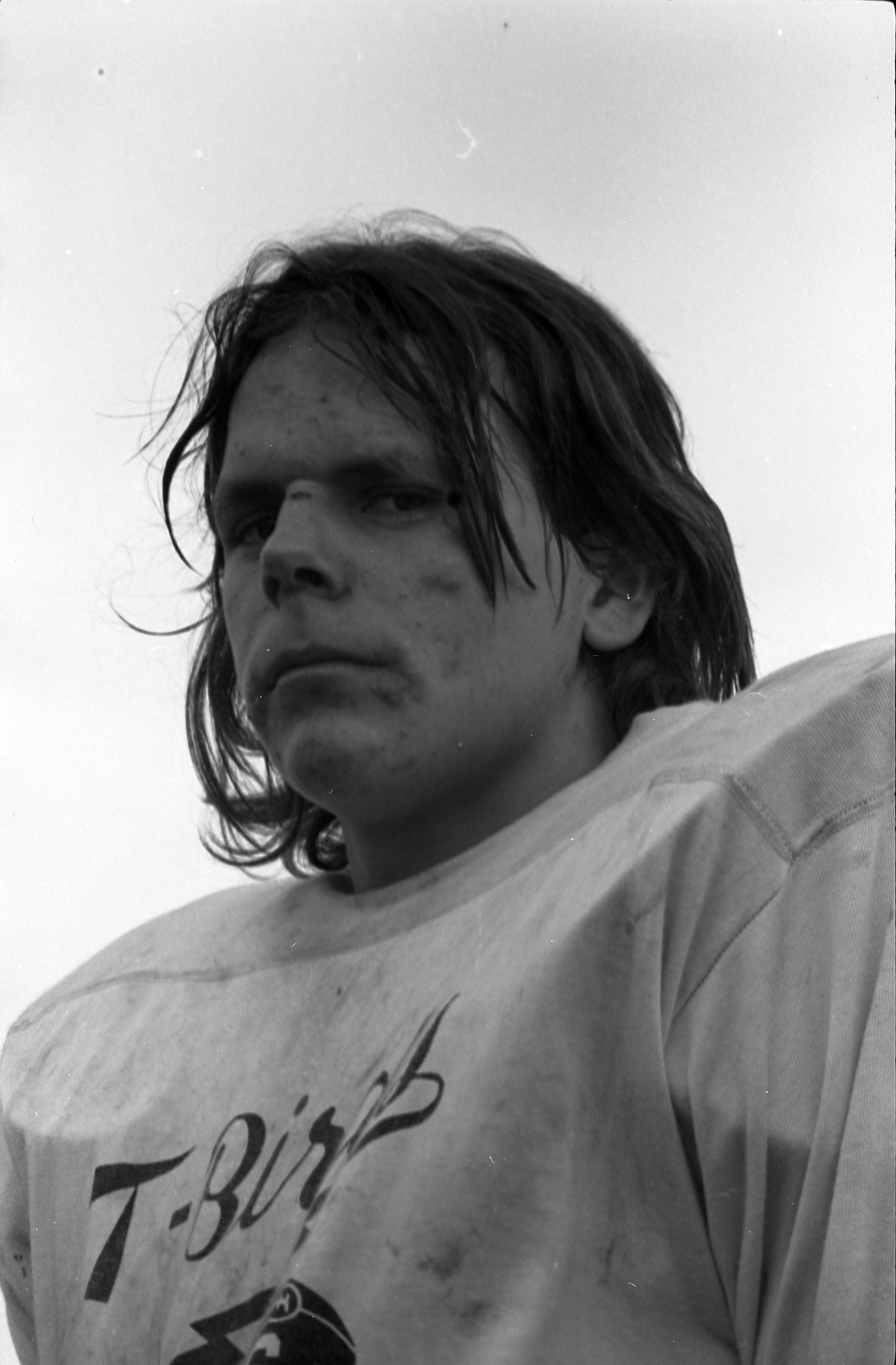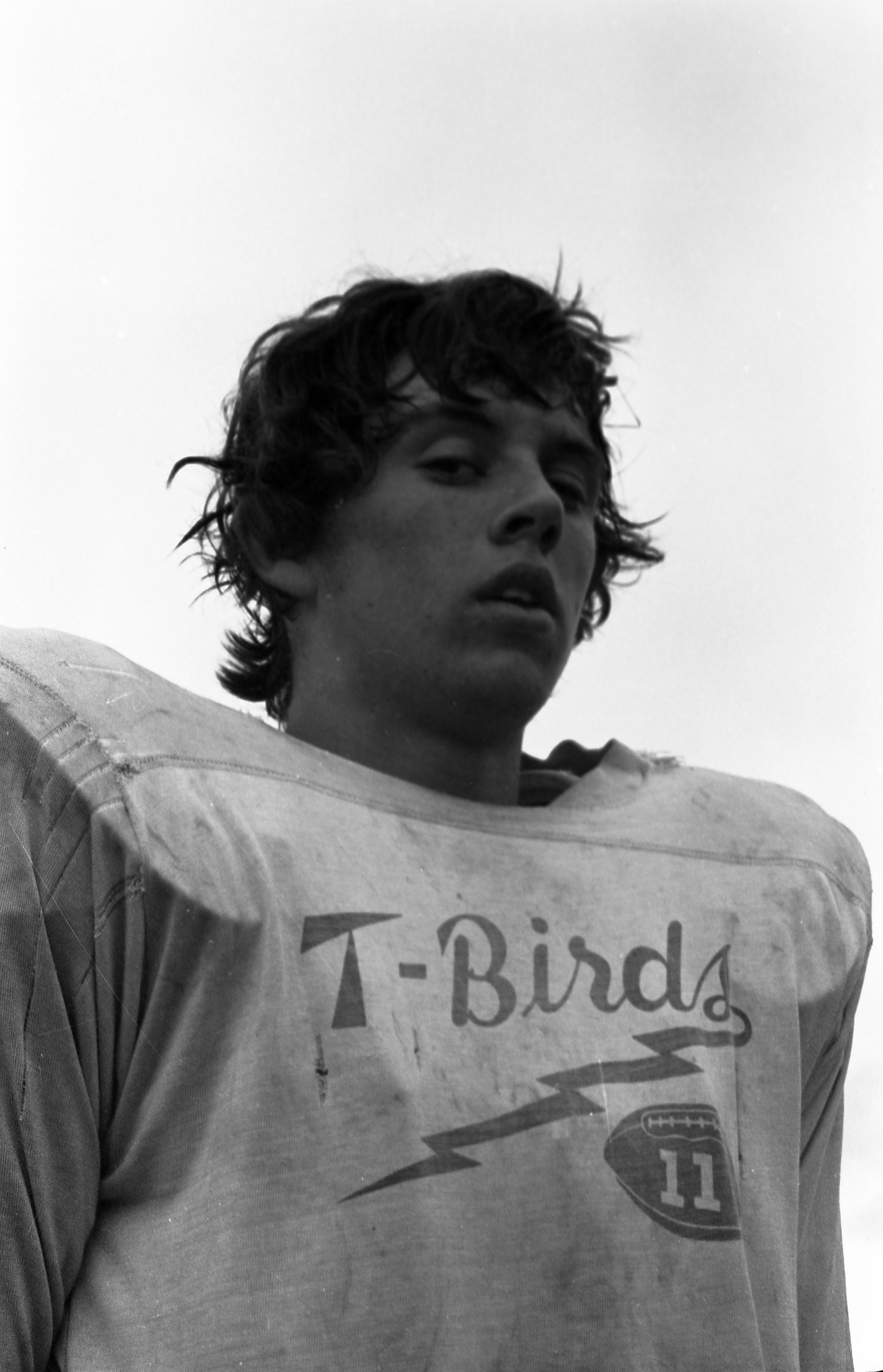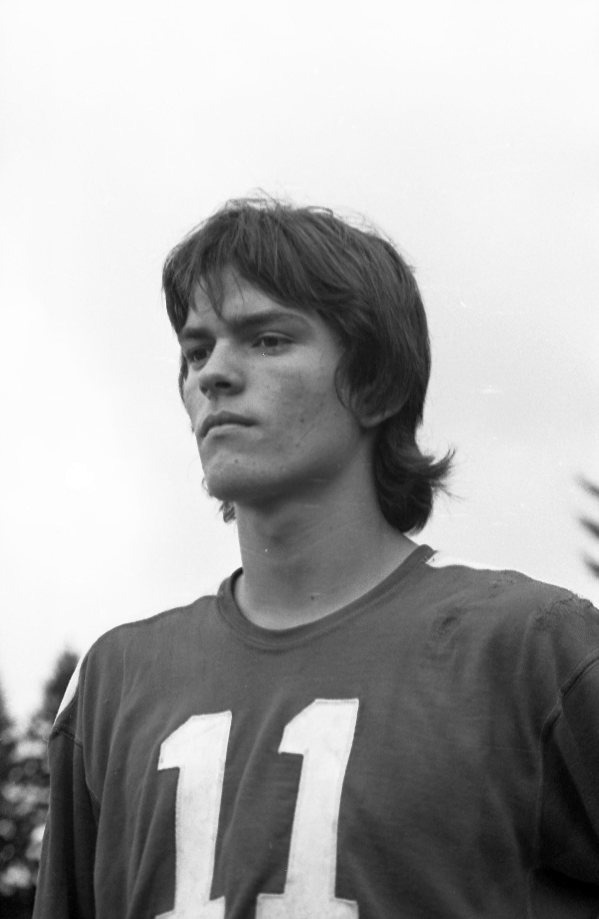 Football, 1973. These twenty black and white film negative strips were created for the Lacey Leader newspaper. These images were created using five separate film rolls, so some of the physical numbers on the strips are repeated. For the purposes of this description, these strips will be grouped according to the film roll from which they originally came. Each group will be assigned a lower-case letter to go along with the physical numbers on the strips (ex: 1a, 2a, 3a, 1b, 2b, 3b, etc.) to help differentiate between images.