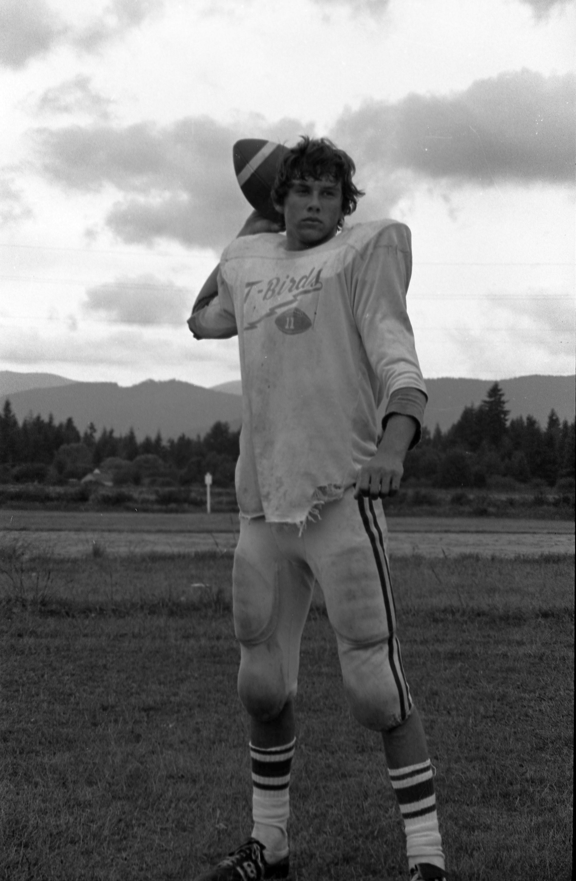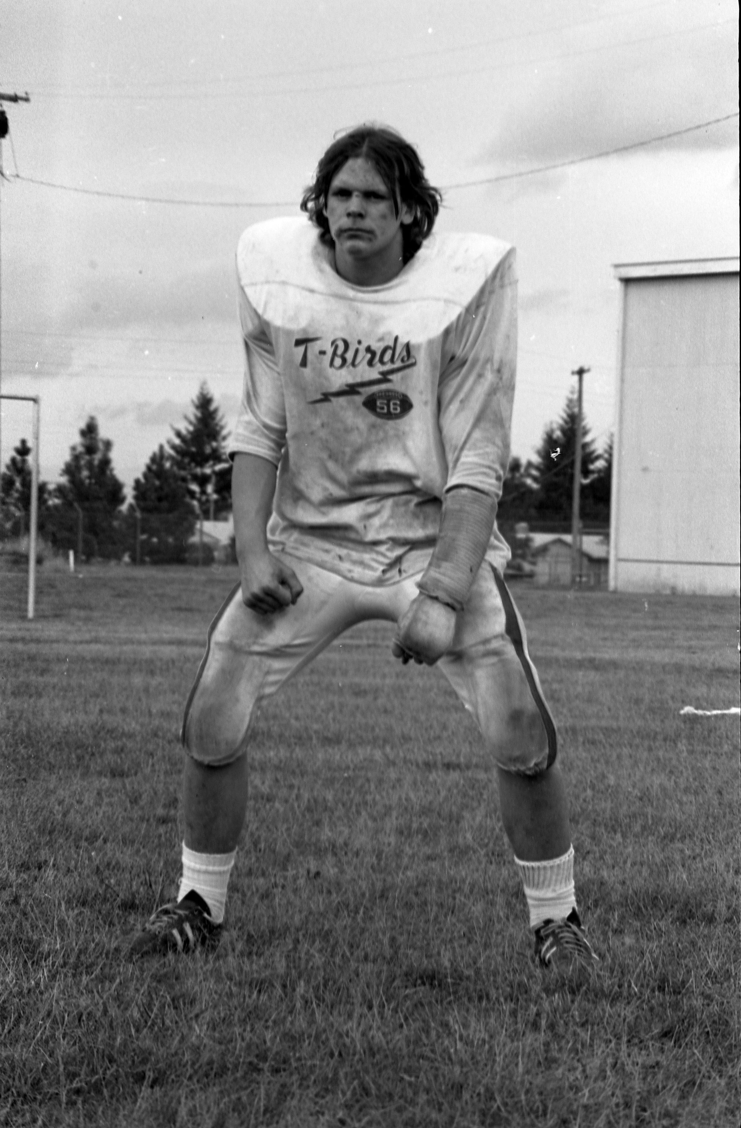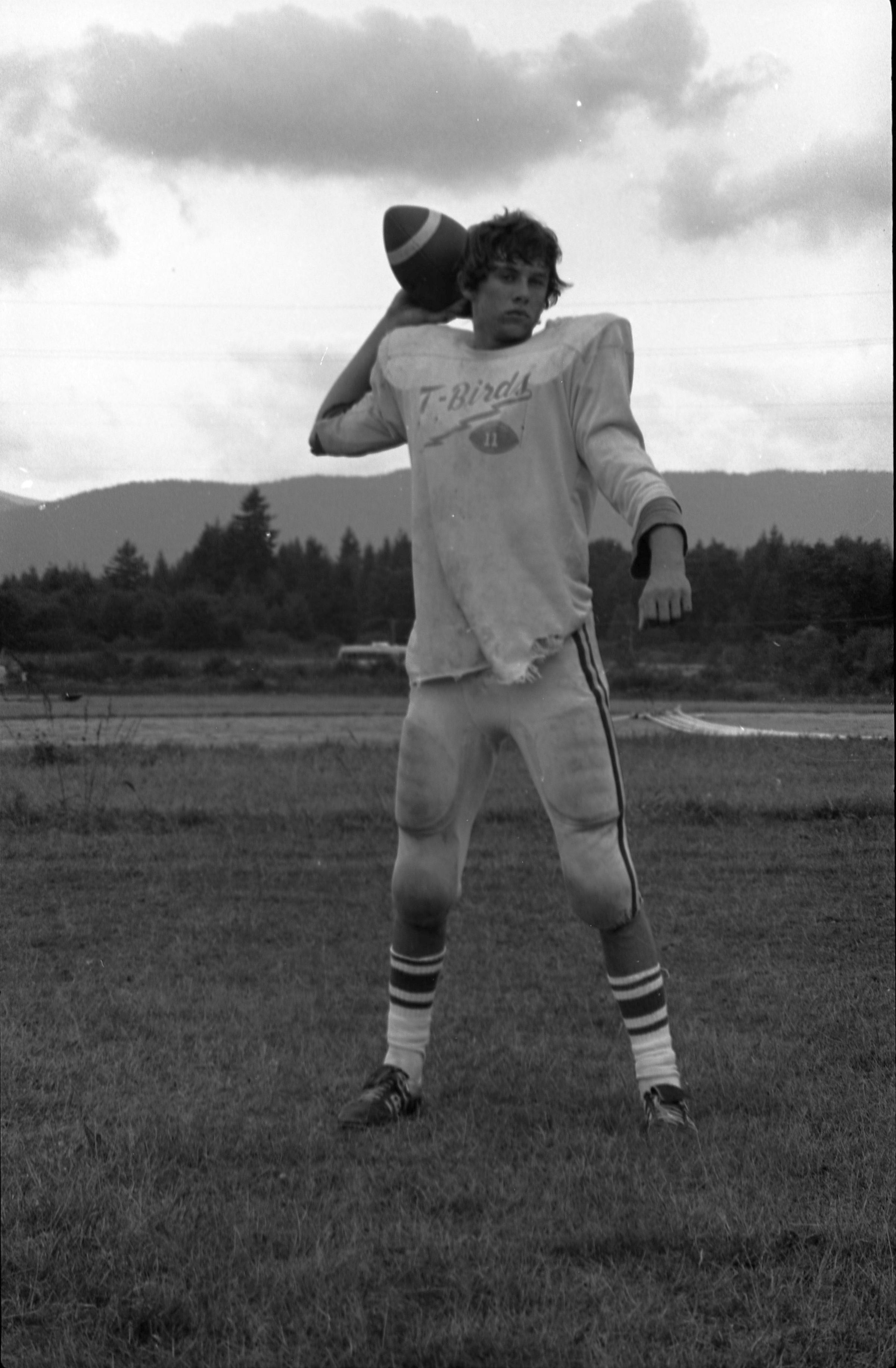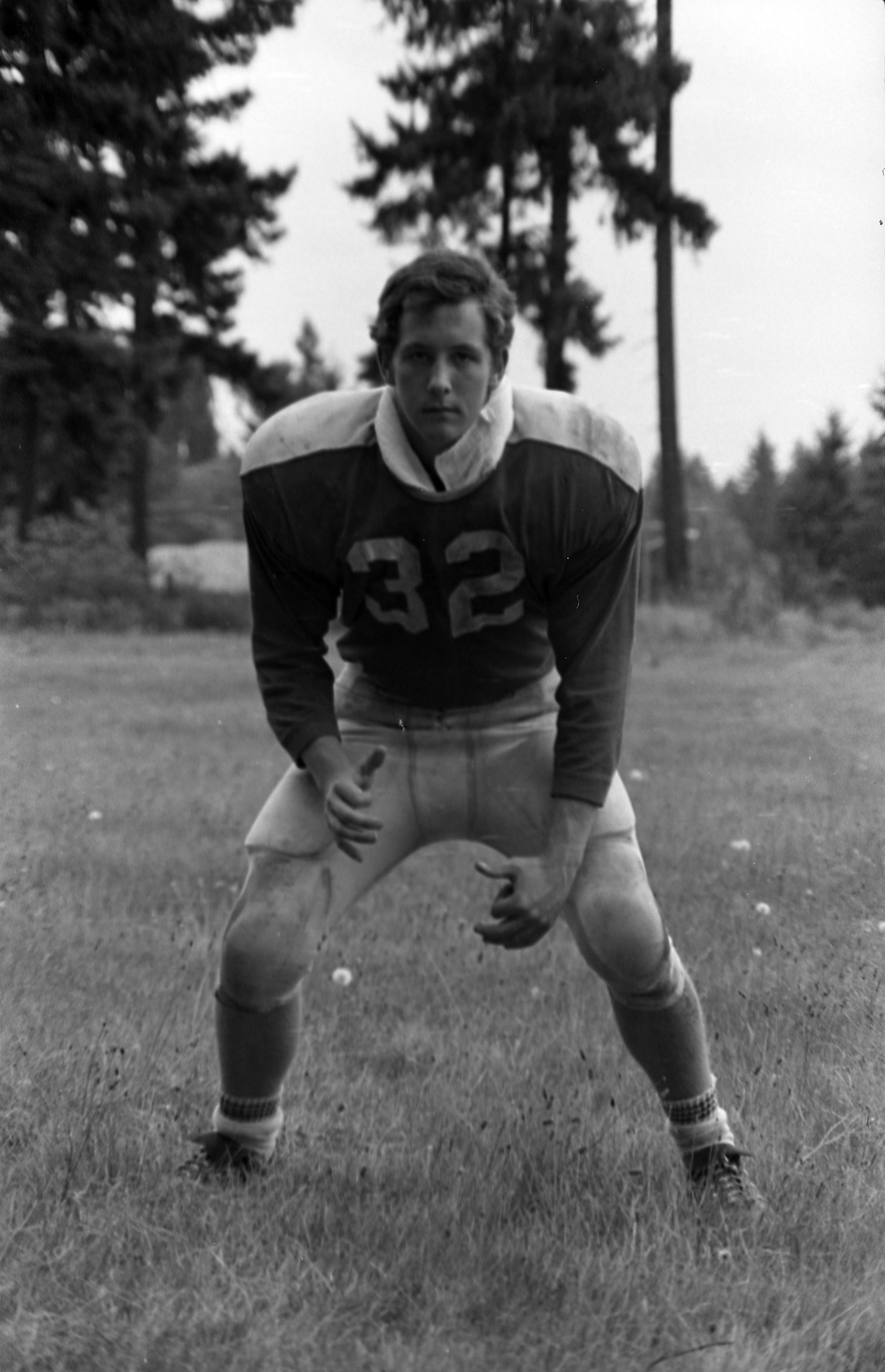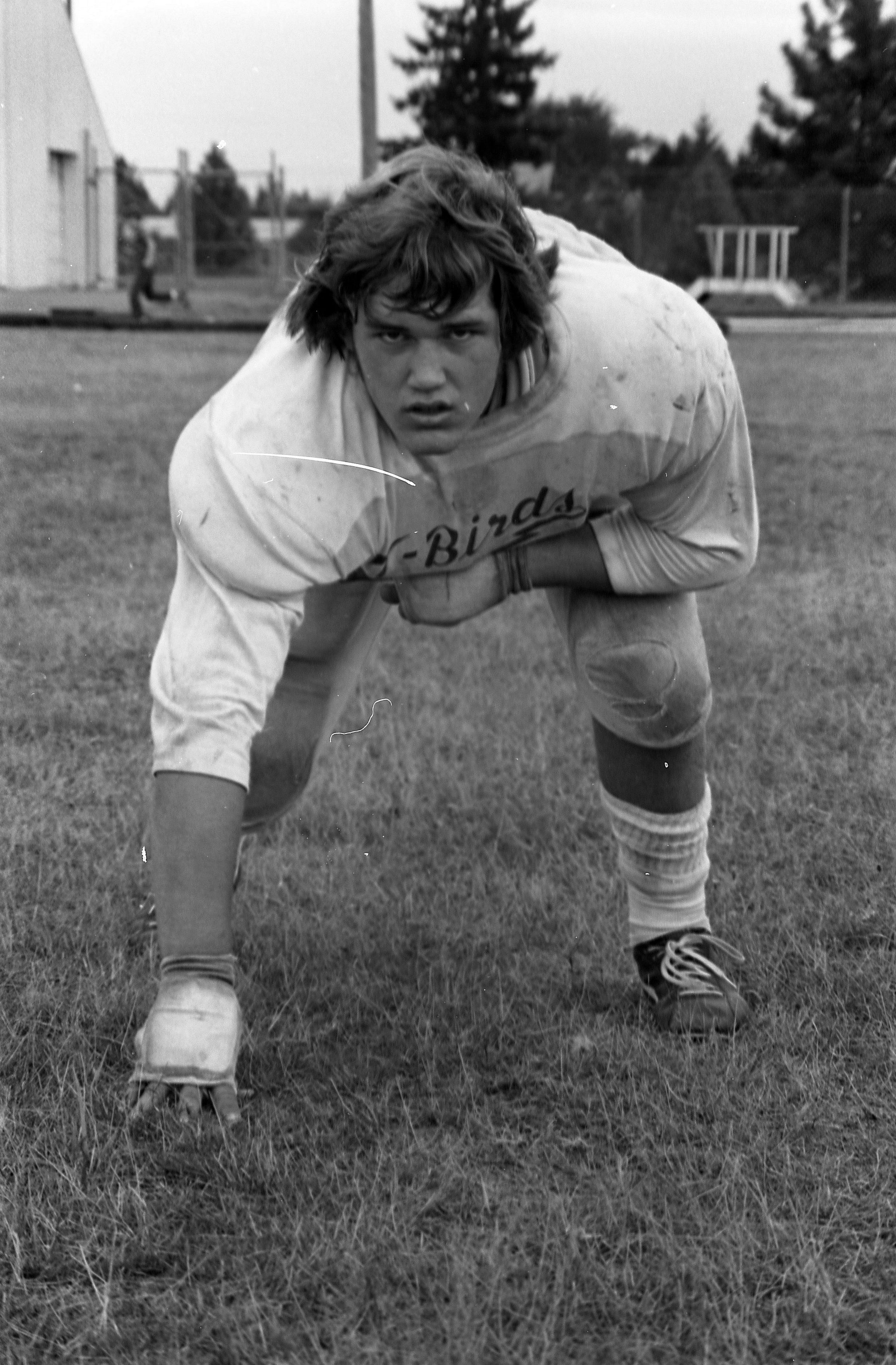 Football, 1973. These twenty black and white film negative strips were created for the Lacey Leader newspaper. These images were created using five separate film rolls, so some of the physical numbers on the strips are repeated. For the purposes of this description, these strips will be grouped according to the film roll from which they originally came. Each group will be assigned a lower-case letter to go along with the physical numbers on the strips (ex: 1a, 2a, 3a, 1b, 2b, 3b, etc.) to help differentiate between images.
