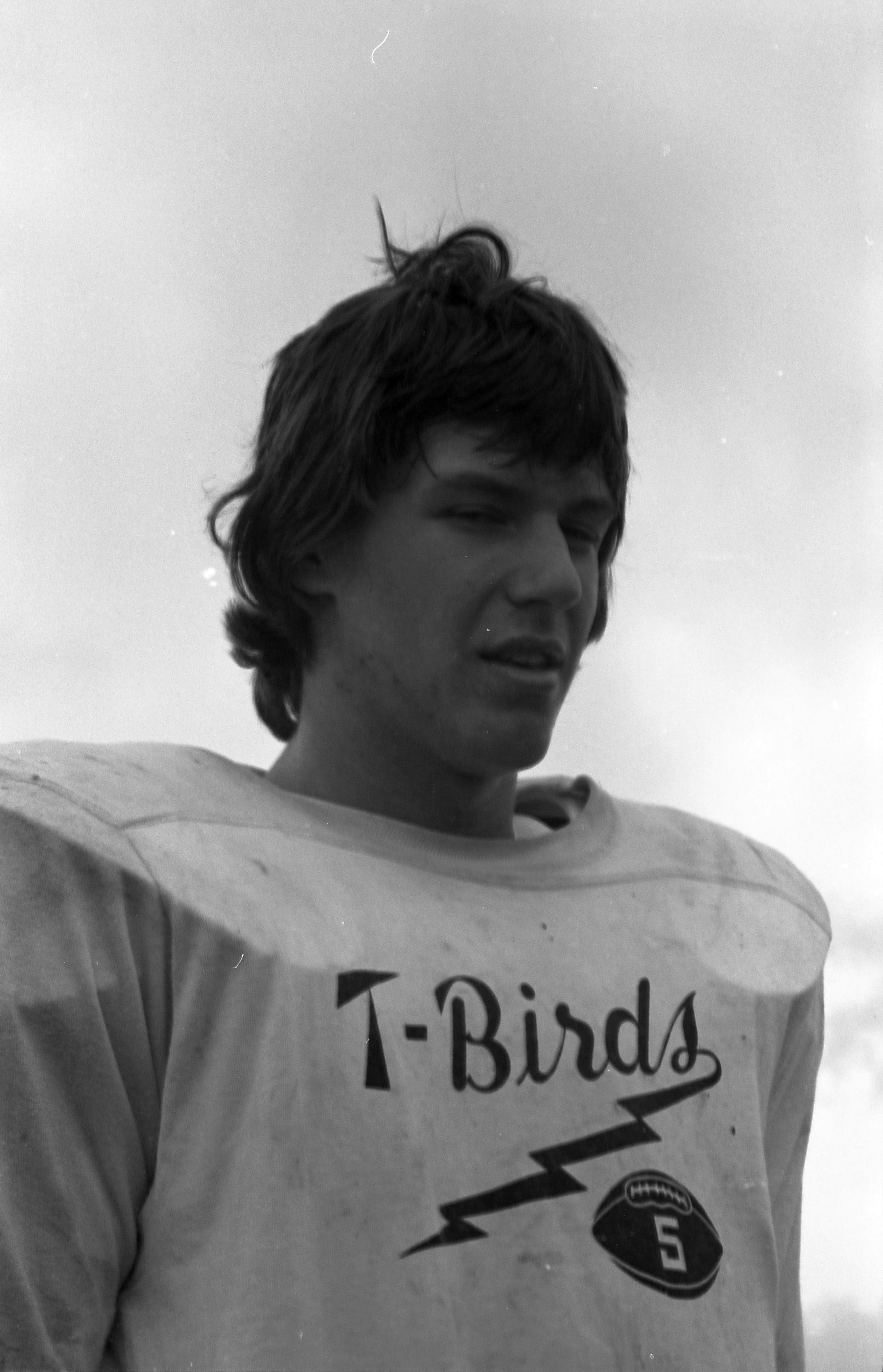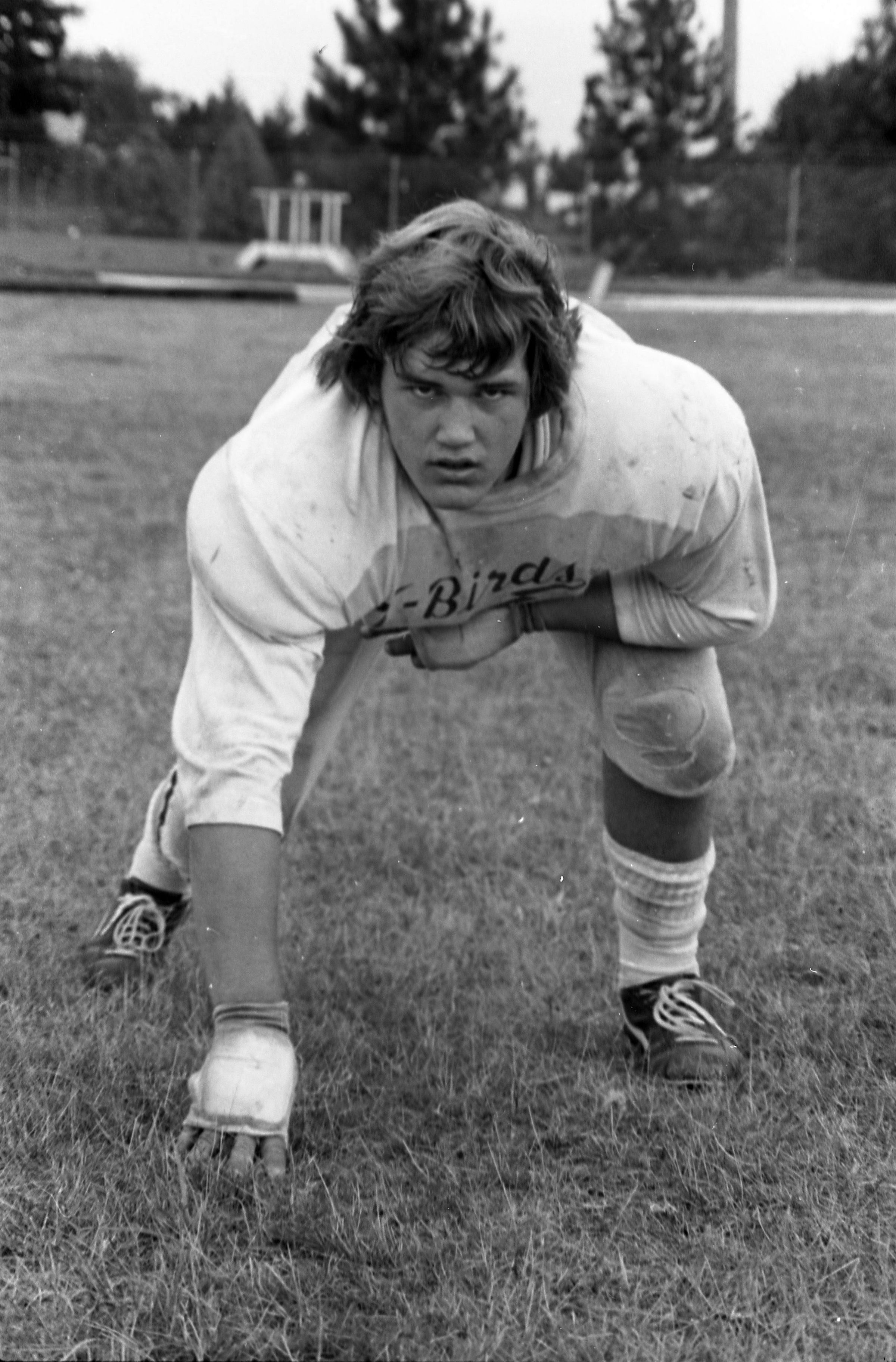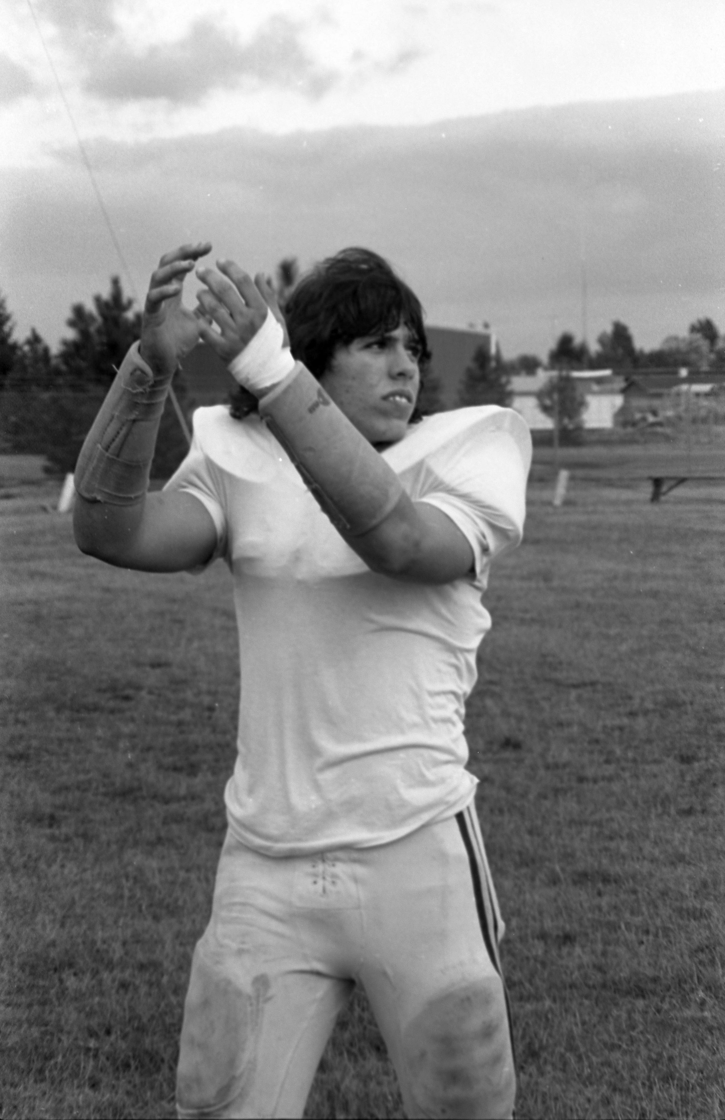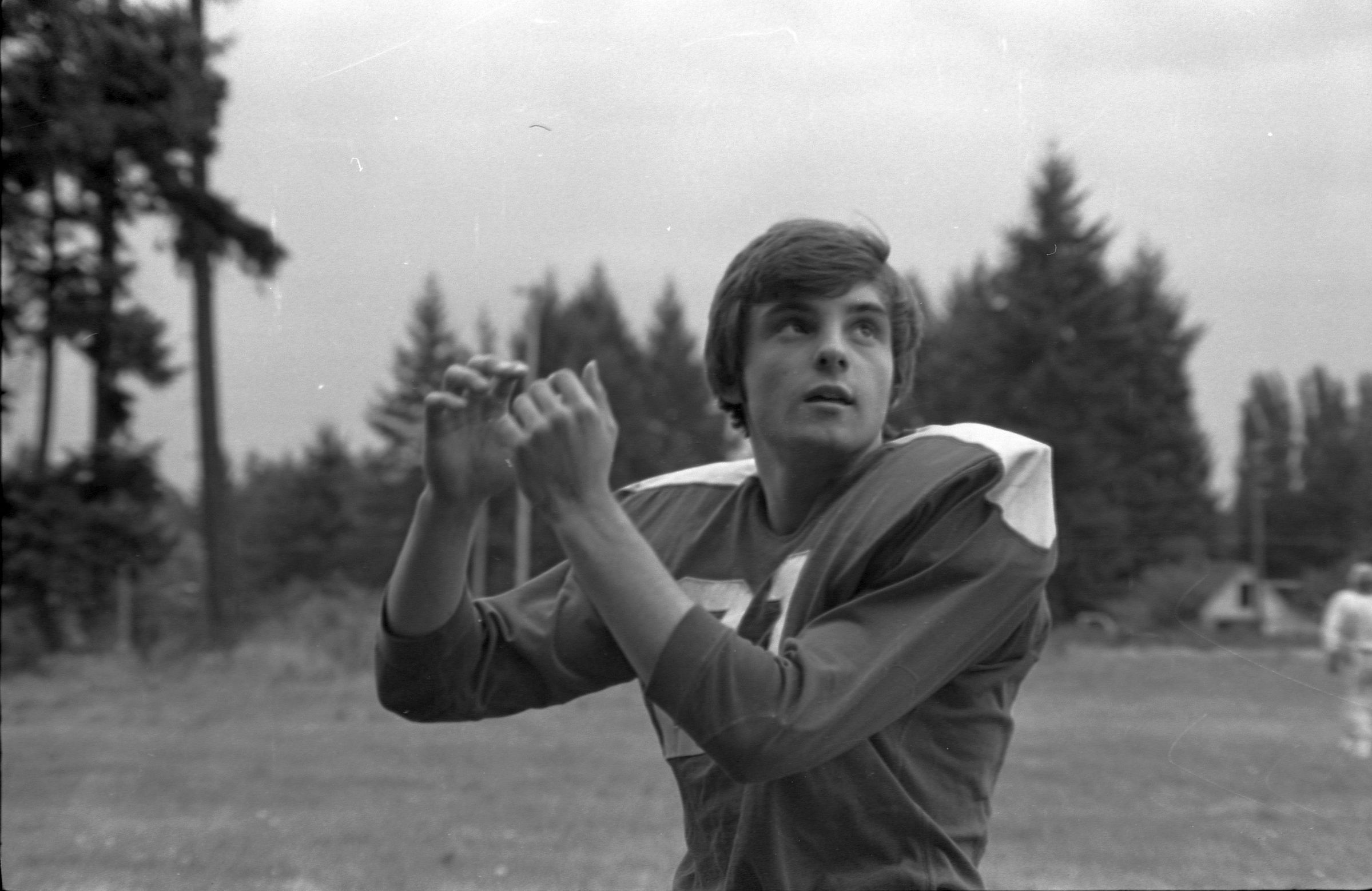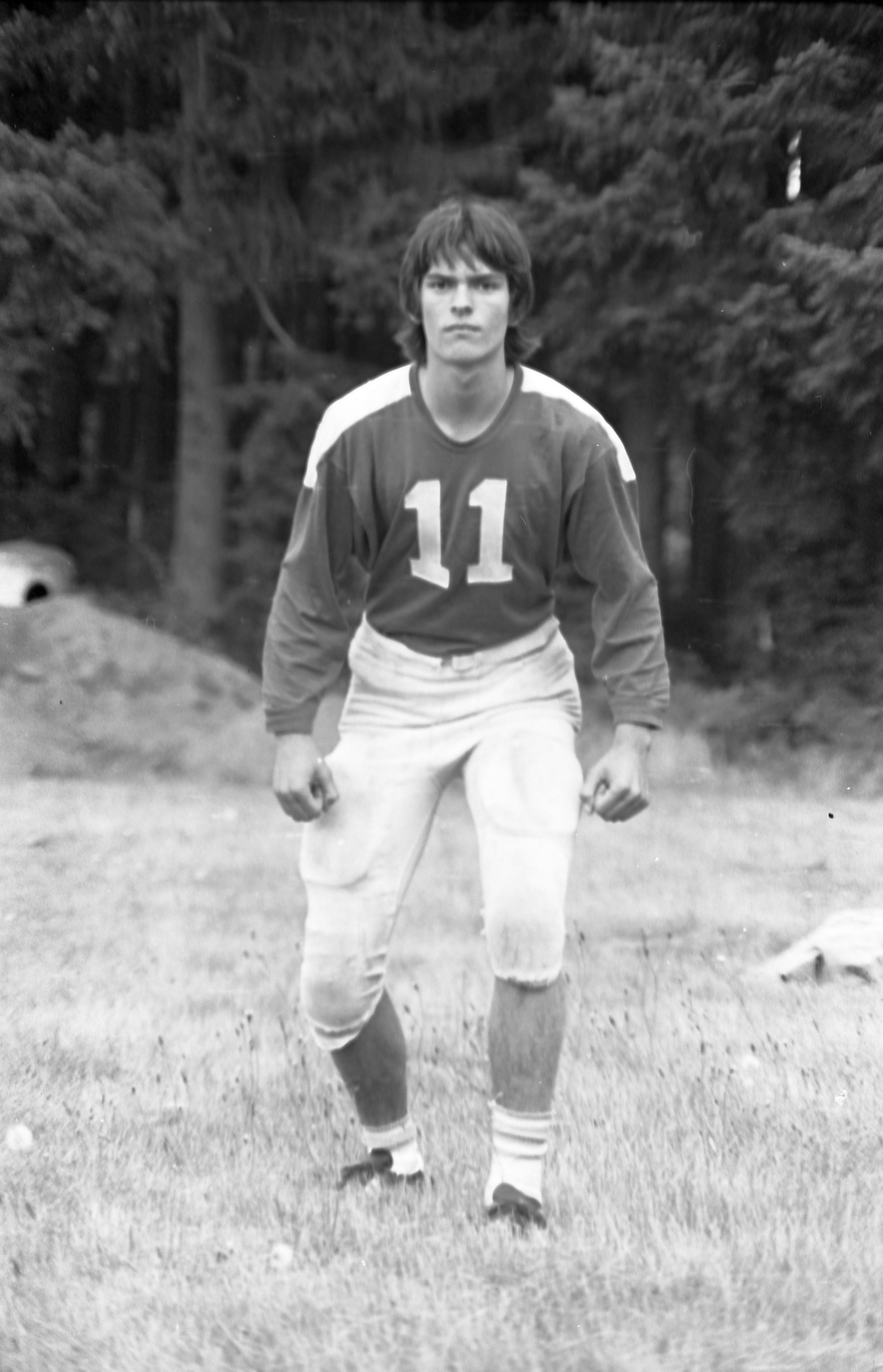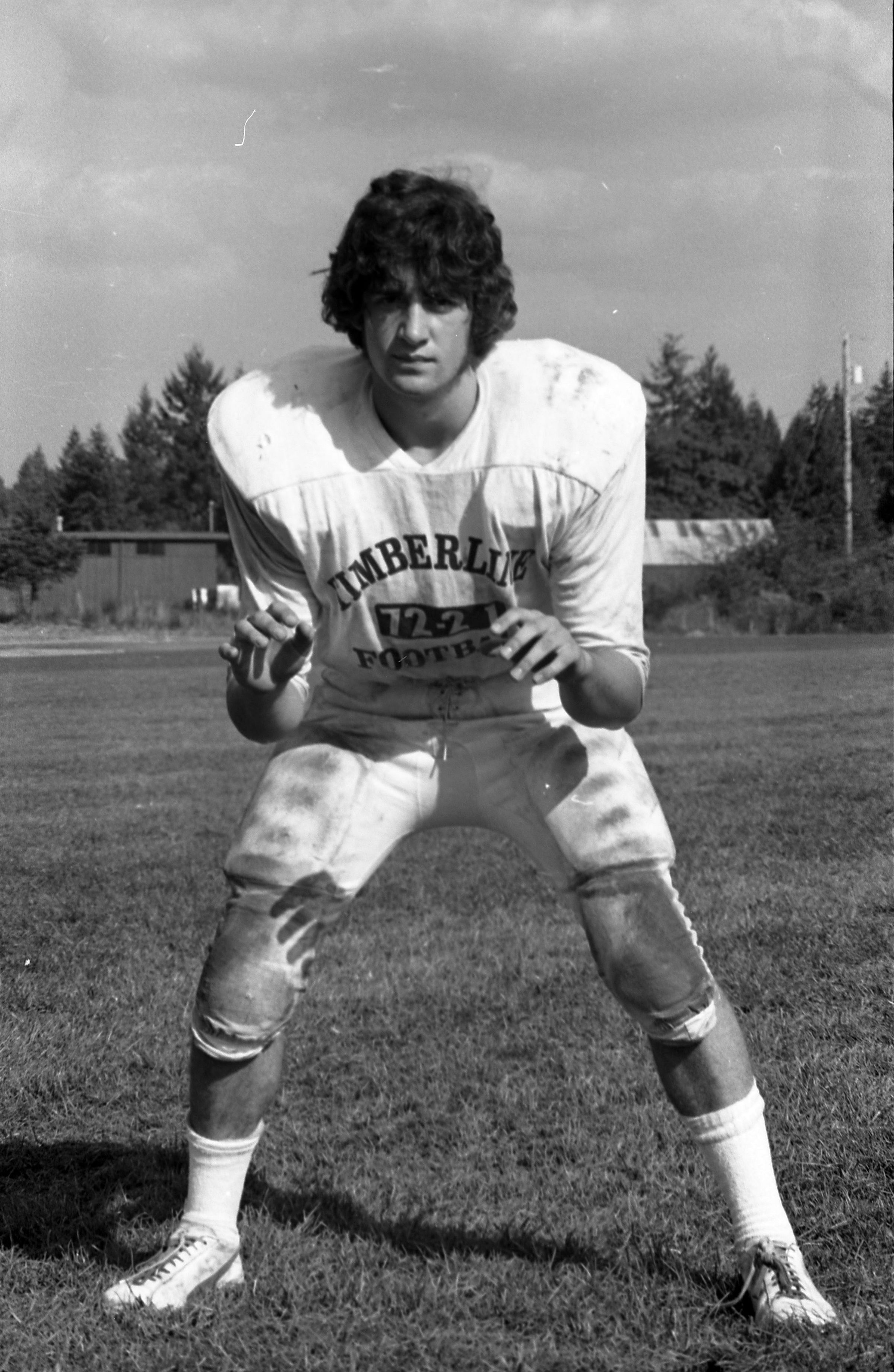 Football, 1973. These twenty black and white film negative strips were created for the Lacey Leader newspaper. These images were created using five separate film rolls, so some of the physical numbers on the strips are repeated. For the purposes of this description, these strips will be grouped according to the film roll from which they originally came. Each group will be assigned a lower-case letter to go along with the physical numbers on the strips (ex: 1a, 2a, 3a, 1b, 2b, 3b, etc.) to help differentiate between images.