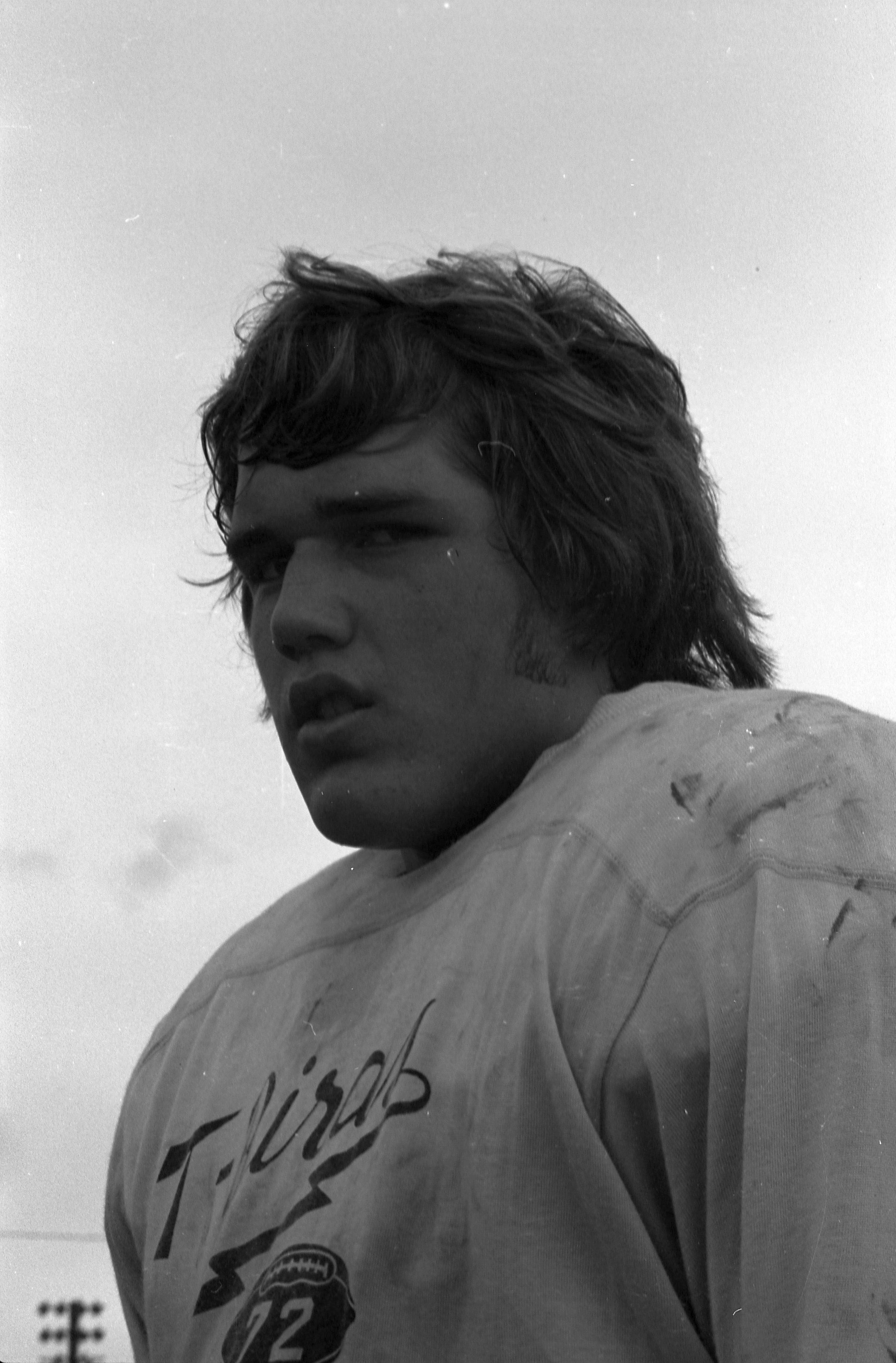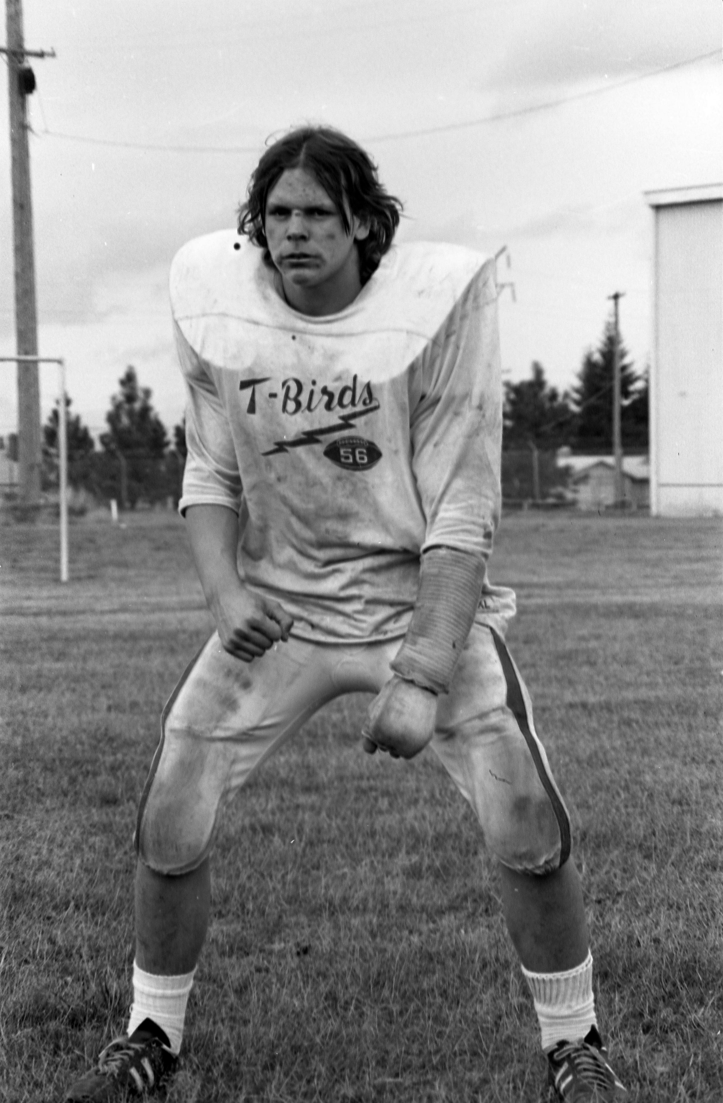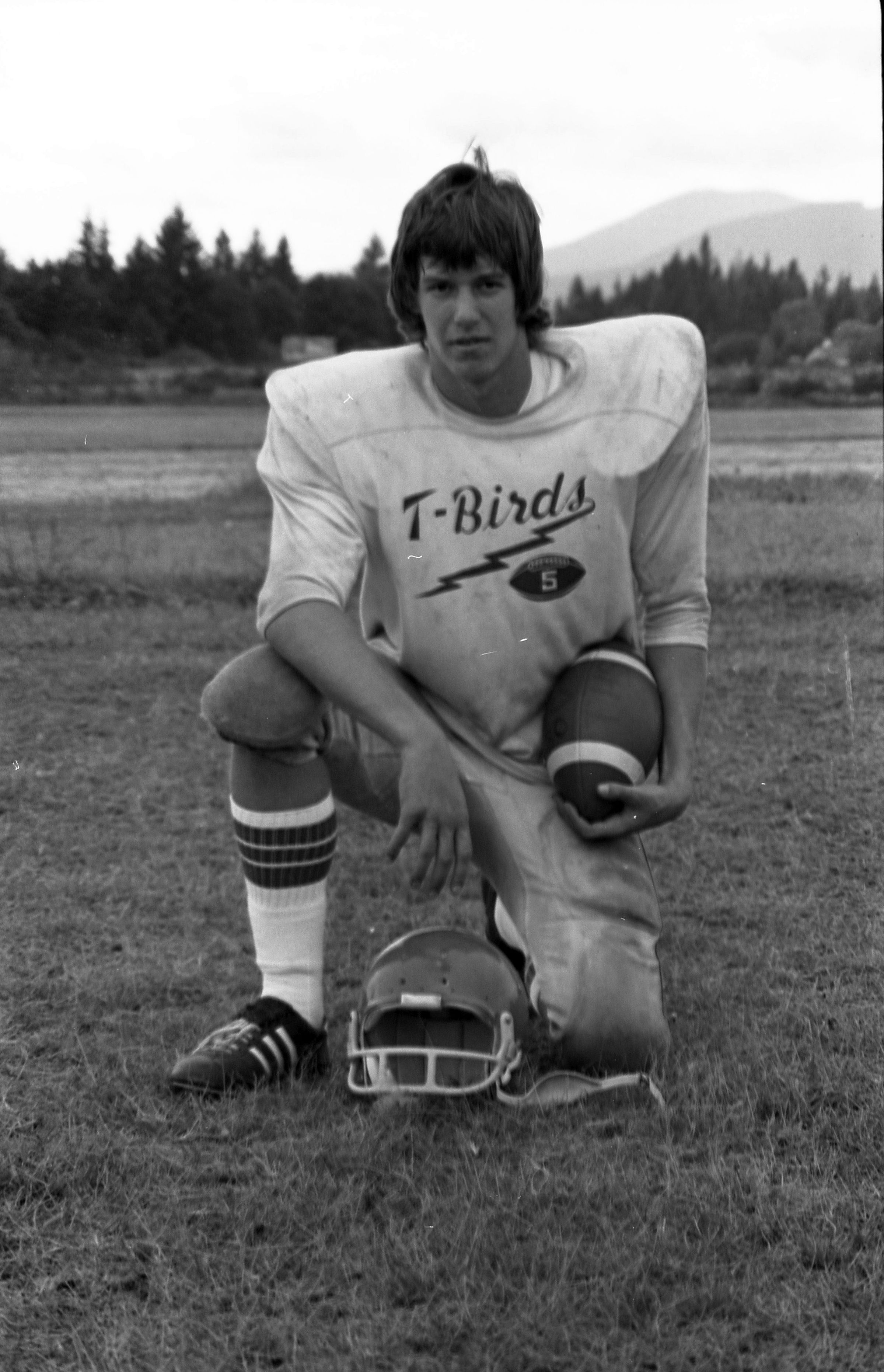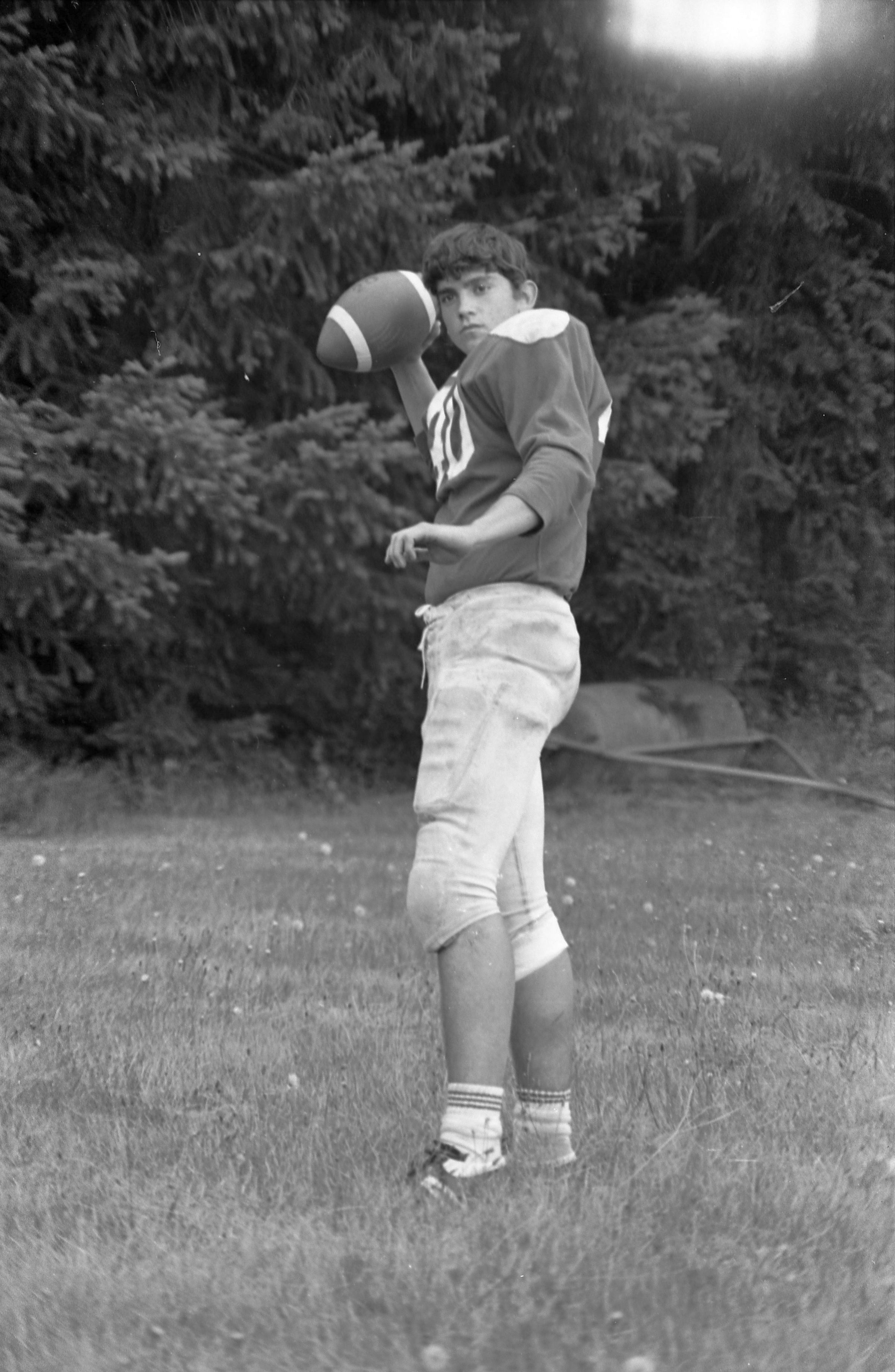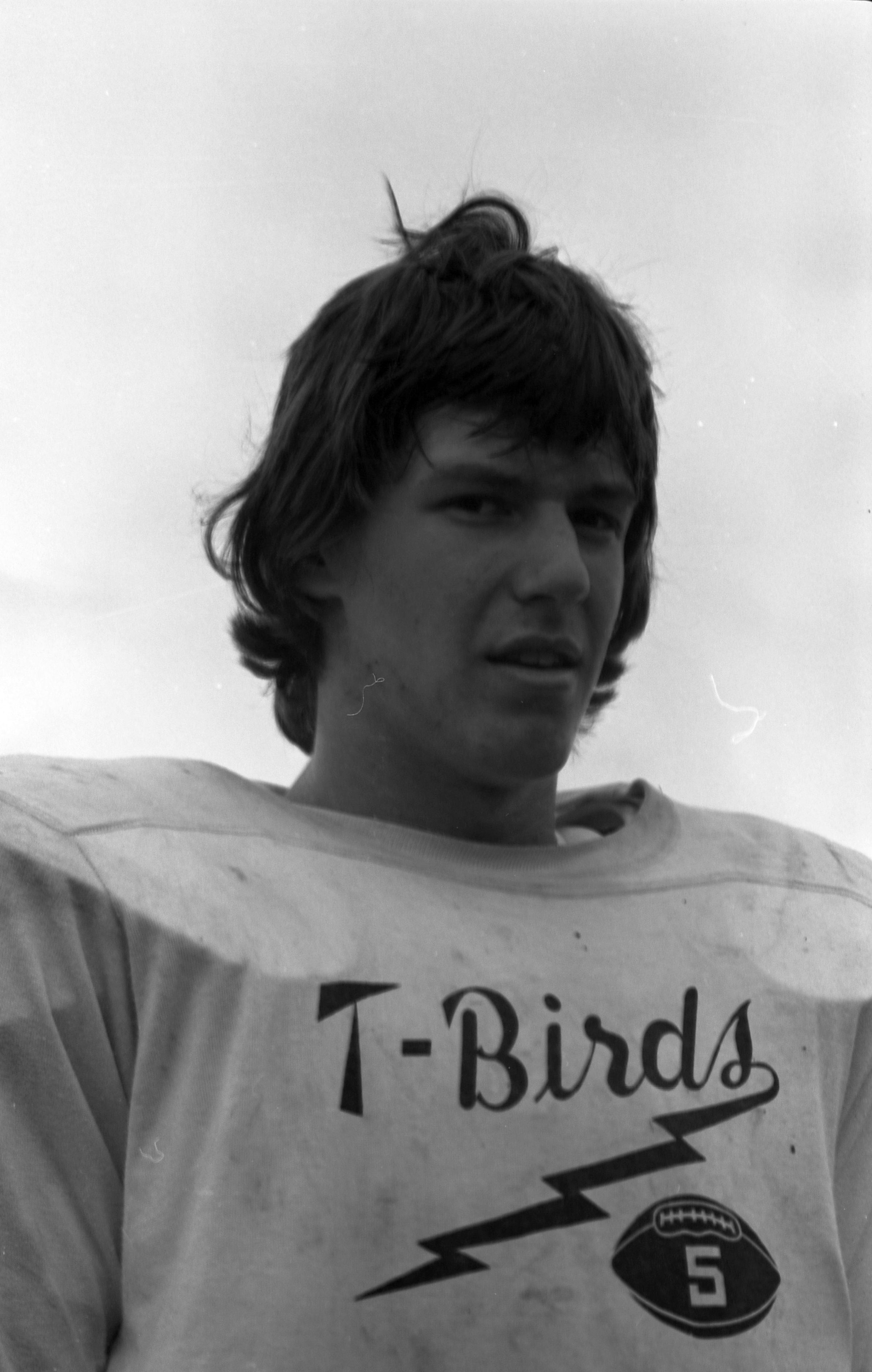 Football, 1973. These twenty black and white film negative strips were created for the Lacey Leader newspaper. These images were created using five separate film rolls, so some of the physical numbers on the strips are repeated. For the purposes of this description, these strips will be grouped according to the film roll from which they originally came. Each group will be assigned a lower-case letter to go along with the physical numbers on the strips (ex: 1a, 2a, 3a, 1b, 2b, 3b, etc.) to help differentiate between images.