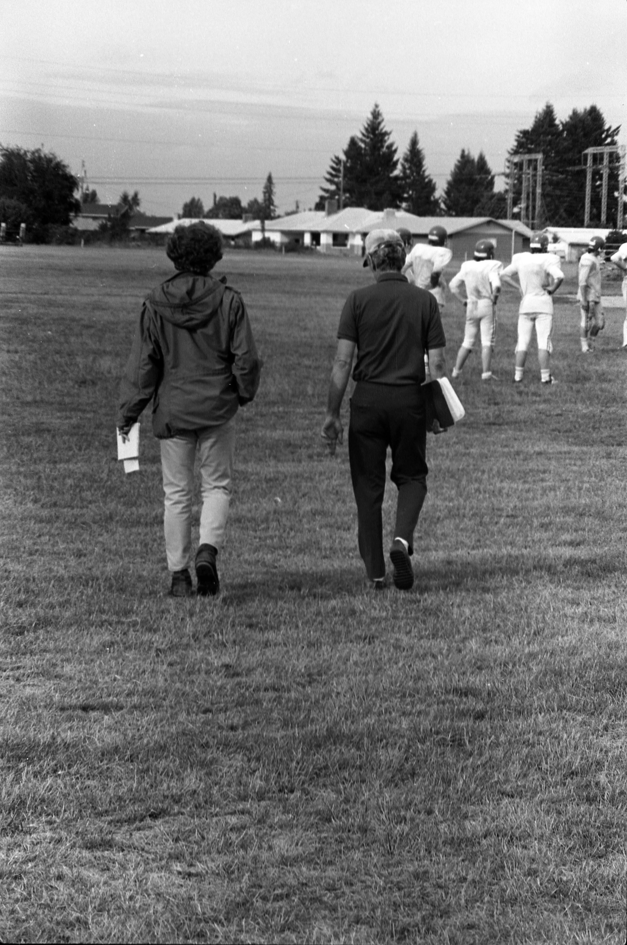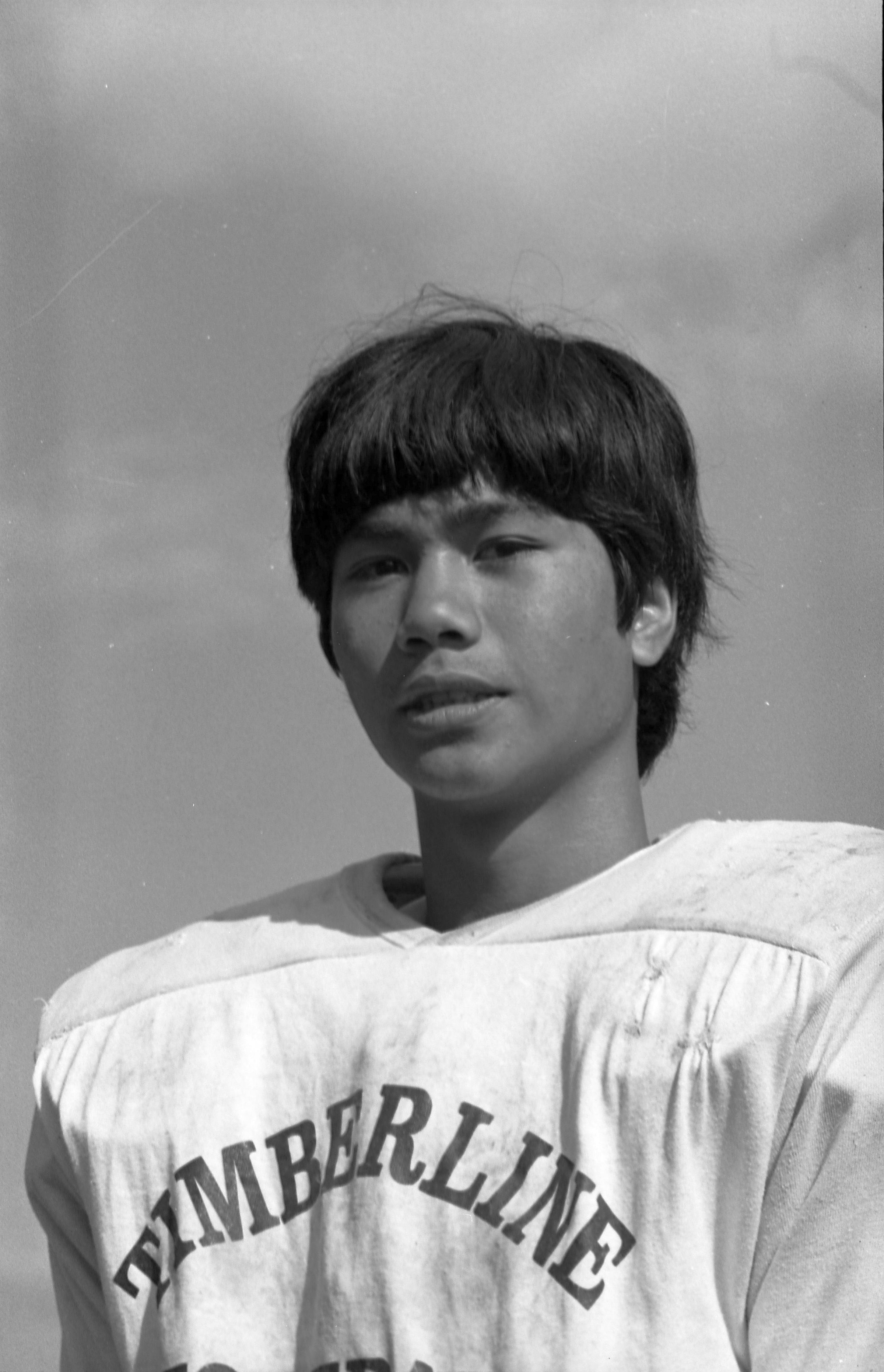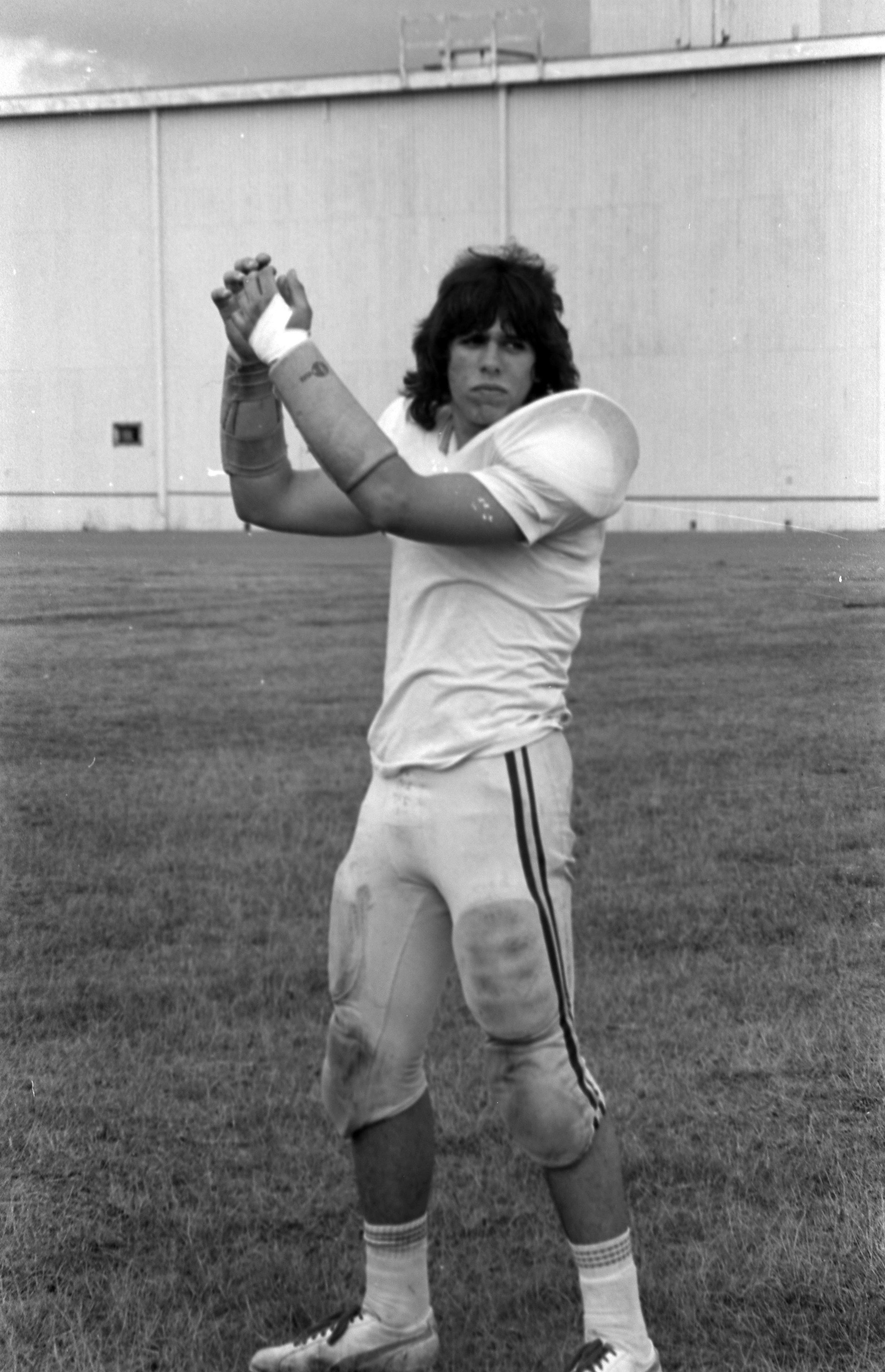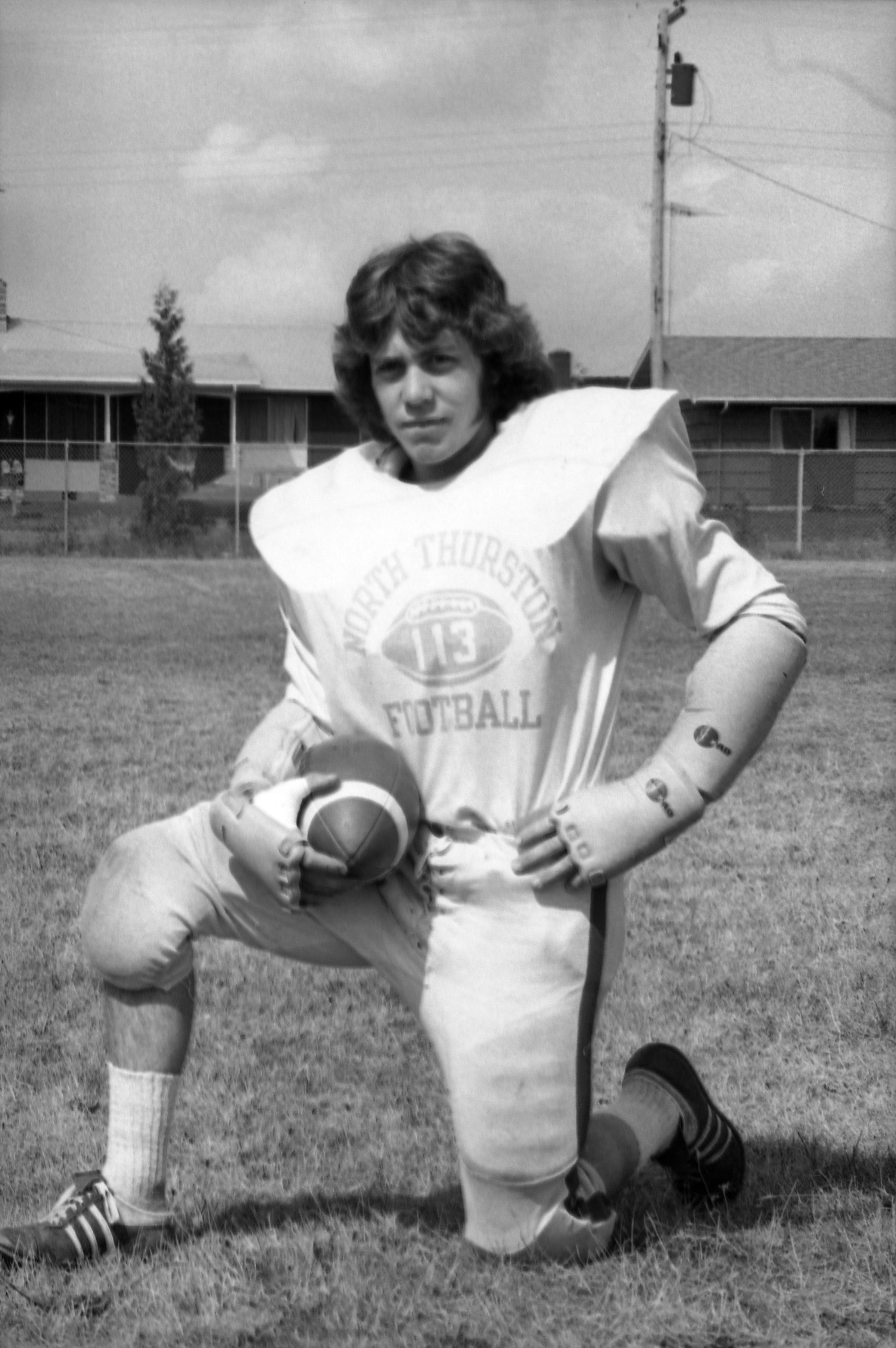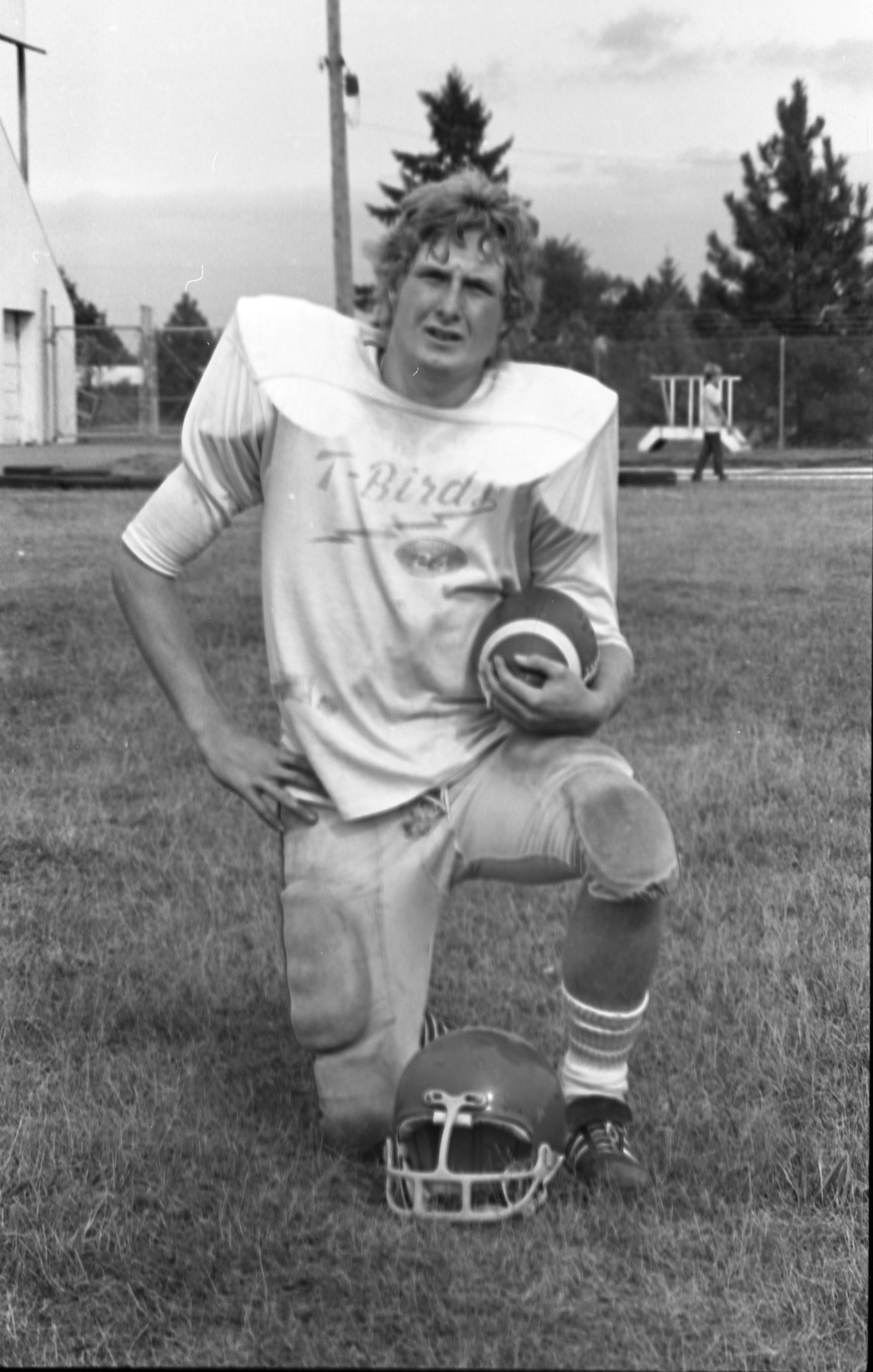 Football, 1973. These twenty black and white film negative strips were created for the Lacey Leader newspaper. These images were created using five separate film rolls, so some of the physical numbers on the strips are repeated. For the purposes of this description, these strips will be grouped according to the film roll from which they originally came. Each group will be assigned a lower-case letter to go along with the physical numbers on the strips (ex: 1a, 2a, 3a, 1b, 2b, 3b, etc.) to help differentiate between images.