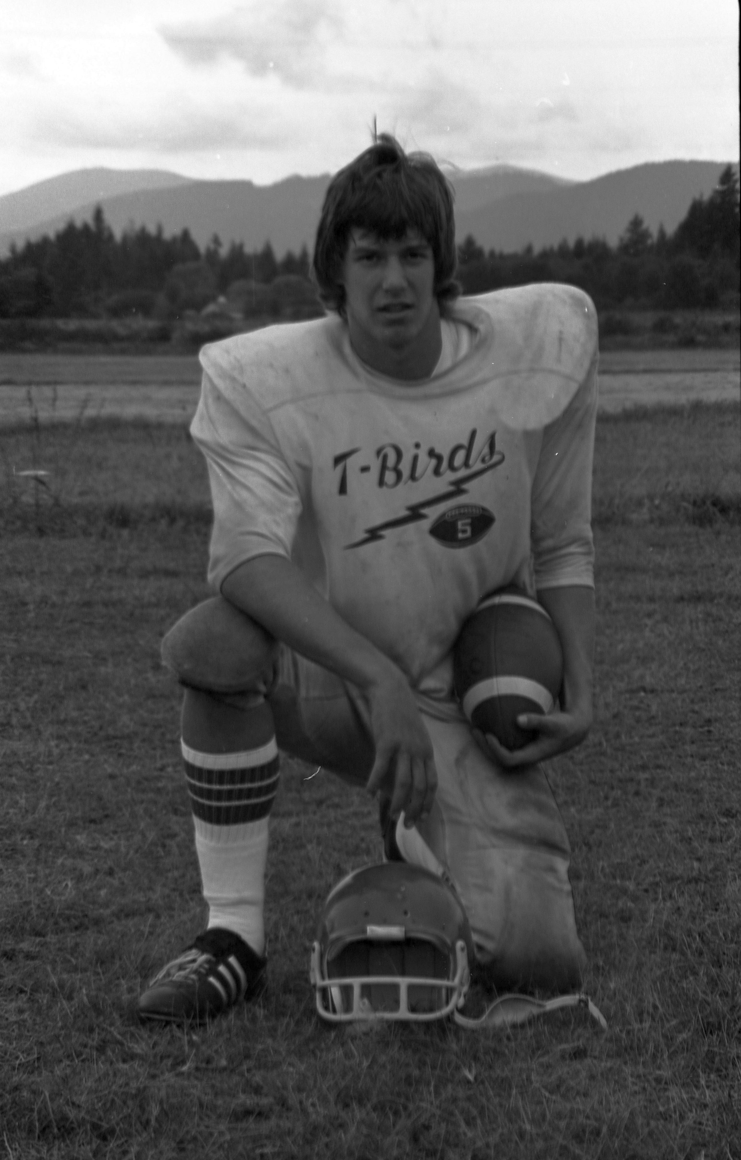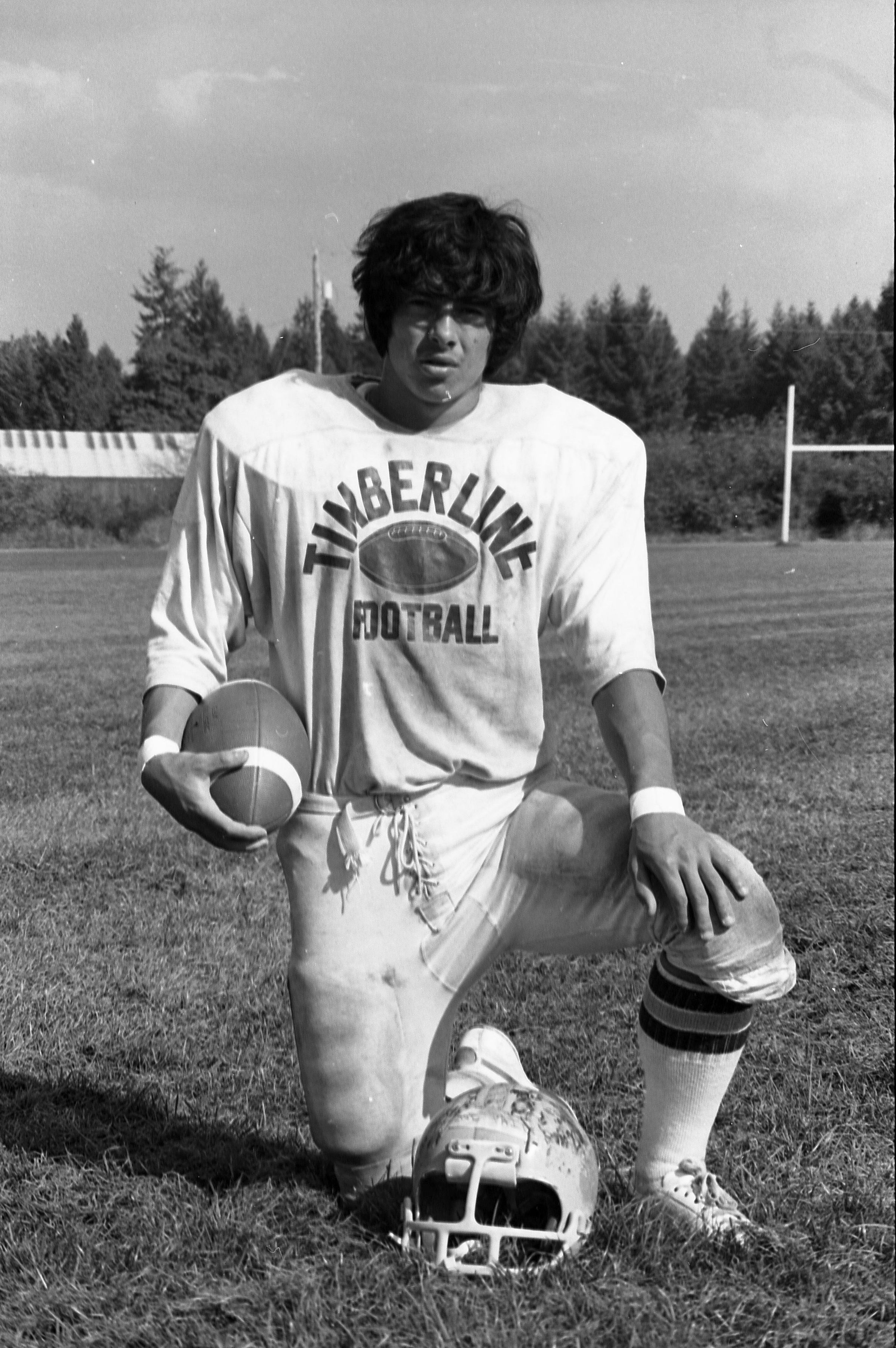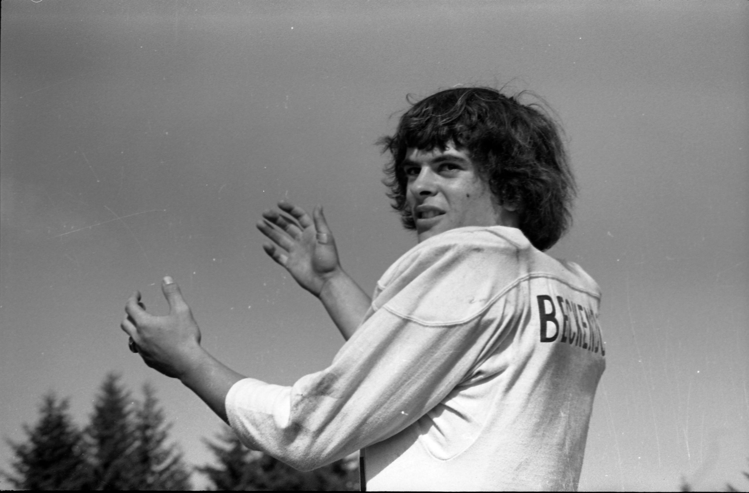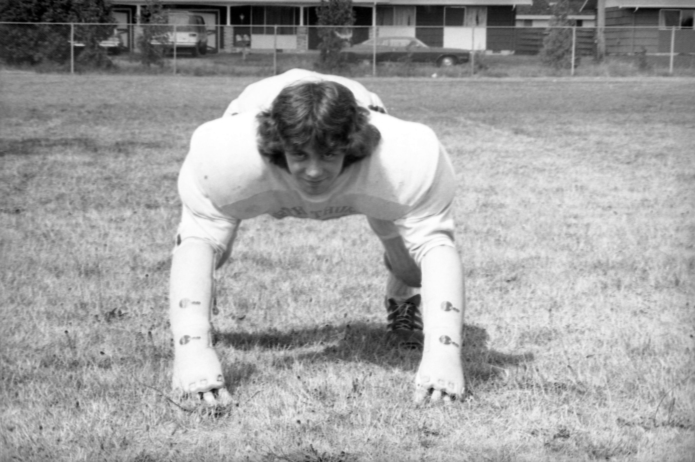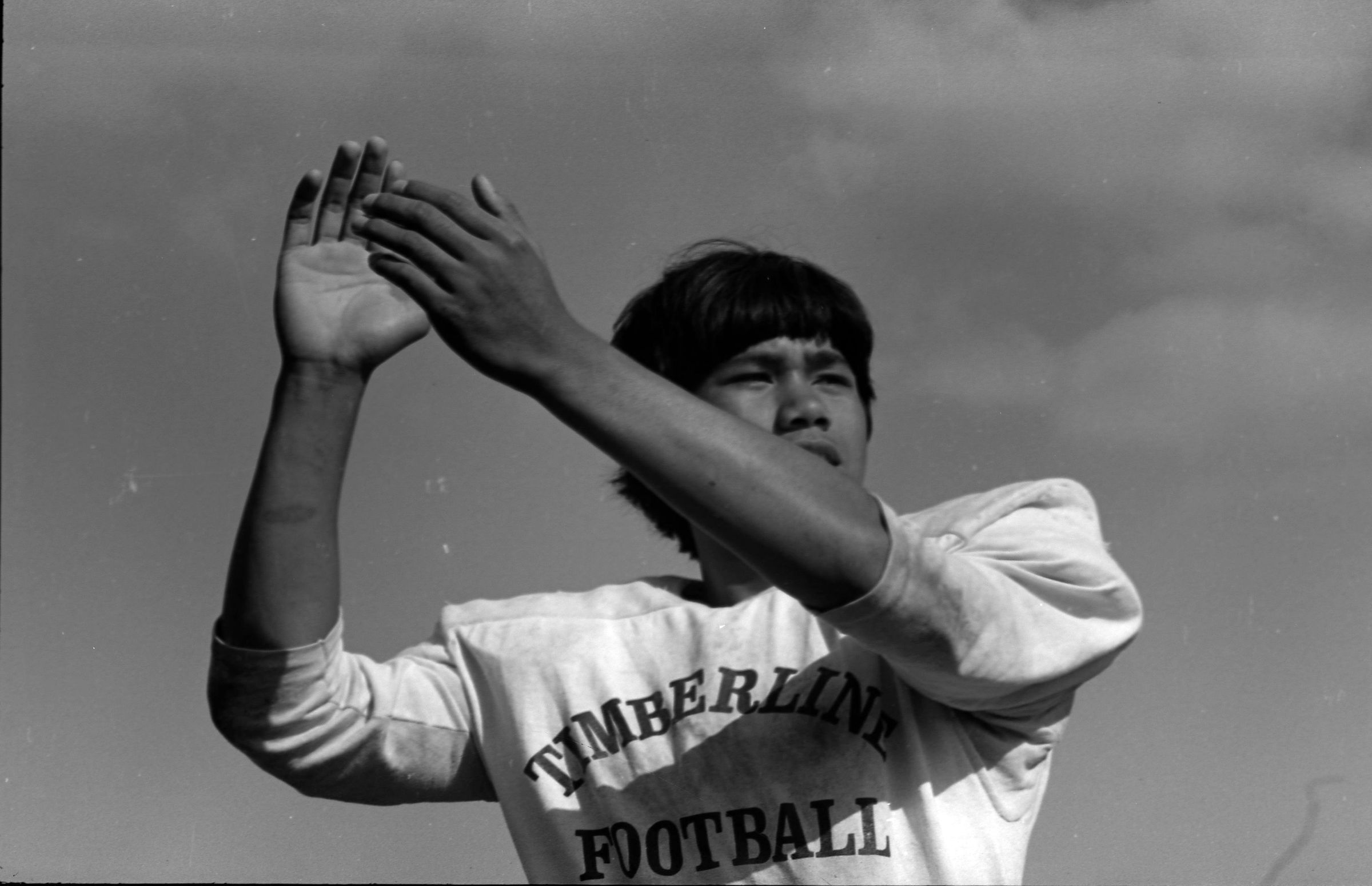Football, 1973. These twenty black and white film negative strips were created for the Lacey Leader newspaper. These images were created using five separate film rolls, so some of the physical numbers on the strips are repeated. For the purposes of this description, these strips will be grouped according to the film roll from which they originally came. Each group will be assigned a lower-case letter to go along with the physical numbers on the strips (ex: 1a, 2a, 3a, 1b, 2b, 3b, etc.) to help differentiate between images.
