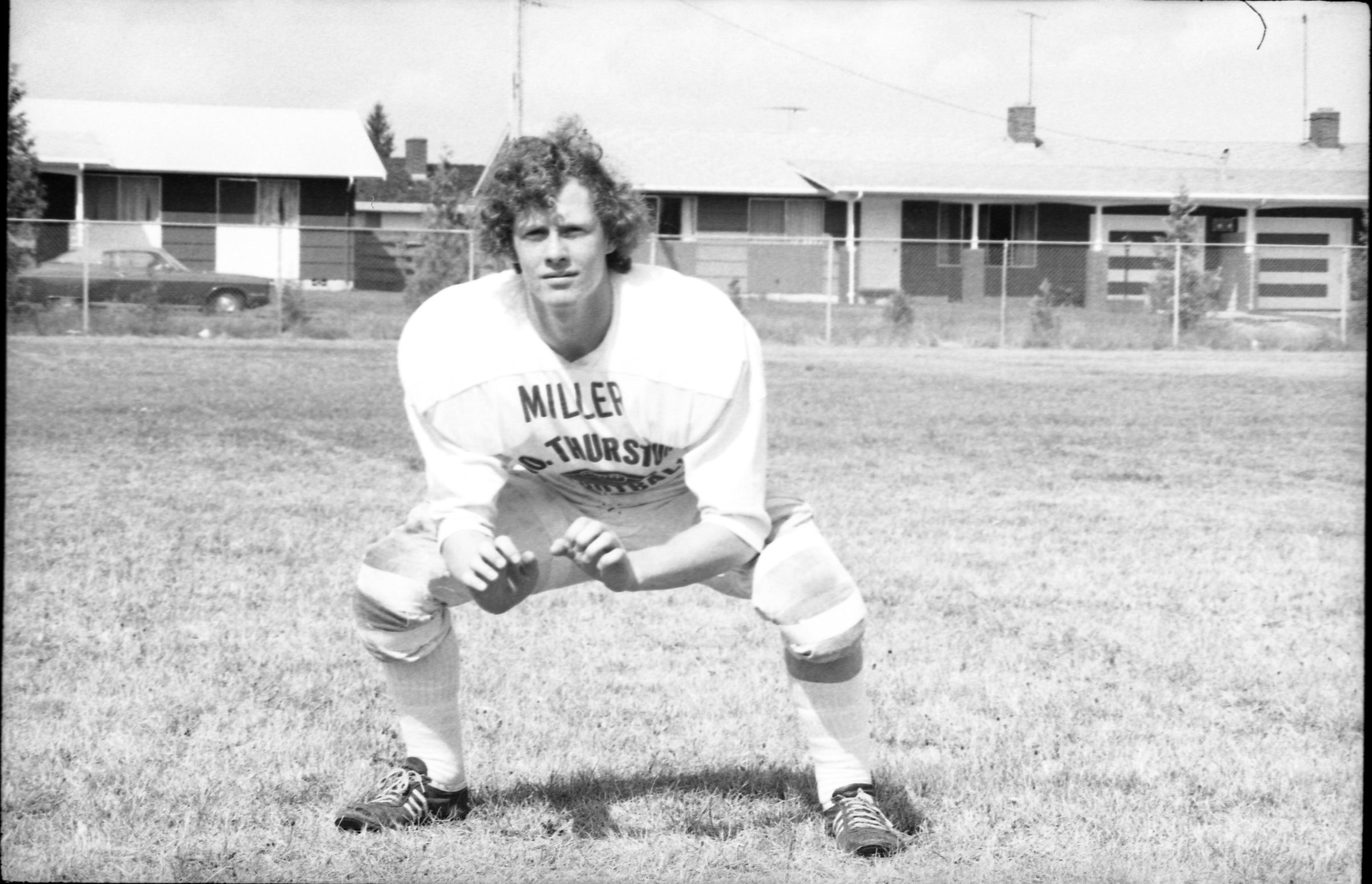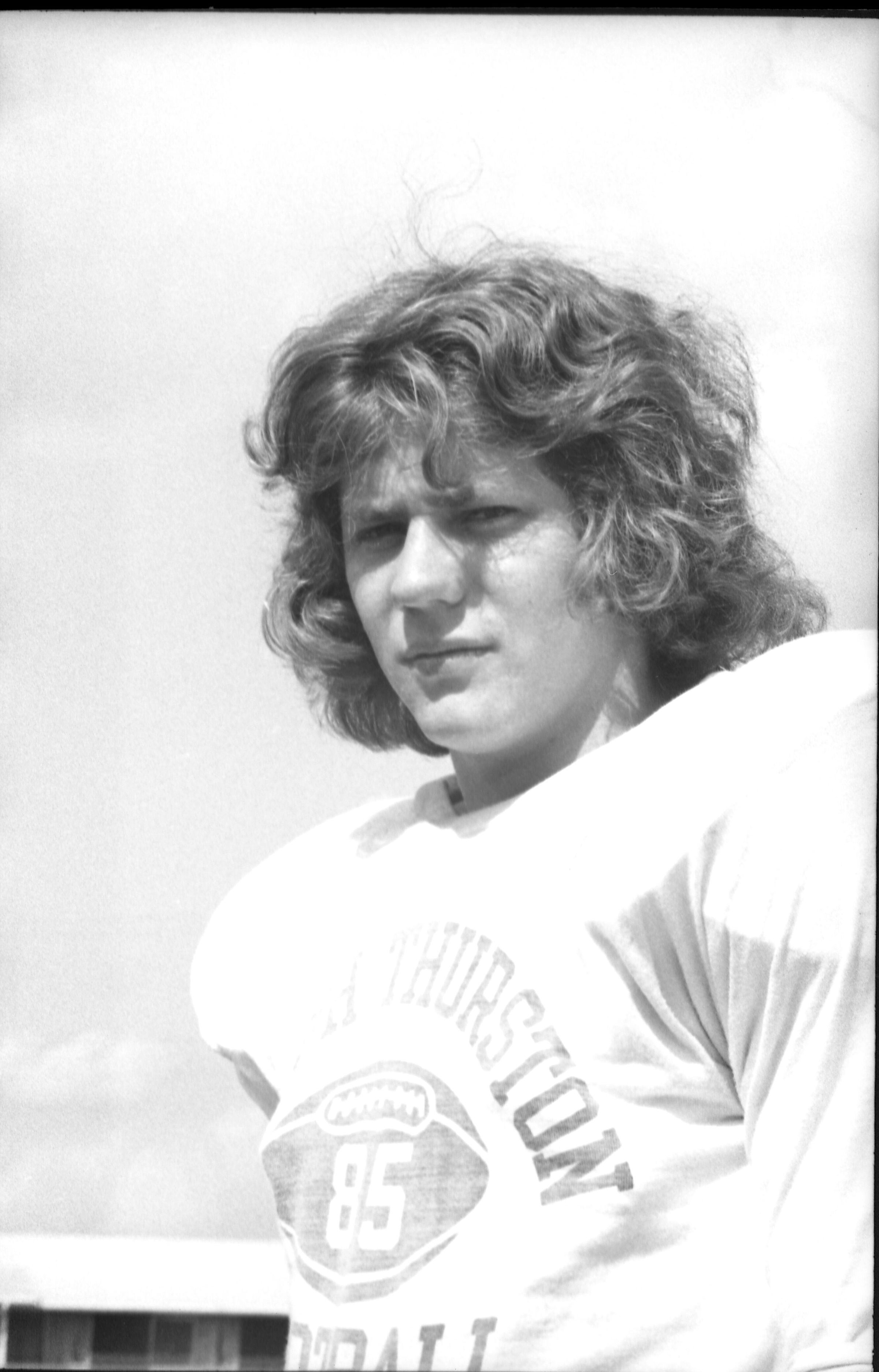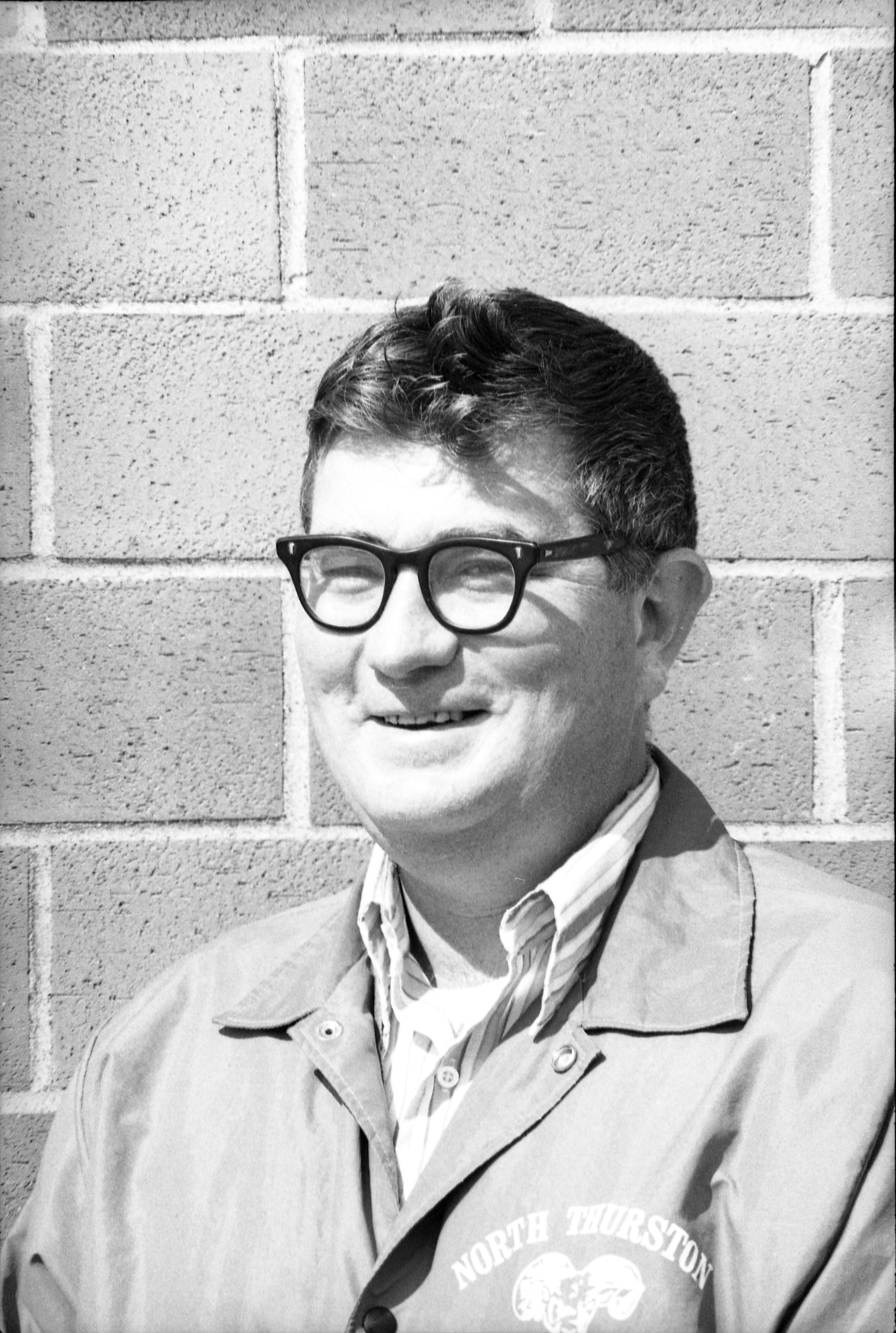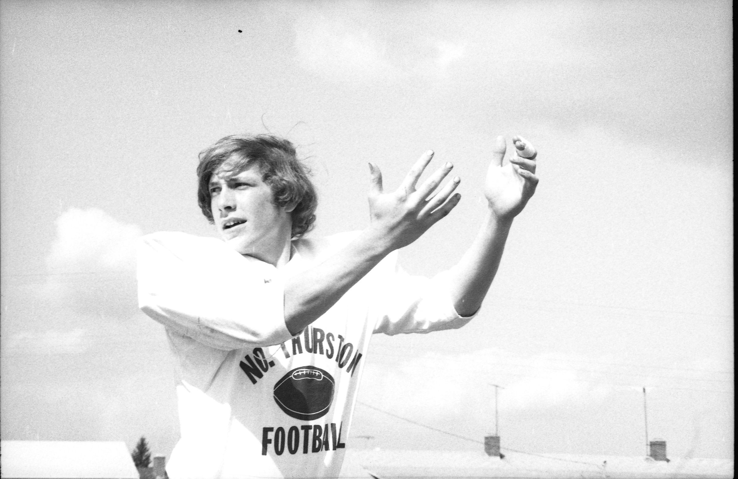 North Thurston High School Football, 1973. These eight black and white film negative strips were created for the Lacey Leader newspaper. These images were created using two separate film rolls, so some of the physical numbers on the strips are repeated.