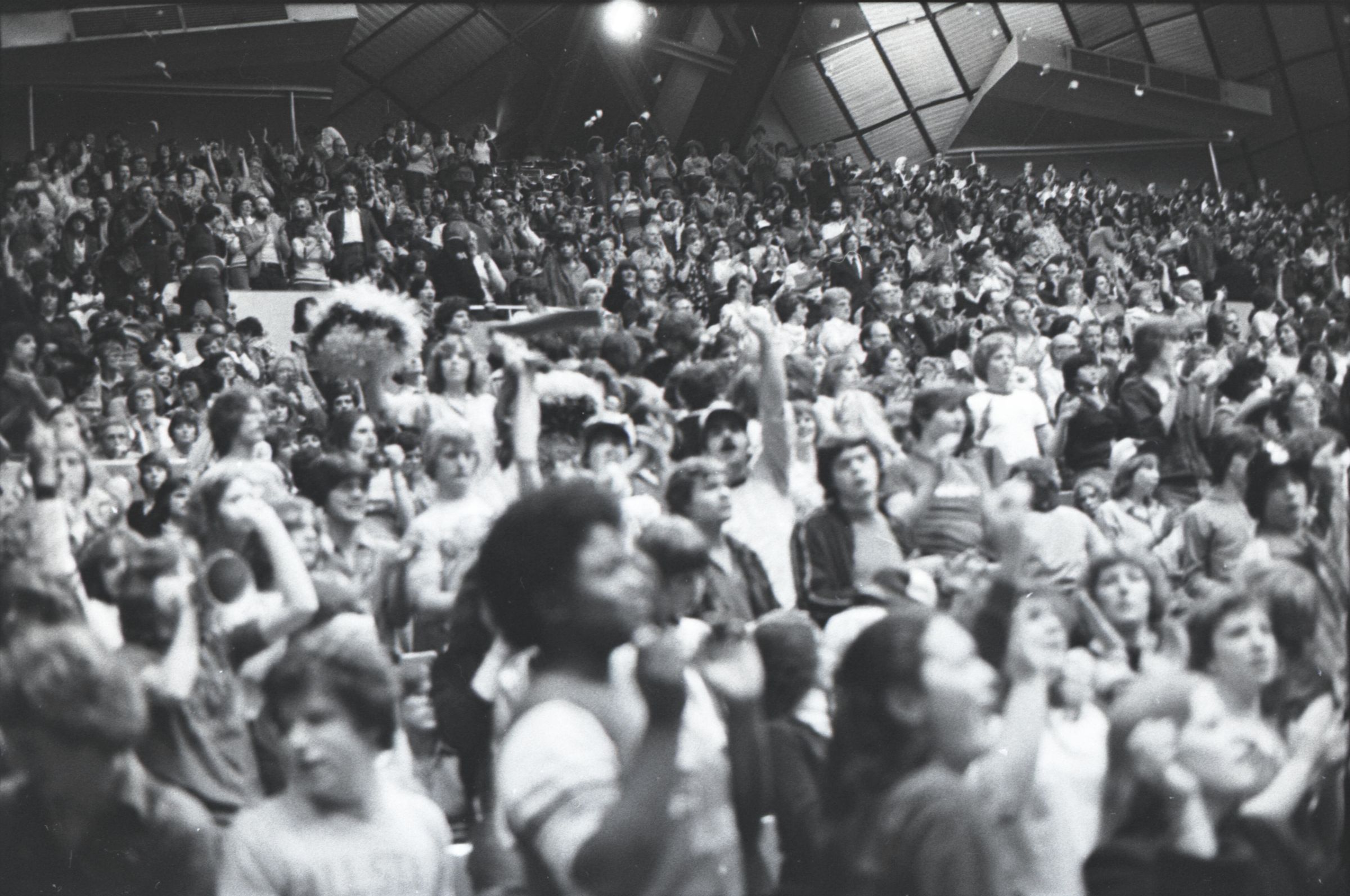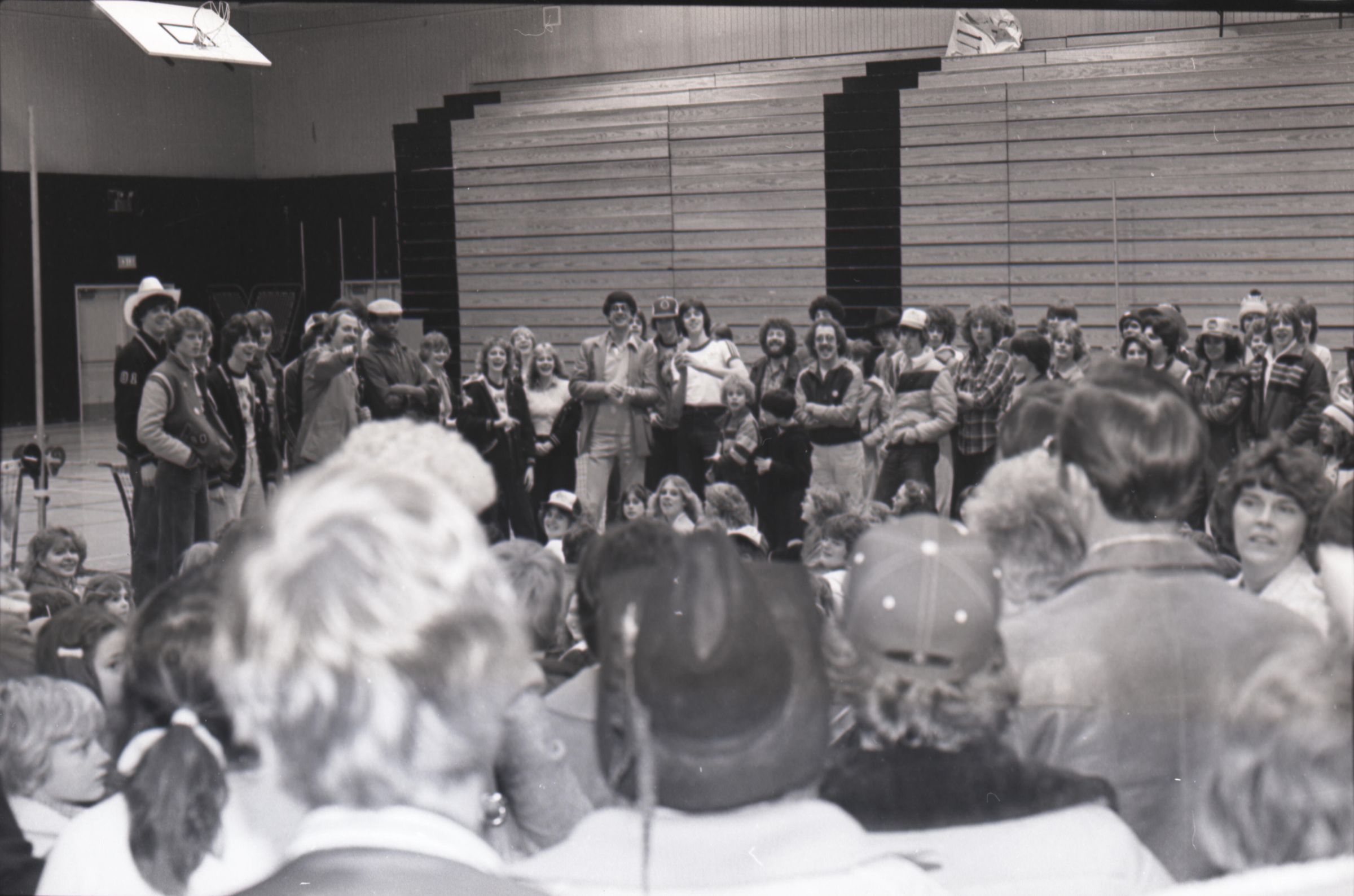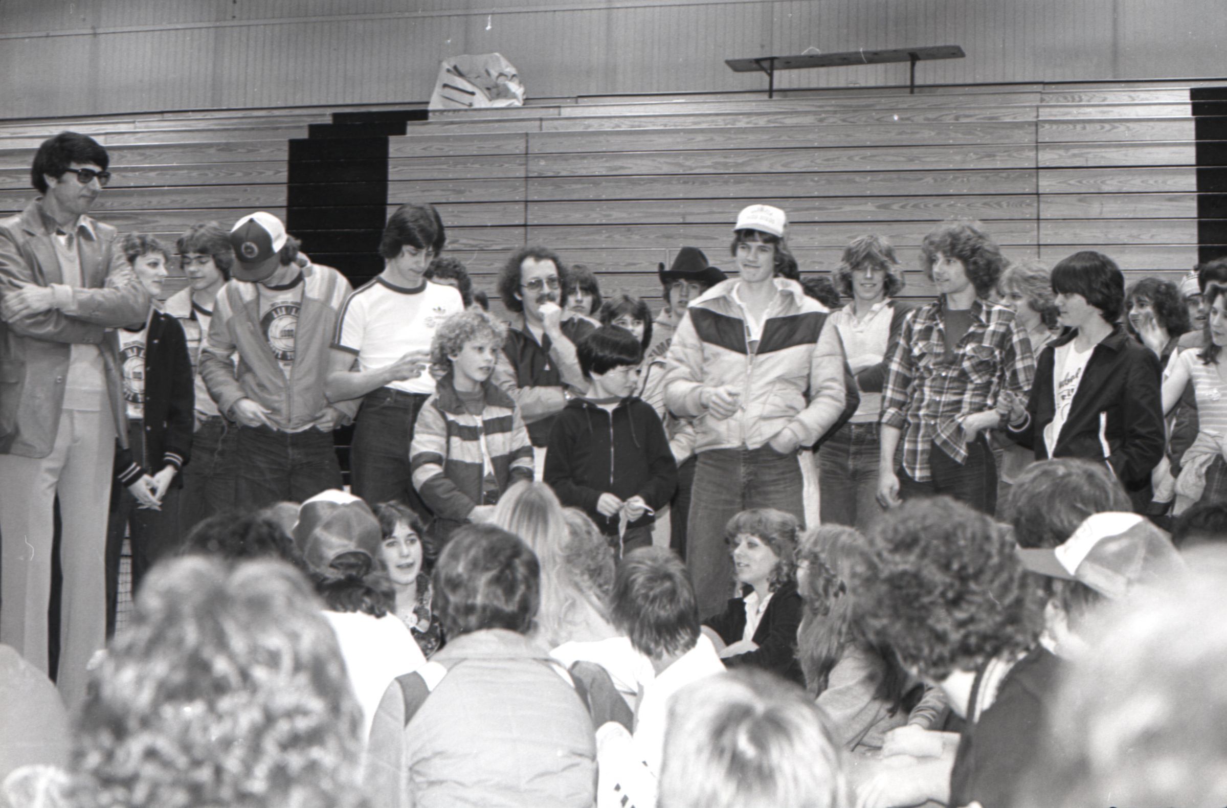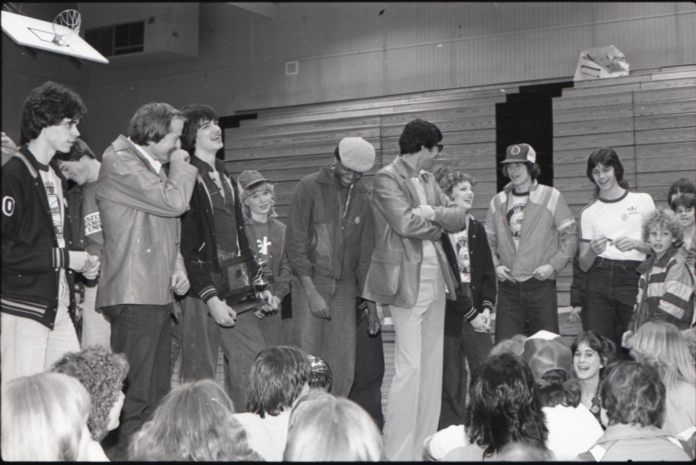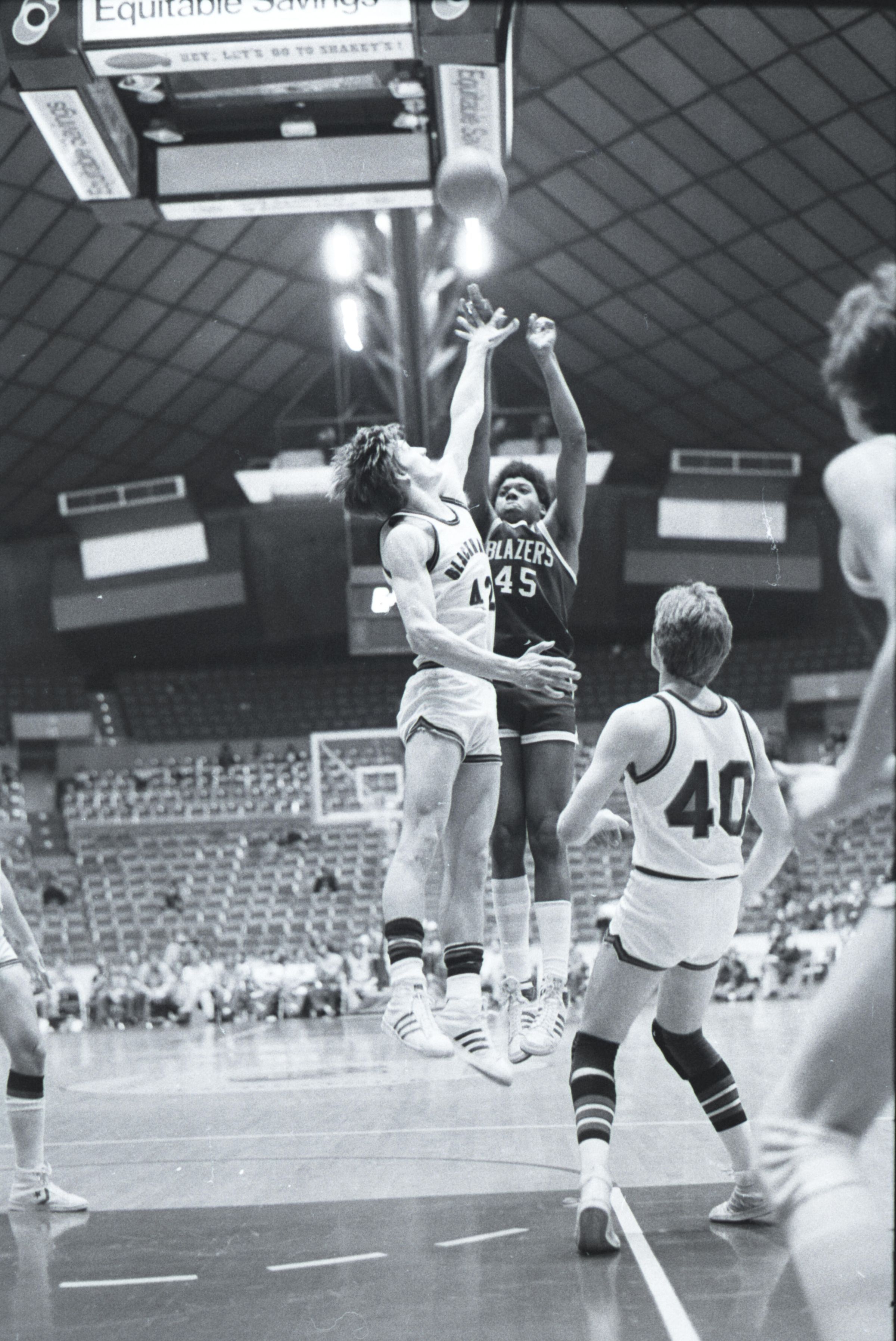 Timberline, State Basketball Champions, 1980. Championship game between Timberline and Cheney High Schools. These seventeen black and white film negative strips were created for the Lacey Leader newspaper. These images were created using five separate film rolls, so some of the physical numbers on the strips are repeated.Made/Created