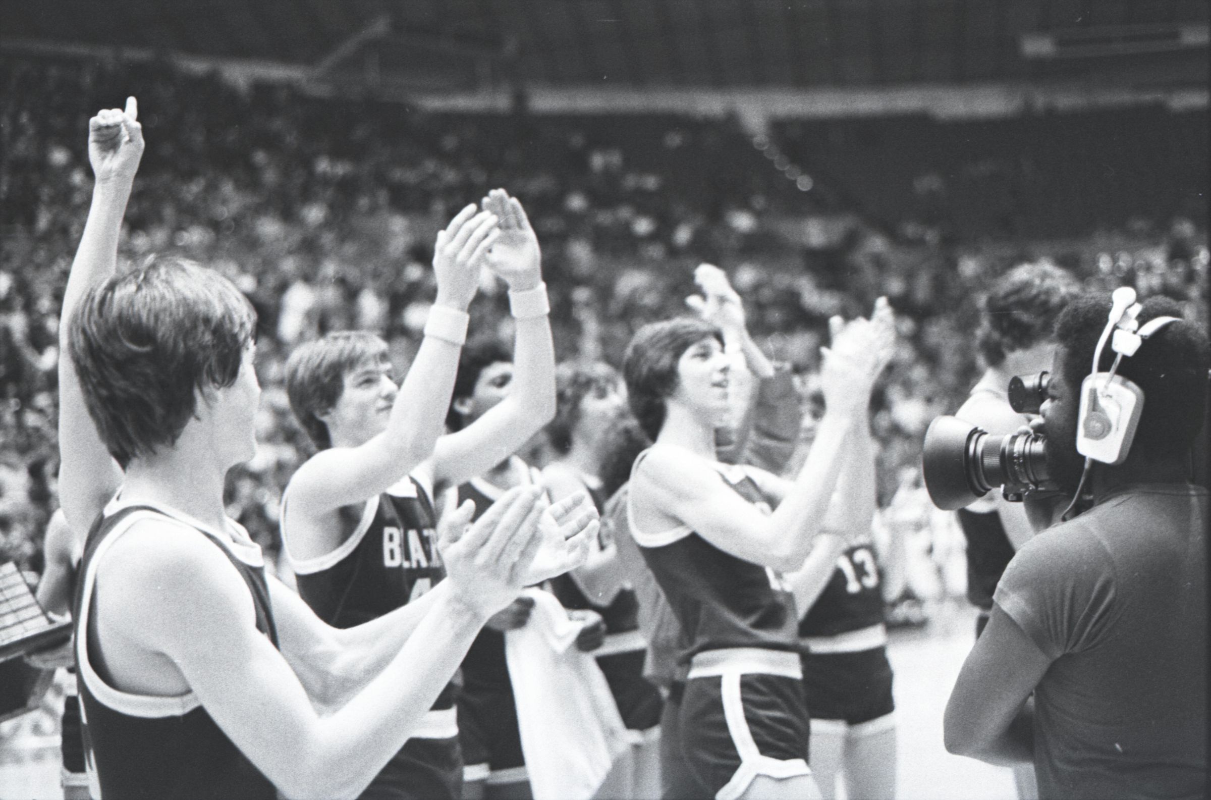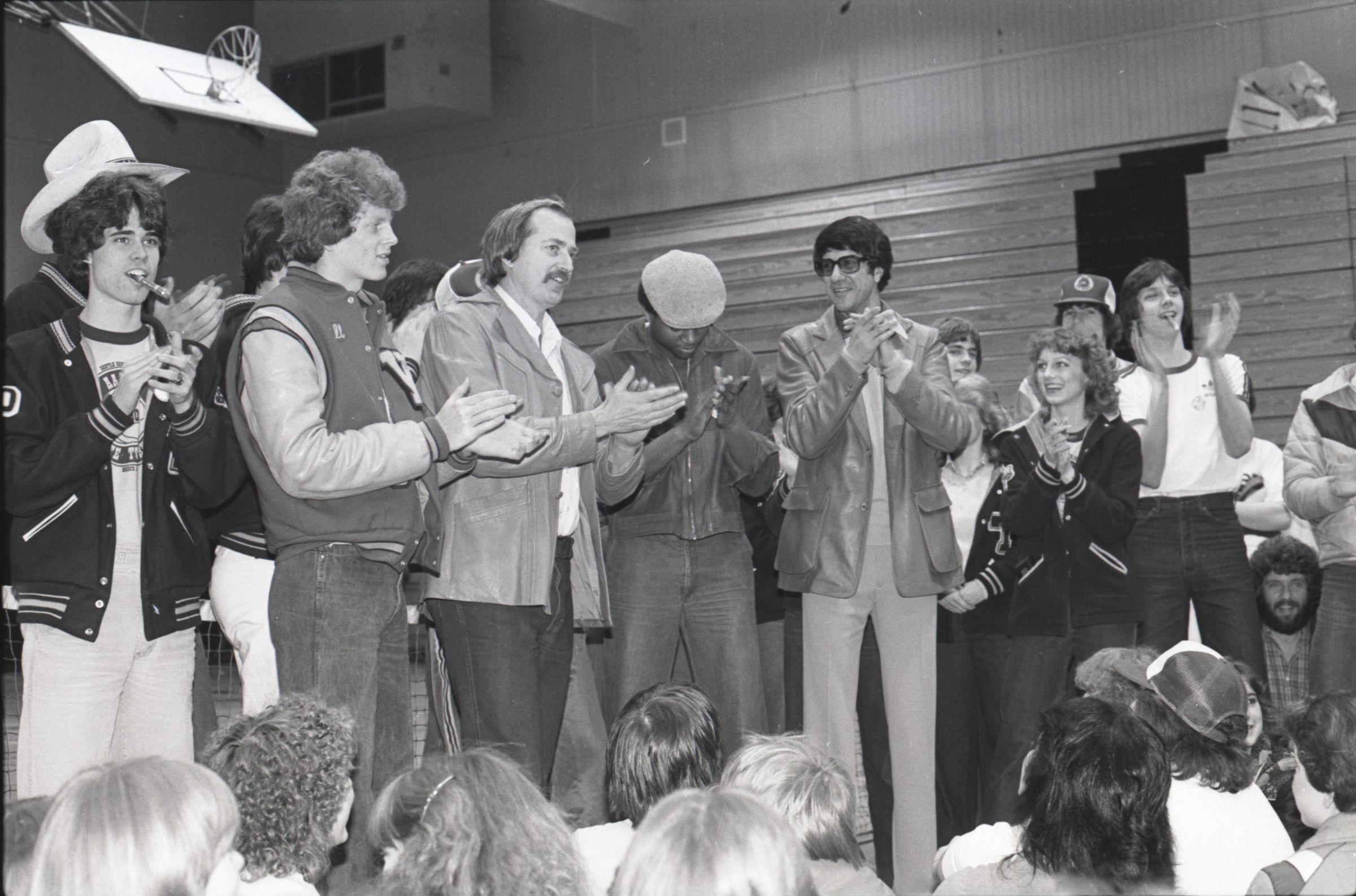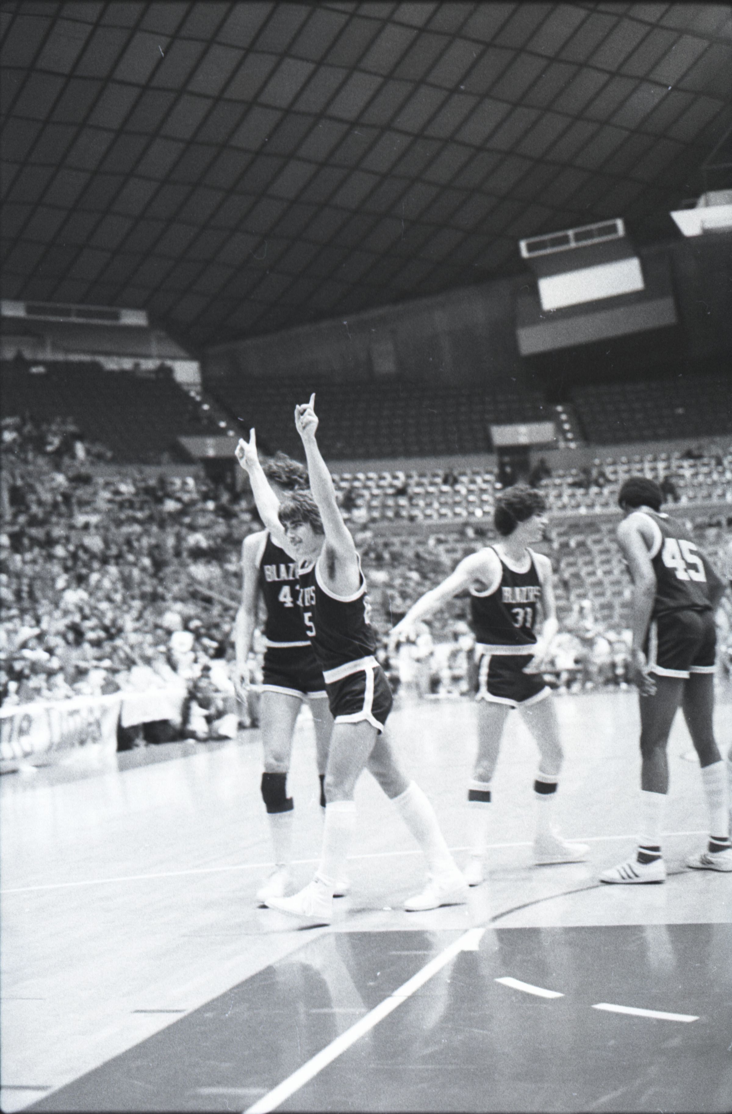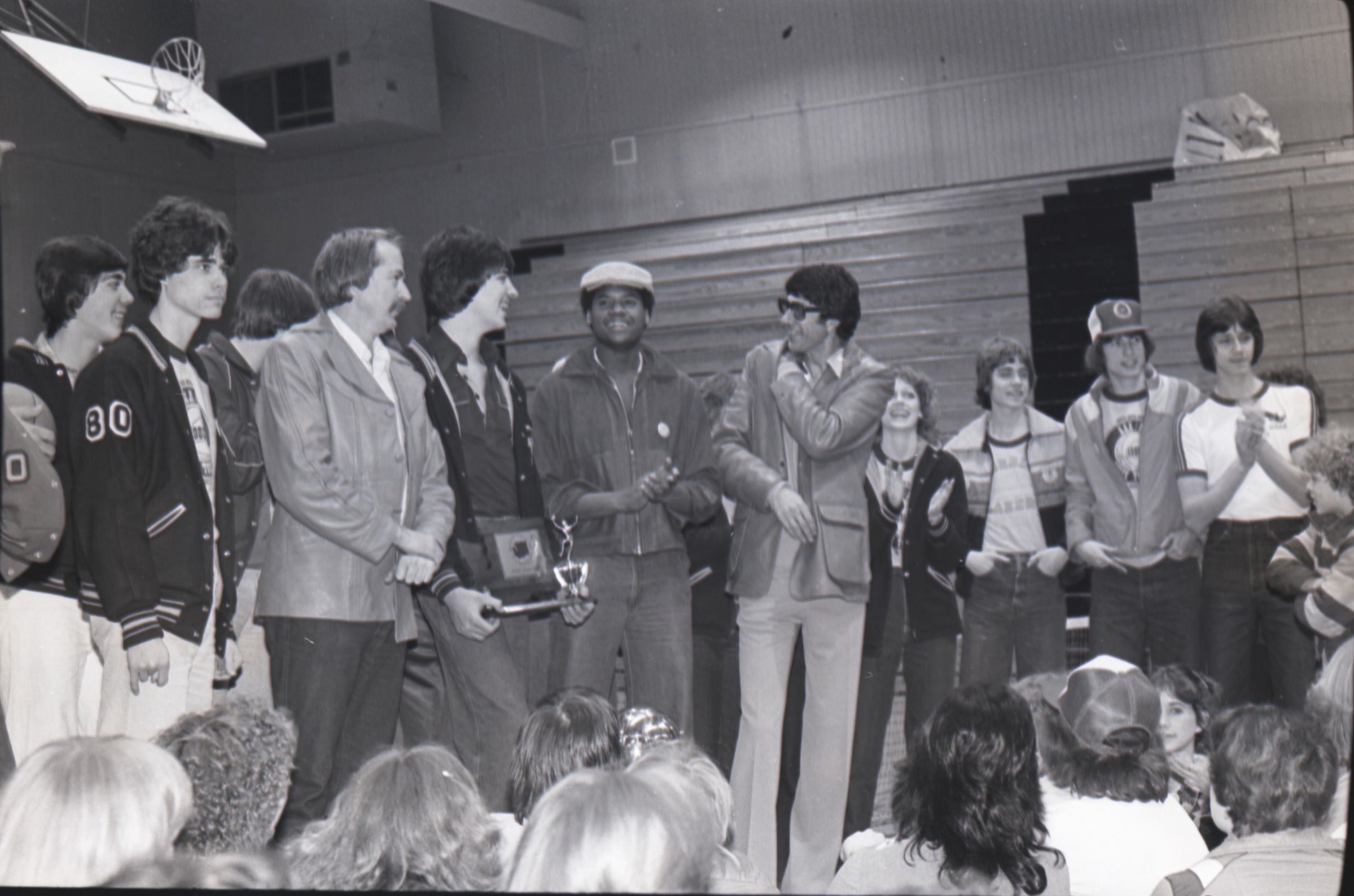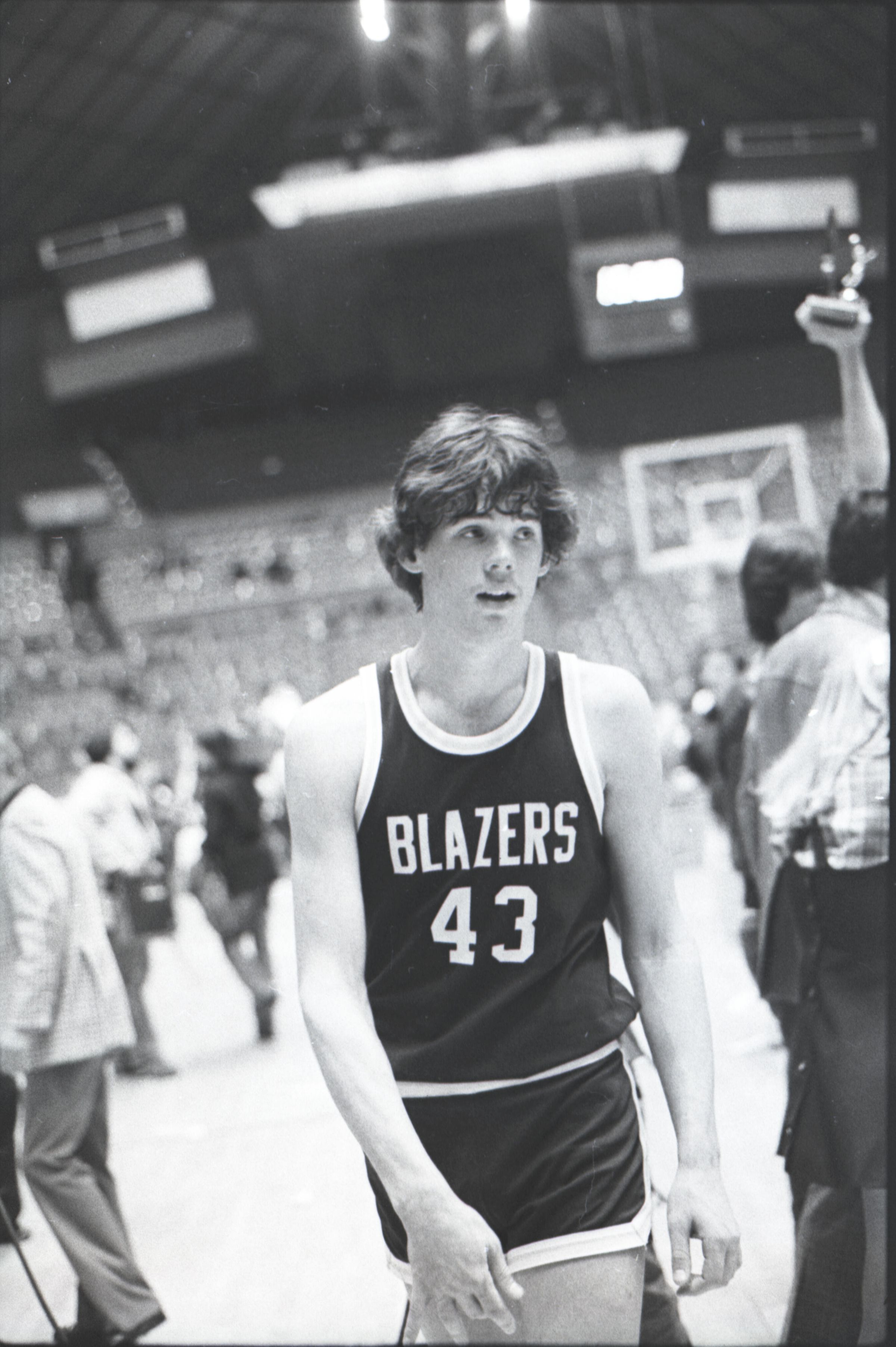 Timberline, State Basketball Champions, 1980. Championship game between Timberline and Cheney High Schools. These seventeen black and white film negative strips were created for the Lacey Leader newspaper. These images were created using five separate film rolls, so some of the physical numbers on the strips are repeated.Made/Created
