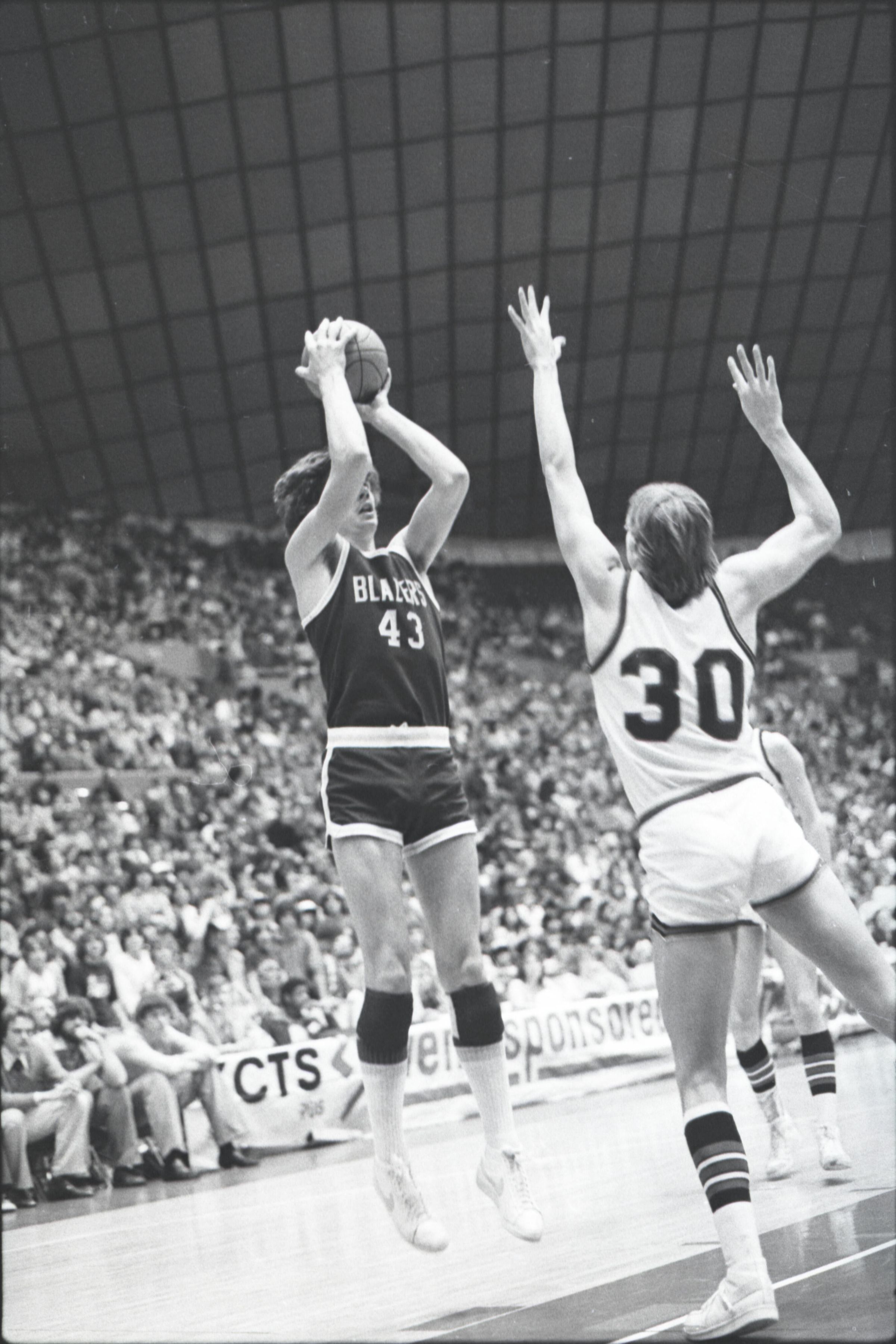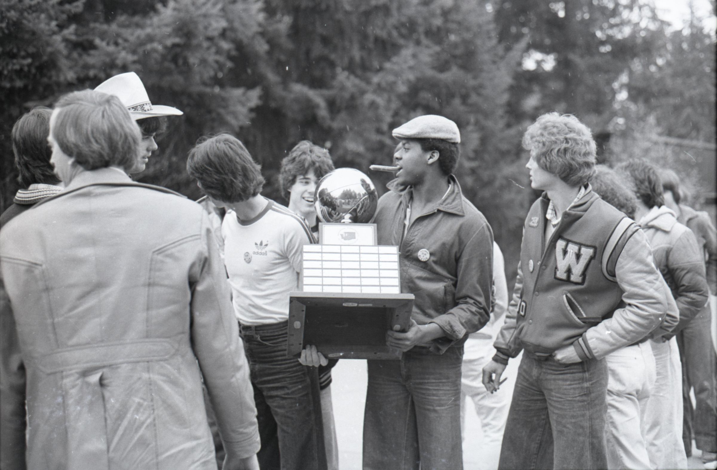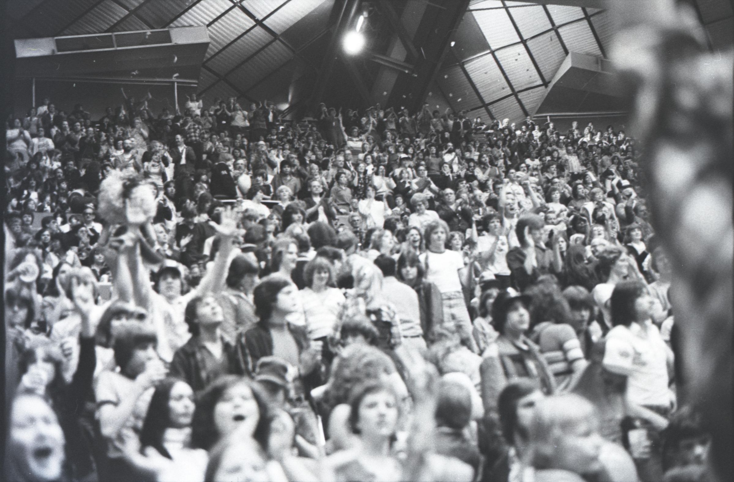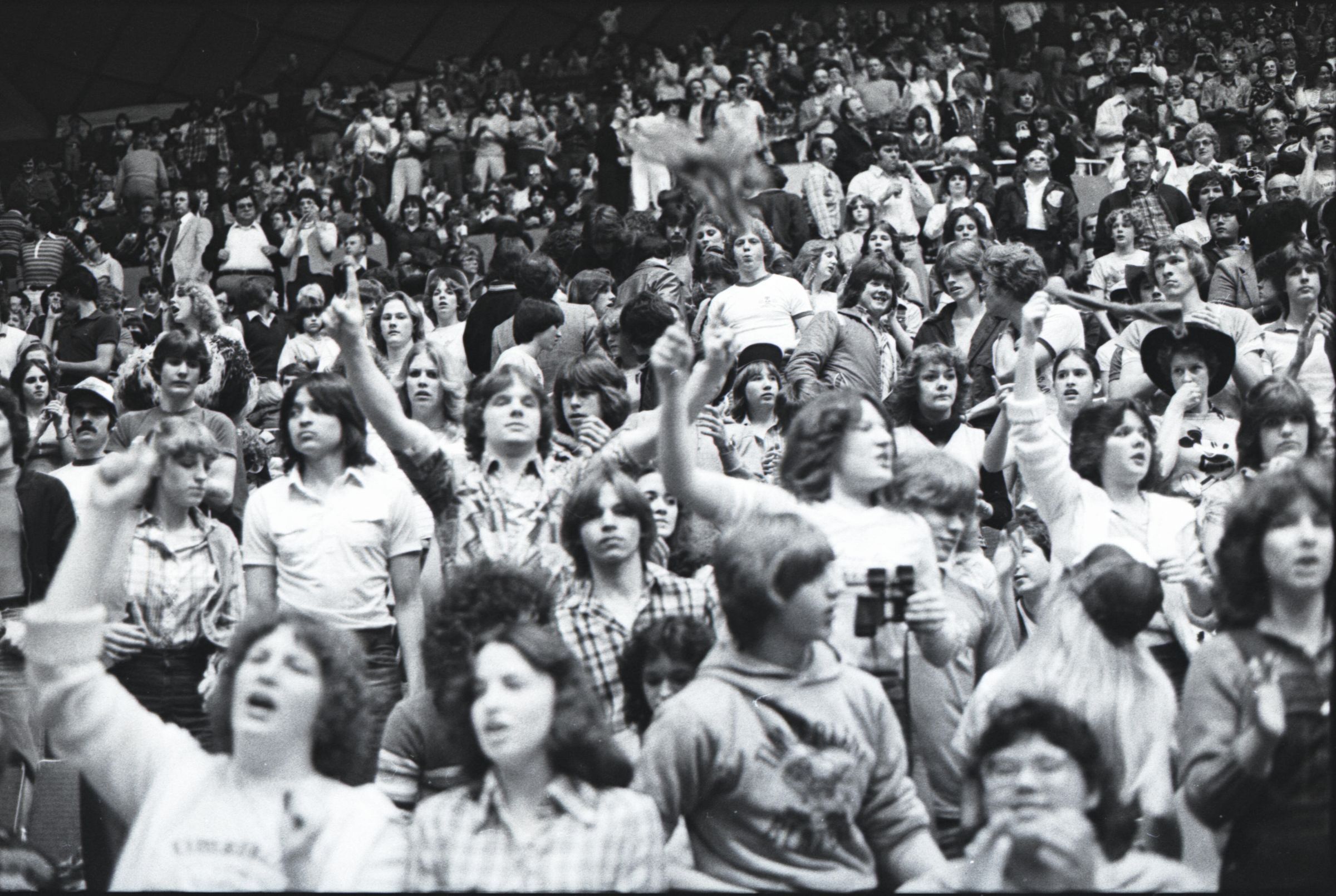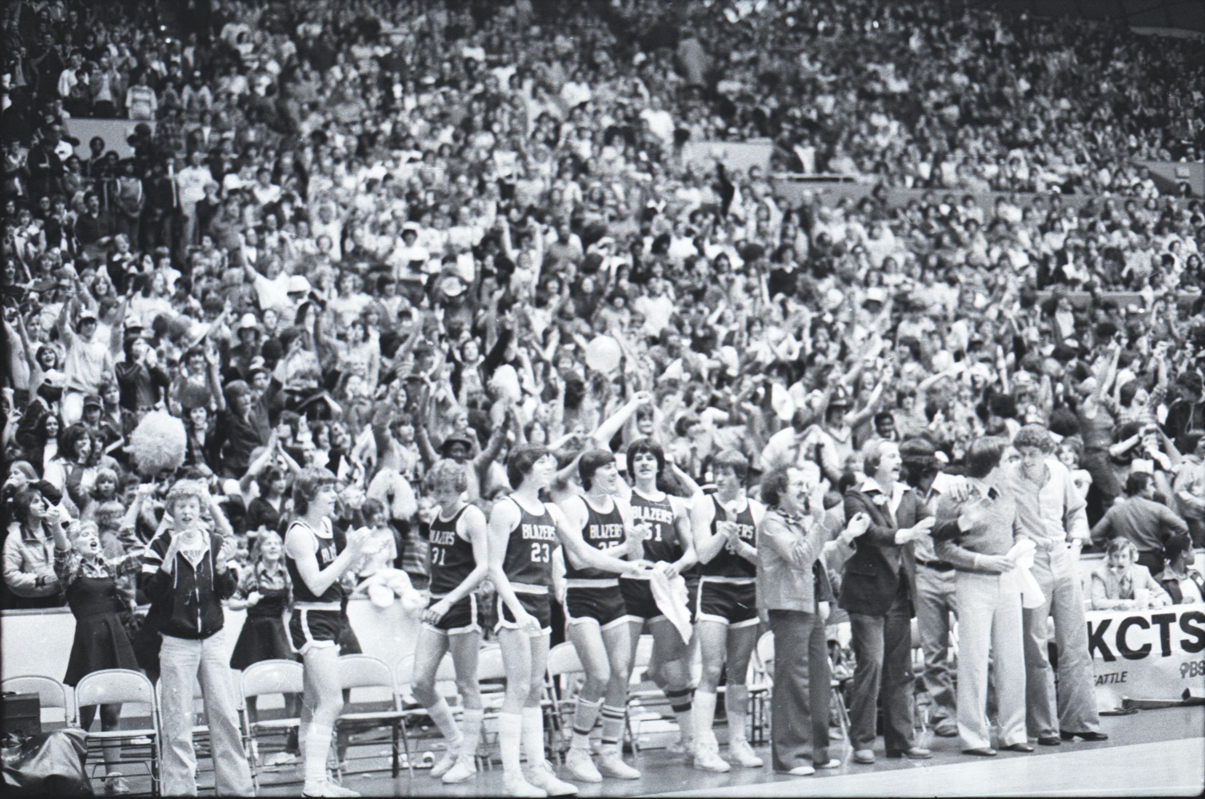 Timberline, State Basketball Champions, 1980. Championship game between Timberline and Cheney High Schools. These seventeen black and white film negative strips were created for the Lacey Leader newspaper. These images were created using five separate film rolls, so some of the physical numbers on the strips are repeated.Made/Created