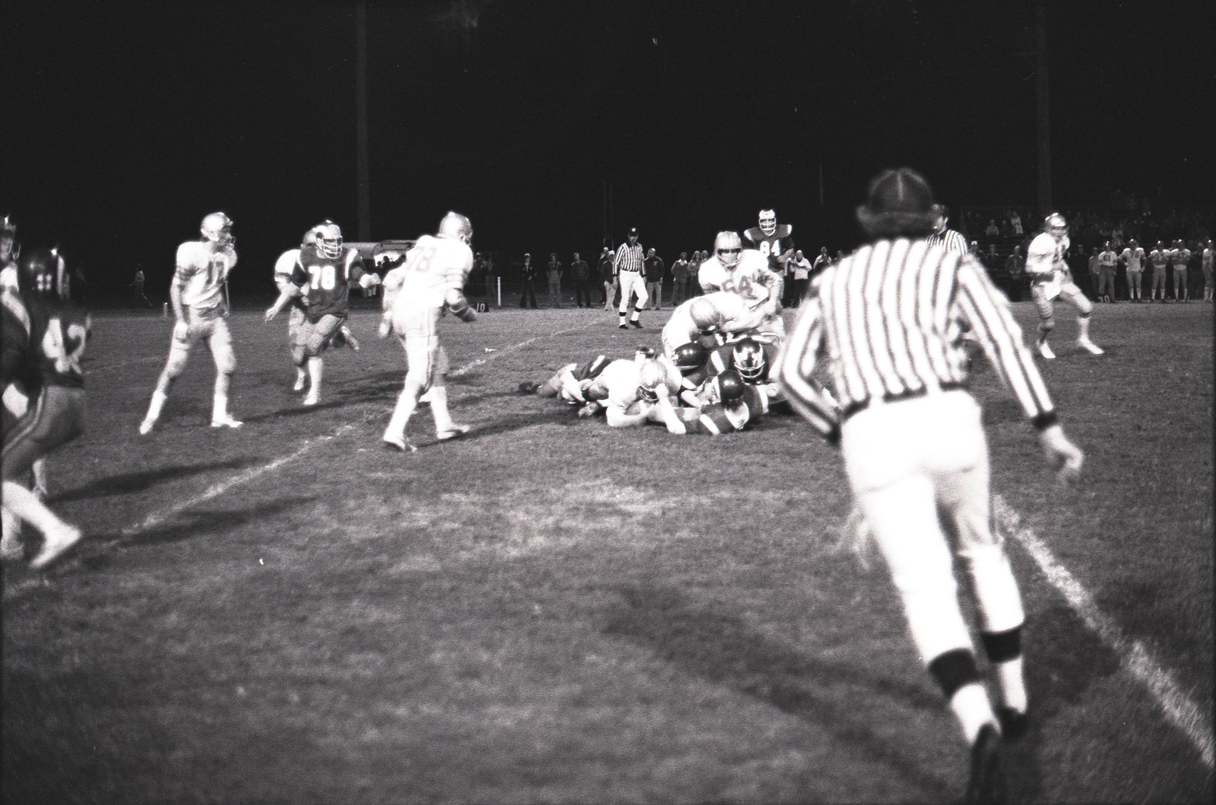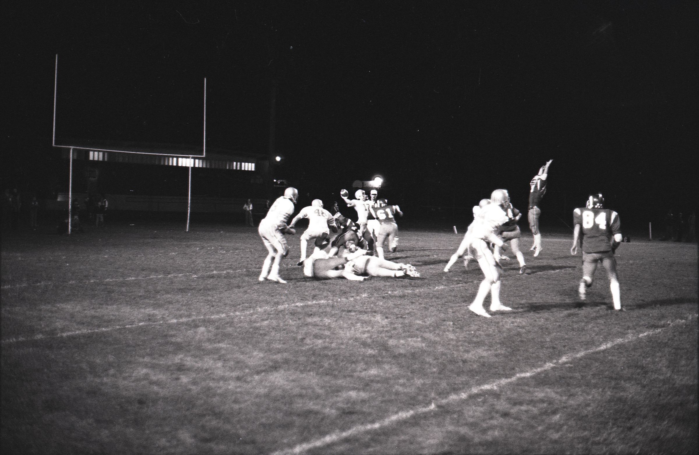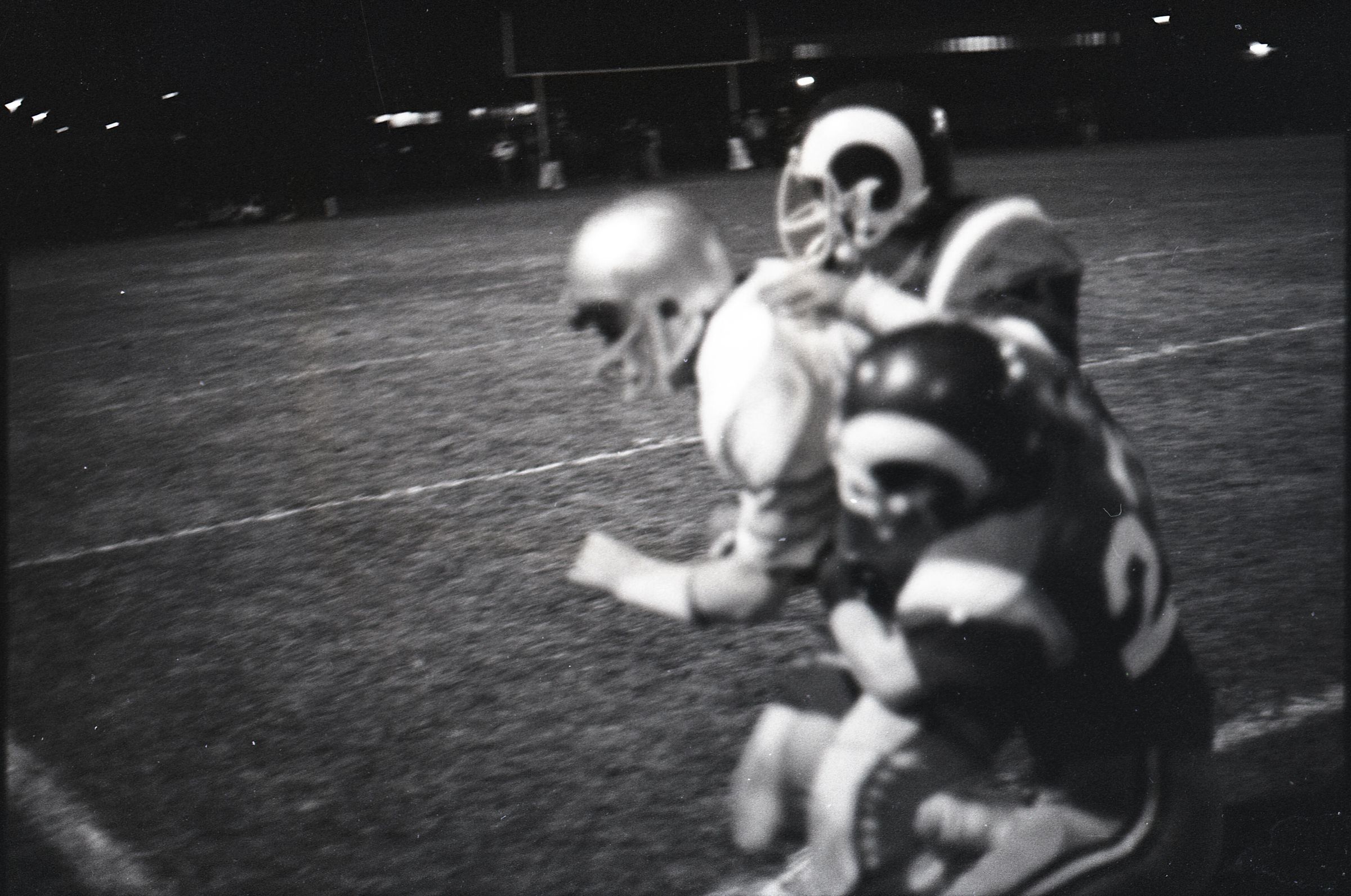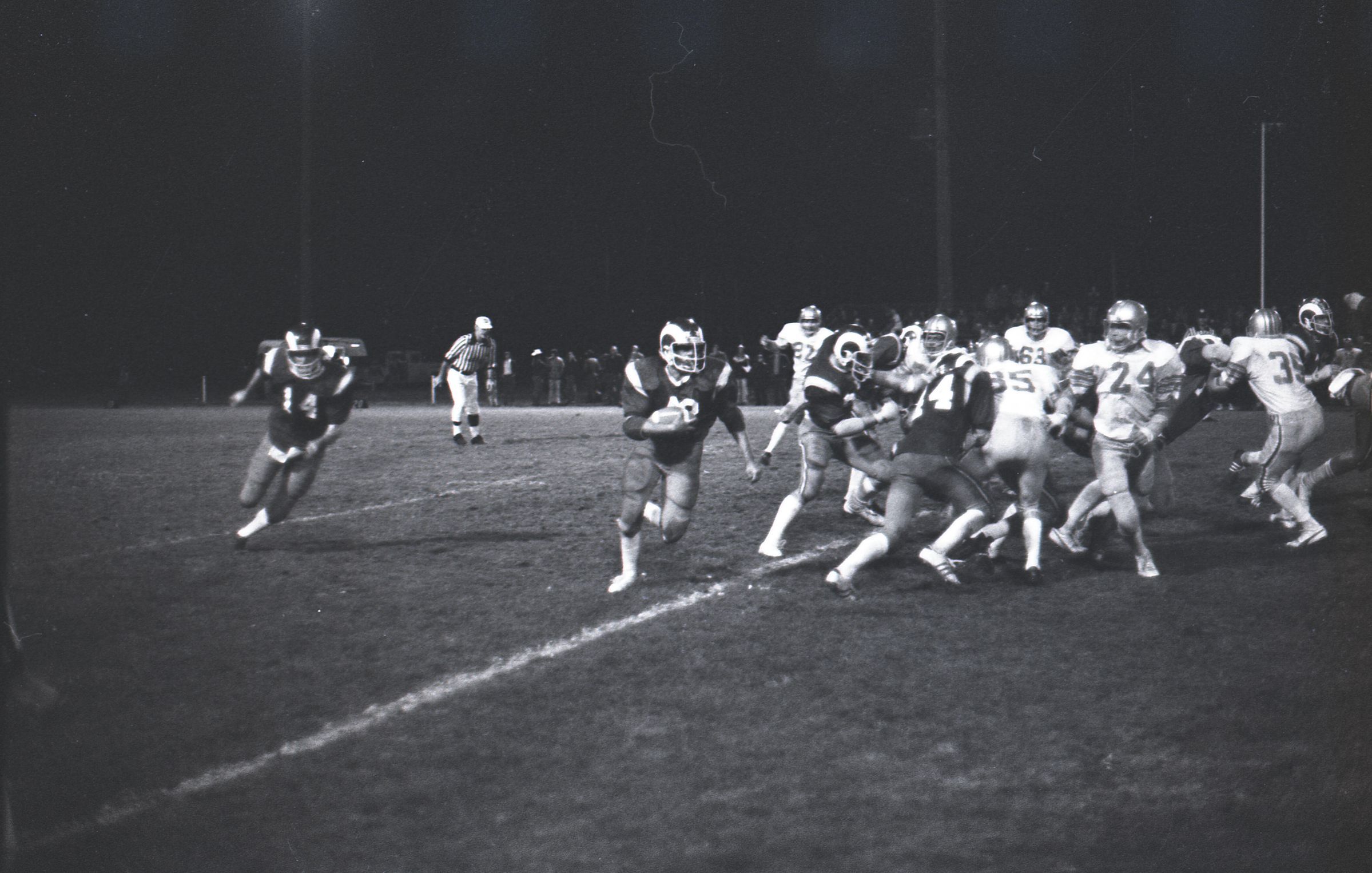 North Thurston vs. Centralia, Football, 1978. These seven black and white film negative strips were created for the Lacey Leader newspaper. These images show a football game between the teams from North Thurston and Centralia high schools.Made/Created