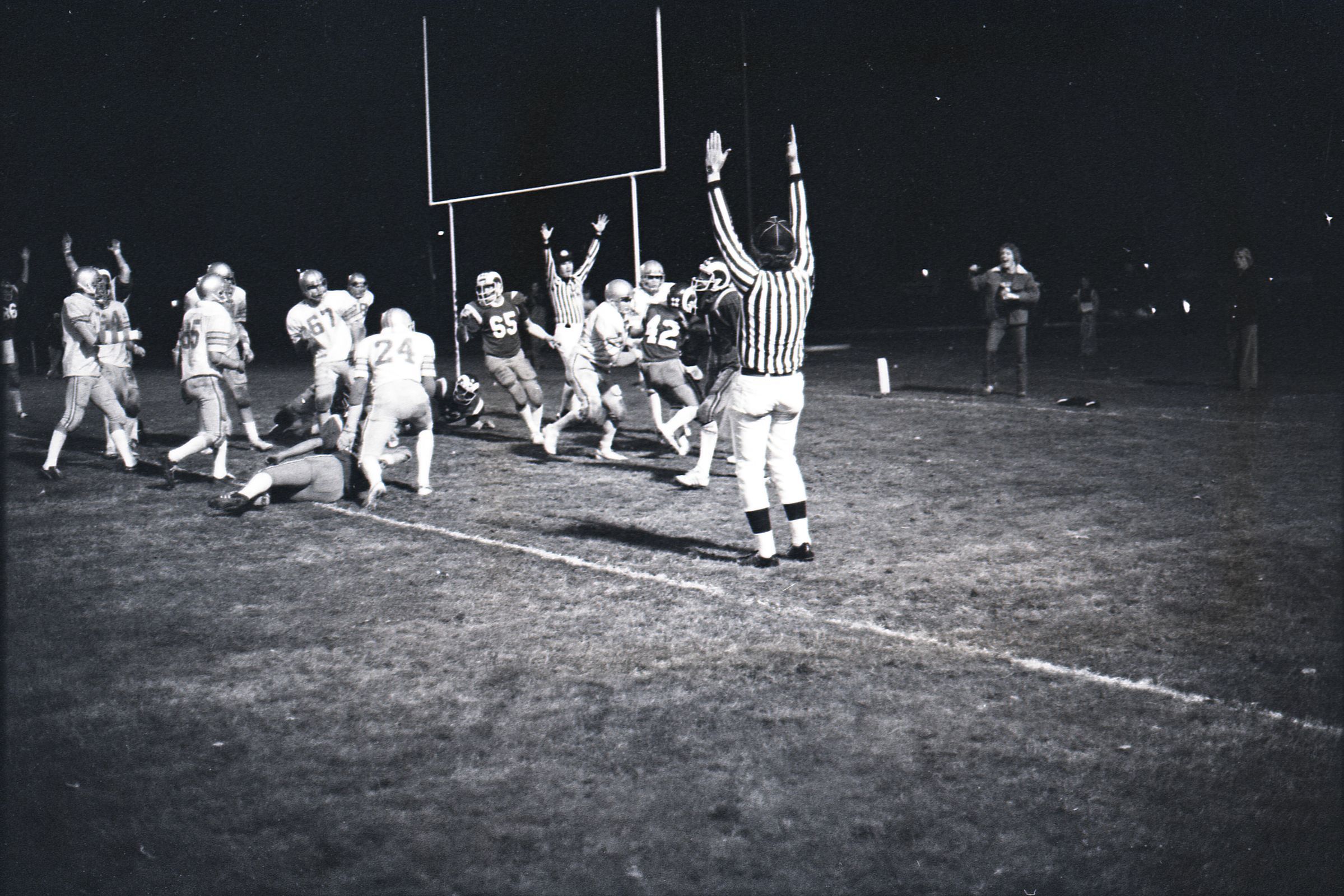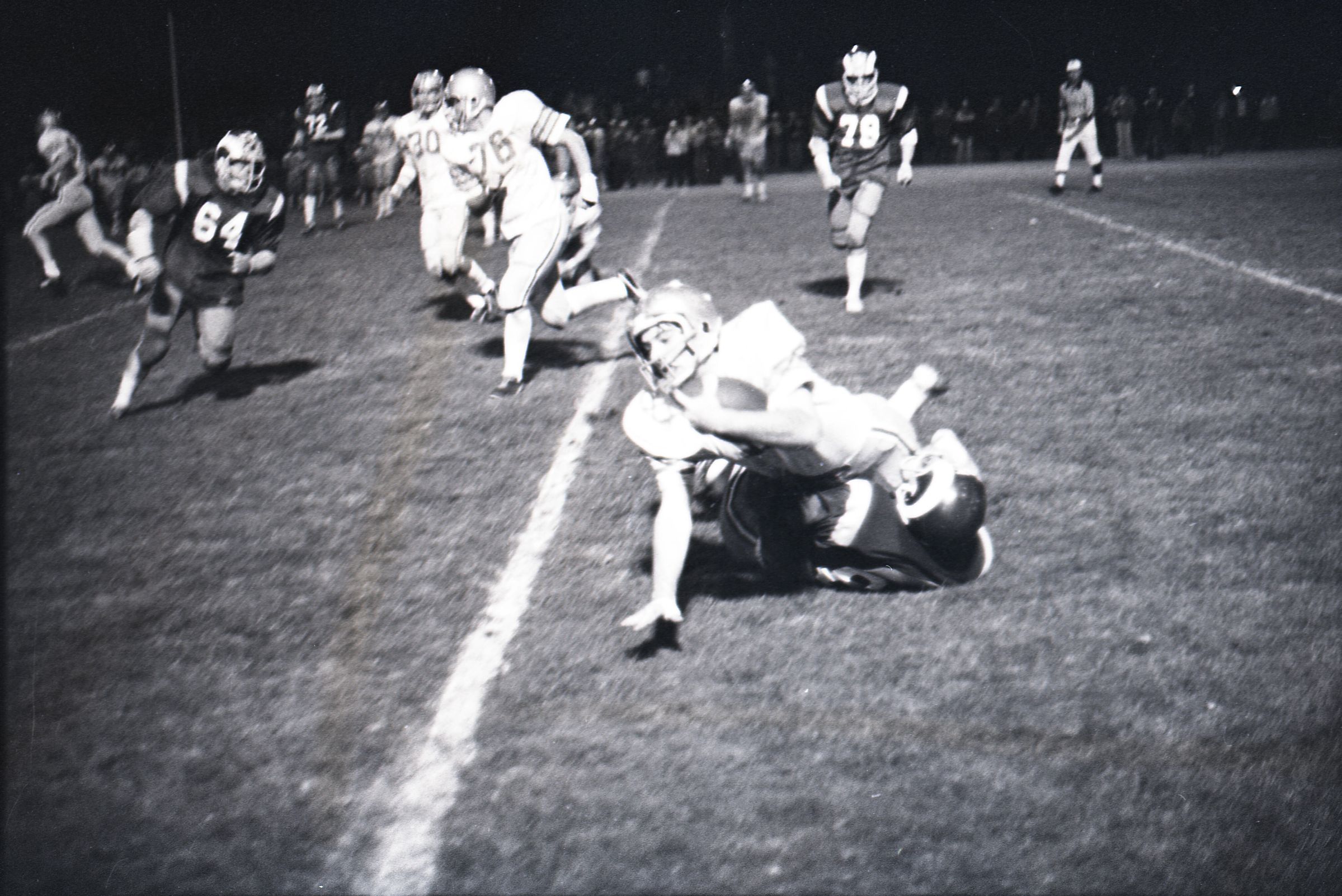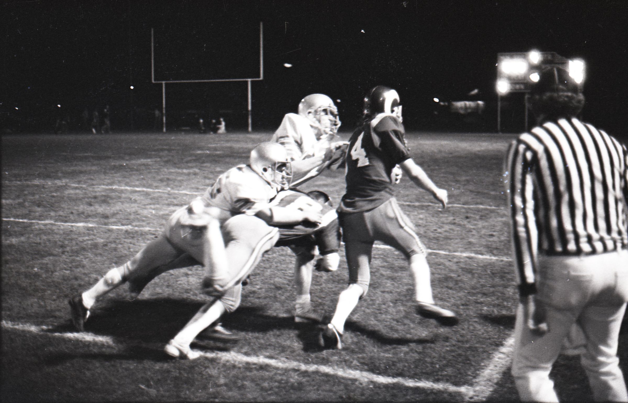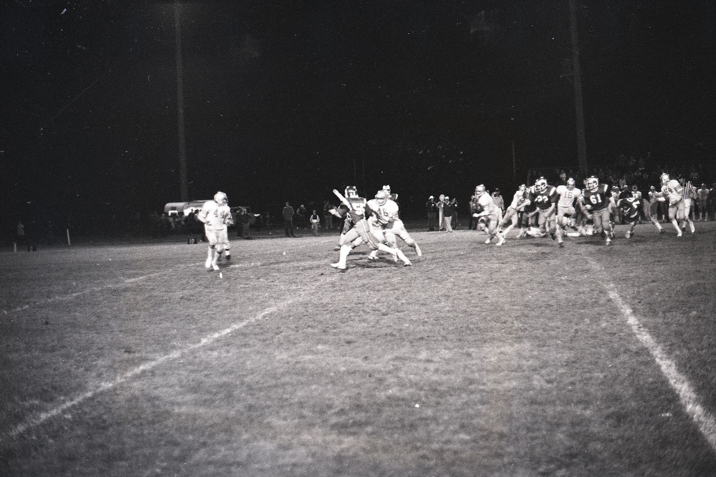 North Thurston vs. Centralia, Football, 1978. These seven black and white film negative strips were created for the Lacey Leader newspaper. These images show a football game between the teams from North Thurston and Centralia high schools.Made/Created