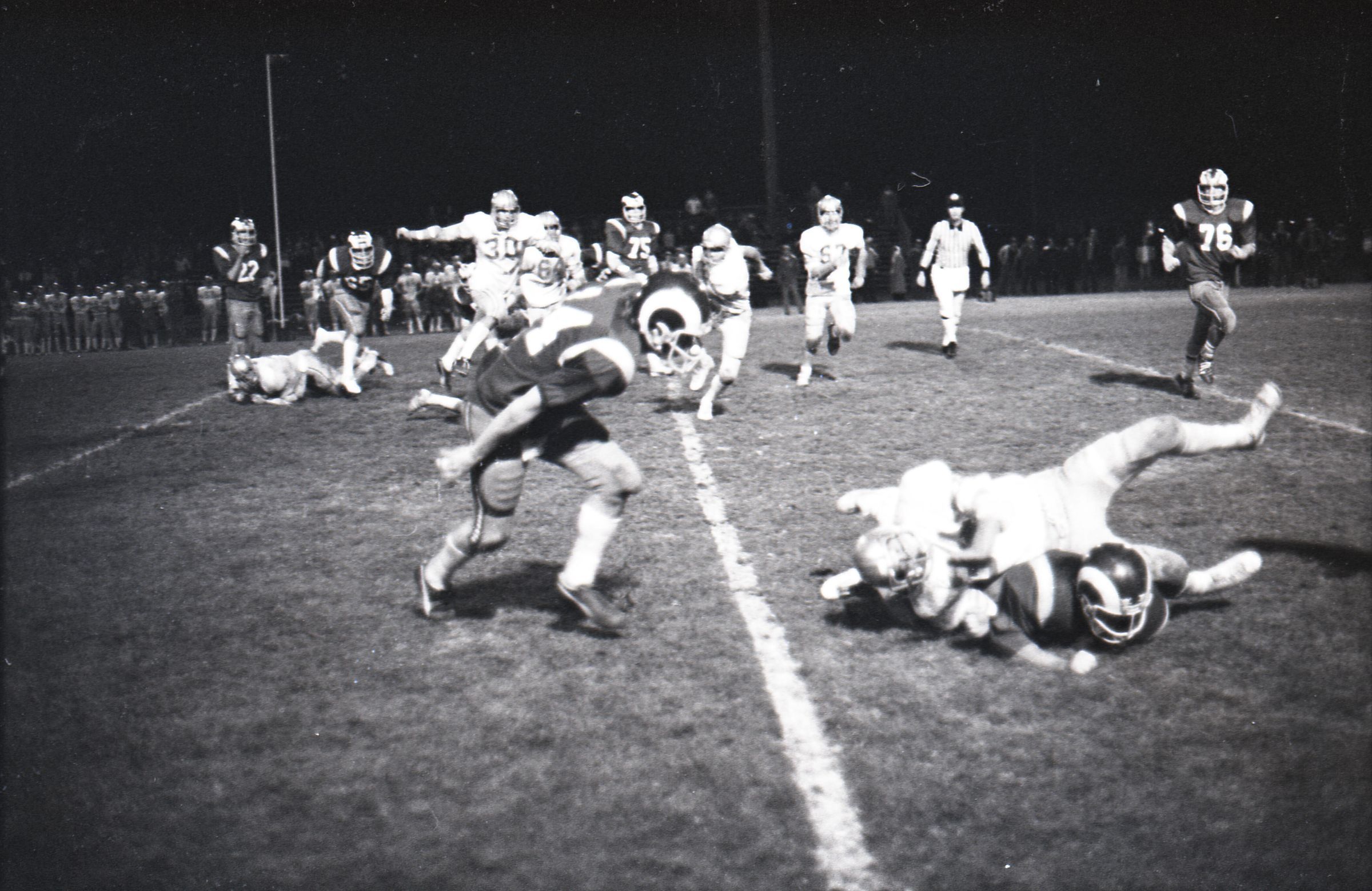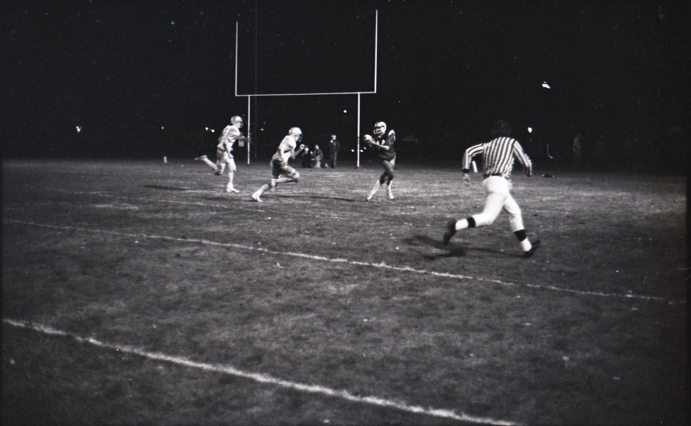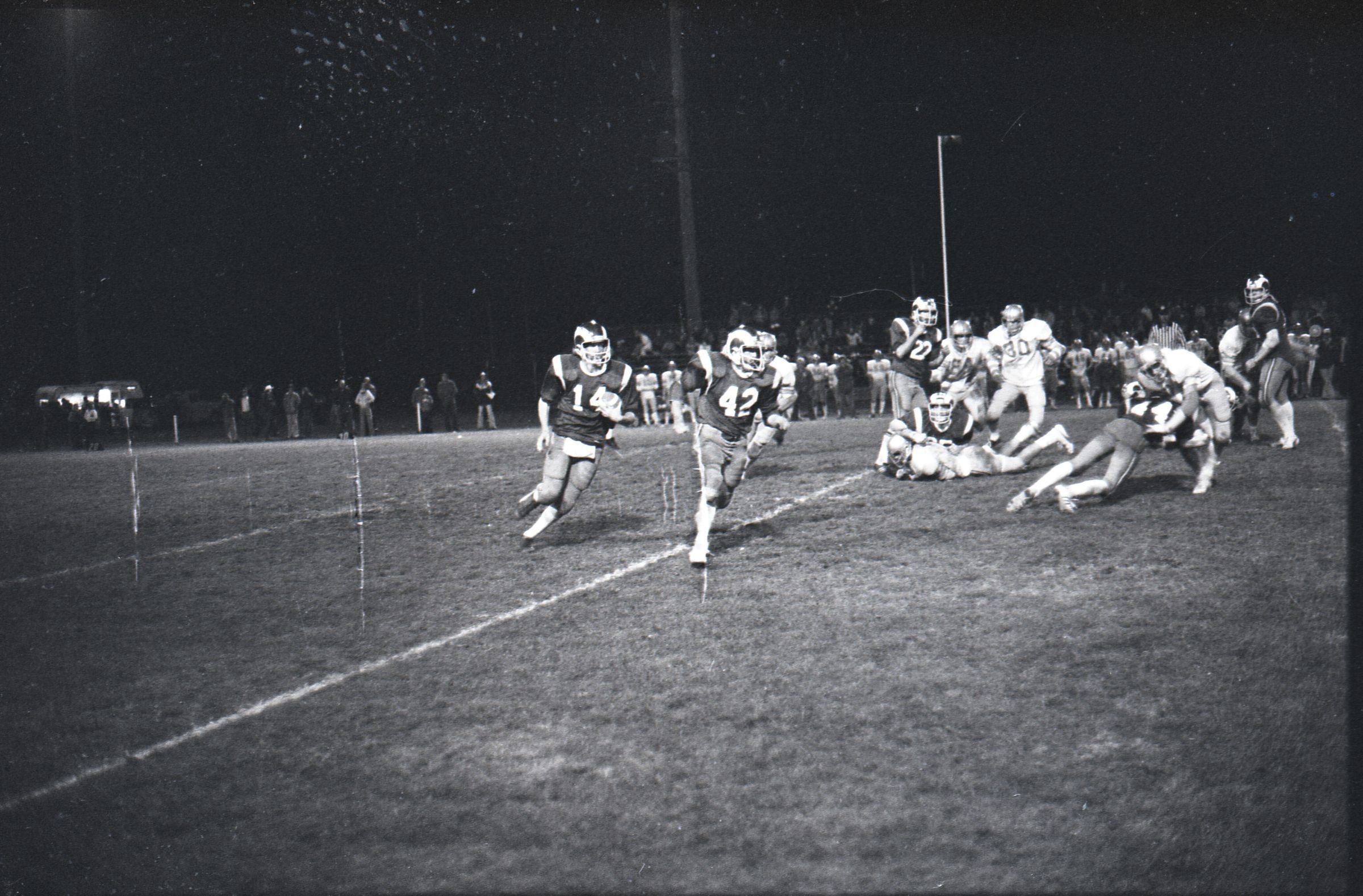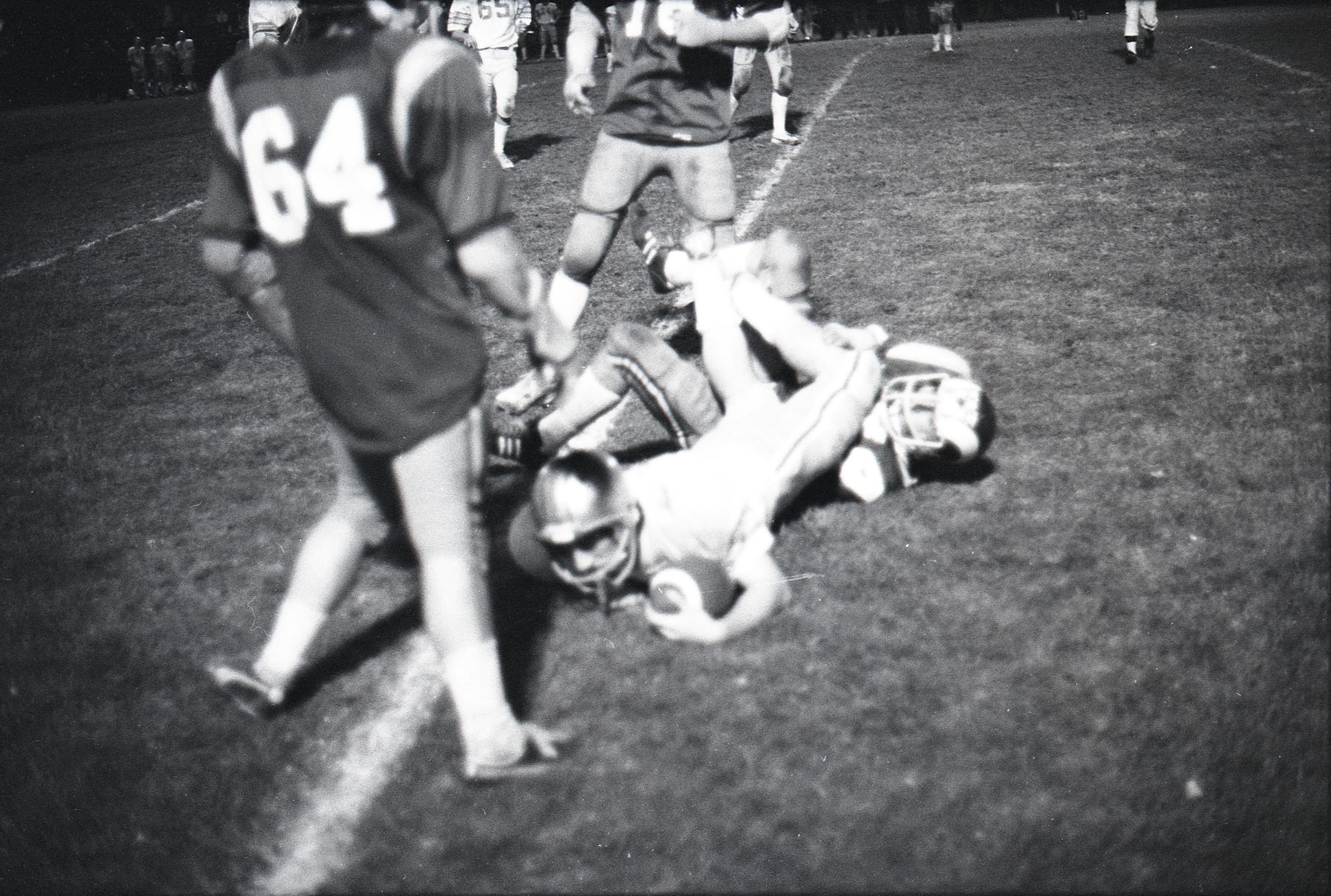 North Thurston vs. Centralia, Football, 1978. These seven black and white film negative strips were created for the Lacey Leader newspaper. These images show a football game between the teams from North Thurston and Centralia high schools.Made/Created