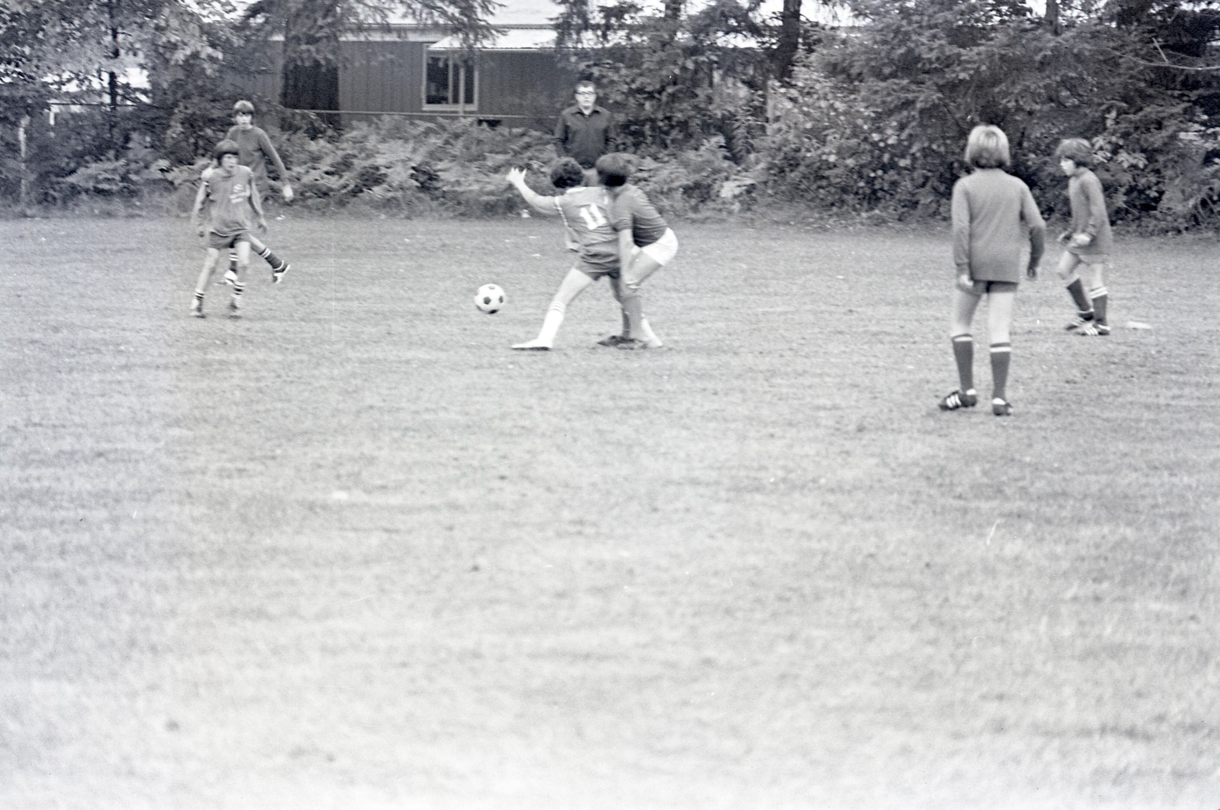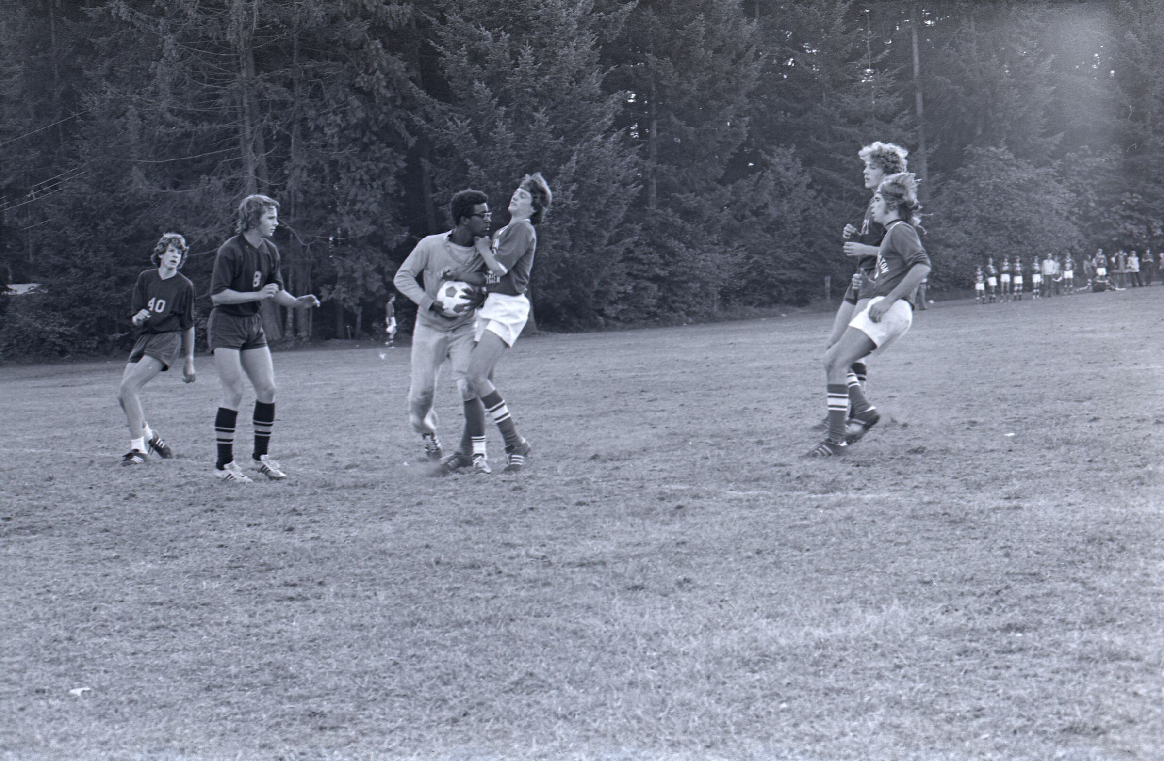 Canadian Soccer, 10-30-1974, 11-06-1974. These seven black and white negative film strips were created for the Lacey Leader newspaper. They depict two separate soccer matches.