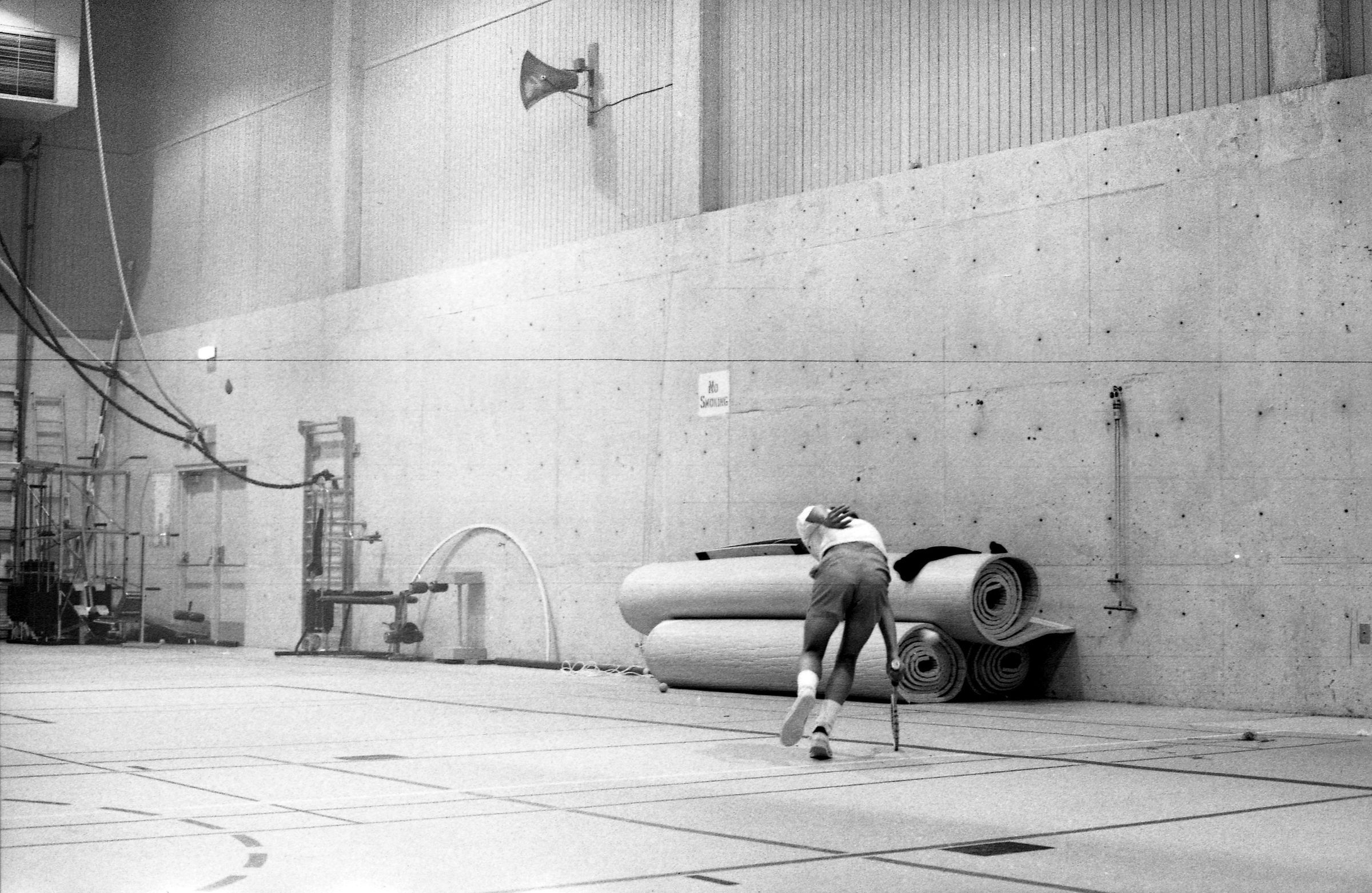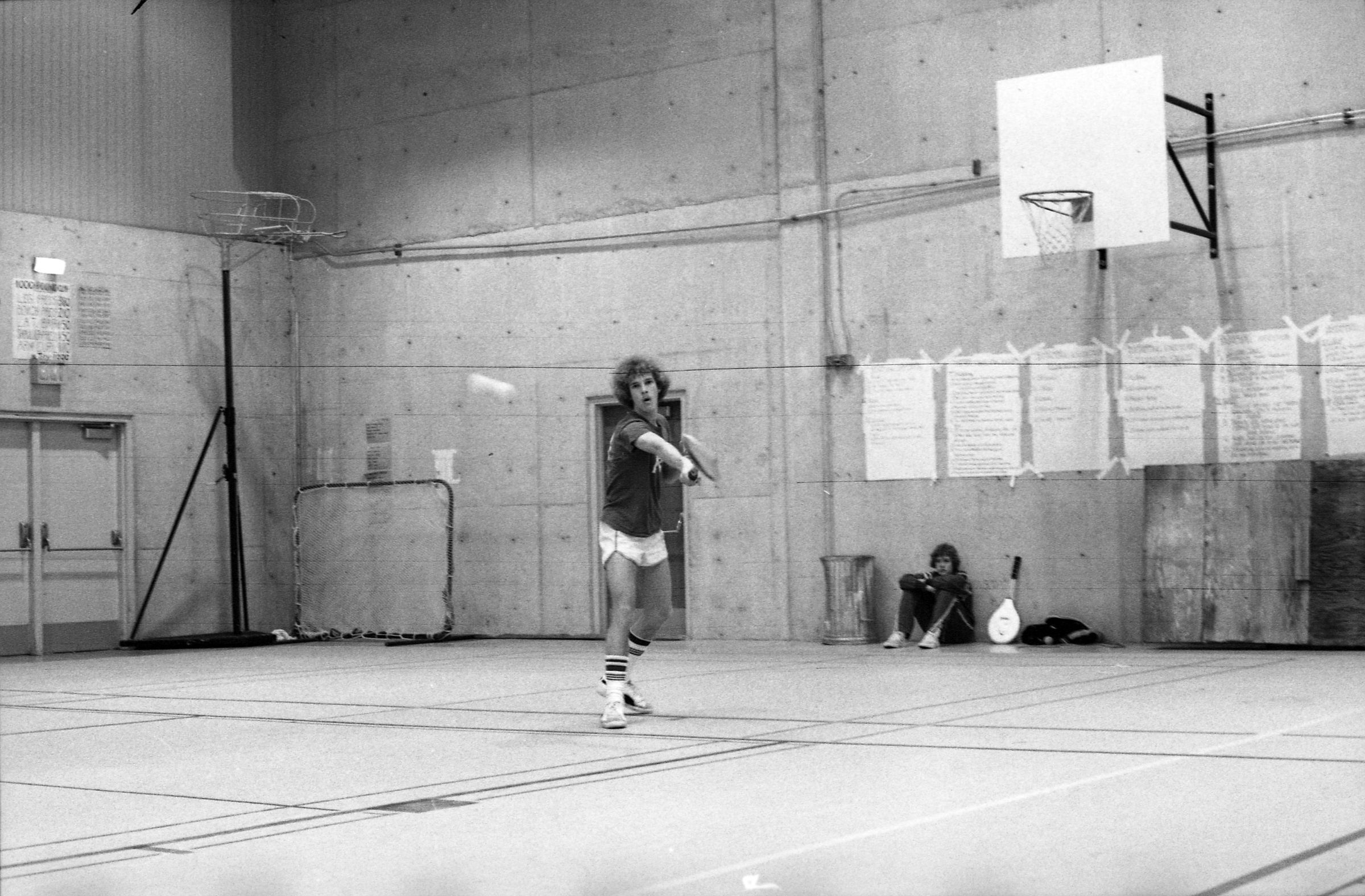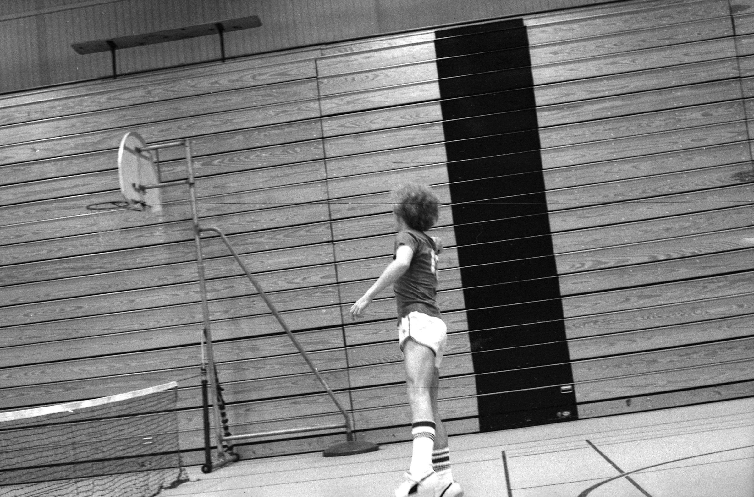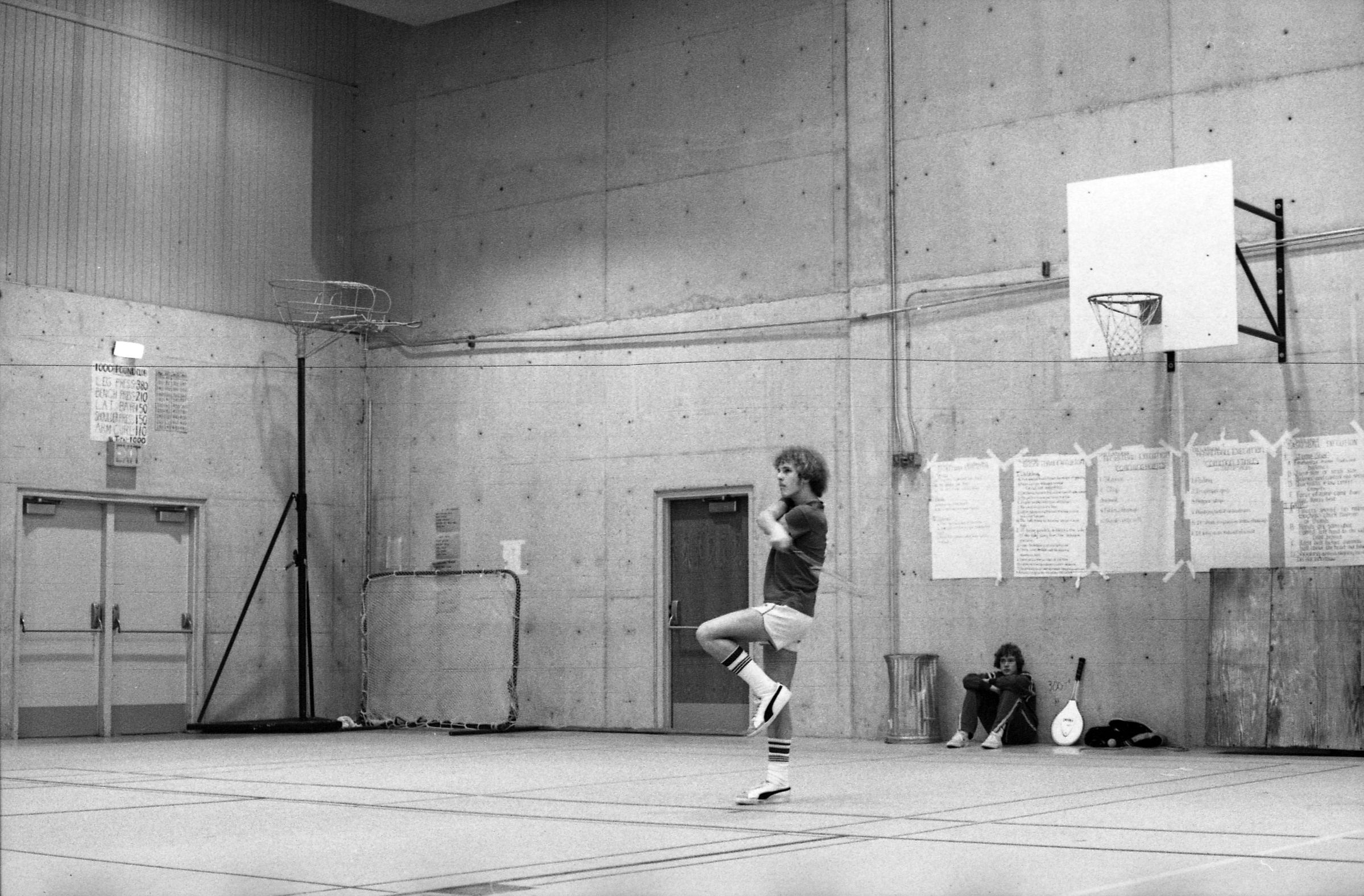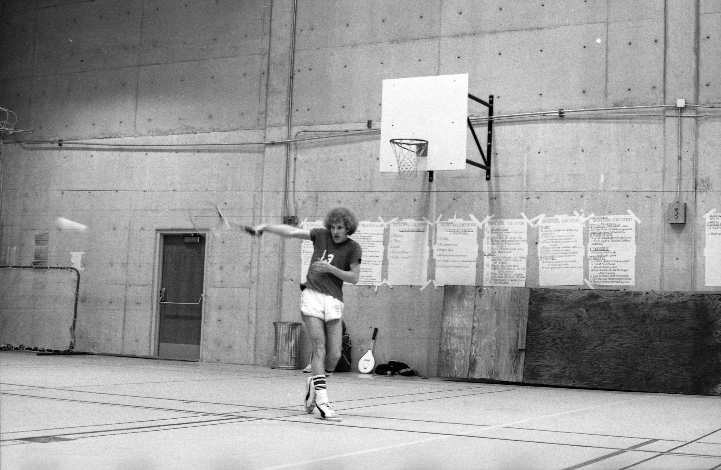Tennis, 03-26-1975. These three black and white negative film strips were created for the Lacey Leader newspaper. They depict two individuals playing tennis.Made/Created