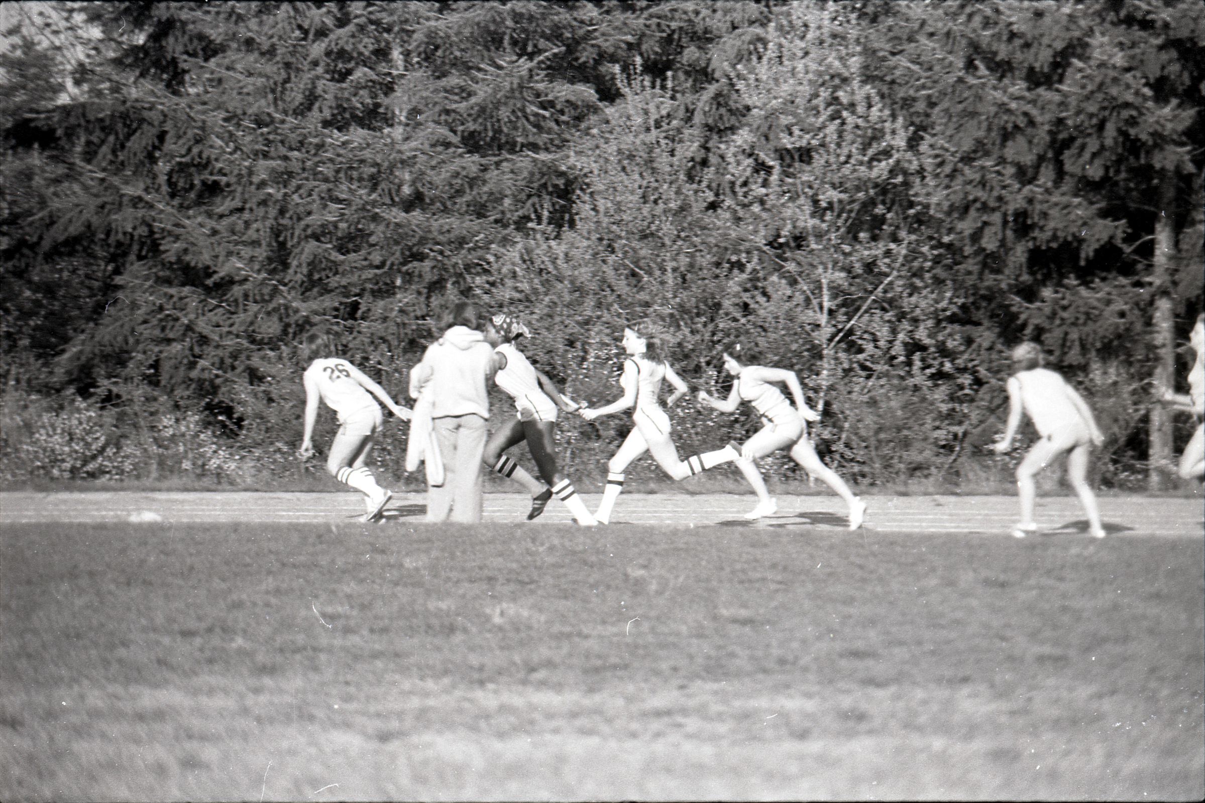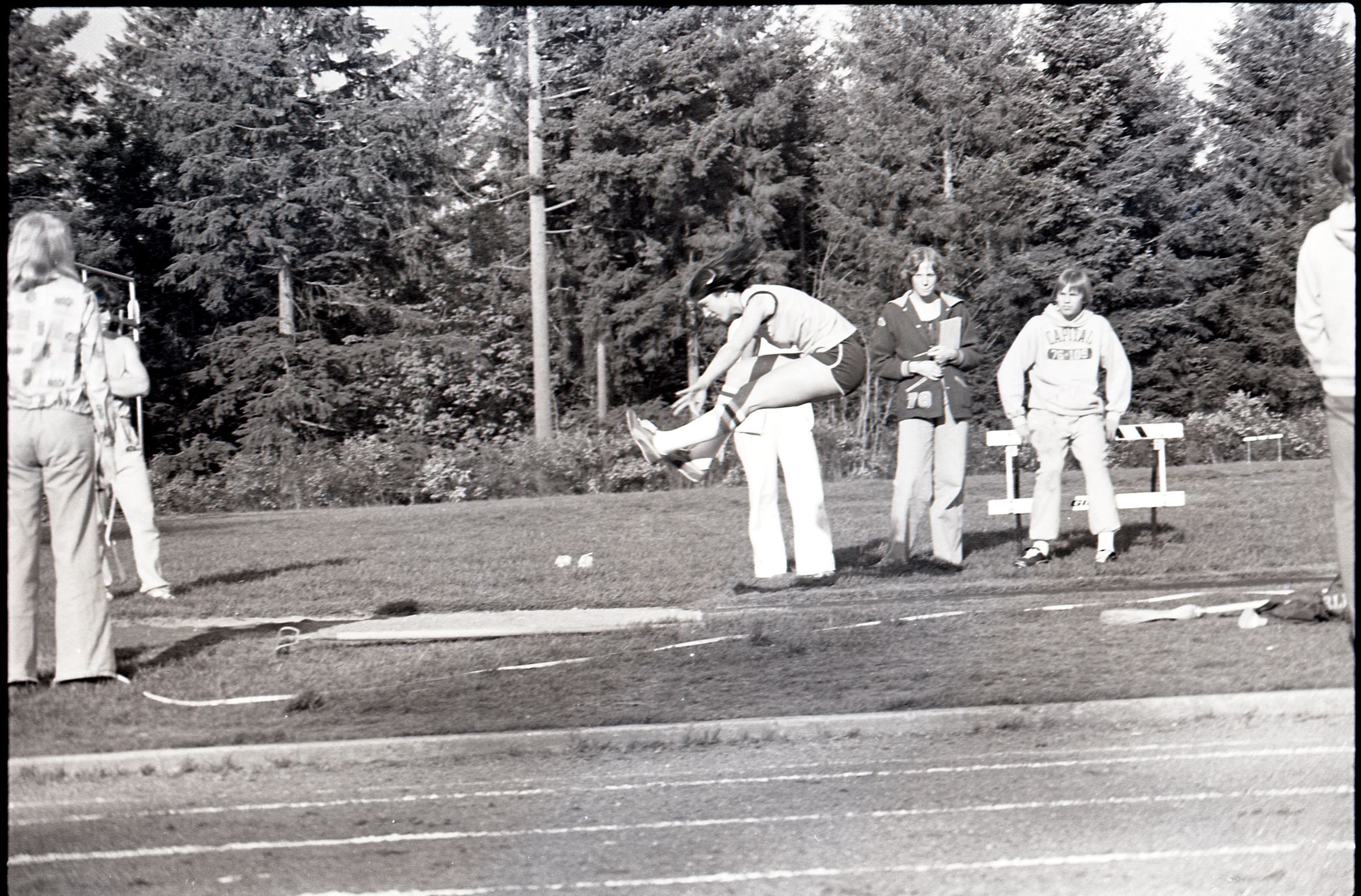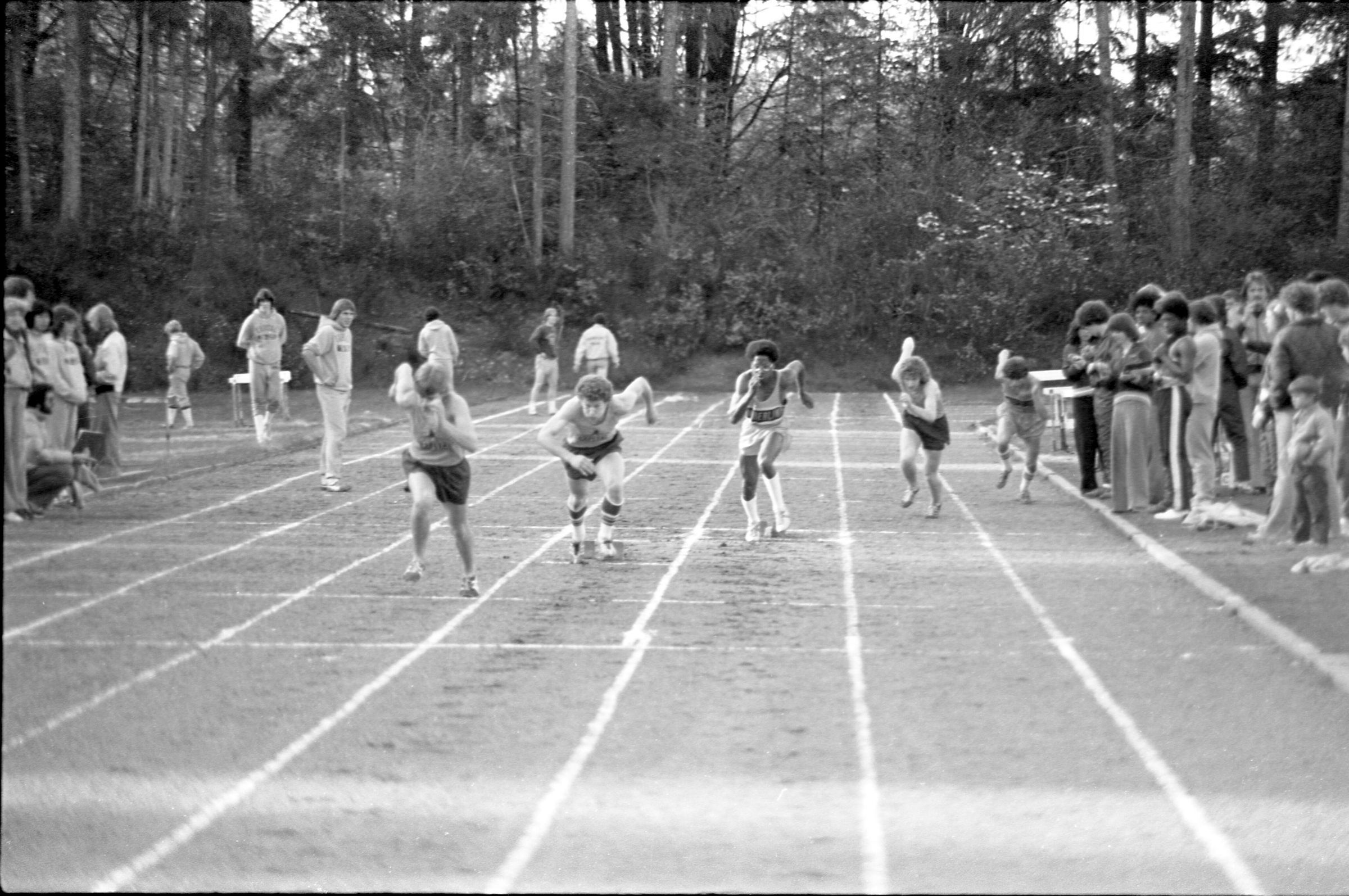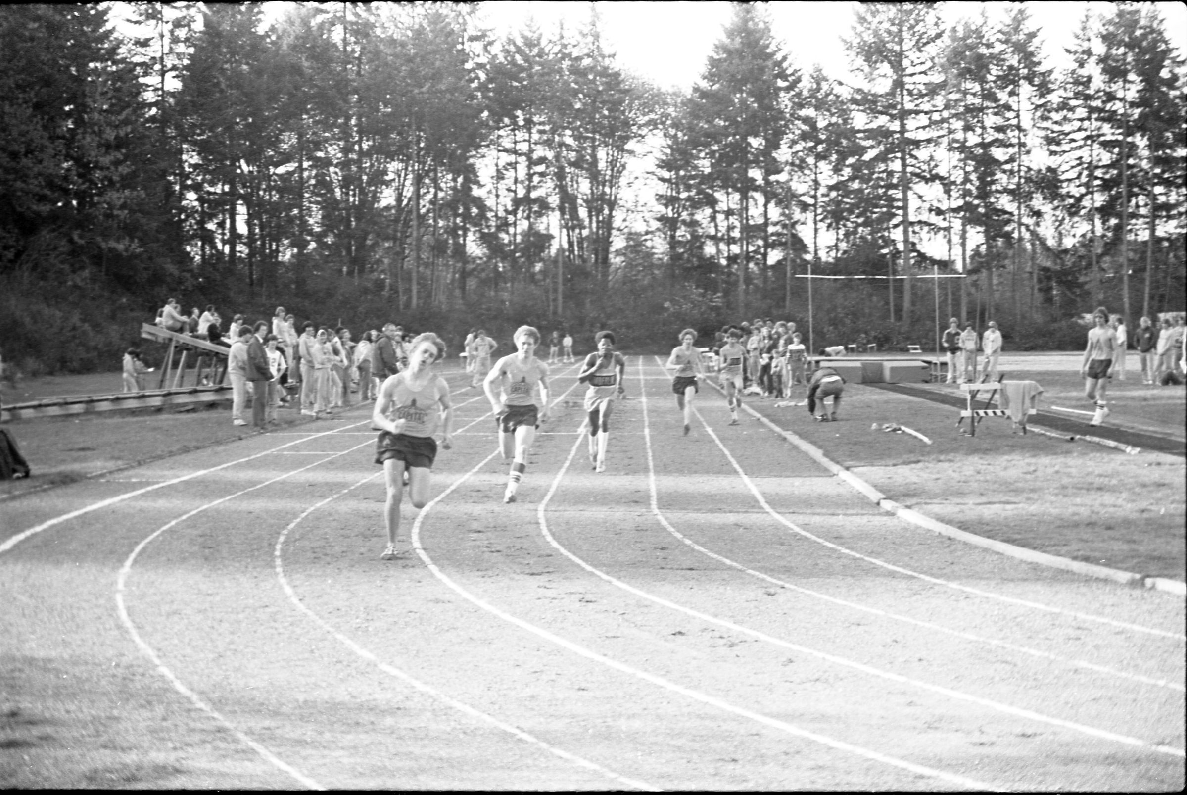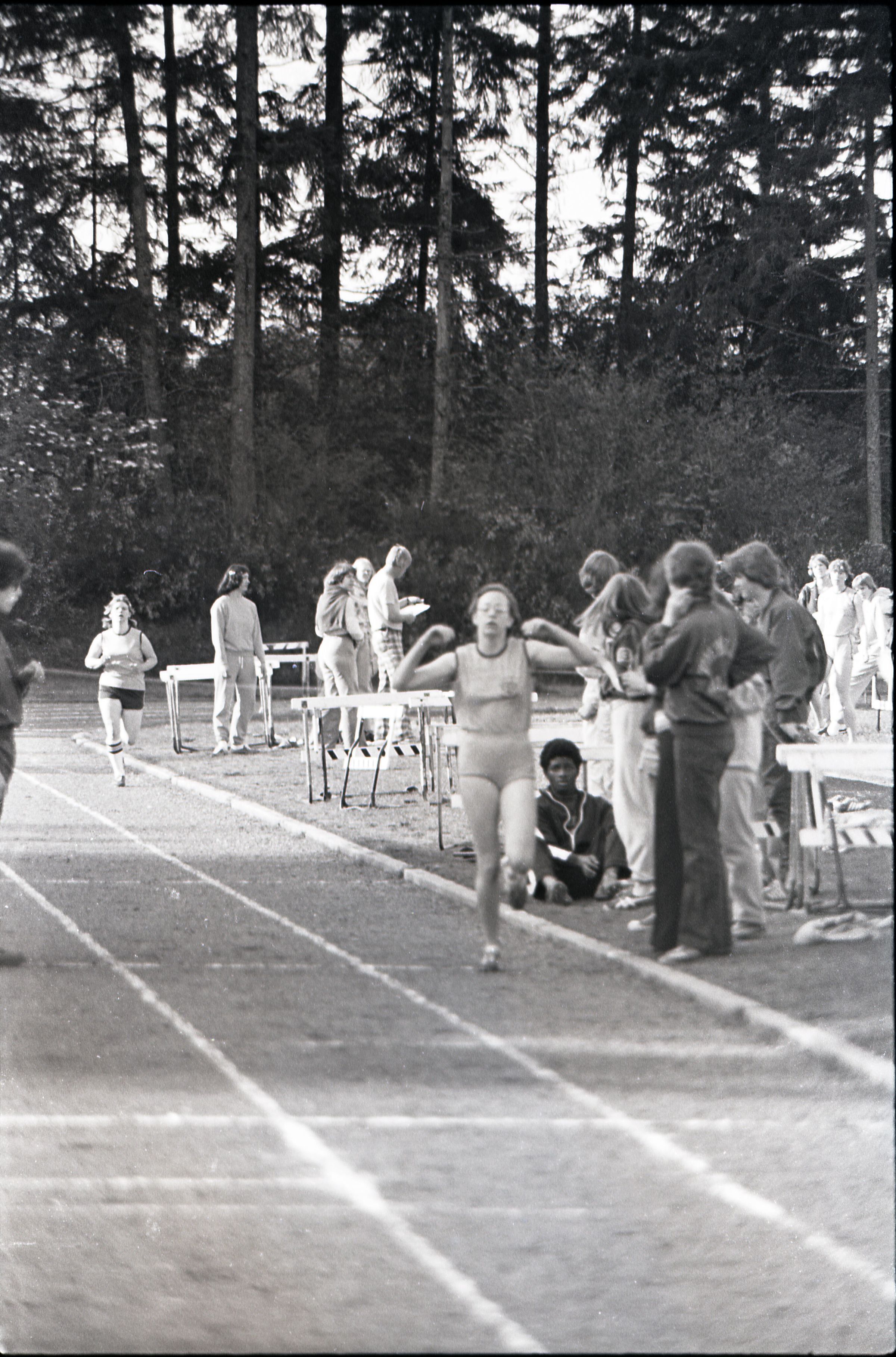 Track and Field, 1978. These three black and white film negative strips were created for the Lacey Leader newspaper. These images show a high school track meet.Made/Created