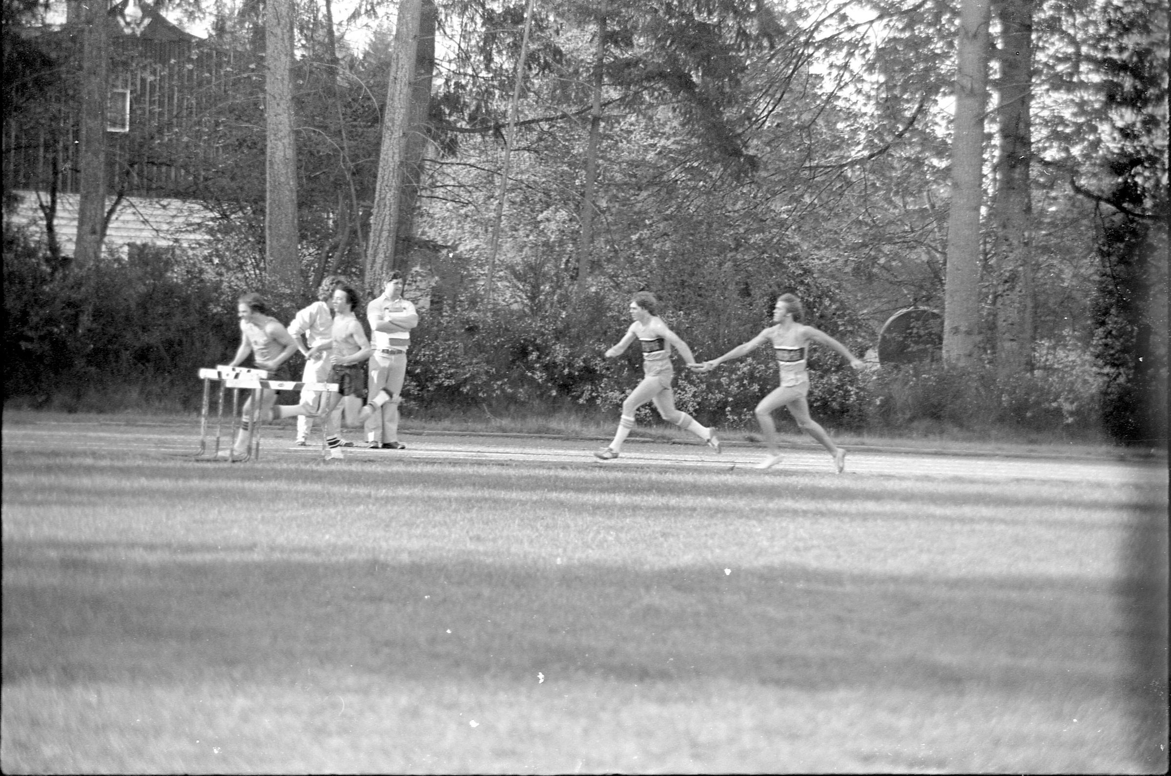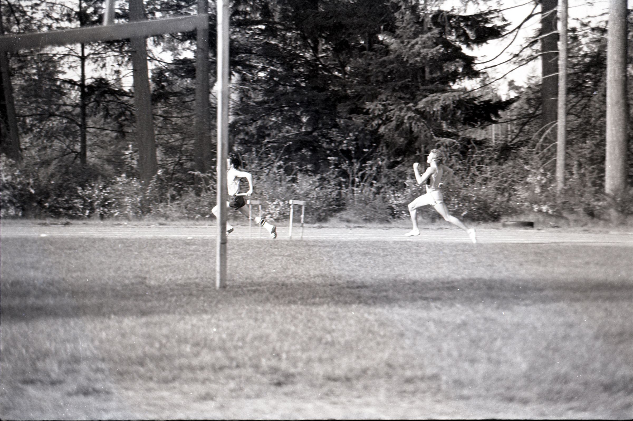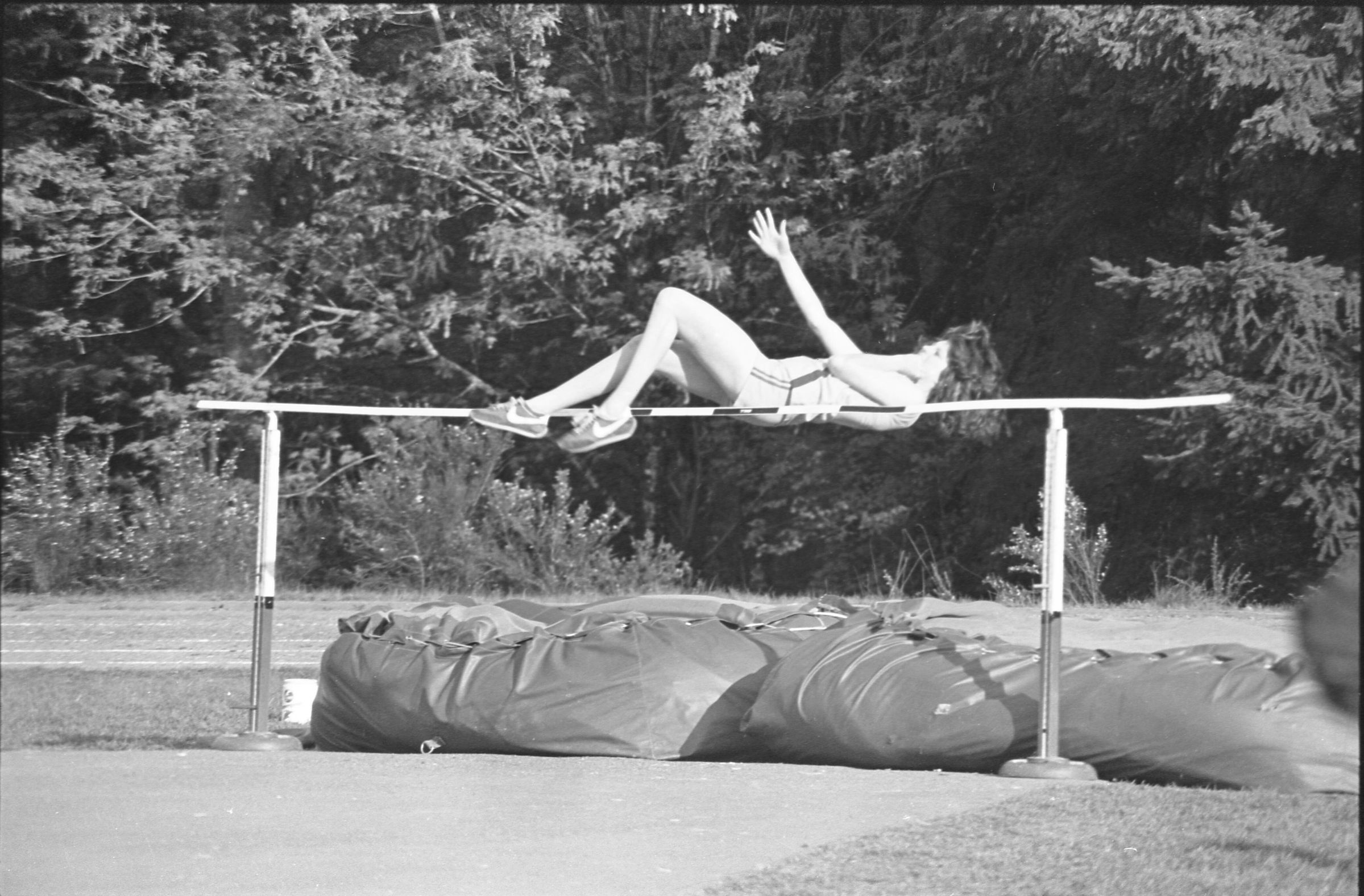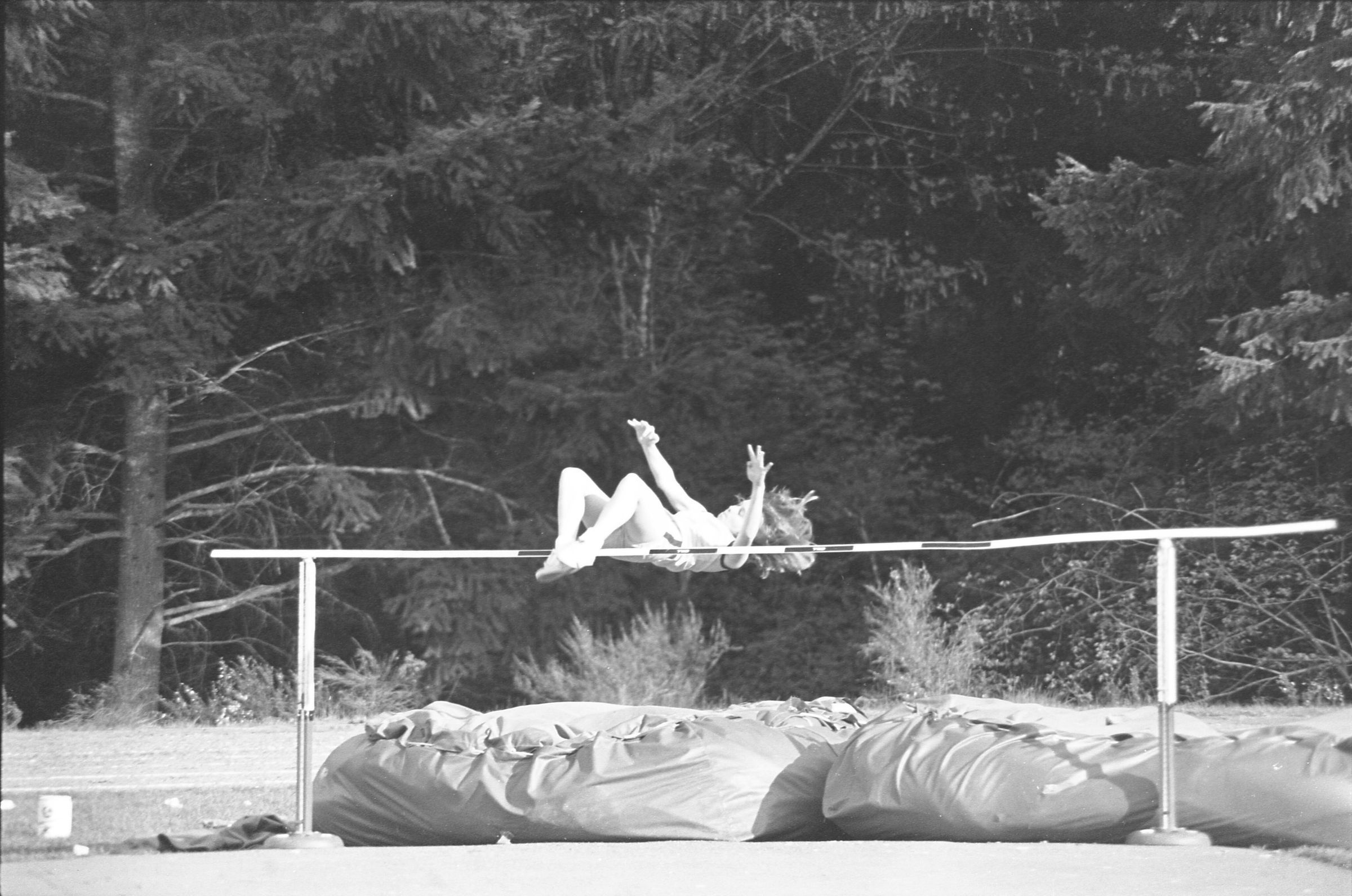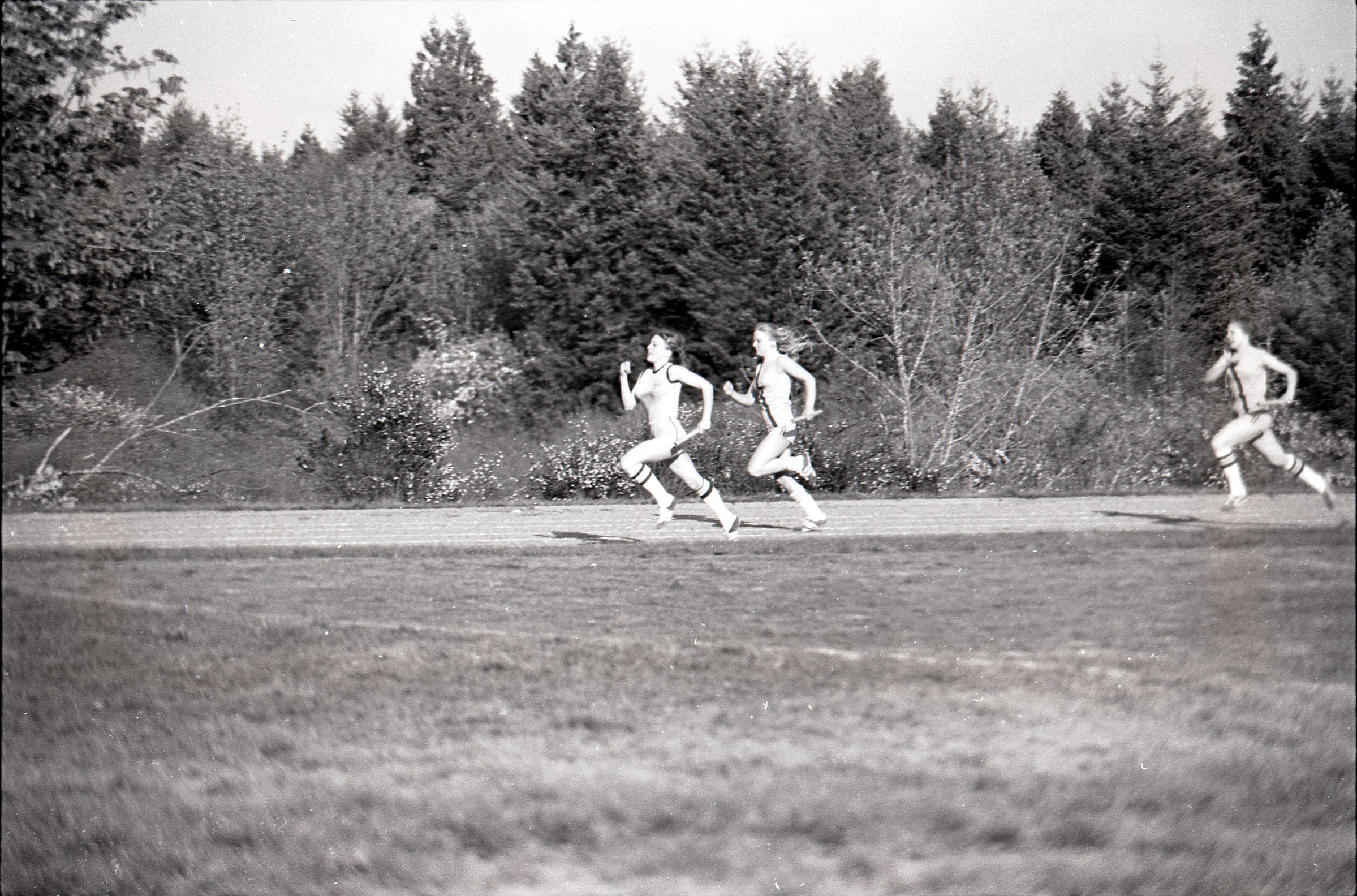 Track and Field, 1978. These three black and white film negative strips were created for the Lacey Leader newspaper. These images show a high school track meet.Made/Created
