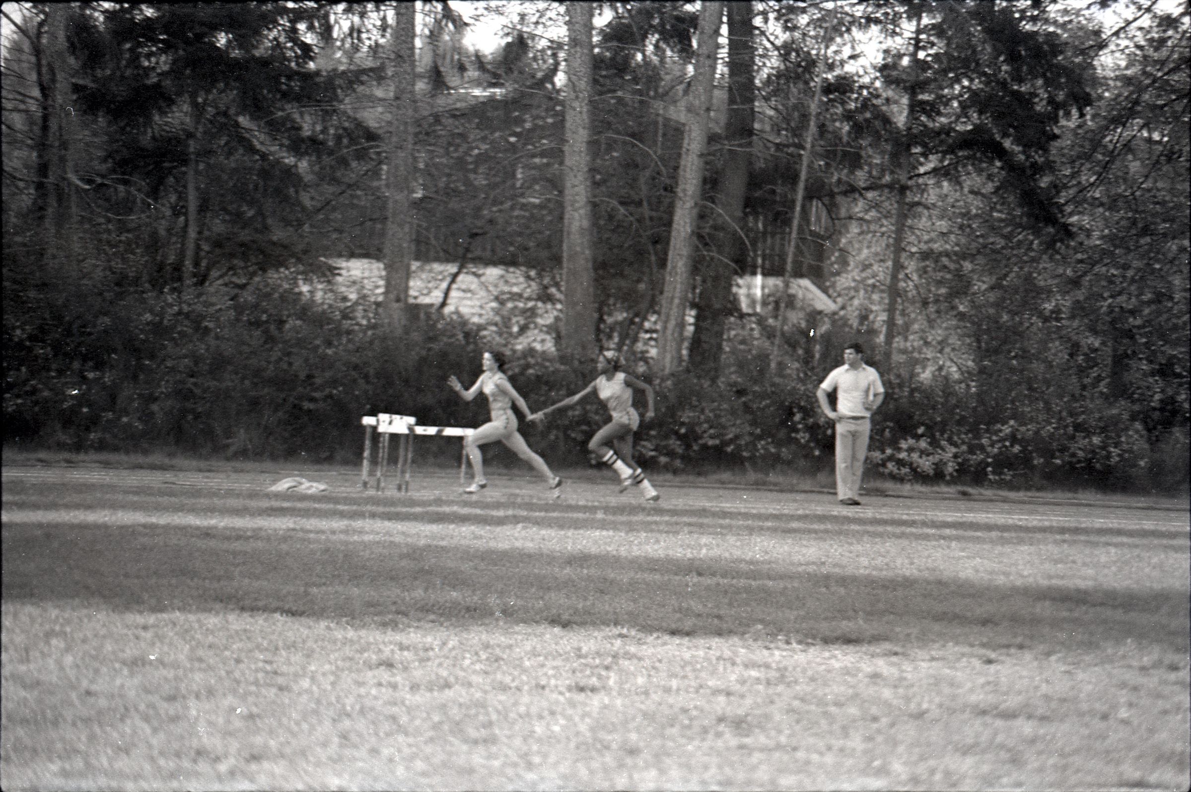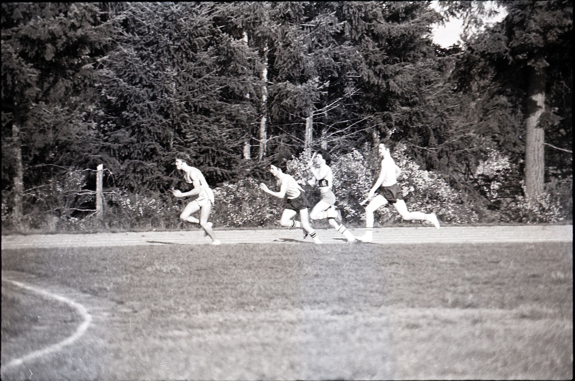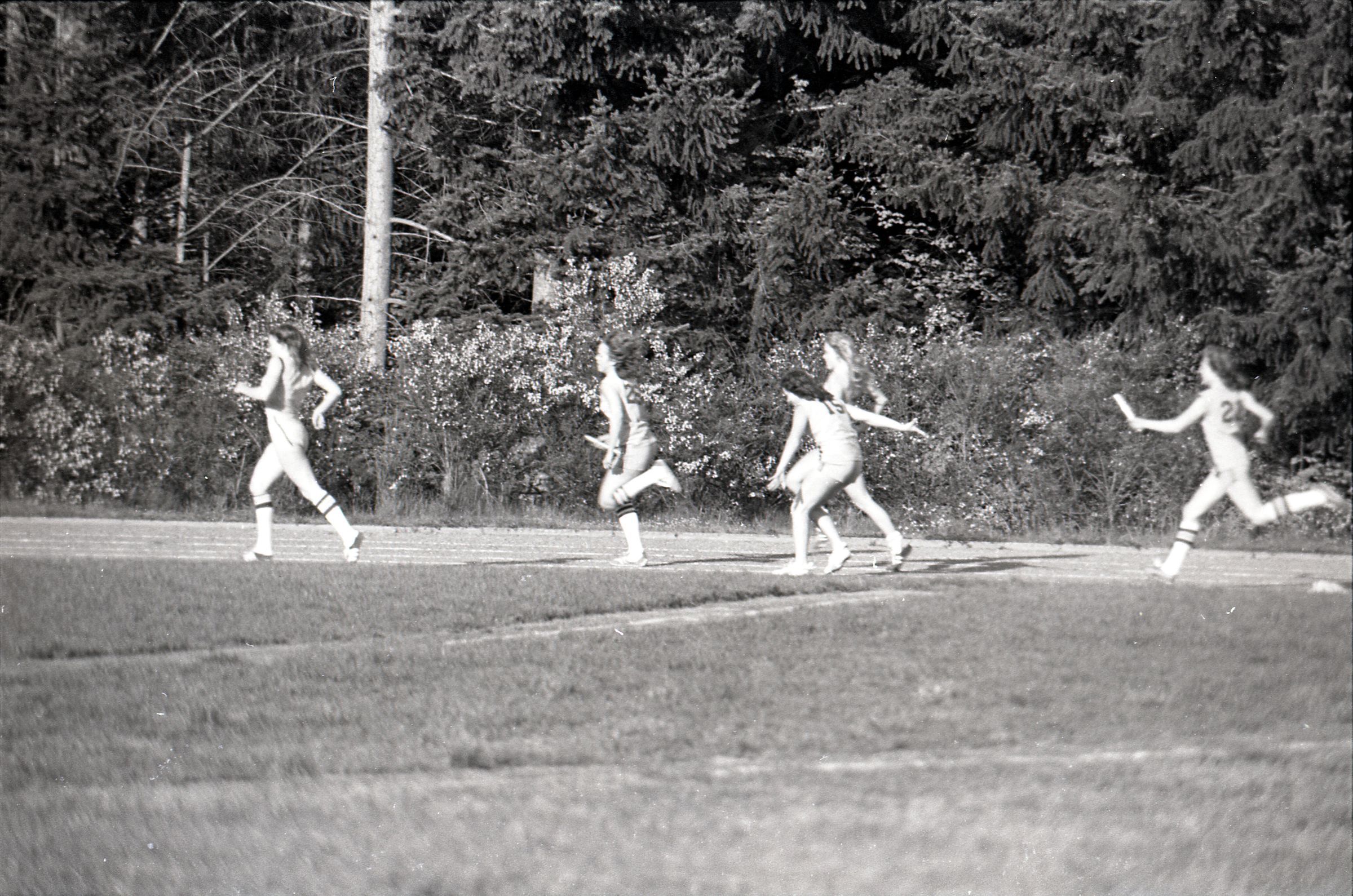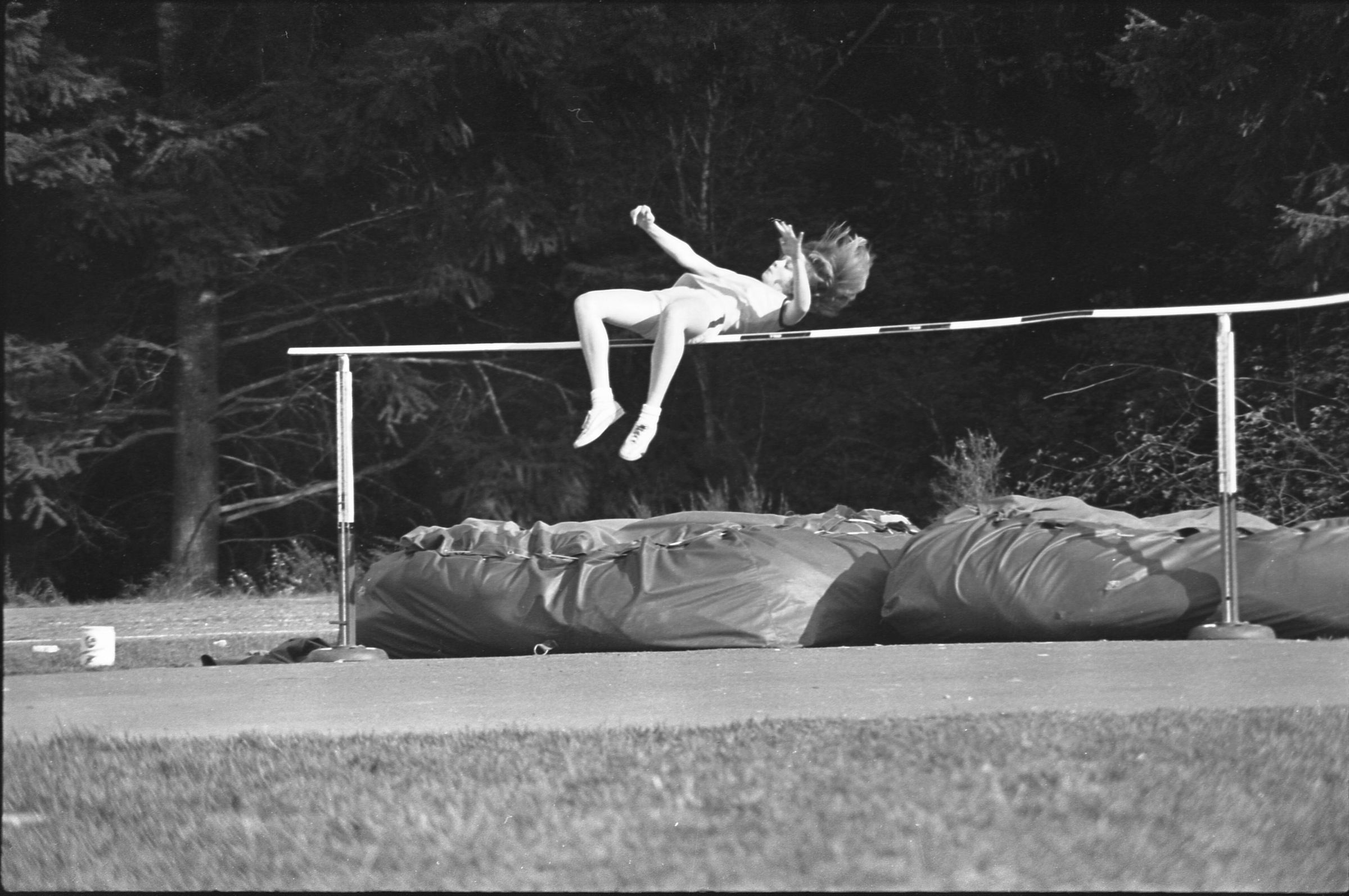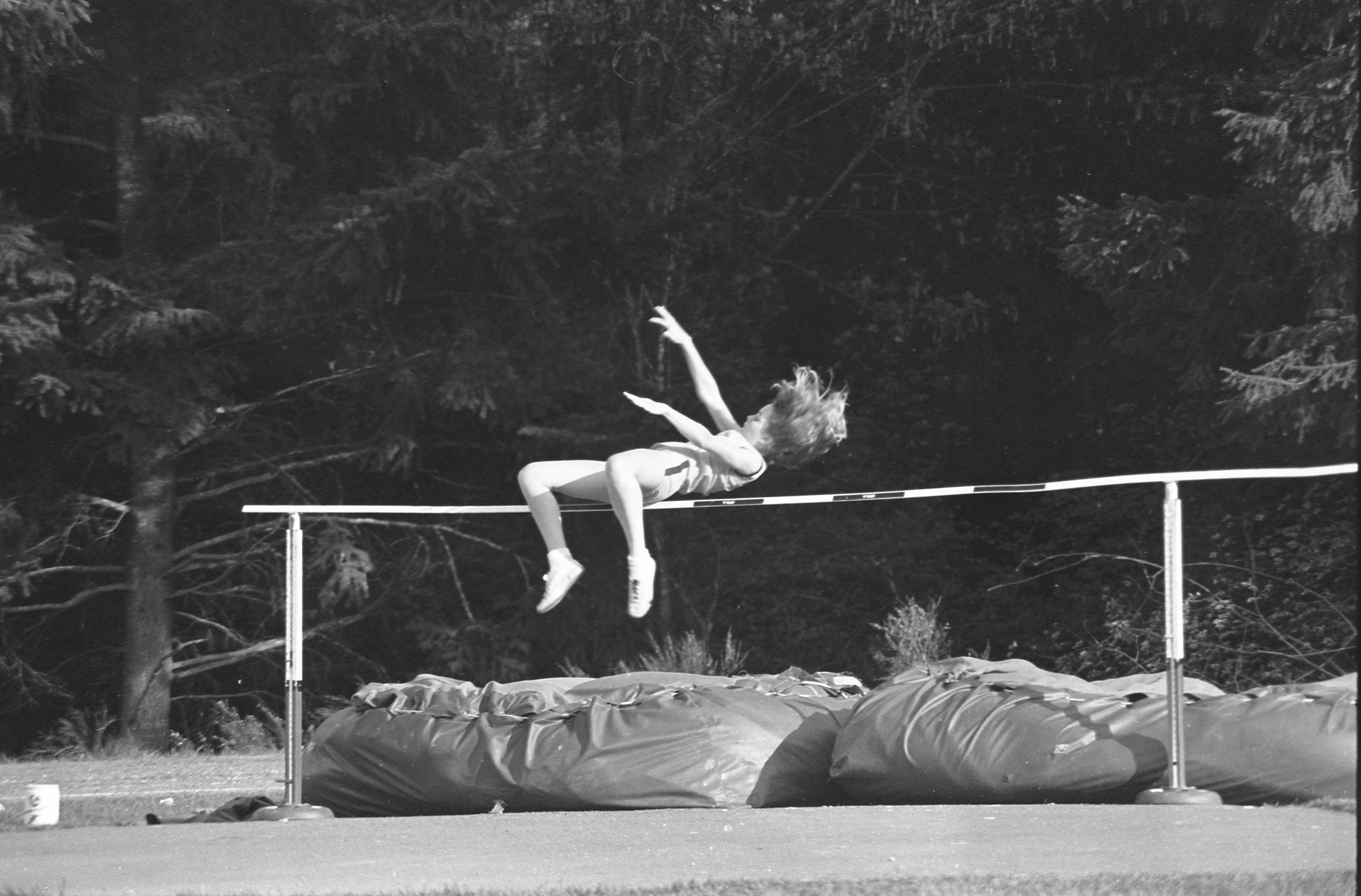Track and Field, 1978. These three black and white film negative strips were created for the Lacey Leader newspaper. These images show a high school track meet.Made/Created