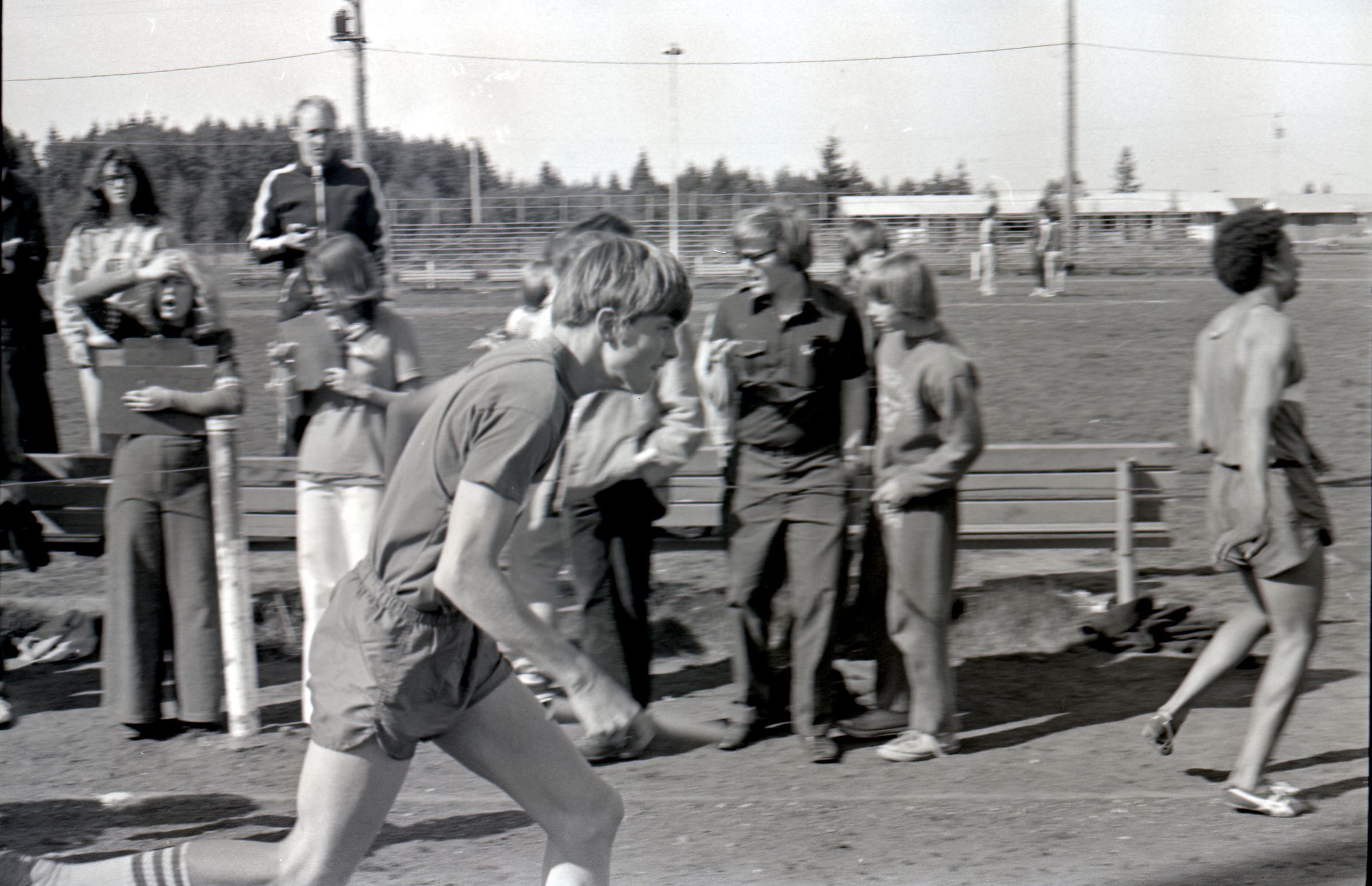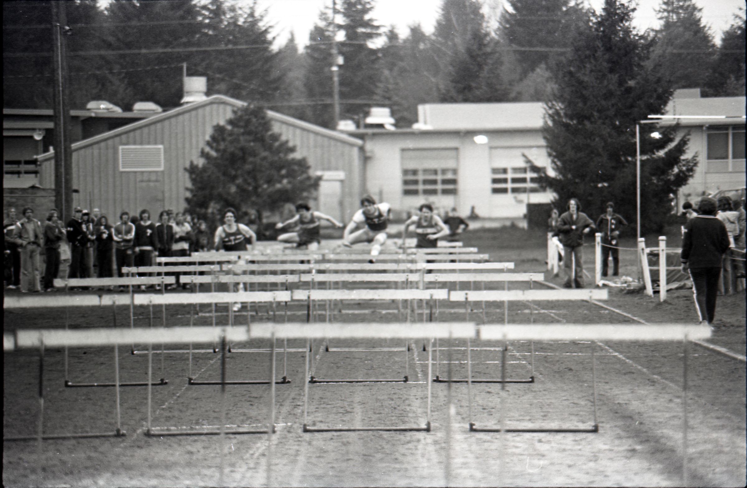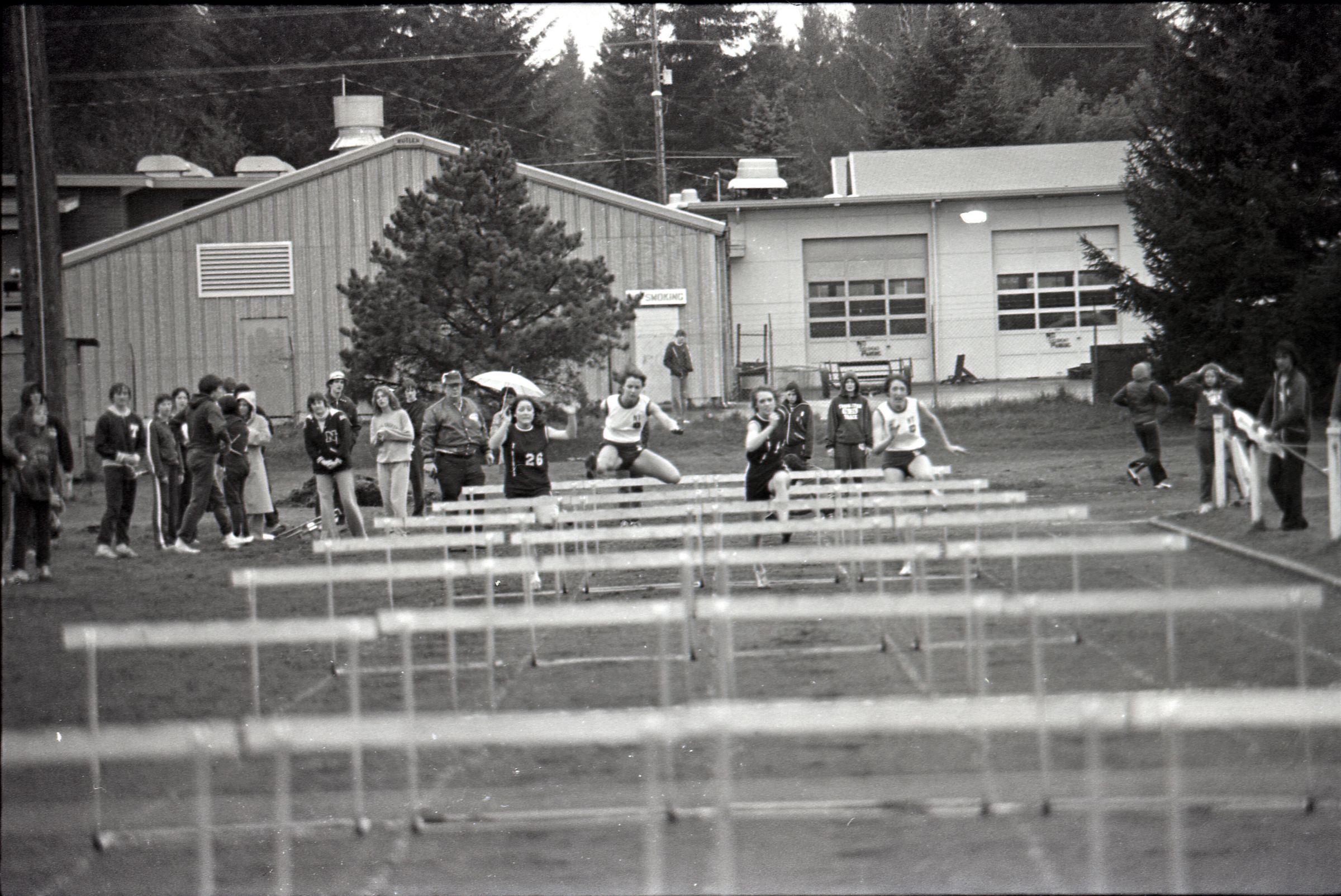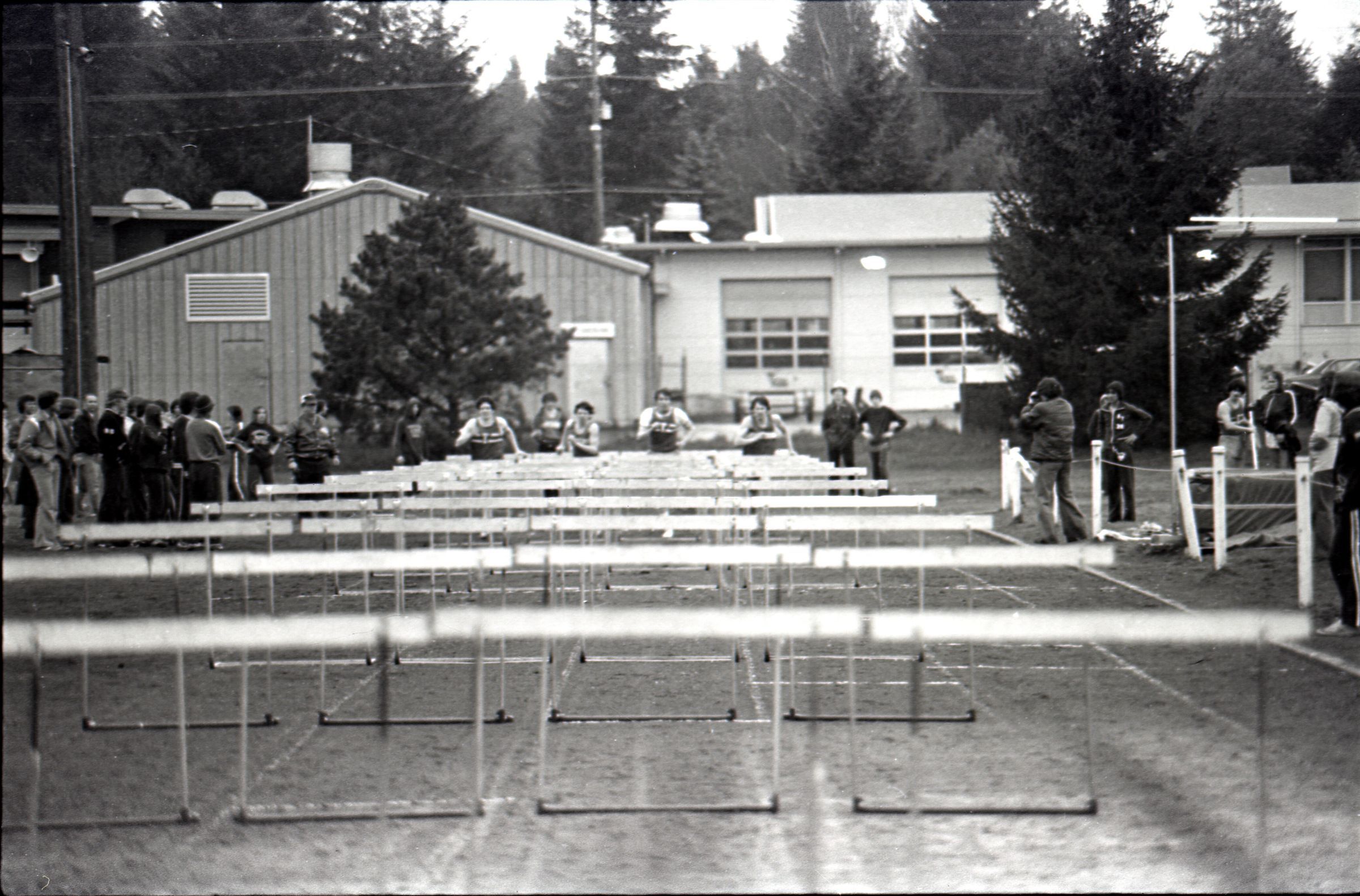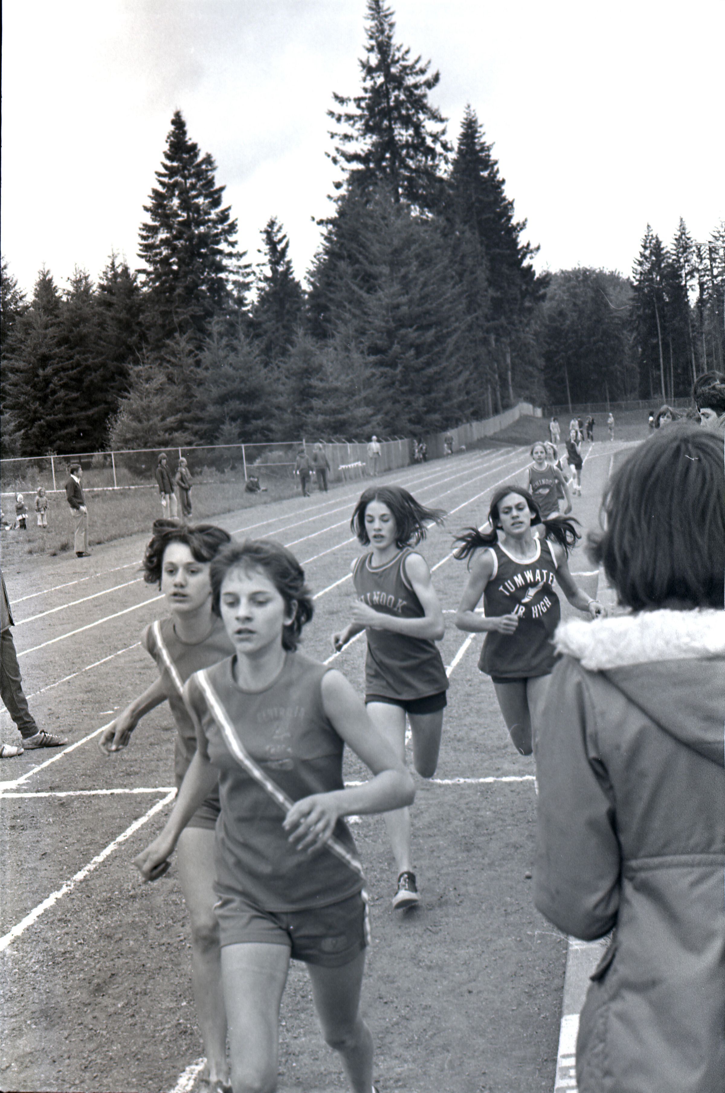 Track and Field, 1975-1978. These sixteen black and white film negative strips were created for the Lacey Leader newspaper. These images were created using six separate film rolls, so some of the physical numbers on the strips are repeated.Made/Created