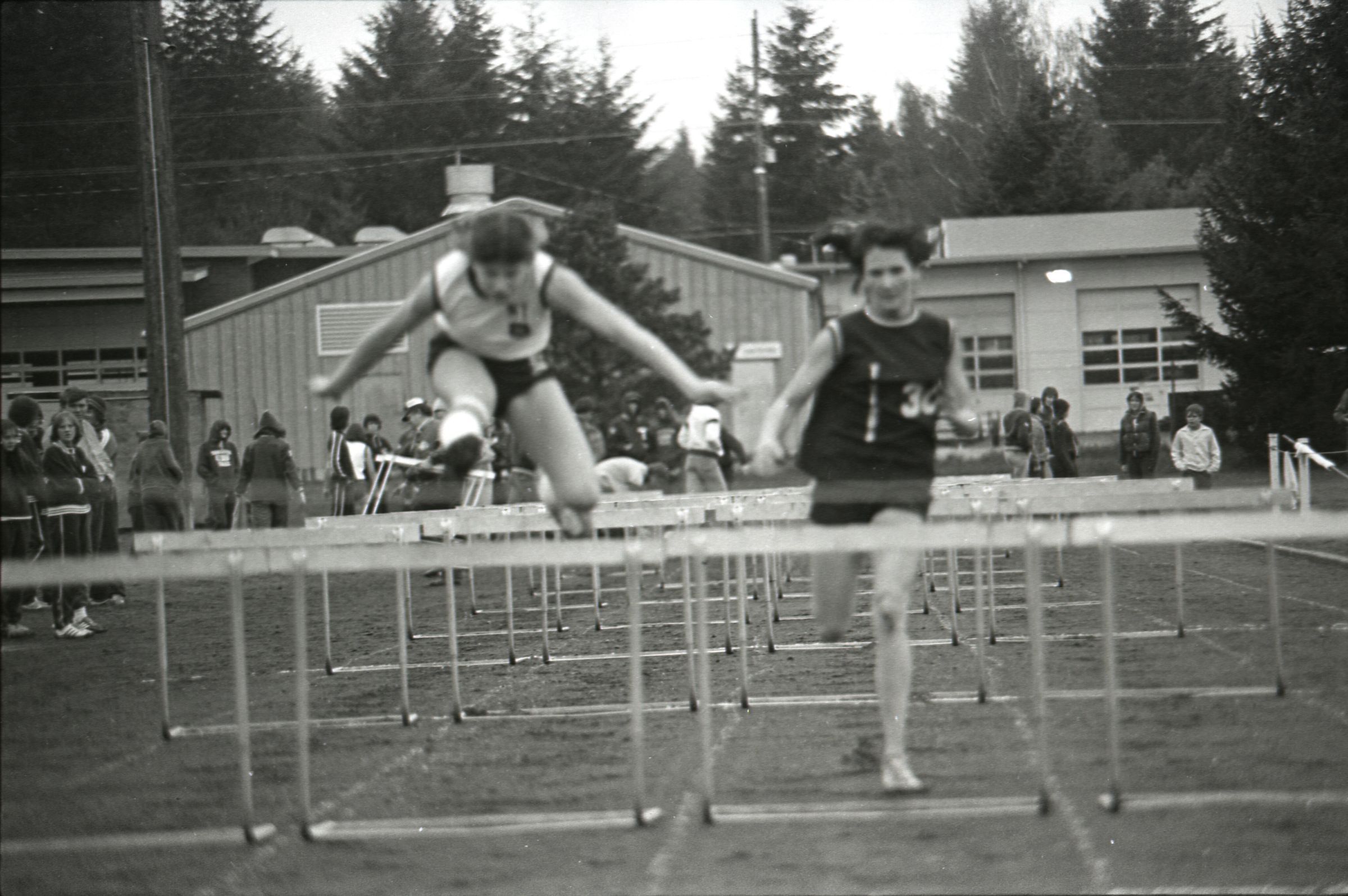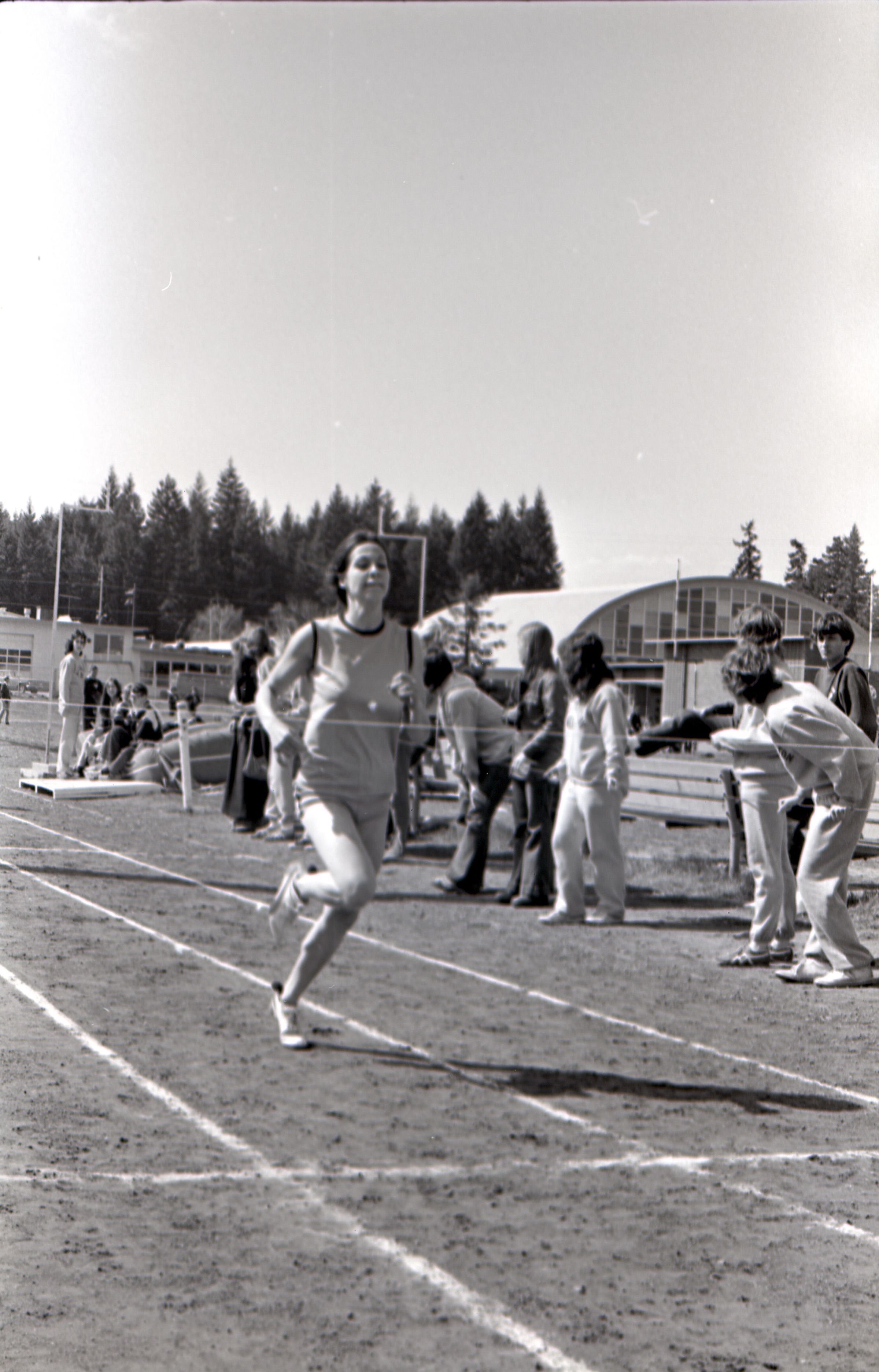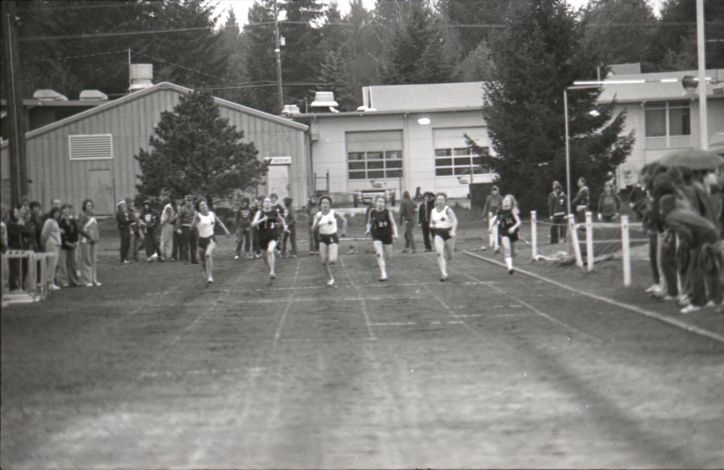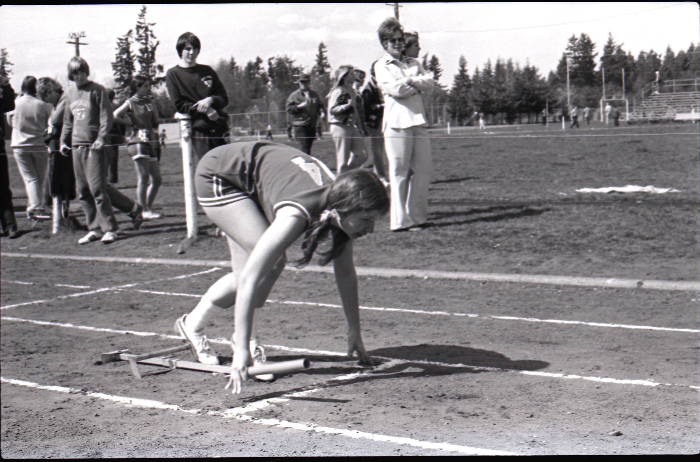 Track and Field, 1975-1978. These sixteen black and white film negative strips were created for the Lacey Leader newspaper. These images were created using six separate film rolls, so some of the physical numbers on the strips are repeated.Made/Created