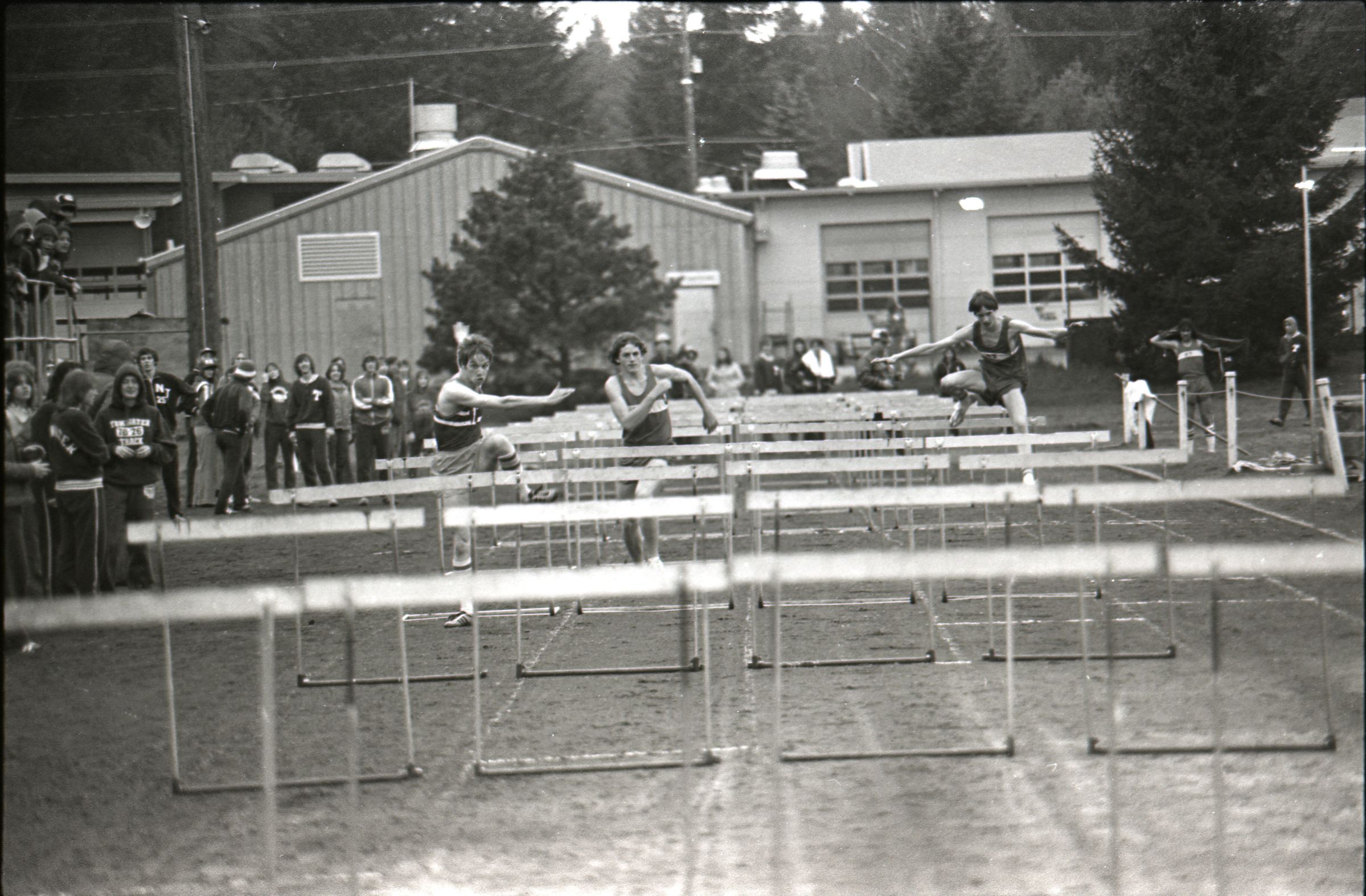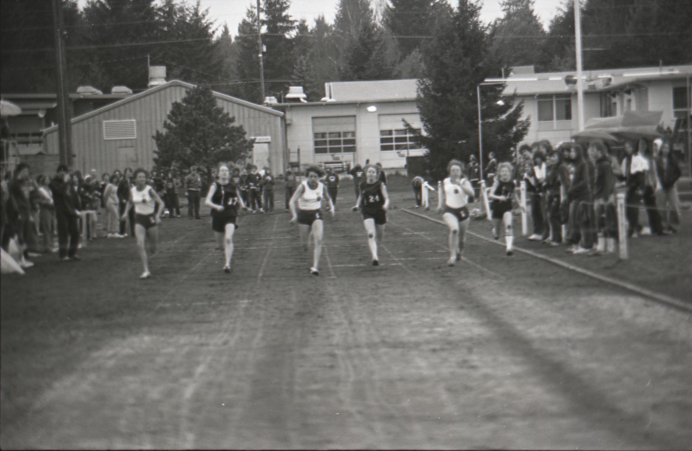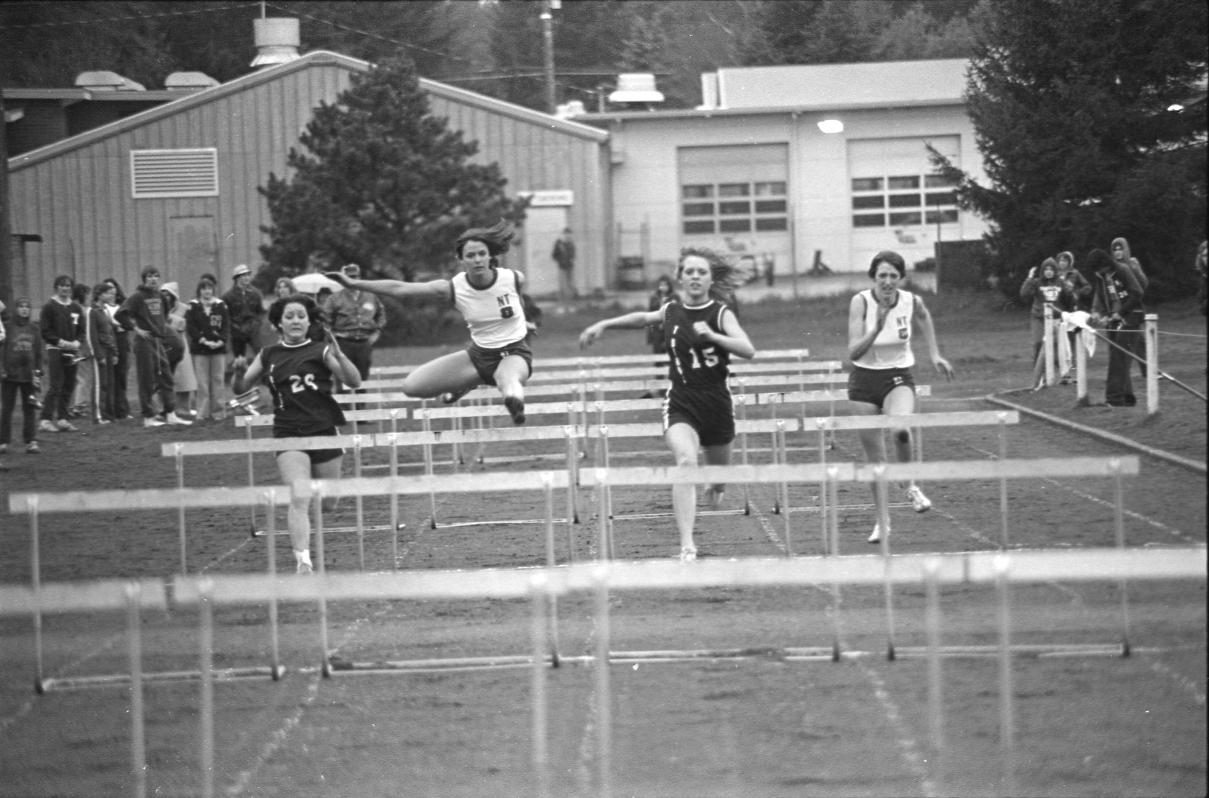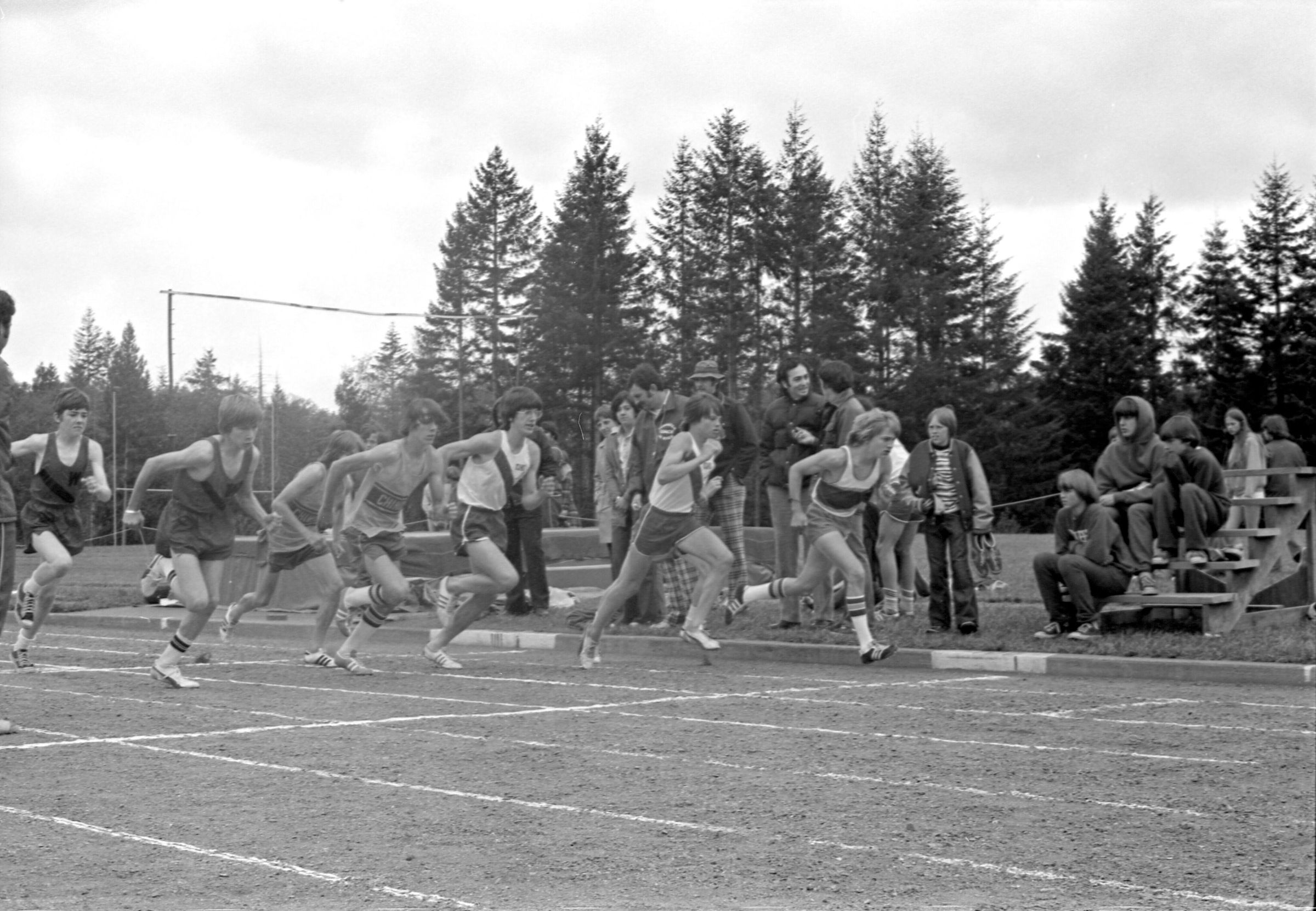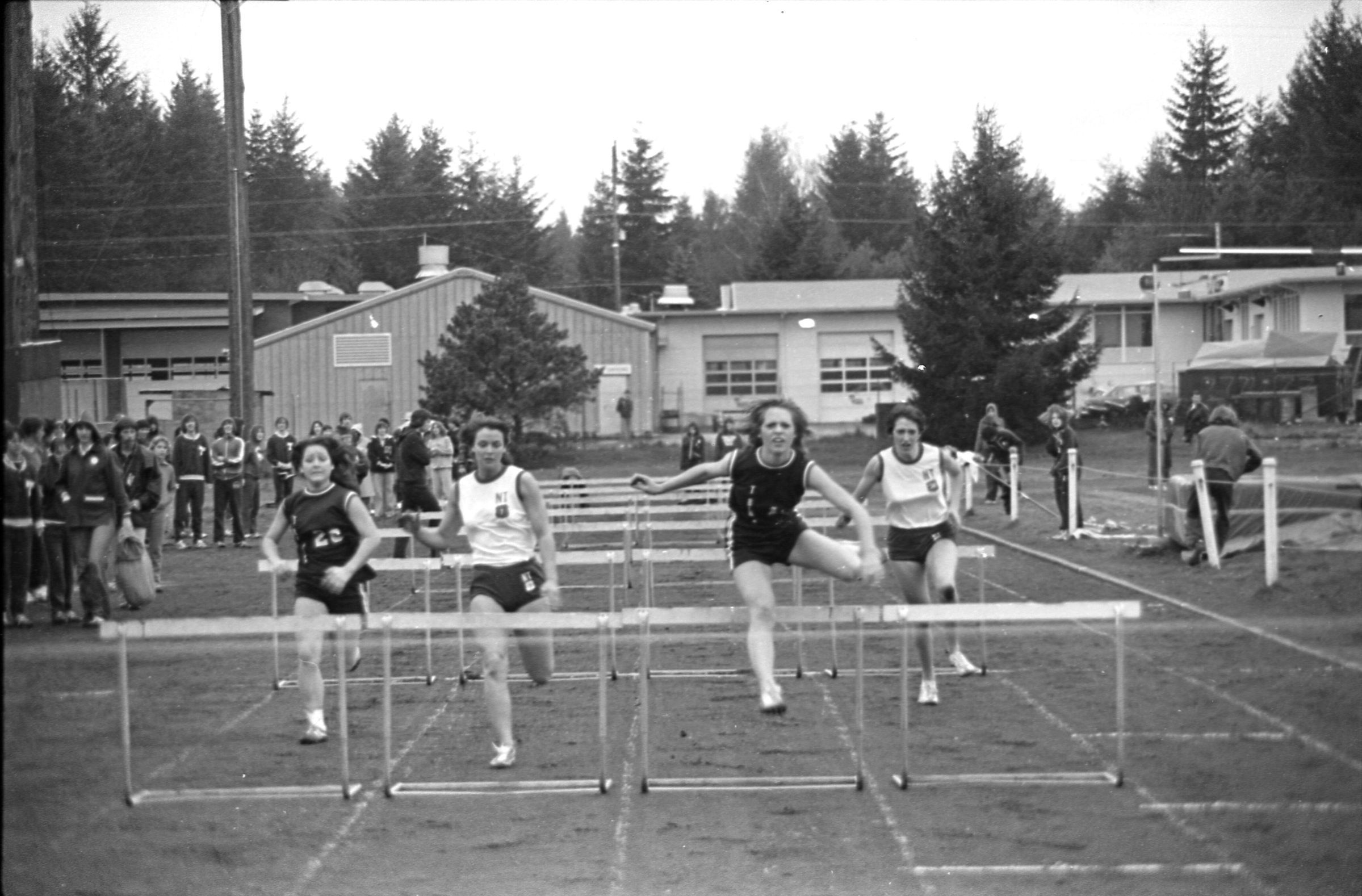 Track and Field, 1975-1978. These sixteen black and white film negative strips were created for the Lacey Leader newspaper. These images were created using six separate film rolls, so some of the physical numbers on the strips are repeated.Made/Created
