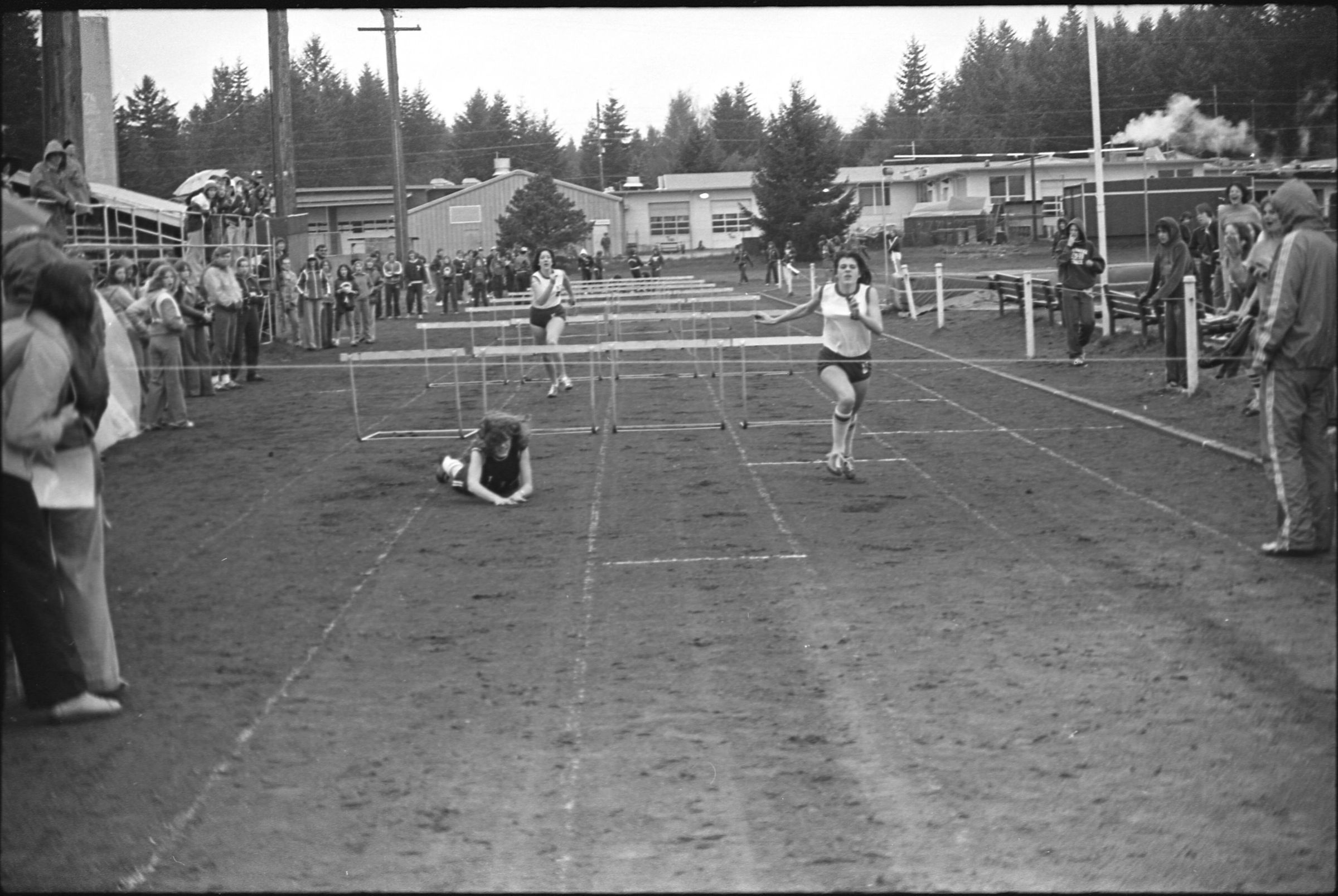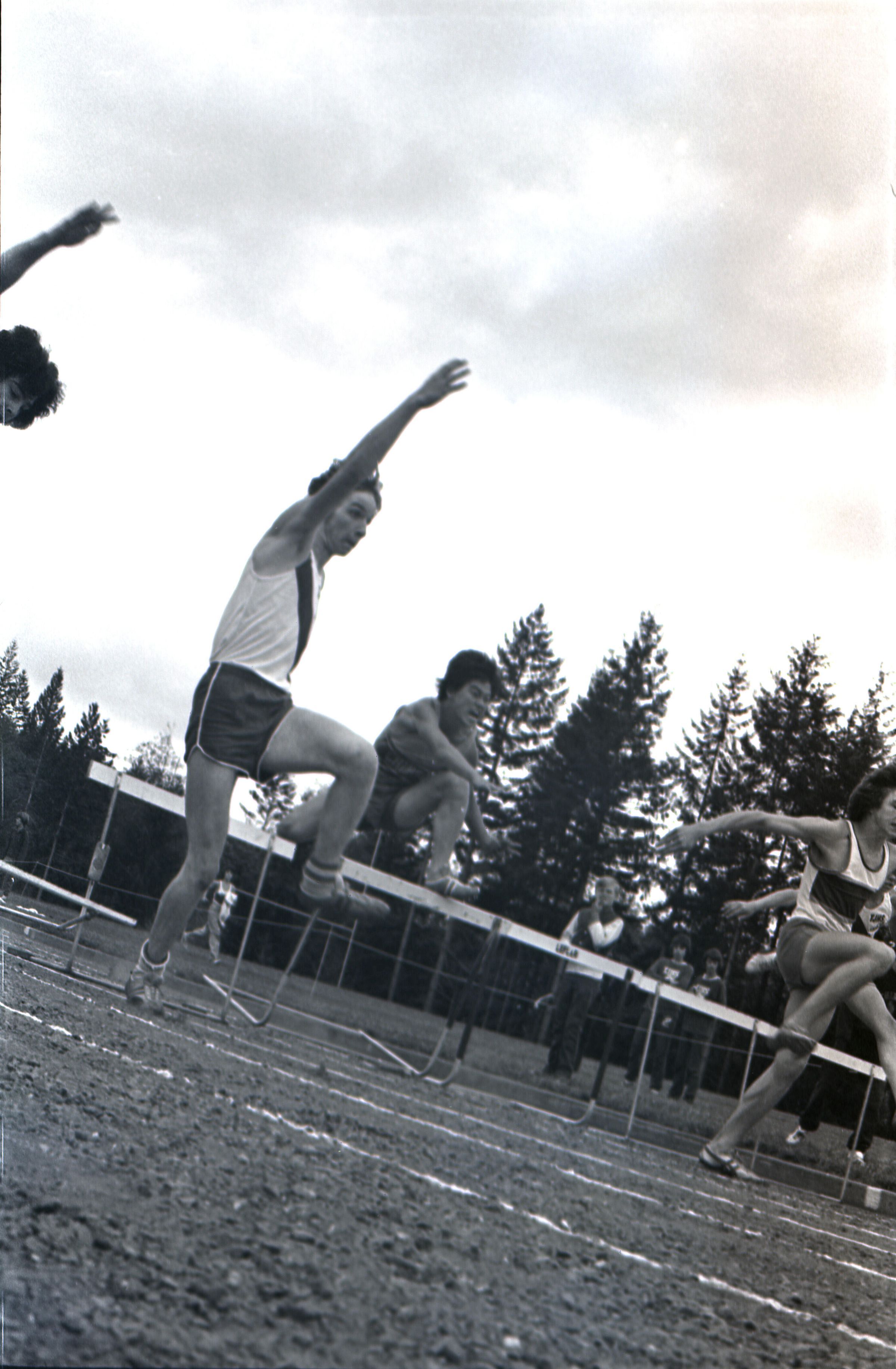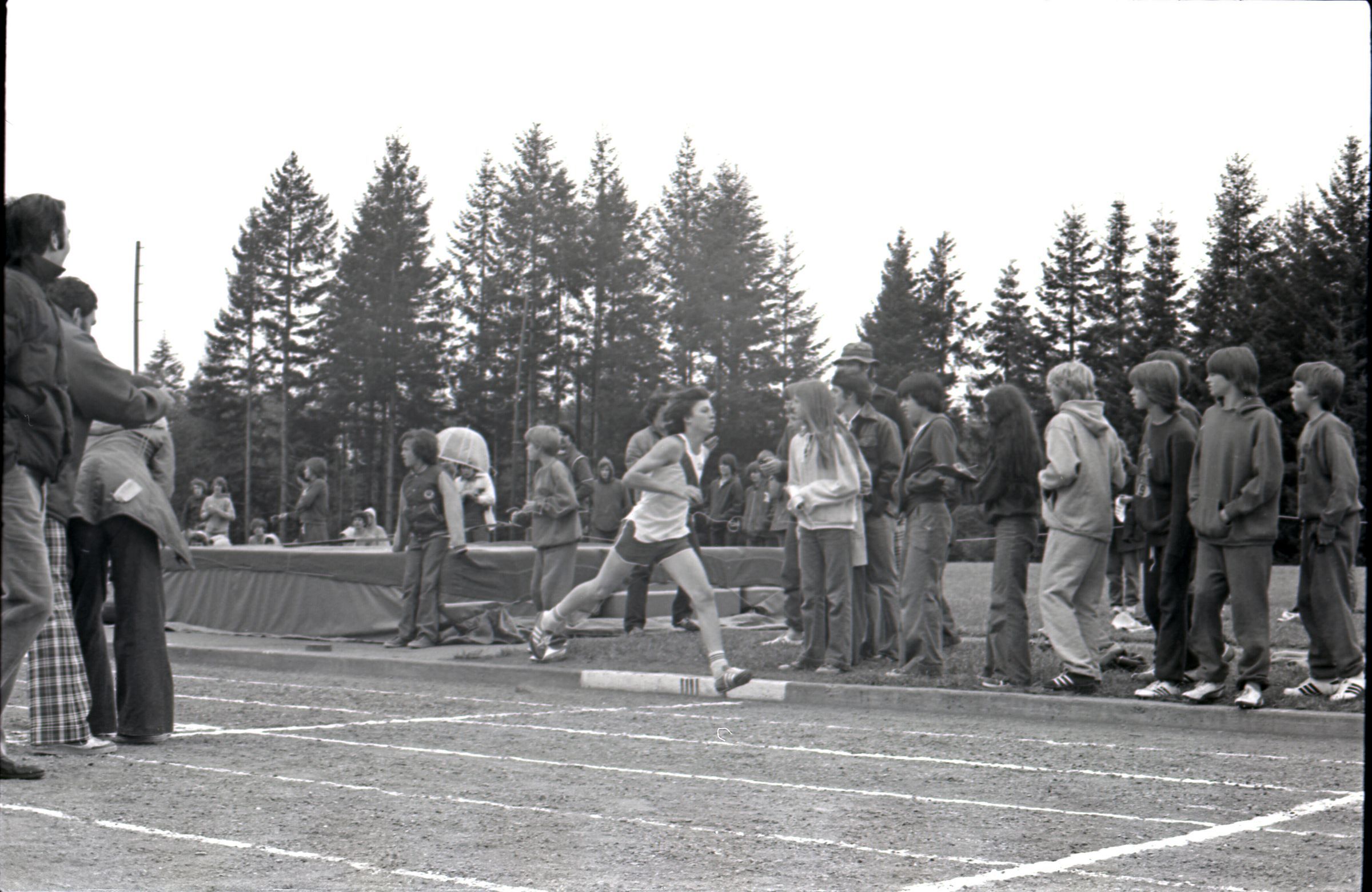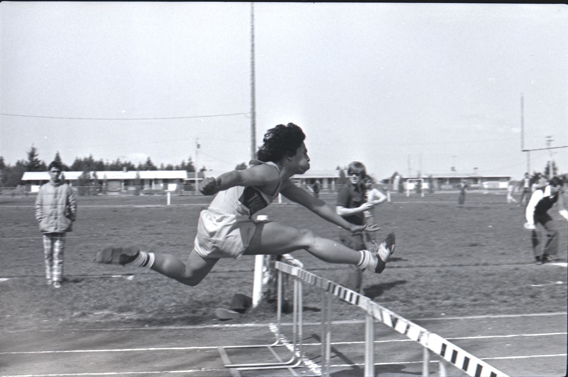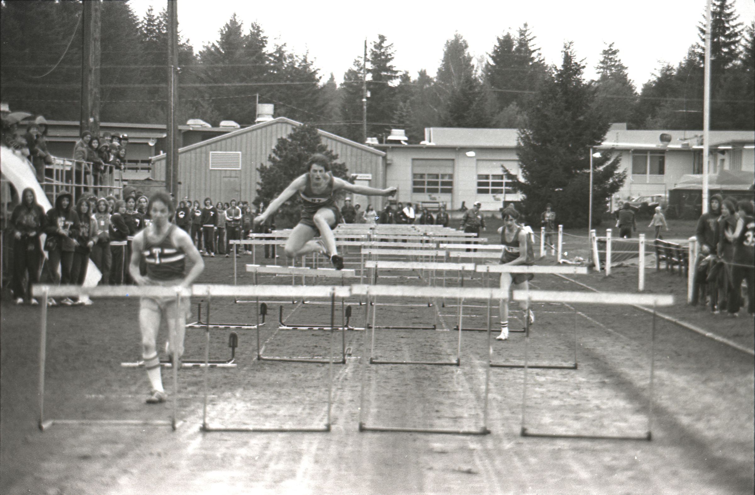 Track and Field, 1975-1978. These sixteen black and white film negative strips were created for the Lacey Leader newspaper. These images were created using six separate film rolls, so some of the physical numbers on the strips are repeated.Made/Created