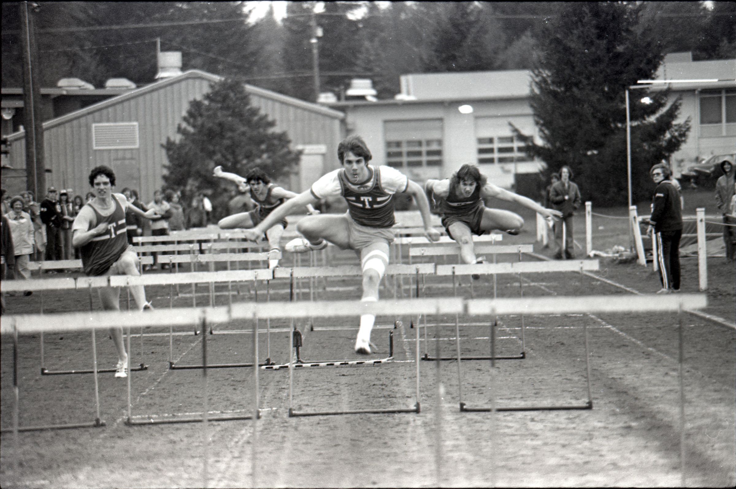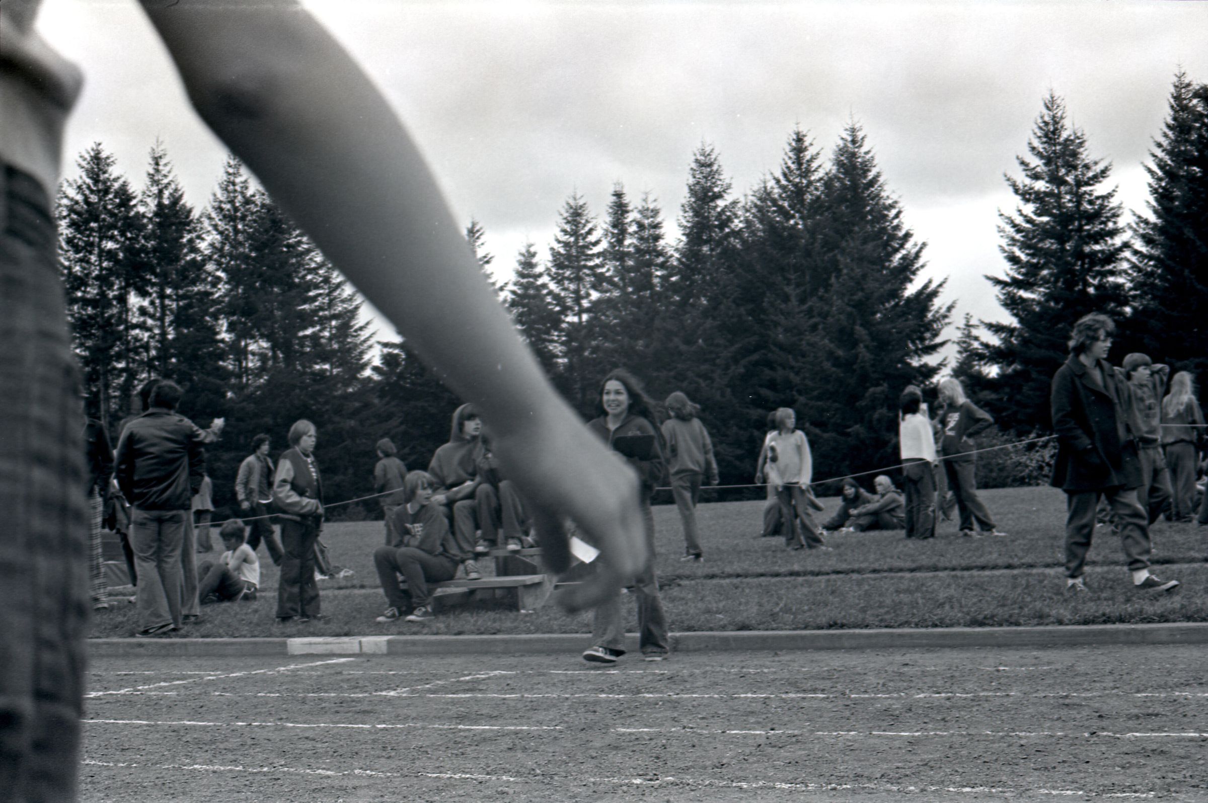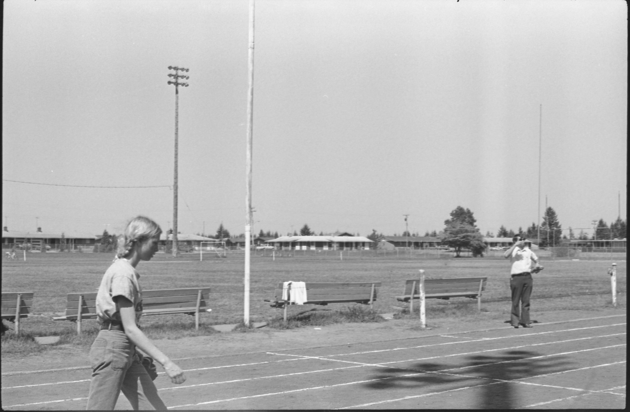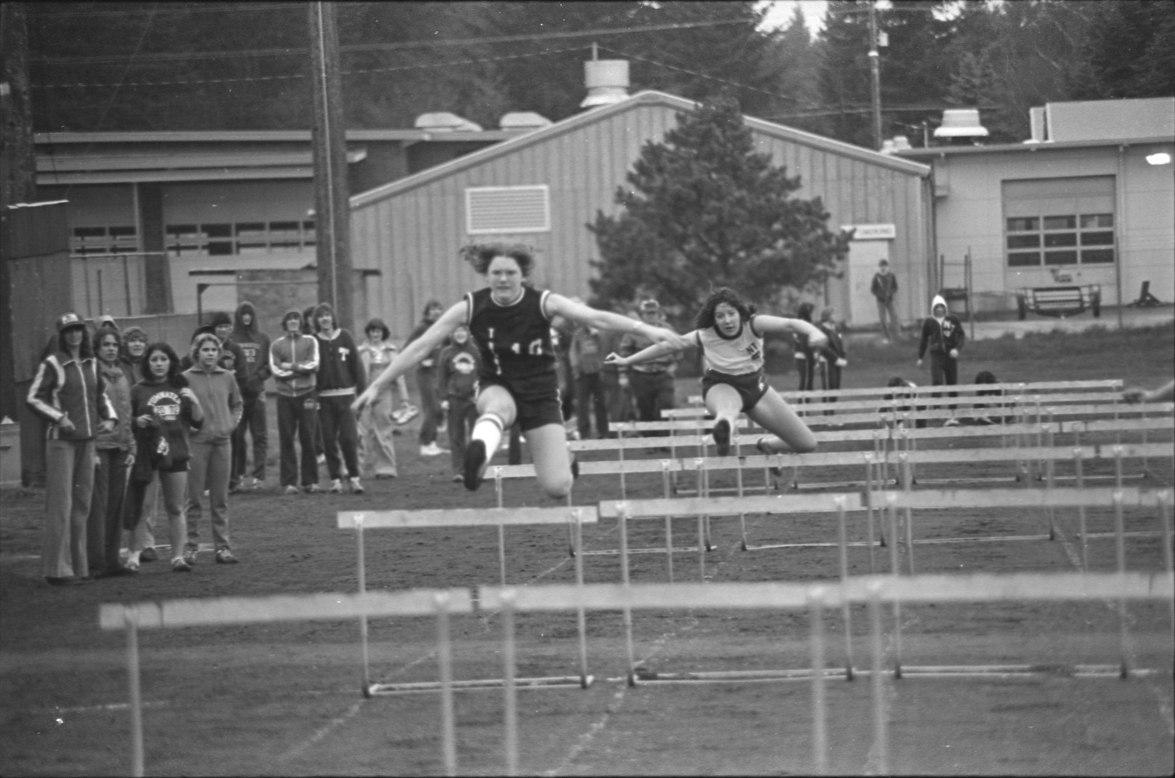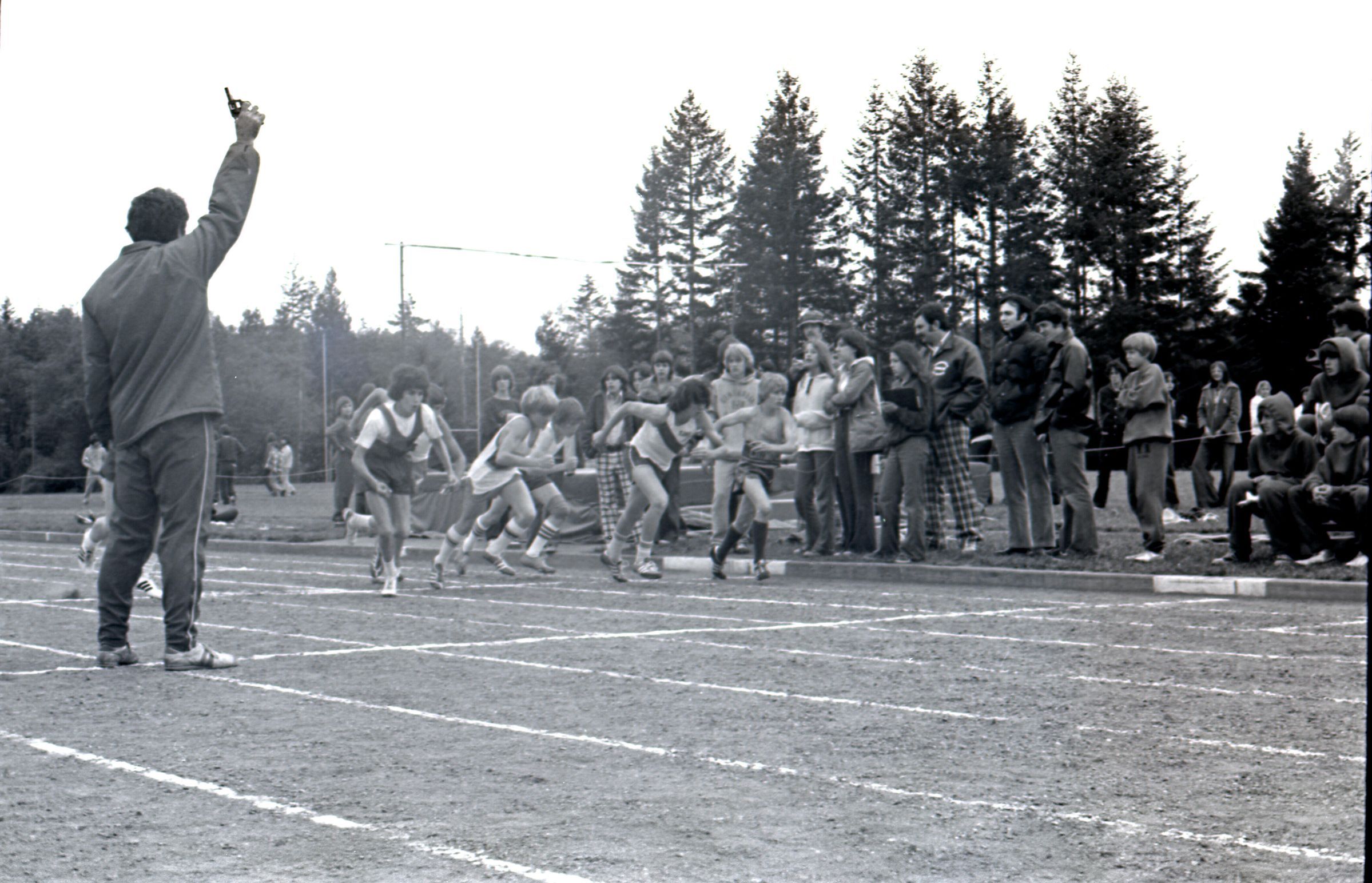 Track and Field, 1975-1978. These sixteen black and white film negative strips were created for the Lacey Leader newspaper. These images were created using six separate film rolls, so some of the physical numbers on the strips are repeated.Made/Created