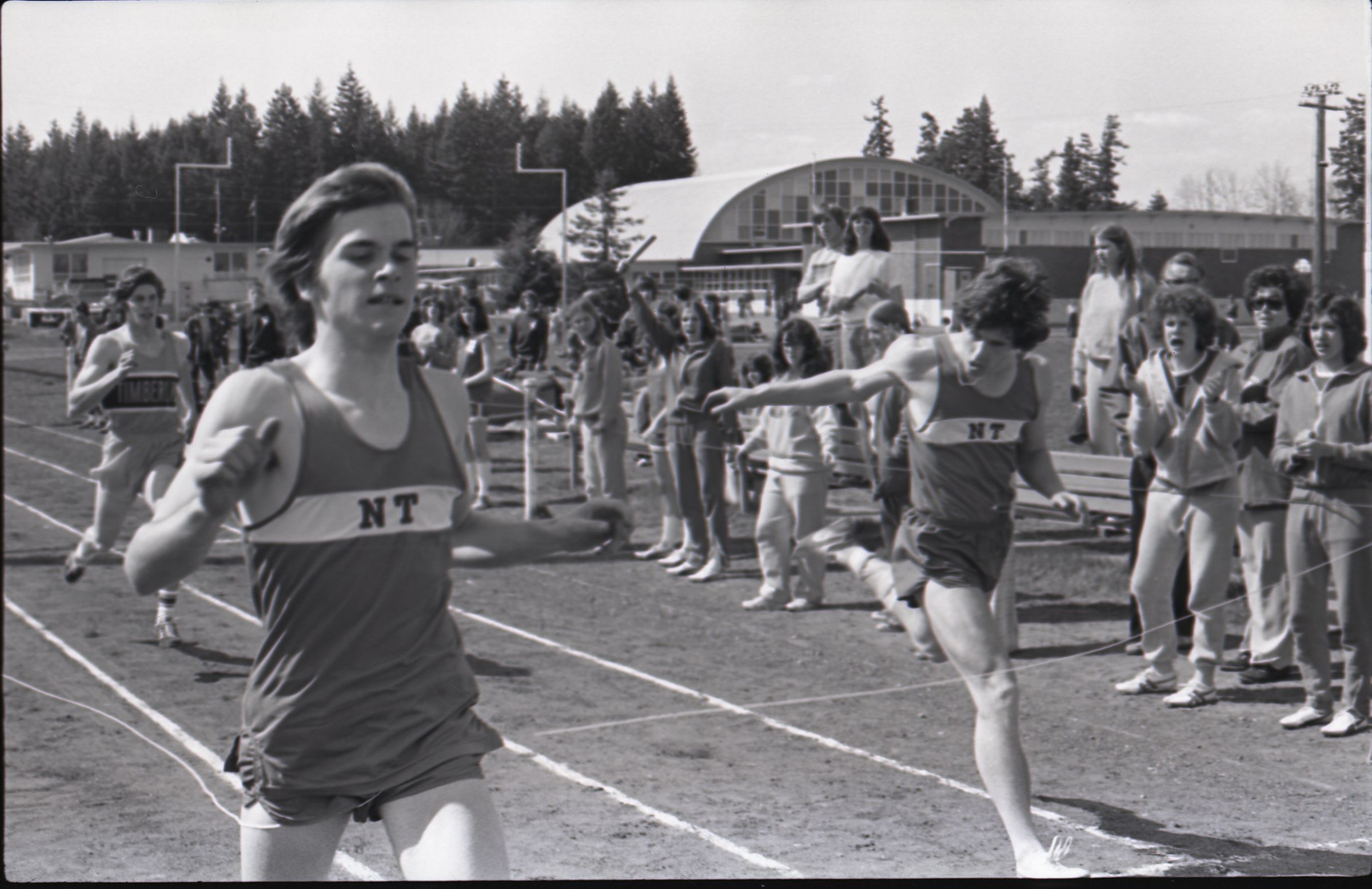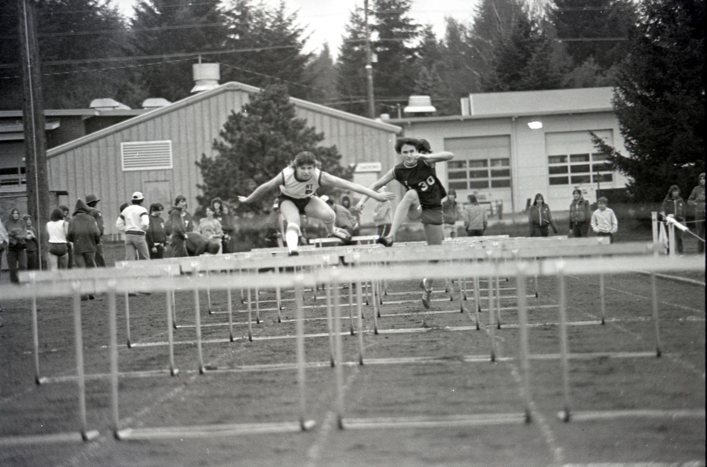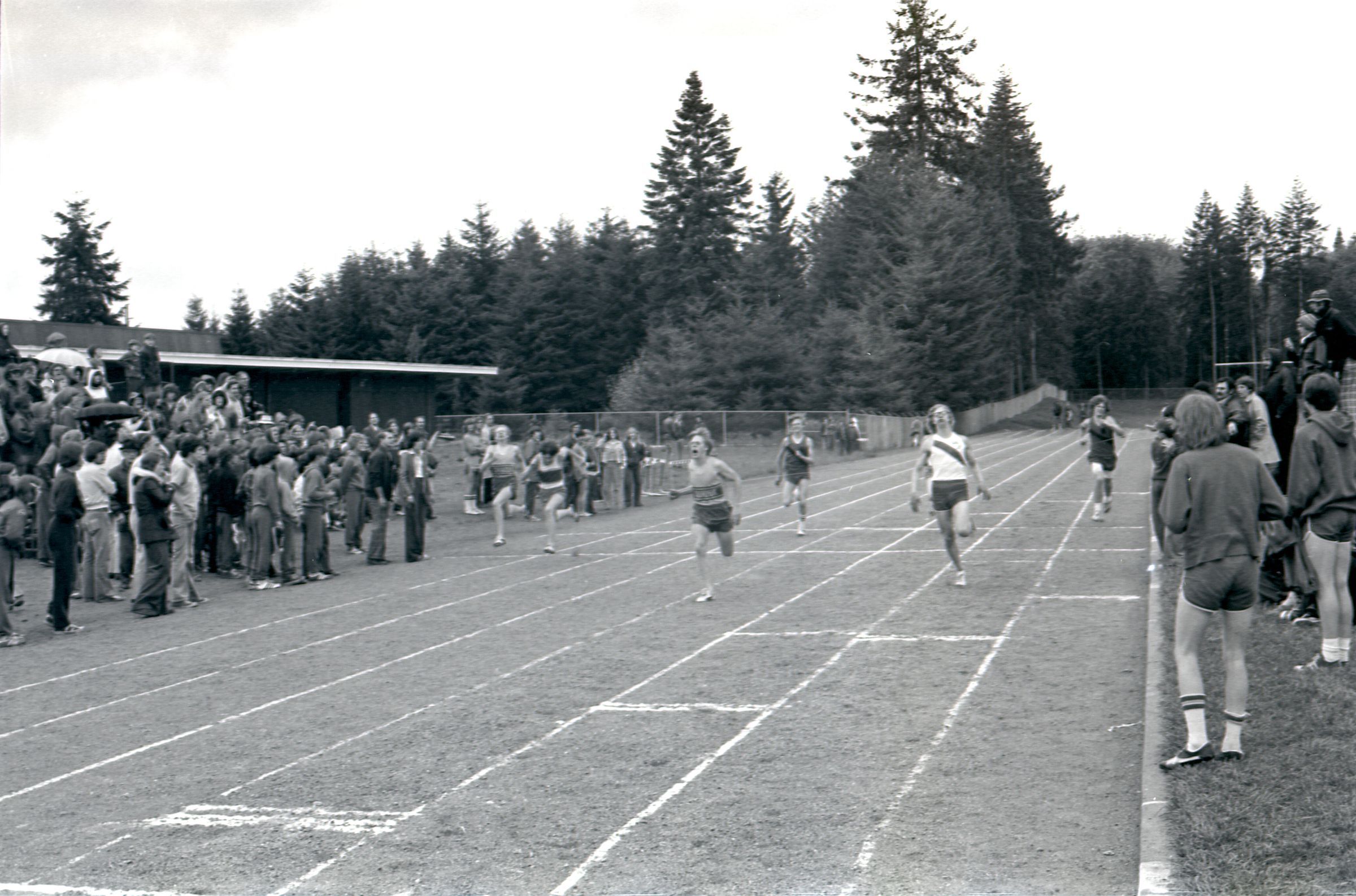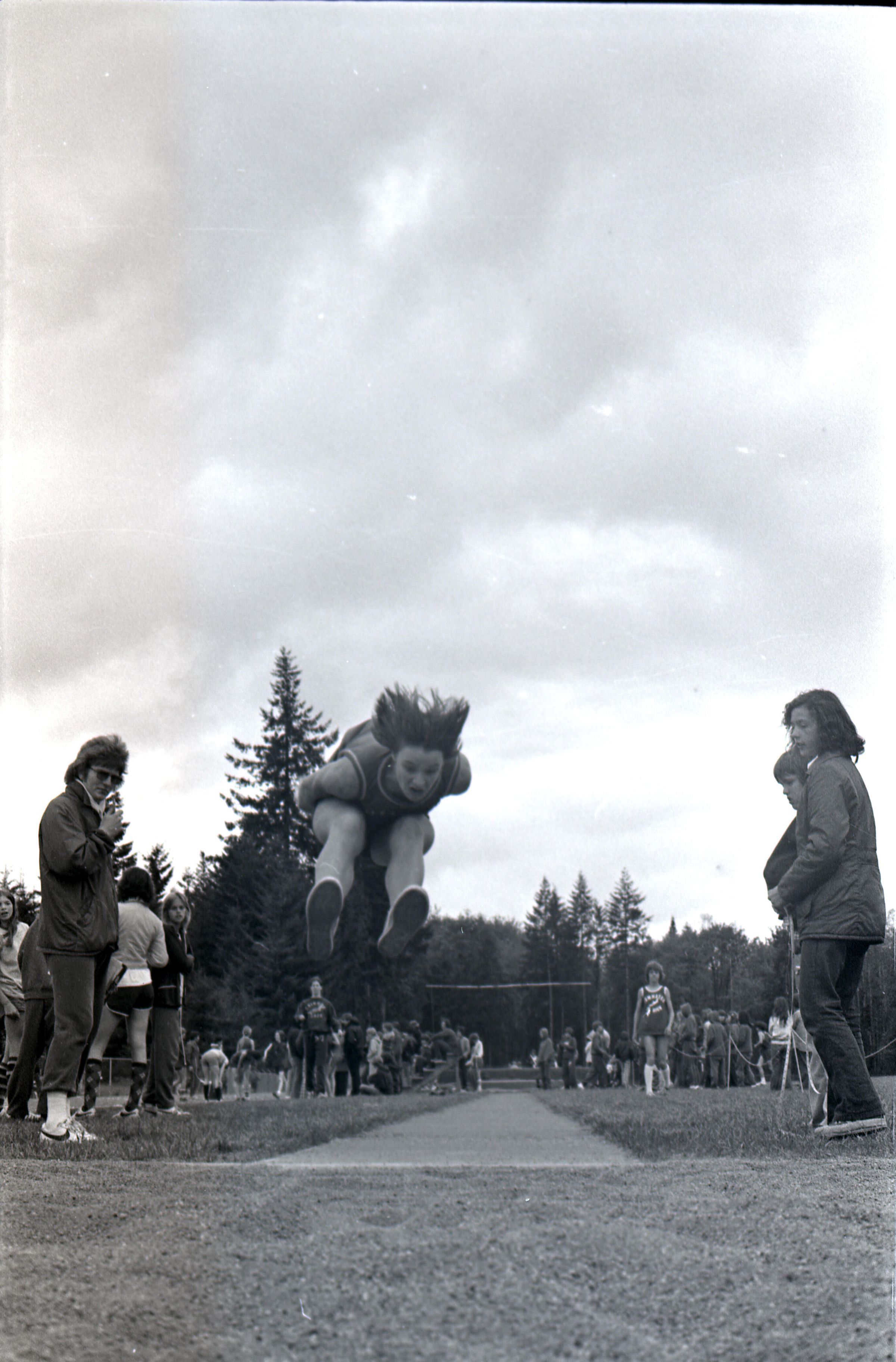 Track and Field, 1975-1978. These sixteen black and white film negative strips were created for the Lacey Leader newspaper. These images were created using six separate film rolls, so some of the physical numbers on the strips are repeated.Made/Created